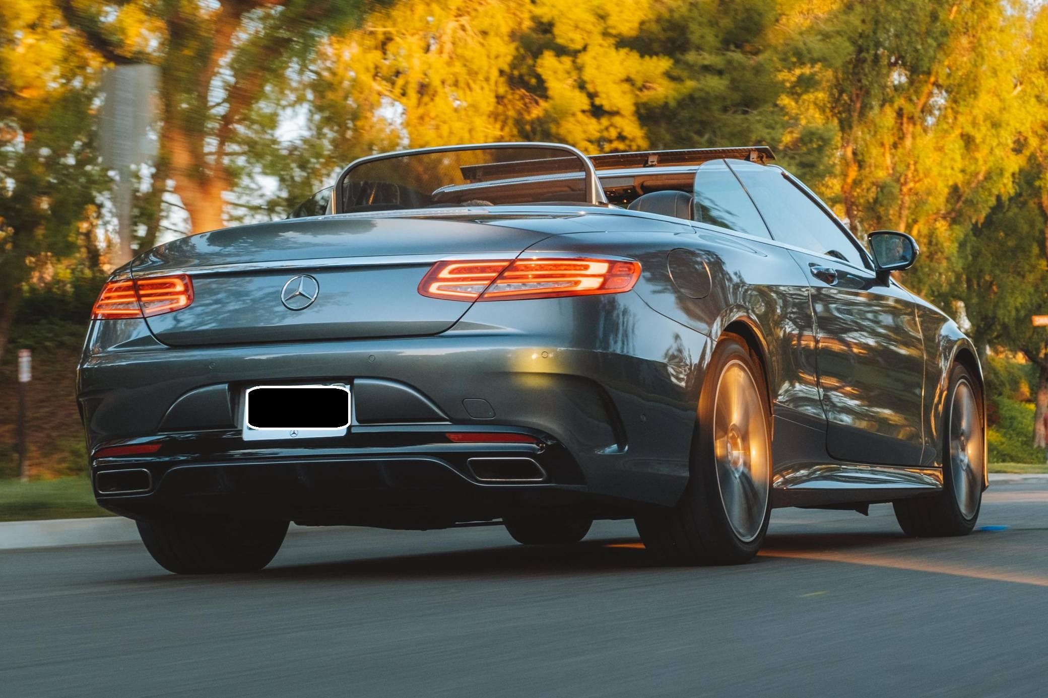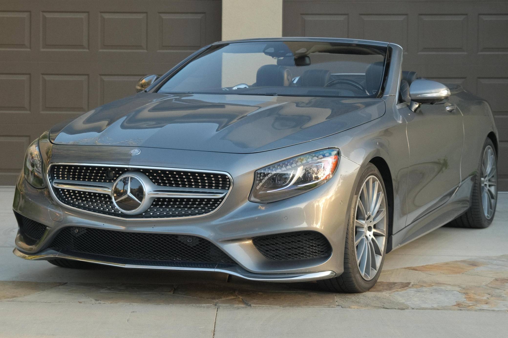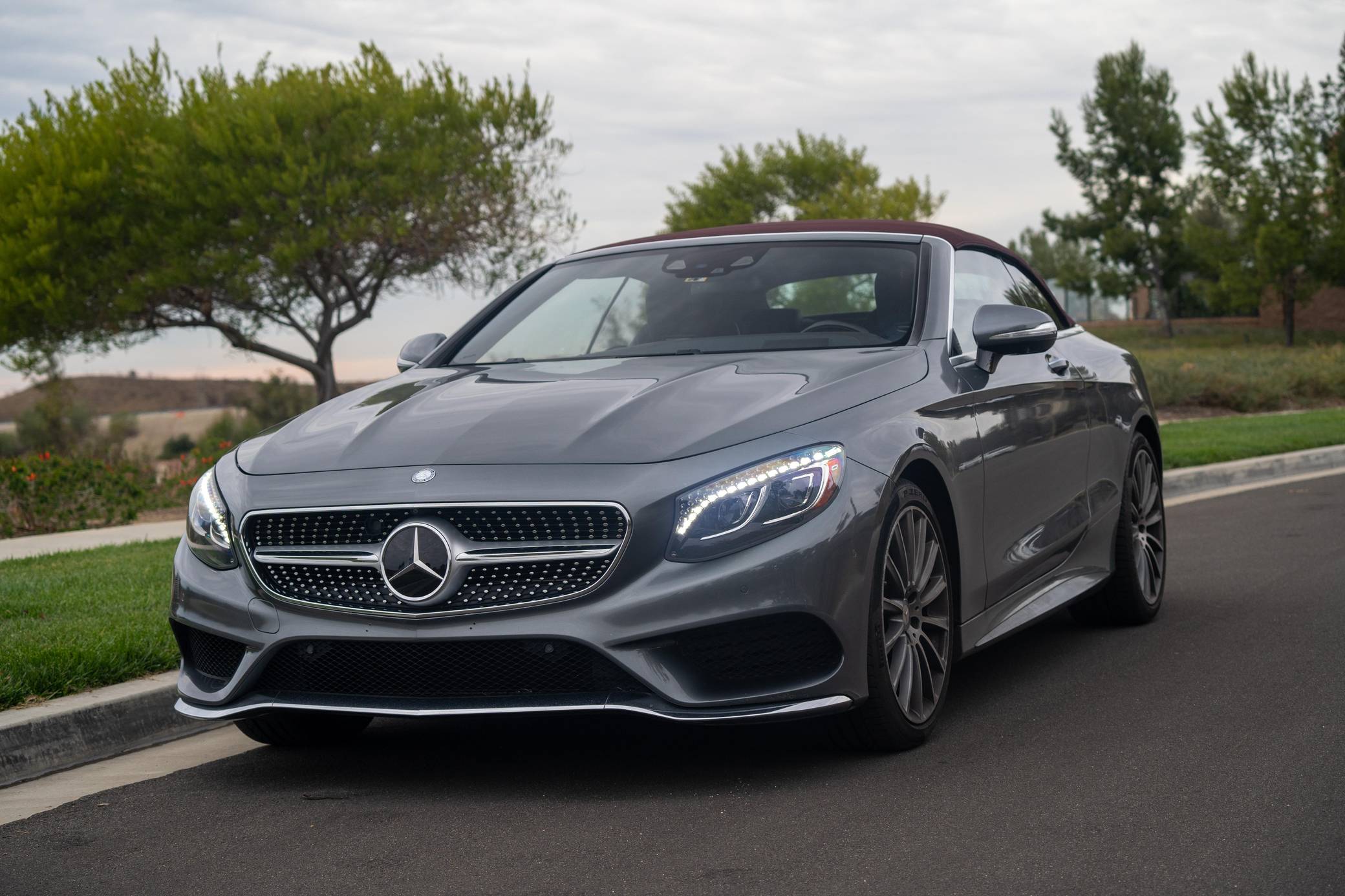 2017 Mercedes-Benz S550 Cabriolet, finished in Selenite Gray Metallic with a Dark Red soft top and a black interior. Factory equipment includes the Premium, Sport, Warmth and Comfort, and Driver Assistance packages, 20-inch wheels, LED headlights with Swarovski Crystal accents, a Burmester High-End 3D Sound system, and more as detailed below. No modifications have been reported by the seller. Mercedes-Benz released the S-Class Coupe (called C217 internally) for 2015 to replace the CL. Also offered as a convertible, the two-door S-Class offered the same level of luxury, performance, and technology as the four-door model in a smaller and sportier package. 2017 brought a 9-speed automatic transmission to the S550 model, and production ended in 2020. Neither body style was replaced. Power comes from an “M278” 4. 7-liter twin-turbocharged V8, rated at 449 horsepower and 516 lb-ft of torque. Output is sent to the rear wheels via a 9-speed automatic transmission.
