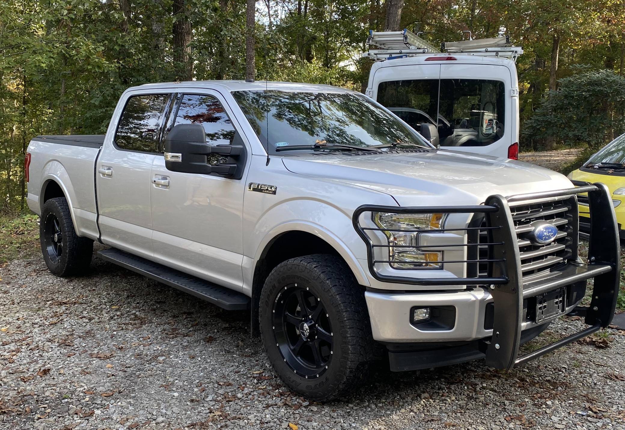 2017 Ford F-150 Lariat 4x4 SuperCrew, finished in Ingot Silver with a black interior. This F-150 is equipped with a supercharged 5. 0-liter Coyote V8 crate engine. Equipped with the FX4 Off-Road Package (Underbody skid plates, Hill Descent Control, locking rear differential), Trailer Tow Package, Lariat Sport Appearance Package, leather upholstery, heated and cooled, power-adjustable front seats, and more as detailed below. A partial list of other modifications reported by the seller includes a Whipple supercharger, intake, and intercooler, an AFE exhaust system with high-flow catalytic converters, a heavy-duty torque converter, a Lund Racing SCT tune, high-output fuel injectors, Bilstein 5100 adjustable shocks, 20-inch Hostile alloy wheels, and an aftermarket brush guard. The venerable F-Series trucks have been a perennial favorite since the F-100 was introduced in 1953. Between their customizability, capability, and durability, Ford's standard-duty trucks can be configured for any task that can be thrown at them. Power comes from a supercharged 5. 0-liter V8 crate engine. The seller claims the modifications enable the truck to produce 750 horsepower at the wheels, though a dyno sheet was not provided to confirm. Output is sent to the rear or all four wheels through a 6-speed automatic transmission and a 2-speed transfer case.