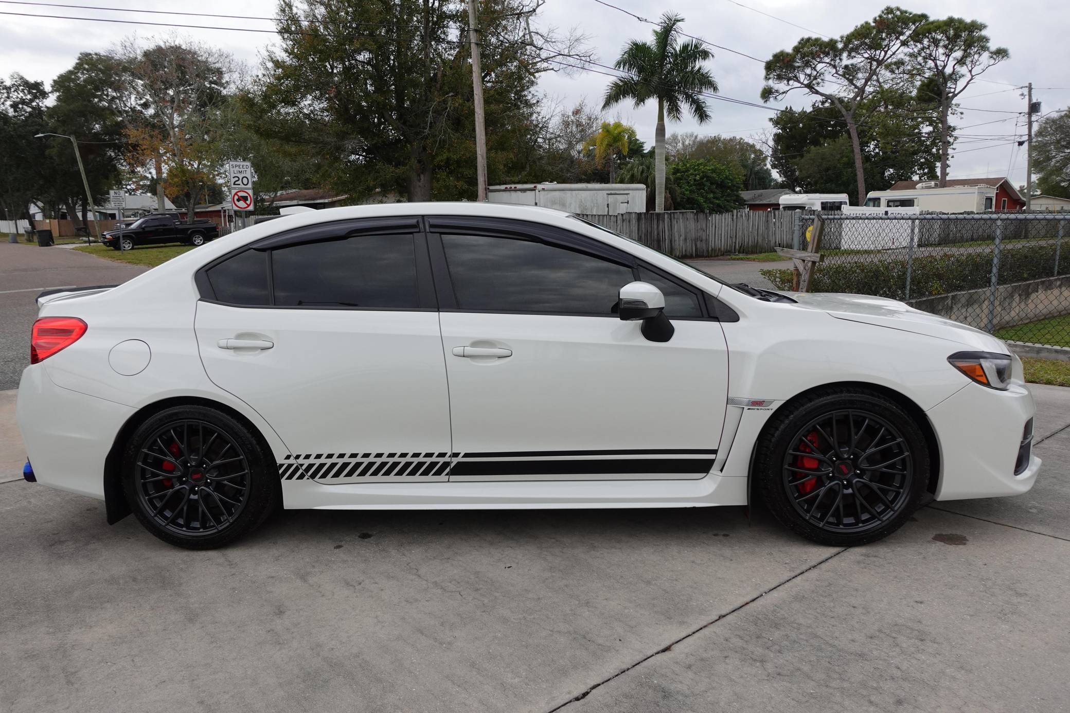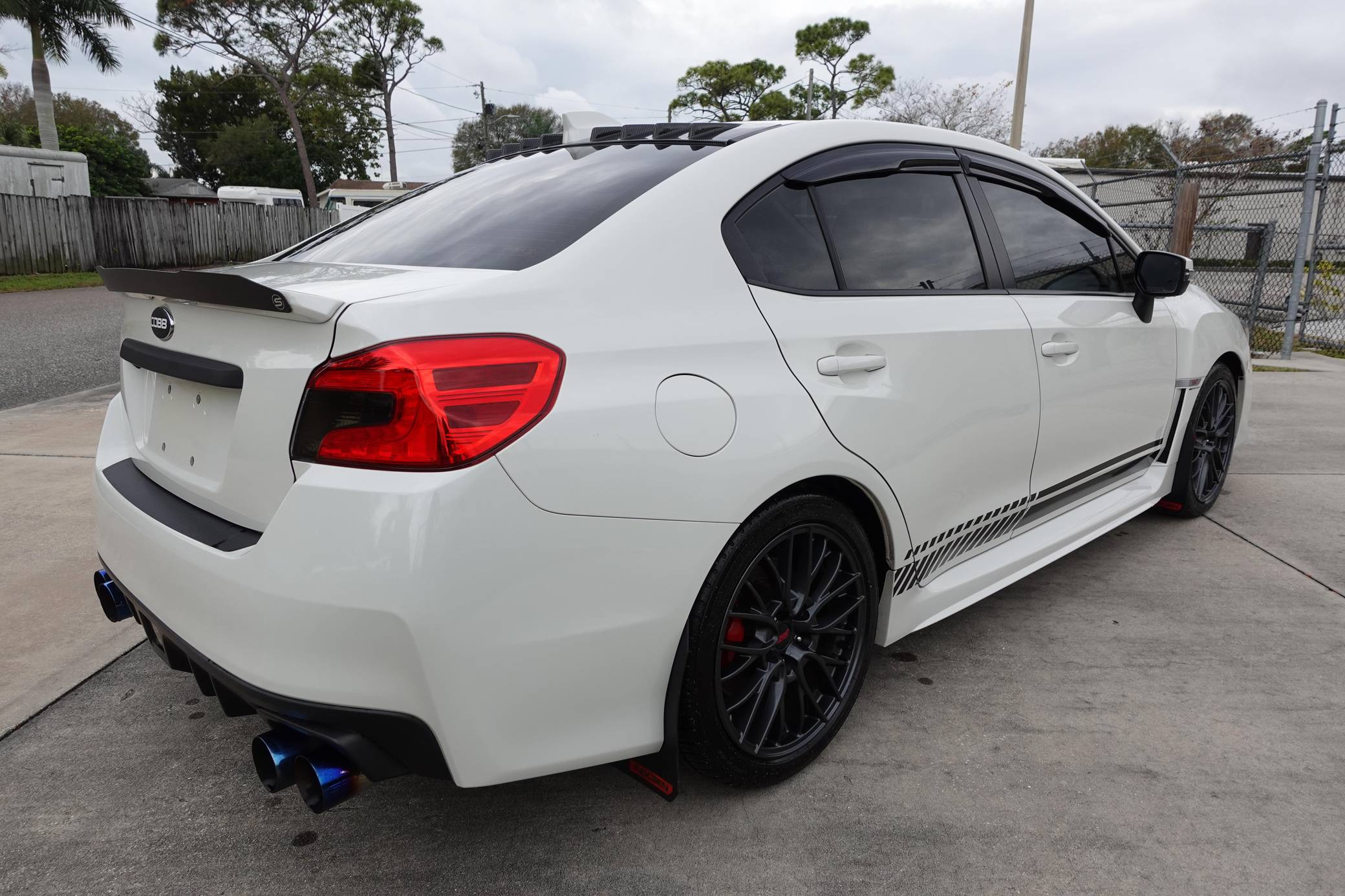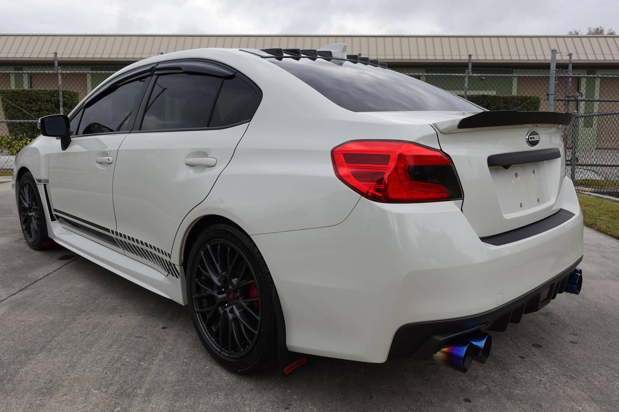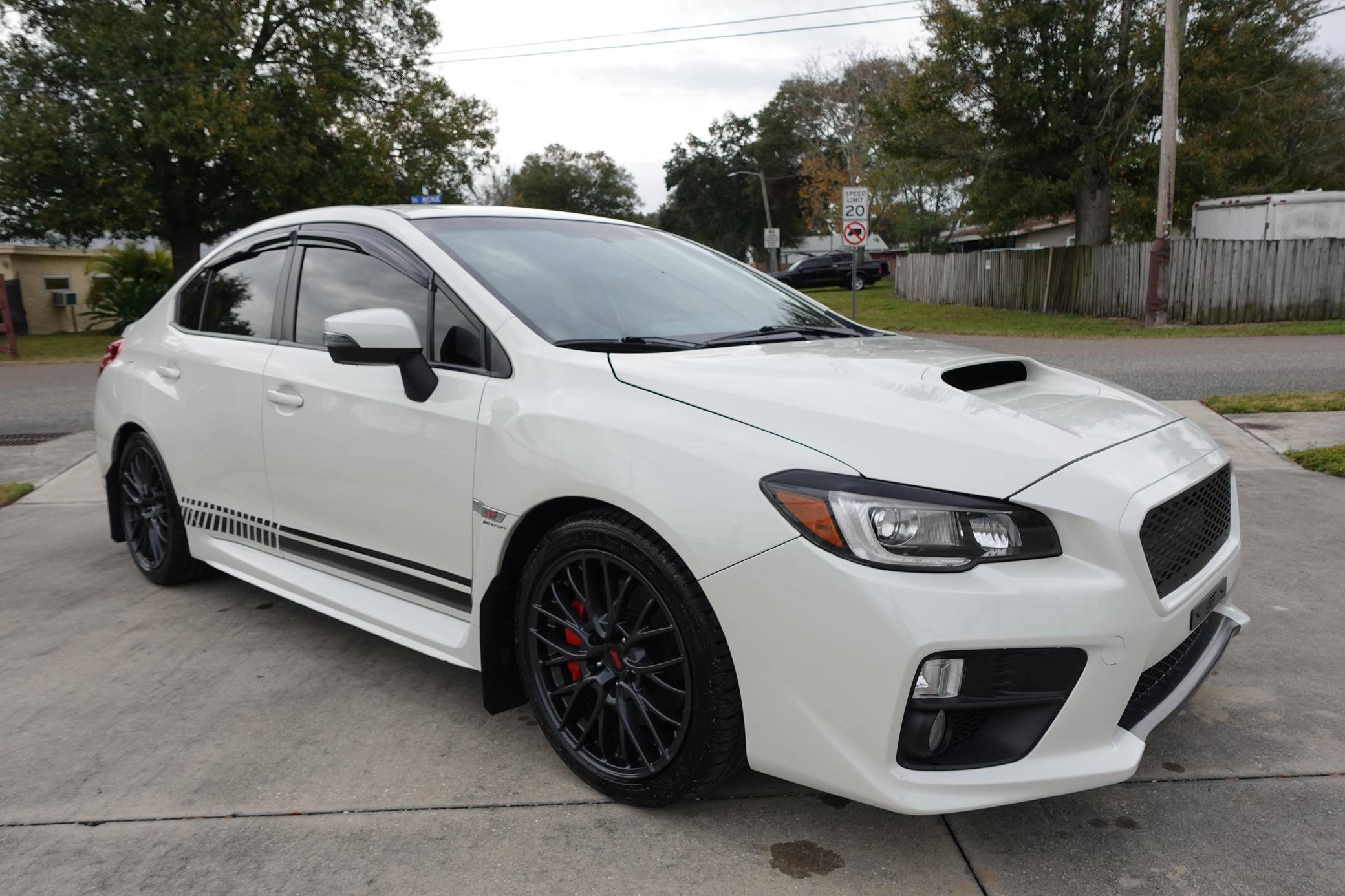 2017 Subaru WRX STI, finished in Crystal White Pearl with a black and red interior. Factory equipment includes 18-inch wheels, Alcantara and leather upholstery, red contrast stitching, heated front seats, and an automatic climate control system. This car's build sheet is shown in the gallery. Modifications reported by the seller include COBB Tuning turbo kit, a COBB Tuning electronic boost controller, a 4-inch SRS full Catback exhaust with blue tips, a SCAD grille, tinted rear lights, and an Android head unit. More details about the aftermarket parts installed on this car are provided below. Launched for the 2015 model year, the "VA"-generation WRX and WRX STI were split from the Impreza that they were based on. They became standalone models, not merely sportier evolutions of a compact car, and their new identity was accompanied by a more muscular-looking design plus the assortment of engine and chassis tweaks fans expected. Power comes from an "EJ257" 2. 5-liter turbocharged flat-4 engine, rated at 305 horsepower and 290 lb-ft of torque when left stock. The modifications likely increase those figures, but no dyno sheet was provided to confirm. It delivers power to all four wheels via a 6-speed manual transmission.