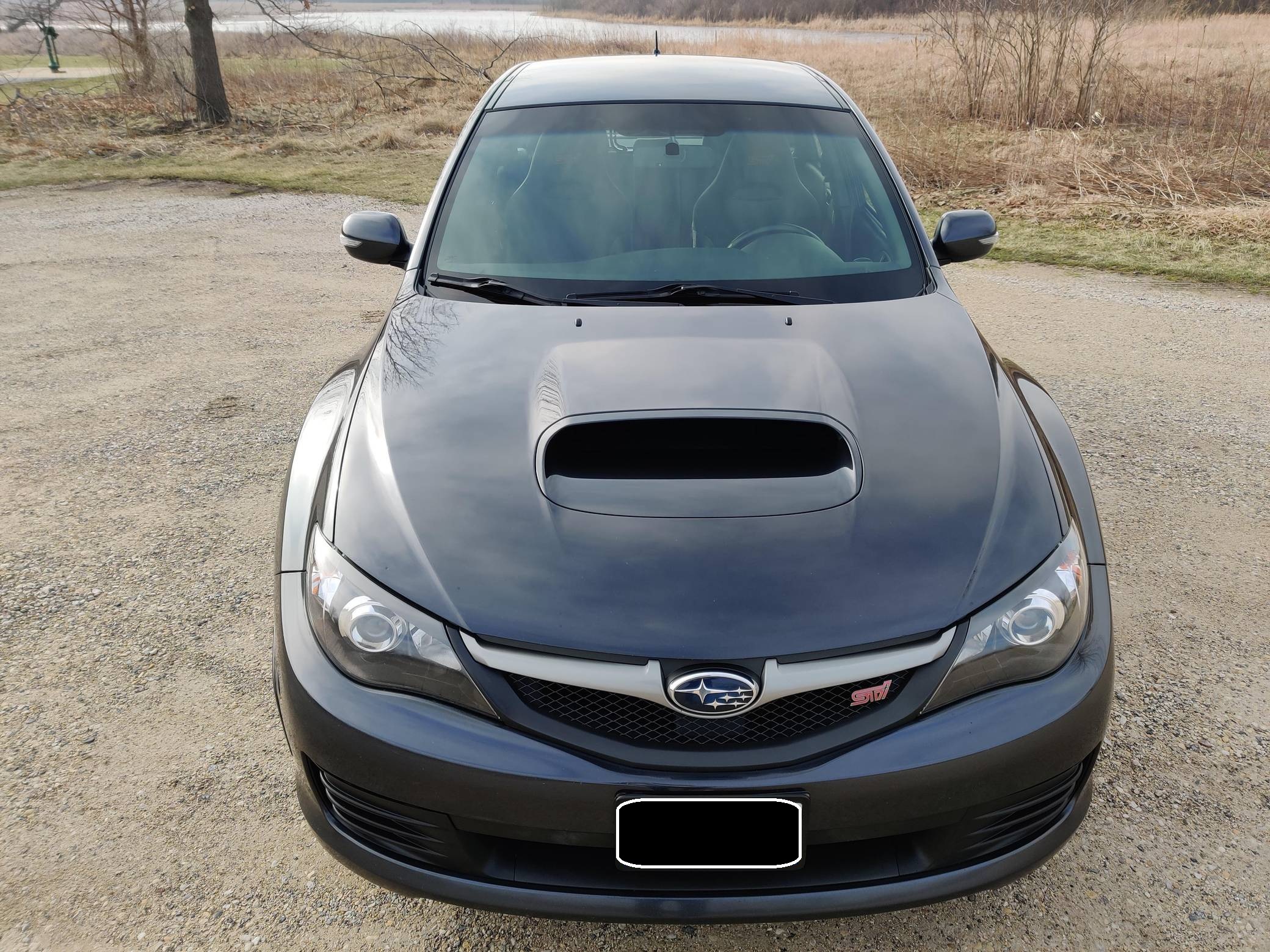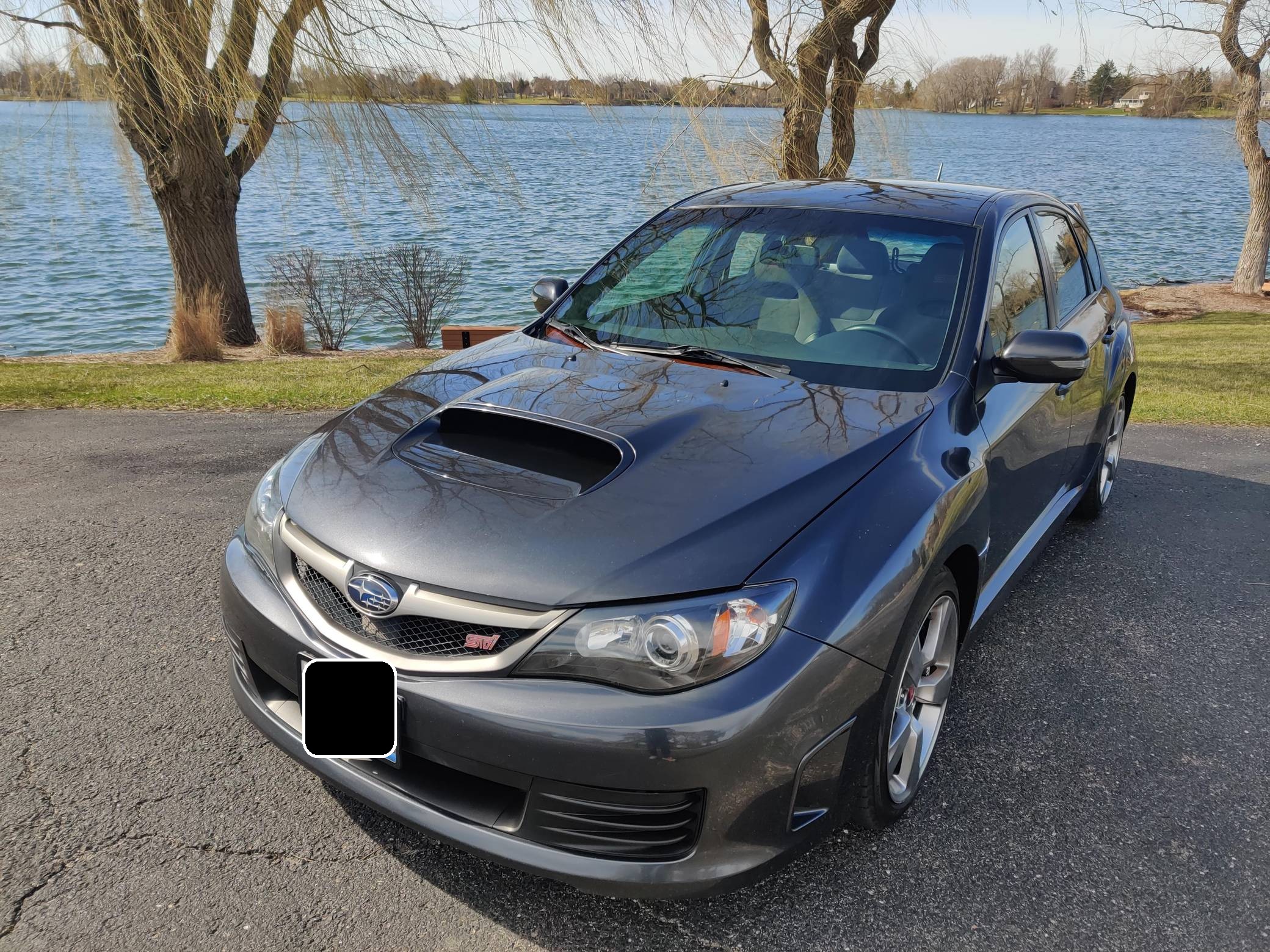2009 Subaru Impreza WRX STI, finished in Dark Gray Metallic with a black interior. A partial list of notable equipment includes 18-inch alloy wheels, symmetrical all-wheel drive system, driver-controlled center differential, front and rear limited-slip differentials, Brembo high performance braking system, STI performance designed front seats, an auto-dimming rear-view mirror with compass, and more listed below. Modifications to this STI are extensive, and the full list is detailed below. include a Cobb Tuning TD05H-20G-8 turbocharger, a P&L Motorsports PS1 short block with CP-Carrillo high performance pistons and rings, a GReddy Supreme SP cat-back exhaust system, and an ACT Xtreme Duty Performance Street Disc clutch kit. Based on the third-generation Impreza, the WRX STI was introduced in the U. S. market in 2008 as the rally-inspired high-performance variant of the model lineup. It featured a larger displacement turbocharged engine, a wider track with flared fenders, aluminum suspension components, Subaru Intelligent Drive (SI-Drive) with intelligent, sport, and sport sharp modes, a multi-mode Driver Controlled Center Differential (DCCD), a Brembo brake system, and 18-inch forged alloy wheels. Power comes from an "EJ257" 2. 5-liter turbocharged flat-4, rated at 305 horsepower and 290 lb-ft of torque in stock form. Due to the modifications performed to this STI, it makes 420 horsepower and 352 lb-ft of torque at the wheels on E70 fuel, according to a dyno sheet shown in the gallery. The engine spins all four wheels via a 6-speed manual transmission and symmetrical all-wheel-drive system.