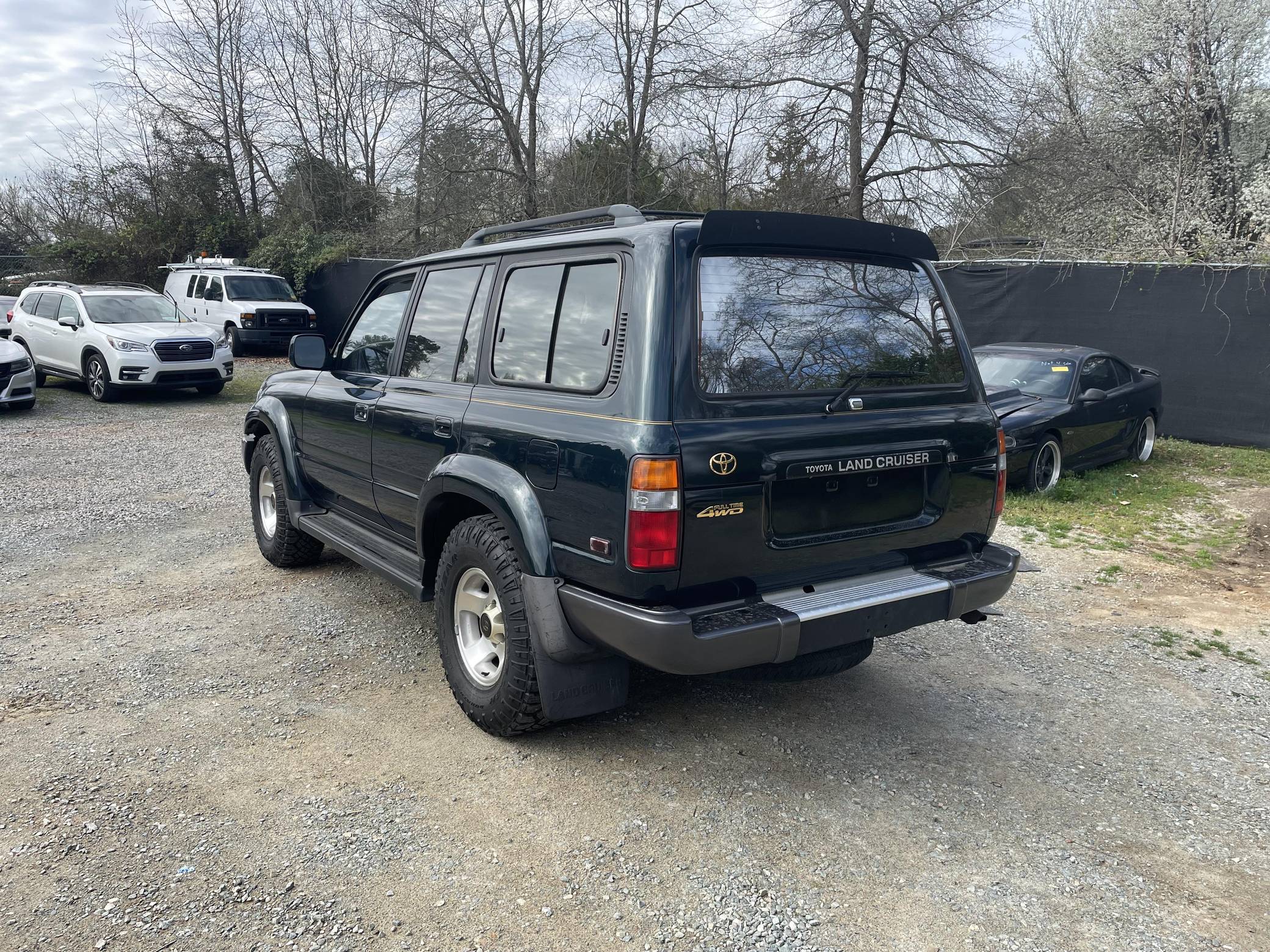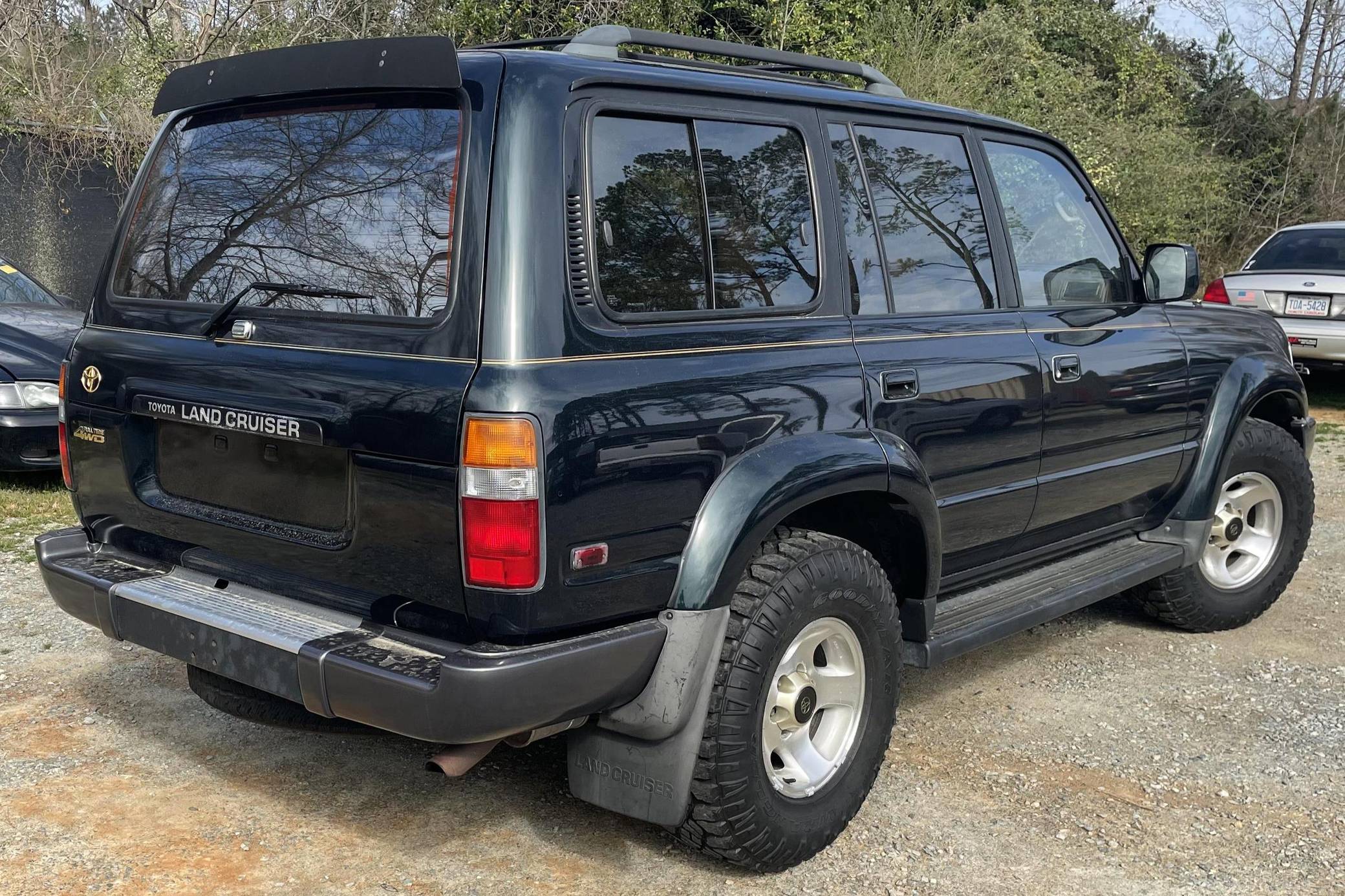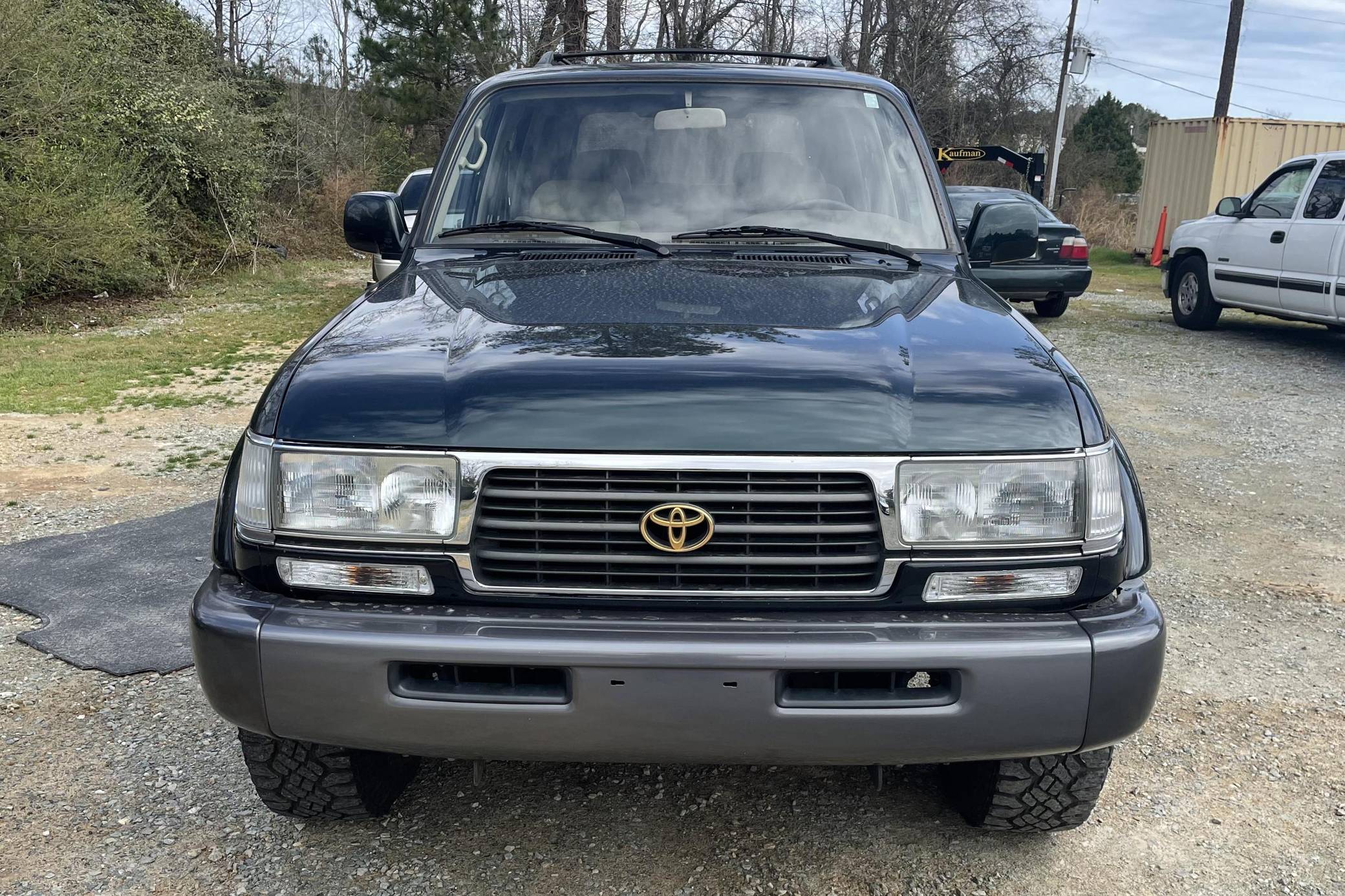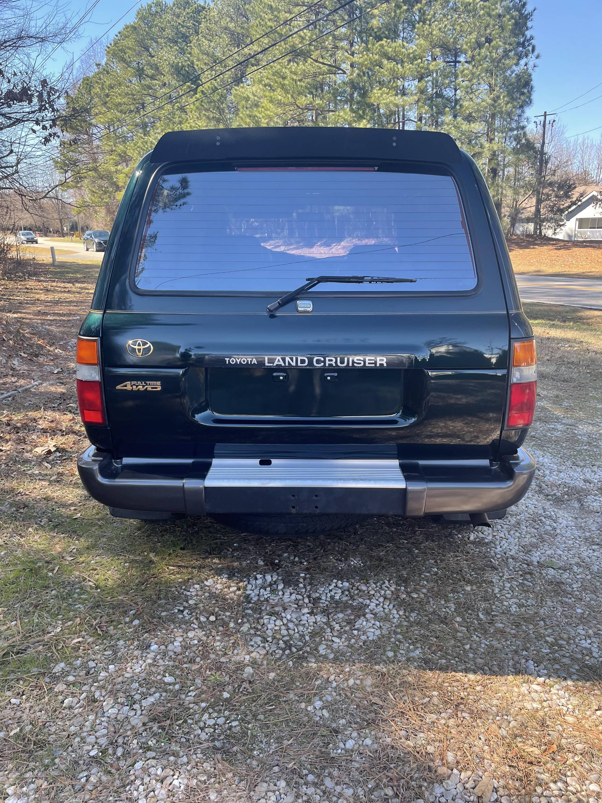 THIS. . . is a 1996 Toyota Land Cruiser, finished in Dark Emerald Pearl with a tan interior. Factory equipment includes front, center, and rear locking differentials, 16-inch alloy wheels, the Towing Package, the Gold Trim Package, a roof rack, and more. Modifications are limited to white corner and turn indicator lights, and a JVC head unit. Service documentation included in the photo gallery shows that the seller replaced the valve cover gasket, rear differential 4WD actuator, and PCV valve in March 2022. The seller also reports painting the roof, cowl, tailgate, and three of the fender flares. The "80-Series" Land Cruiser was the last offered to the U. S. market with solid front and rear axles, straight-six power, and available locking front and rear differentials. For the 1993 model year, the "FZJ80" would be introduced with Toyota's new "1FZ-FE" engine. A major update for 1995 brought a new dash design with dual airbags and more convenient controls. Power comes from a 4. 5-liter inline-6, which was factory-rated at 212 horsepower and 275 lb-ft of torque when new. A four-speed automatic transmission and a full-time four-wheel-drive system mated to a 2-speed transfer case deliver power to all four wheels.