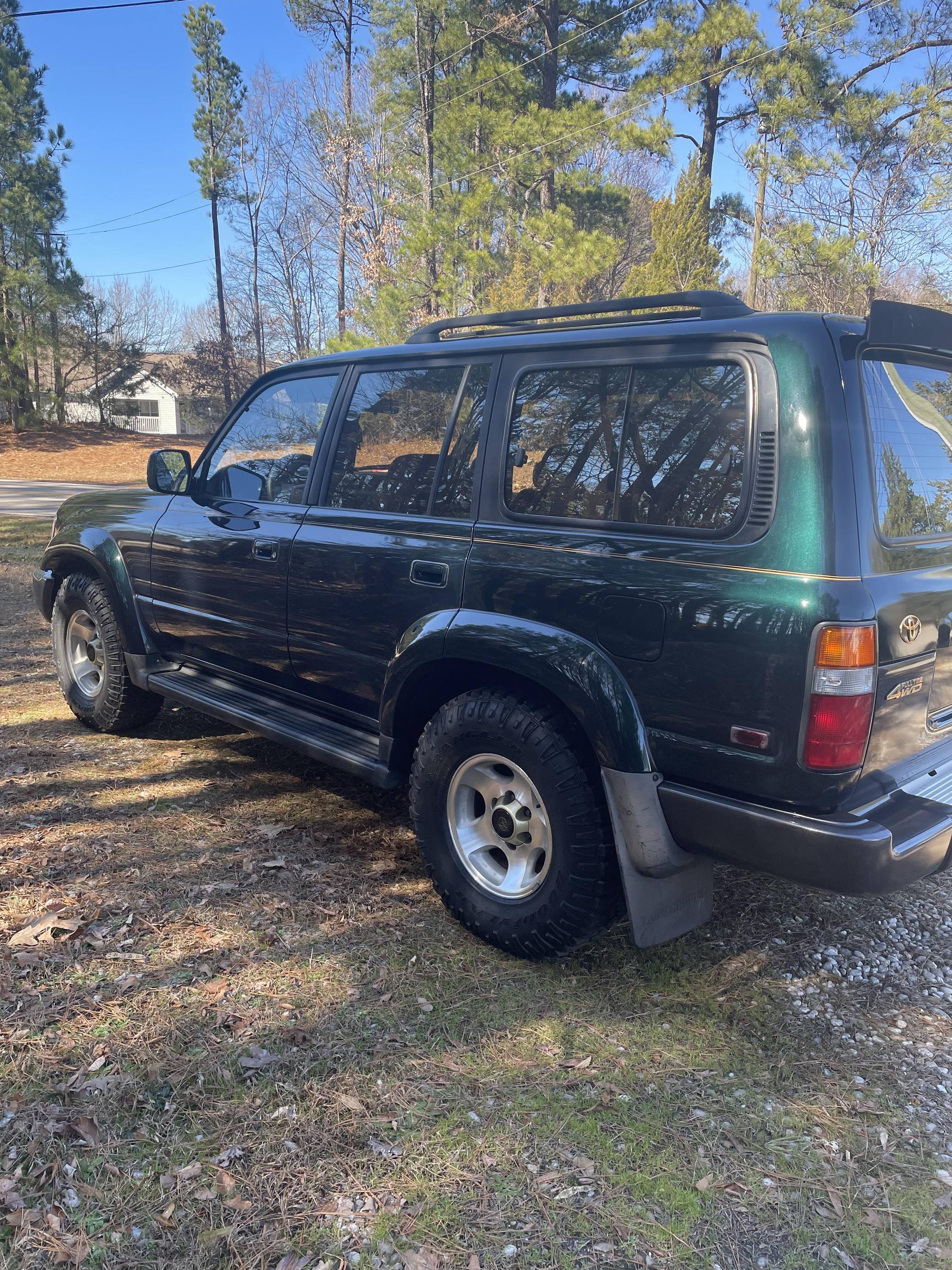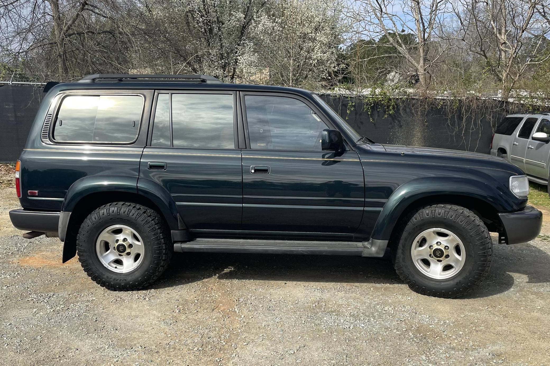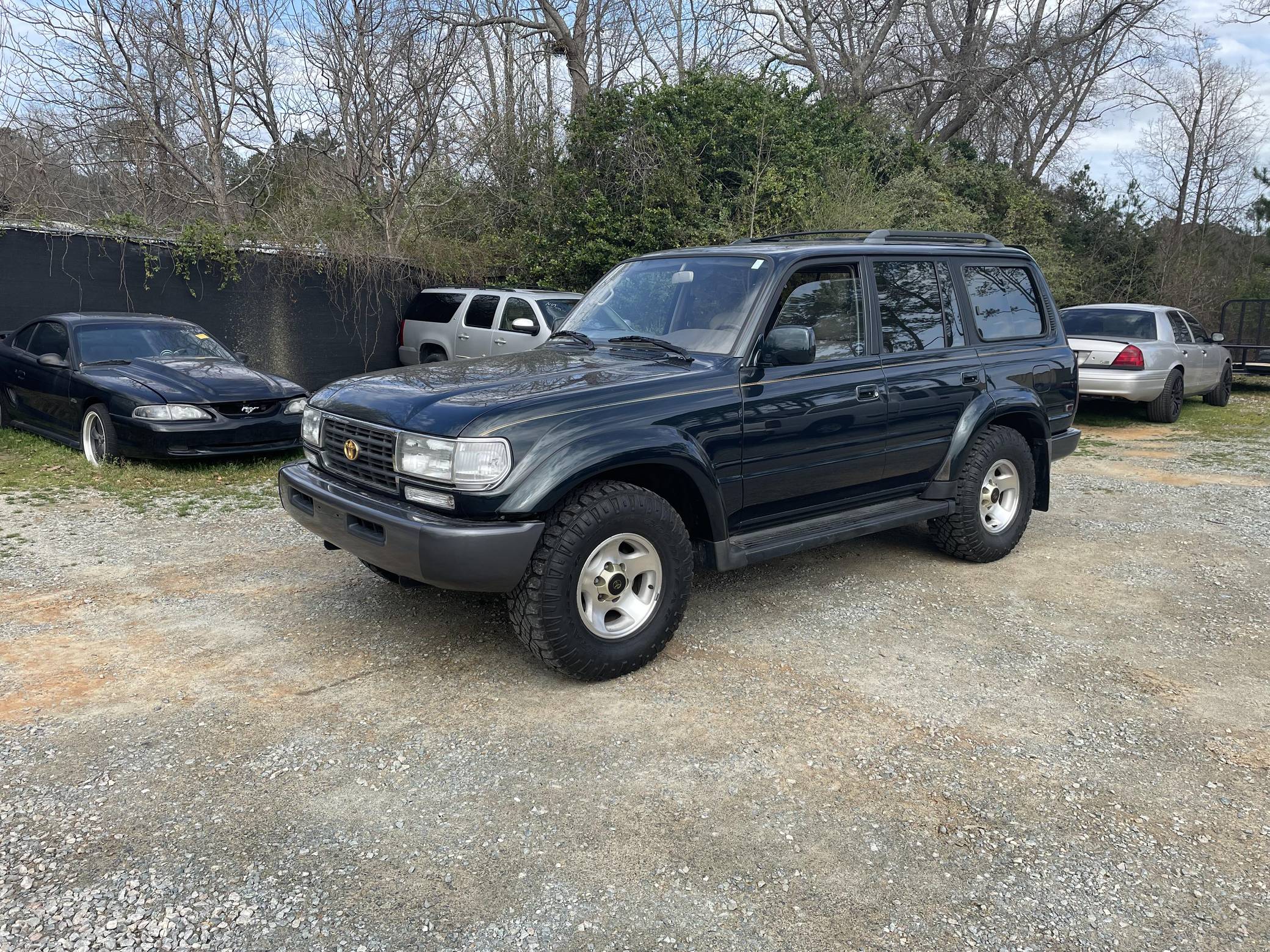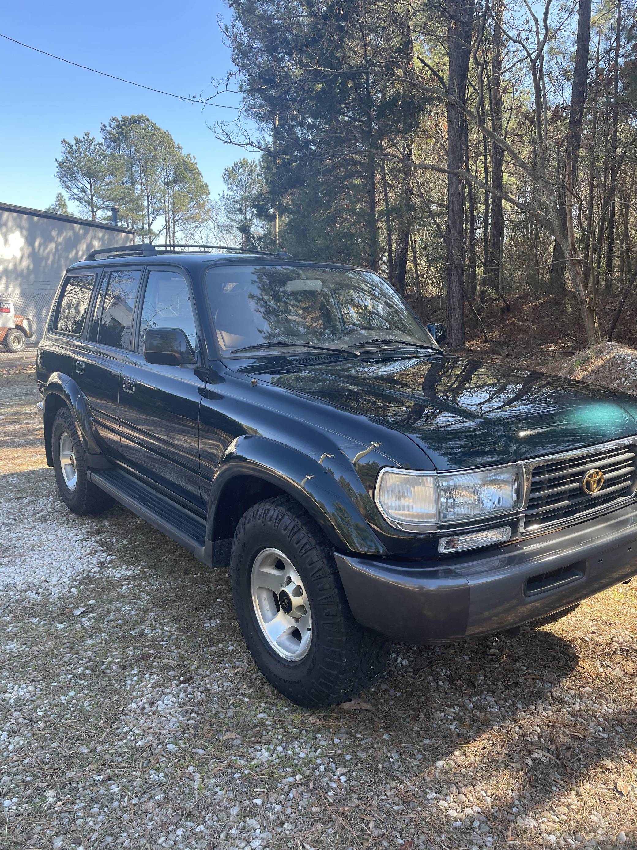 THIS. . . is a 1996 Toyota Land Cruiser, finished in Dark Emerald Pearl with a tan interior. Factory equipment includes front, center, and rear locking differentials, 16-inch alloy wheels, the Towing Package, the Gold Trim Package, a roof rack, and more. Modifications are limited to white corner and turn indicator lights, and a JVC head unit. Service documentation included in the photo gallery shows that the seller replaced the valve cover gasket, rear differential 4WD actuator, and PCV valve in March 2022. The seller also reports painting the roof, cowl, tailgate, and three of the fender flares. The "80-Series" Land Cruiser was the last offered to the U. S. market with solid front and rear axles, straight-six power, and available locking front and rear differentials. For the 1993 model year, the "FZJ80" would be introduced with Toyota's new "1FZ-FE" engine. A major update for 1995 brought a new dash design with dual airbags and more convenient controls. Power comes from a 4. 5-liter inline-6, which was factory-rated at 212 horsepower and 275 lb-ft of torque when new. A four-speed automatic transmission and a full-time four-wheel-drive system mated to a 2-speed transfer case deliver power to all four wheels.