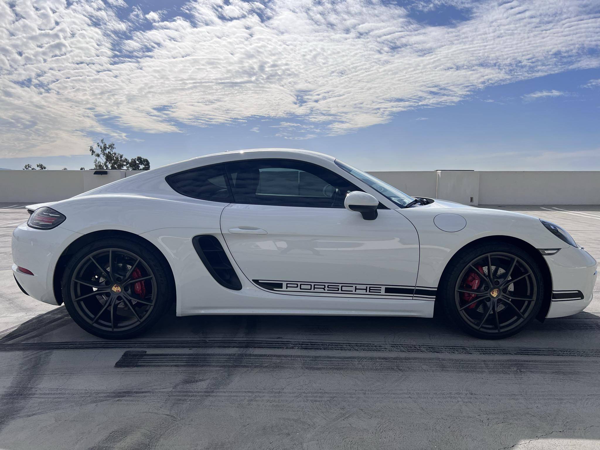 THIS… is a 2018 Porsche 718 Cayman S, finished in white with a black interior. This Cayman features the desirable 6-speed manual transmission, and its odometer currently displays about 8,500 miles. Modifications reported by the seller are limited to tinted windows. The "982" generation 718 Cayman debuted for the 2017 model year as an evolution on the Cayman nameplate, with the "718" designation paying homage to Porsche's 718 race cars from the 1950s. The model's powerplant was updated with a turbocharged 4-cylinder engine, and the result was a more powerful and more efficient car than its predecessor. Power comes from a 2. 5-liter turbocharged flat-4, rated at 350 horsepower and 309 lb-ft of torque. Output is sent to the rear wheels via a 6-speed manual transmission.