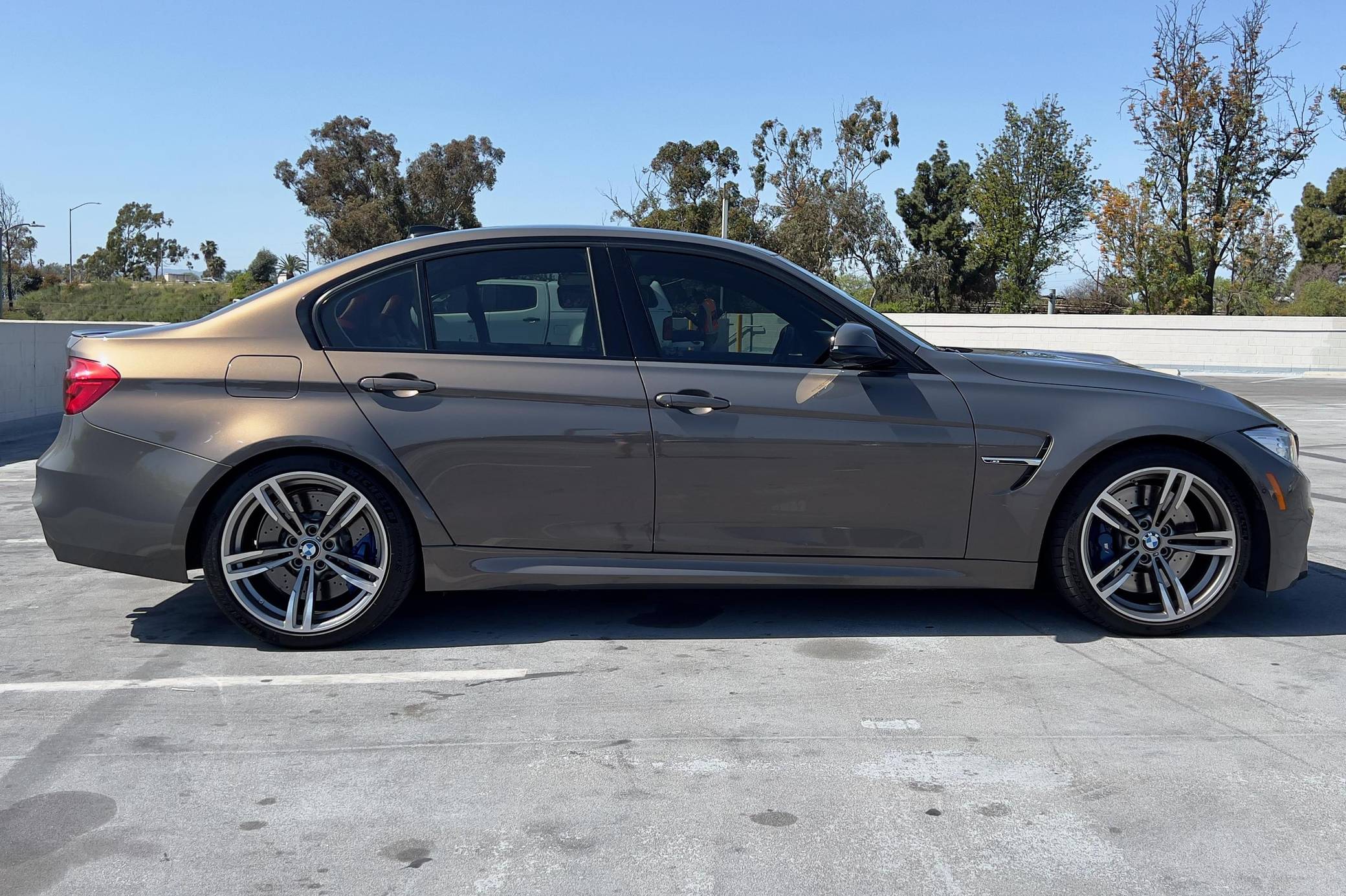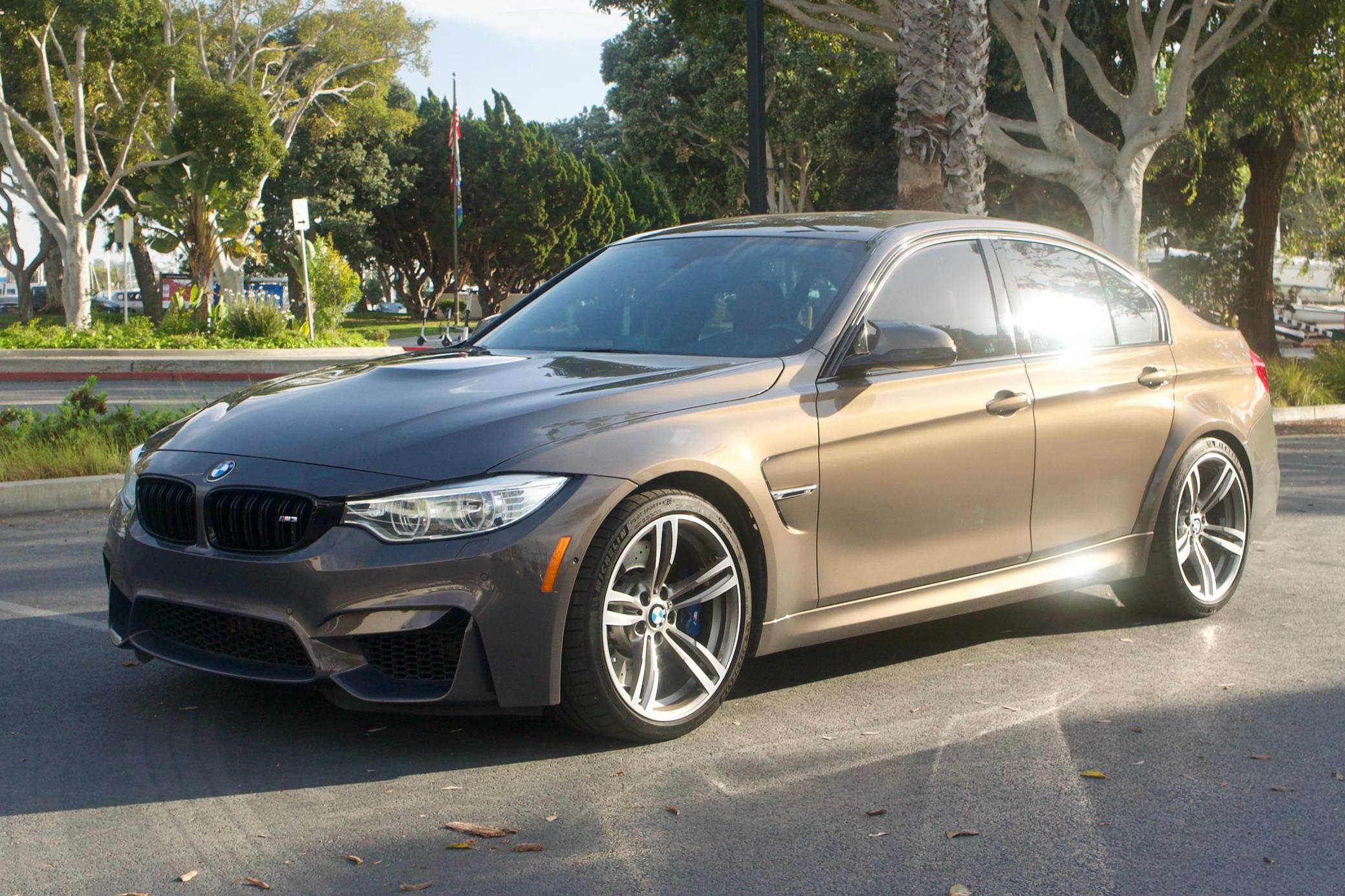 2016 BMW M3, finished in BMW Individual Campagne Quartz Metallic with a Sakhir Orange interior. This M3 features the desirable 6-speed manual transmission. Factory equipment includes the Executive and Lighting packages, adaptive M suspension, a carbon-fiber roof, full Merino leather upholstery, a Harman Kardon surround sound system, and more as detailed below. Modifications reported by the seller include ceramic windshield tint, 30% window tint on the side and rear windows, black kidney grilles, and a 2017+ factory NBT EVO ID6 with native wireless Apple CarPlay compatibility. After the high-revving V8 of the prior generation, the F80 M3's return to an inline-6 was a breath of recirculated, torque-filled air. The twin-turbo S55 engine is rated at only 9 more horsepower than the E90's eight-pot, but trading two cylinders for turbochargers raises torque by a meaty 111 lb-ft. With power oversteer essentially available on demand, the F80 provides an entirely different driving experience from any previous M3. Power comes from an "S55" 3. 0-liter twin-turbocharged inline-6, rated at 425 horsepower and 406 lb-ft of torque. Output is sent to the rear wheels via a 6-speed manual transmission.