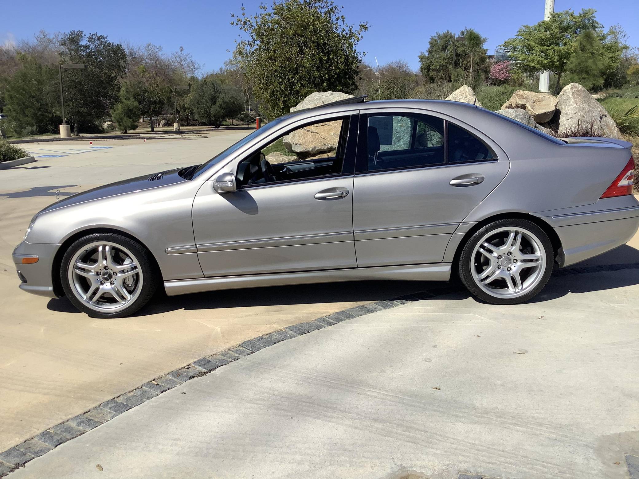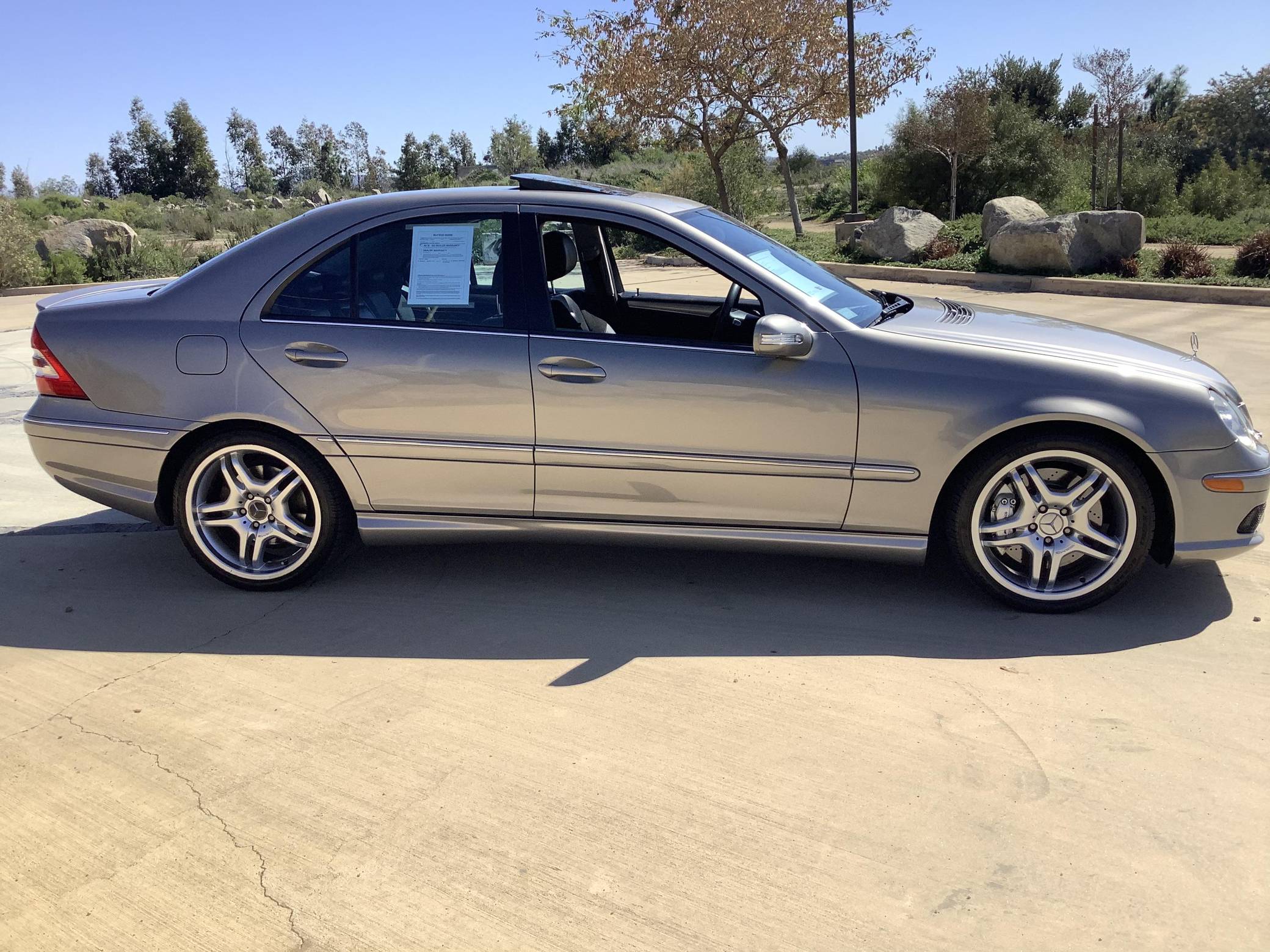 2006 Mercedes-Benz C55 AMG, finished in Cubanite Silver with a black interior. This sedan's odometer displays about 31,000 miles. Unmodified, this C55 is equipped with 18-inch wheels, an AMG-specific body kit, bi-xenon headlights, a sunroof, heated and power-adjustable front seats, a rear sunshade, and a navigation system, among other features. This sedan's build sheet is pictured in the gallery. Launched for 2005 to replace the supercharged V6-powered C32, the C55 was the quickest and most powerful variant of the "W203" C-Class. It benefited from a naturally-aspirated V8, bigger brakes, and a firmer suspension system, among other performance-oriented modifications. Its exterior design remained relatively subtle. Mercedes-Benz sold 1,299 units of the C55 for 2005 and 451 units for 2006, according to enthusiast website MB World, bringing the total number to 1,750. Power comes from a 5. 4-liter V8, rated at 362 horsepower and 376 lb-ft of torque. Called "M113" internally, it spins the rear wheels via a 5-speed automatic transmission.