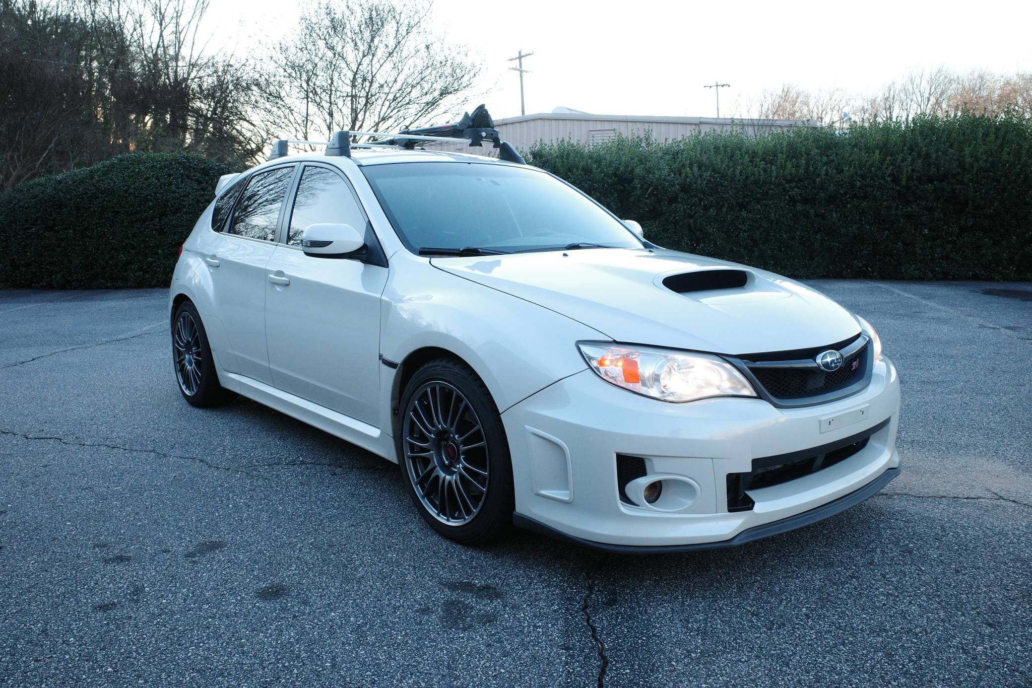 THIS. . . is a 2014 Subaru Impreza WRX STI, finished in Satin White Pearl with a black interior. Factory equipment includes the Option Package 10, 18-inch wheels, a sport-tuned suspension system, limited-slip front and rear differentials, a driver-controlled center differential, HID headlights, Alcantara and leather upholstery, and heated "Performance Design" front seats. Modifications reported by the seller include a "Stage 1" tune, a COBB Tuning Accessport V3 tuner, an Invidia Q300 exhaust system, and tinted windows, The roof rails, Yakima FrontLoader bicycle rack, and VIOFO A119 hardwired dashcam shown in the gallery are included in the sale. Subaru released the rally-bred WRX STI variant of the third-generation Impreza for the 2008 model year. Initially offered only as a hatchback, the model offered enthusiasts a more powerful engine than its predecessor and it stood out from both the Impreza and the standard WRX with a muscular-looking body kit that included flared wheel arches. 2011 brought a mid-cycle update and production ended in 2014. Subaru hasn't released another STI hatch since. Power comes from a 2. 5-liter turbocharged flat-4 engine, rated at 305 horsepower and 290 lb-ft of torque when left stock. The modifications could increase those figures, but a dyno sheet is not available. The engine spins the four wheels via a 6-speed manual transmission.