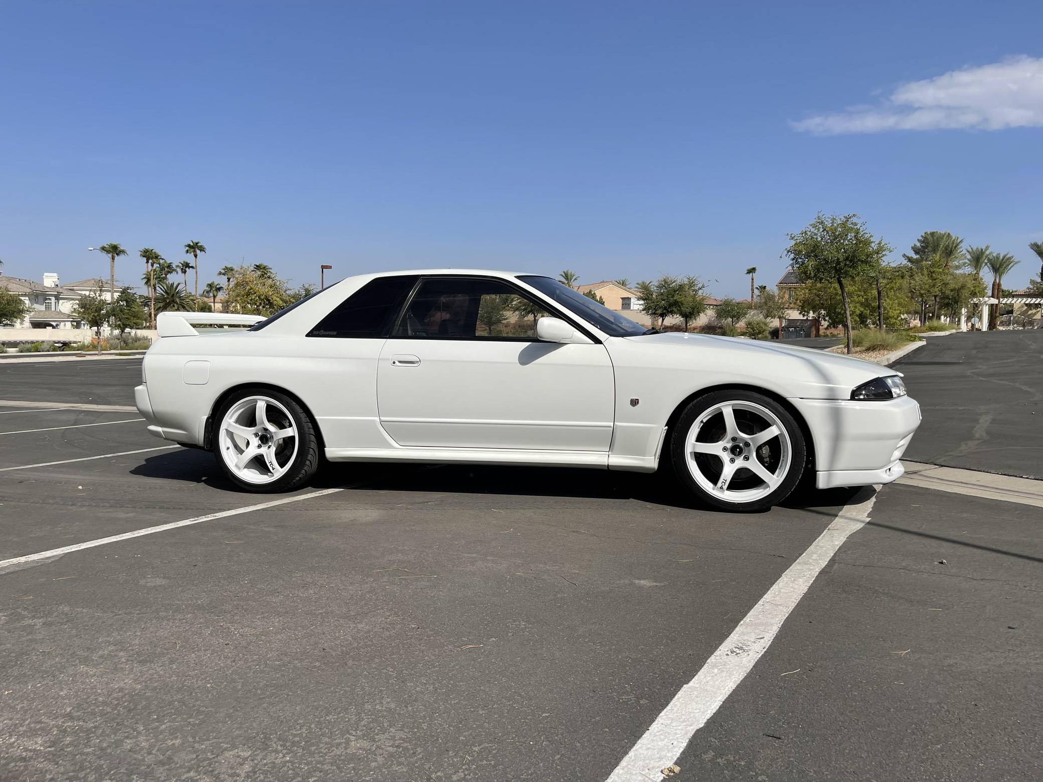 THIS. . . is a 1993 Nissan Skyline GT-R, finished in white with a gray interior. It has a metric instrument cluster, and the odometer currently indicates about 117,900 kilometers, which represents approximately 73,300 miles. Modifications reported by the seller are extensive, and the full list is detailed below. include 18-inch Advan TC4 wheels, Haltech Platinum PRO engine ECU, catalytic converters removed, HKS GT-SS sport turbos, Gecko Racing coilovers, Recaro seats, Veilside cluster, and an Android head unit, among others listed below. Factory equipment includes the ATTESA all-wheel drive system, a GT-R-specific body kit, a rear window wiper, cloth upholstery, and air conditioning. Called "R32" internally, the 8th-generation Skyline arrived in 1989 with a significantly updated exterior design and a new multi-link front suspension system, among other changes. The big news was the GT-R's long-awaited comeback after a 16-year hiatus with a powerful turbocharged engine, all-wheel drive (a first in the nameplate's history), and an aggressive-looking body kit. While the GT-R was never officially sold in the United States, it became an icon thanks in part to its role in the Gran Turismo franchise. Power comes from a 2. 6-liter twin-turbocharged straight-6, rated at 276 horsepower and 260 lb-ft of torque in stock form. According to the dyno sheet pictured in the gallery, it now produces 467 horsepower and 410 lb-ft of torque. Output is sent to all four wheels via a 5-speed manual transmission.