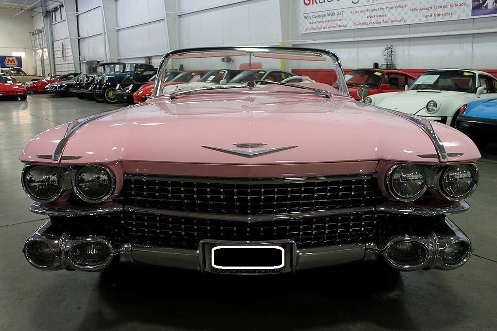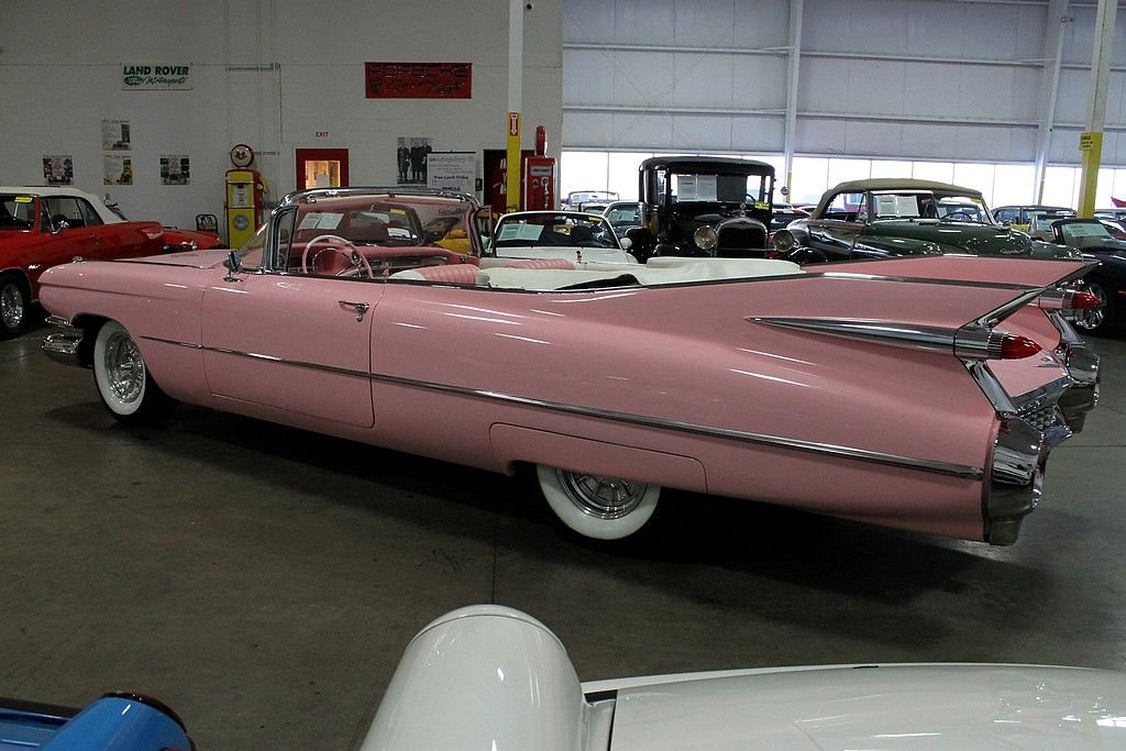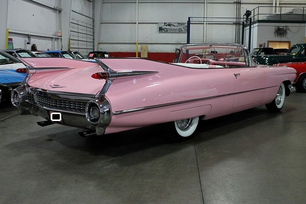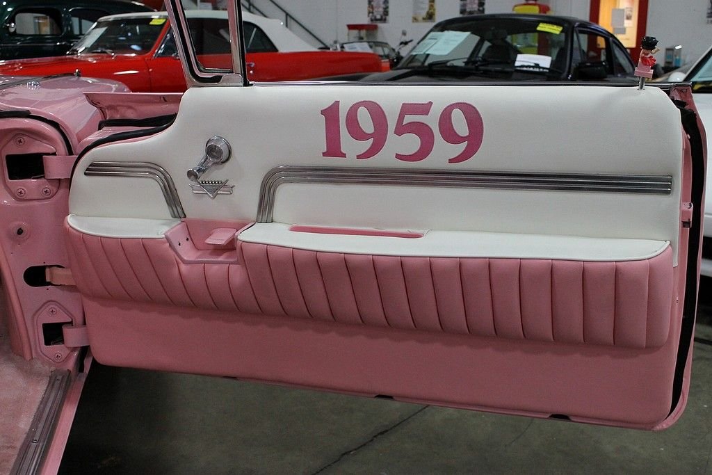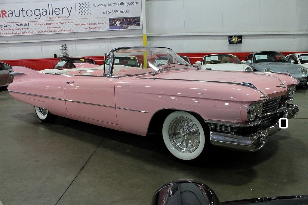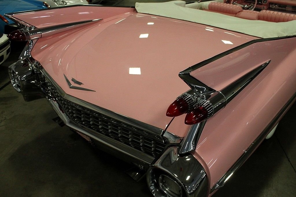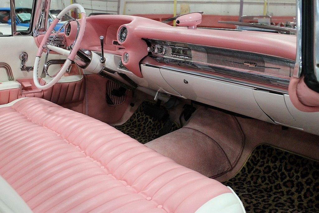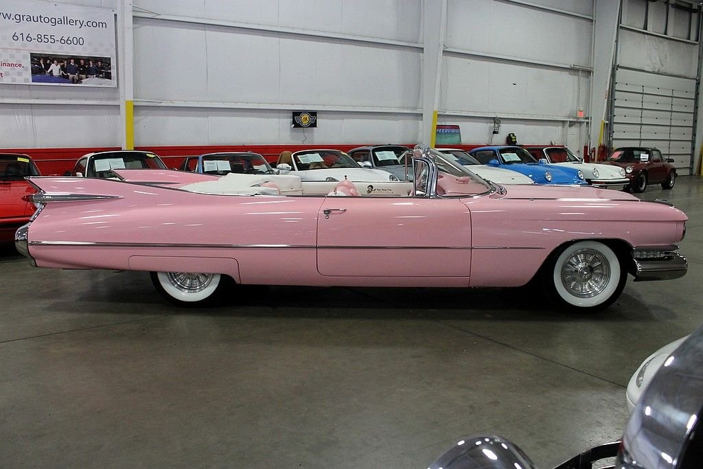 The 59 Cadillac is remembered for its huge sharp tailfins with dual bullet tail lights, two distinctive rooflines & roof pillar configurations, new jewel-like grille patterns, and matching deck lid beauty panels. GM's Bill Mitchell styled these beauties with an eye towards space shuttle cues that make these vehicles such bold statements going down the road. It's incredibly recognizable and the 59 Cadillac line is considered by many as the benchmark of the era with convertibles very highly sought after as collector's items today. Standard equipment included power brakes, power steering, automatic transmission, back-up lamps, wheel disc brakes, power antenna, and outside rear-view mirror. The convertible models came with power windows and a power front bench seat. This Caddy is powered by a rebuilt 350ci V8 engine paired with a 350 turbo transmission. This car was completely restored after coming from Sacramento, California in 2000. It doesn't lack any curb appeal with custom pink paint and custom pink interior. The car was professionally re-chromed and the stainless steel was professionally polished. The frame was treated and sandblasted to bring this car up to near perfect condition. It also features Colorado custom Billet wheels, RV cam, and Coker whitewall radials. This is an awesome find as a California desert car that has been stored in a heated garage since its restoration. Nothing turns heads like a 59 Cadillac!
