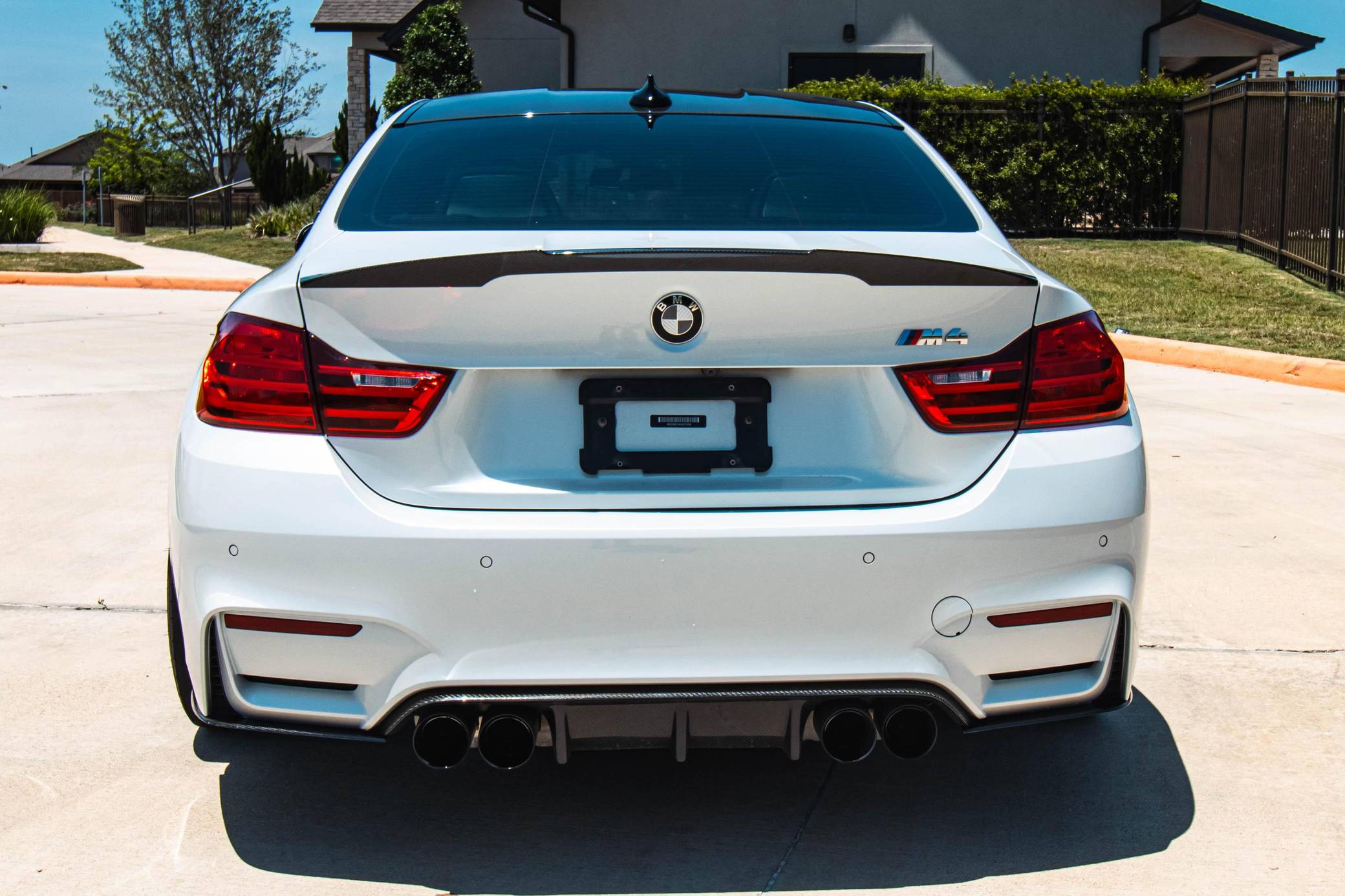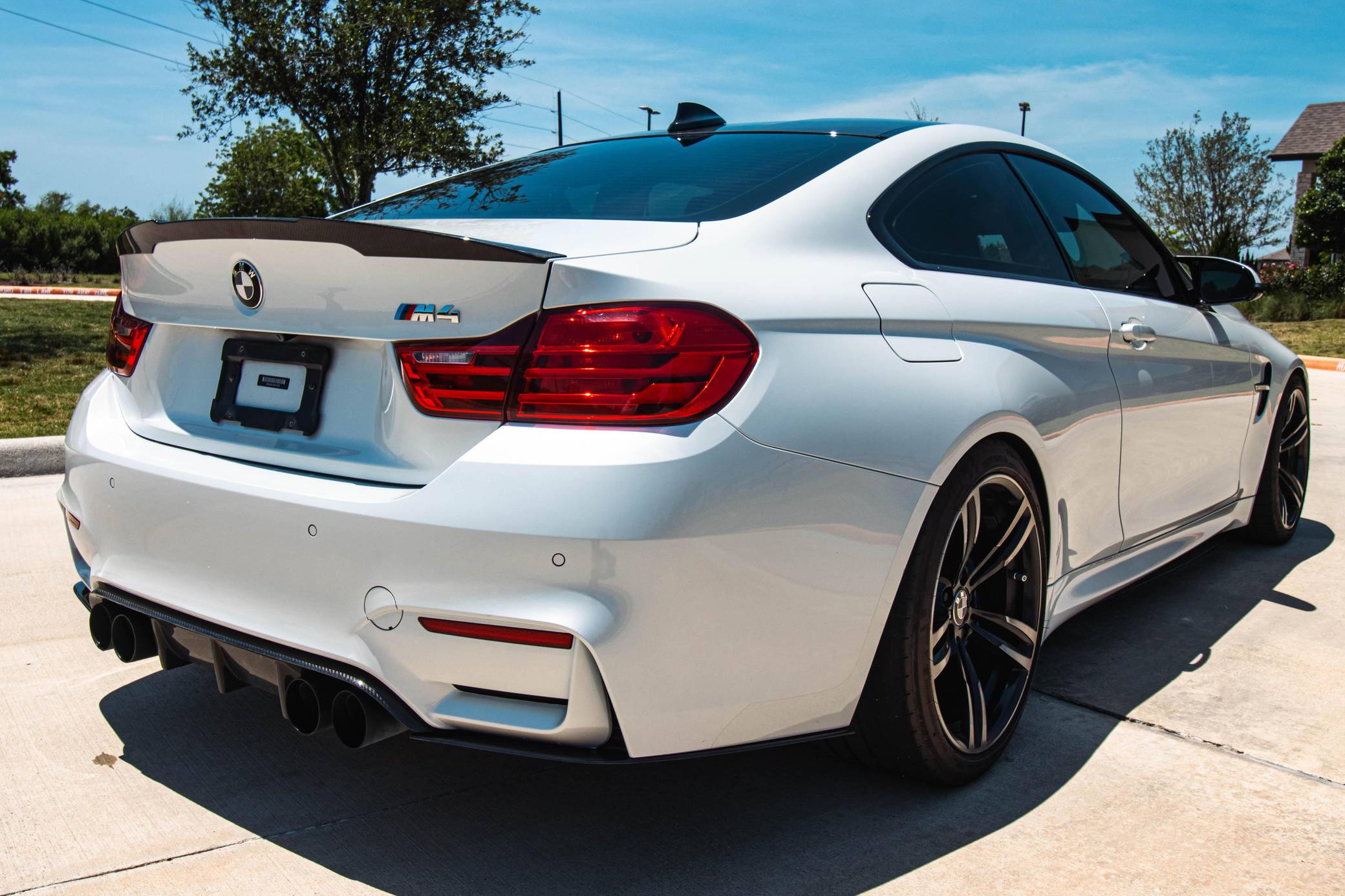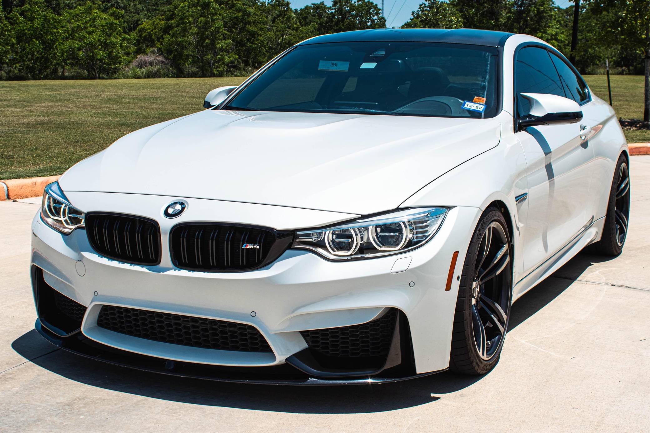 THIS… is a 2016 BMW M4 Coupe, finished in Mineral White with a black interior. According to the build sheet provided in the gallery, factory equipment includes the Executive and Driver Assistance Packages, 18-inch Style 437M wheels, a carbon fiber roof, adaptive LED headlights, black Merino leather upholstery, power-adjustable seats with driver's memory, carbon fiber interior trim, and more as listed below. Modifications reported by the seller include Active Autowerke exhaust tips, H&R lowering springs, wheel spacers, carbon fiber rear spoiler, diffuser, front splitter, carbon-look BMW emblems, and a red engine start/stop button. The "F82" is the first BMW M4 and the successor to the E92 generation of the M3 coupe. The M4 cuts weight by incorporating carbon fiber while delivering exciting performance from a twin-turbo straight-6 engine shared with the "F80" M3 sedan. Power comes from an "S55" 3. 0-liter twin-turbocharged inline-6, rated at 425 horsepower and 406 lb-ft of torque. Output is sent to the rear wheels through a 7-speed dual-clutch automatic transmission.