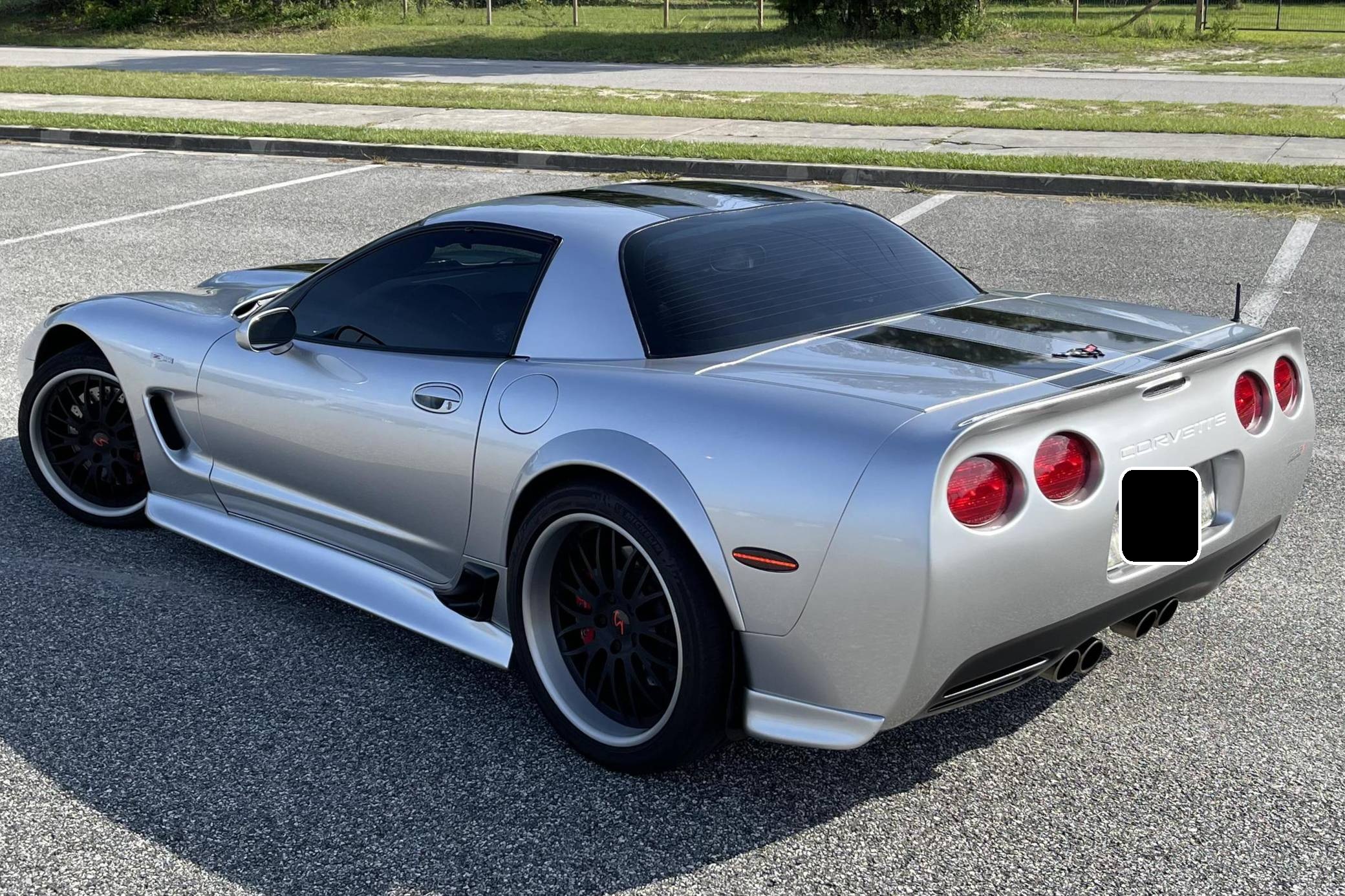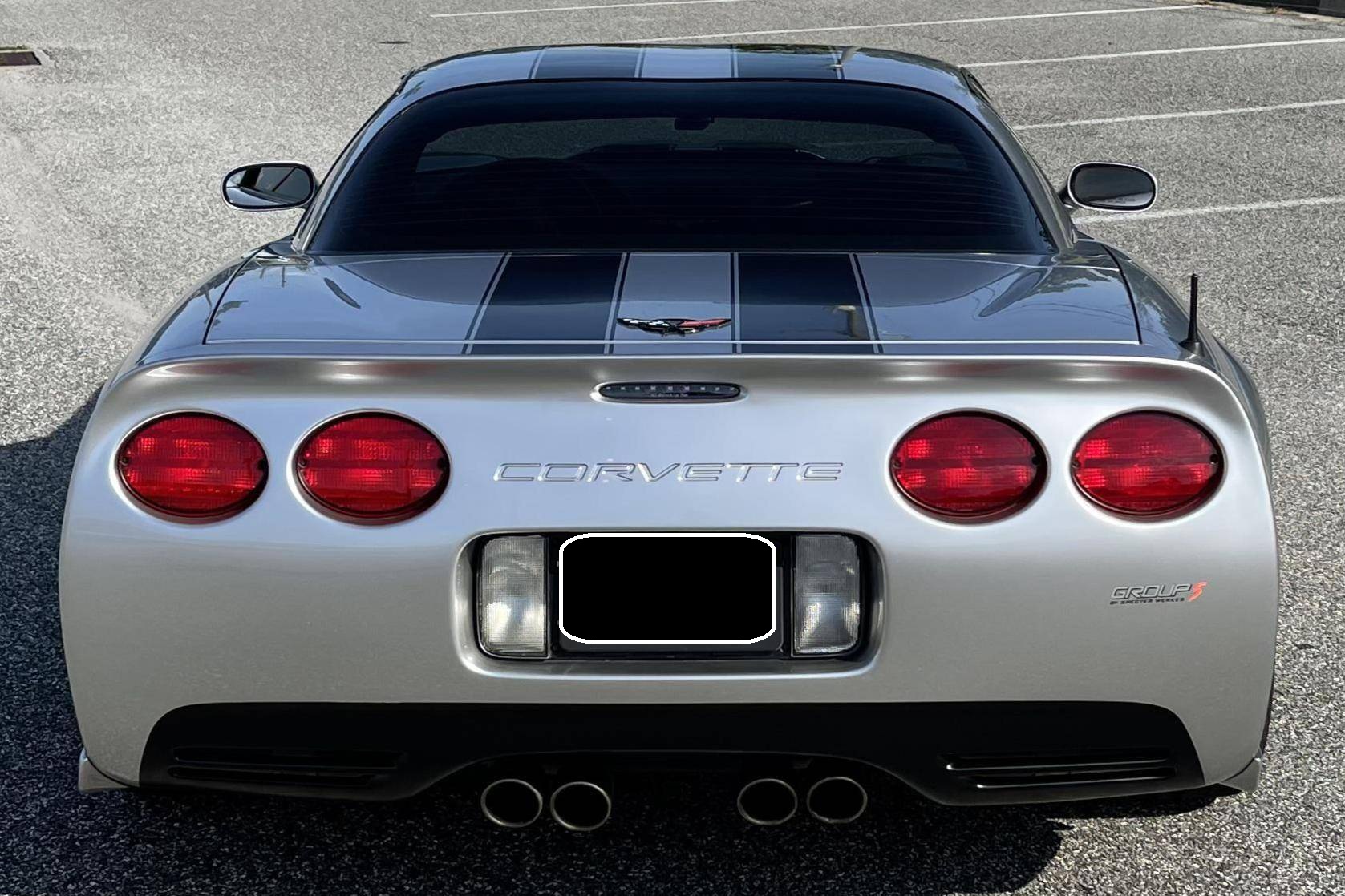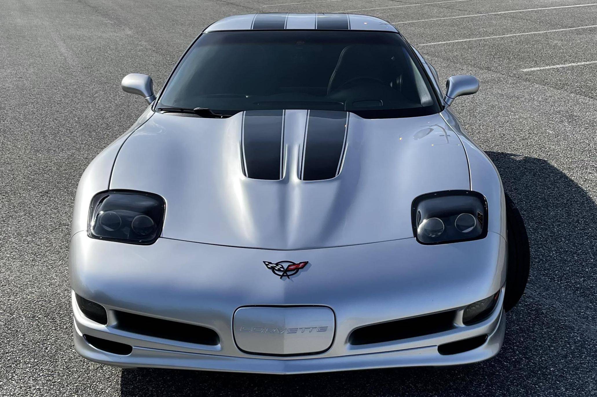 2004 Chevrolet Corvette Z06, finished in silver with an ebony interior. This Z06 is equipped with a 6-speed manual transmission, and its odometer currently indicates approximately 40,400 miles. Factory equipment includes a limited-slip differential, an active handling system, leather upholstery, dual-zone automatic climate control, a head-up display, and a Bose audio system. Modifications to this Z06 are extensive, and the full list is detailed below. include a Specter Werkes body kit, Forgeline wheels, Texas Speed long-tube headers and X-pipe, a Vararam intake, and a skip shift eliminator. To build the high-performance C5-generation Z06, Chevy started with the rigid fixed-roof coupe body style and focused on weight reduction with a titanium exhaust, thinner glass panels, lightweight wheels and battery, and reduced soundproofing. The "LS6" V8 adds 55 horsepower over the standard coupe, and an upgraded FE4 suspension completes the Z06's track-focused transformation. Power comes from an "LS6" 5. 7-liter V8 engine, rated at 405 horsepower and 400 lb-ft of torque. The modifications likely increase those figures, but a dyno sheet was not provided to confirm. Output is sent to the rear wheels via a 6-speed manual transmission.