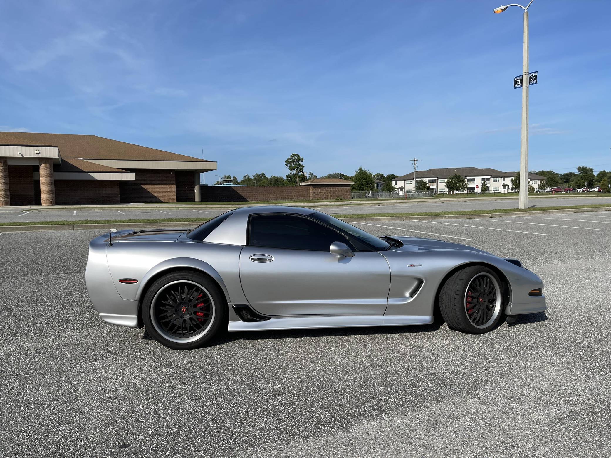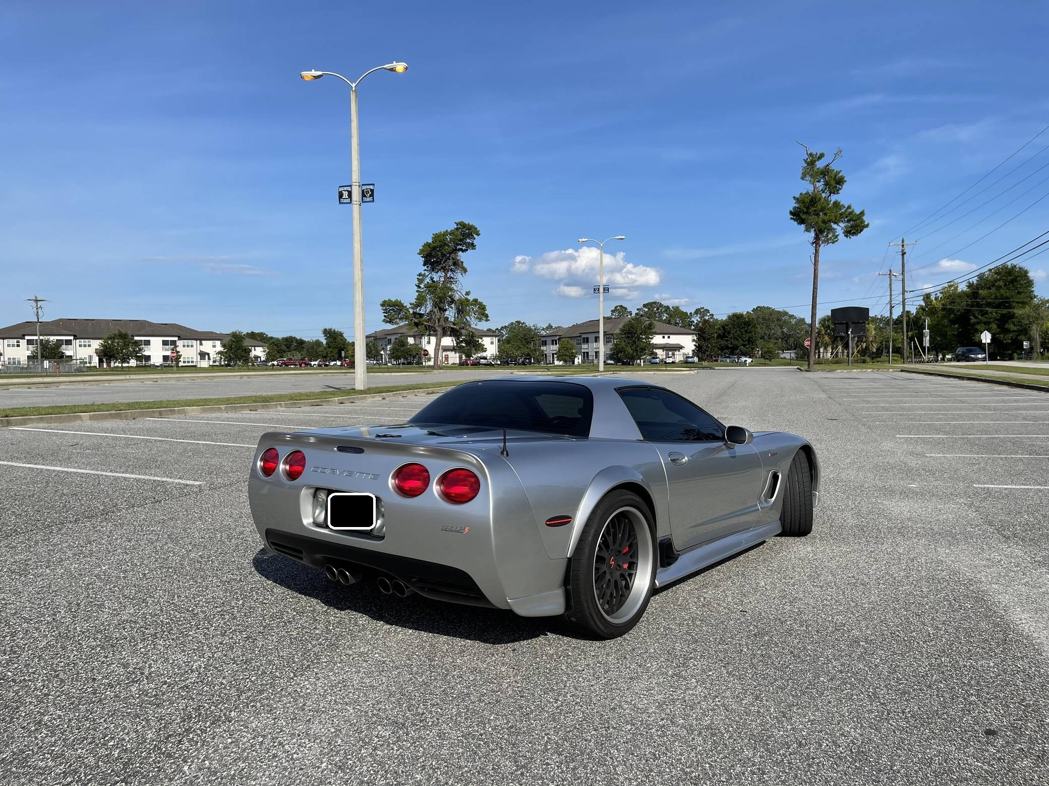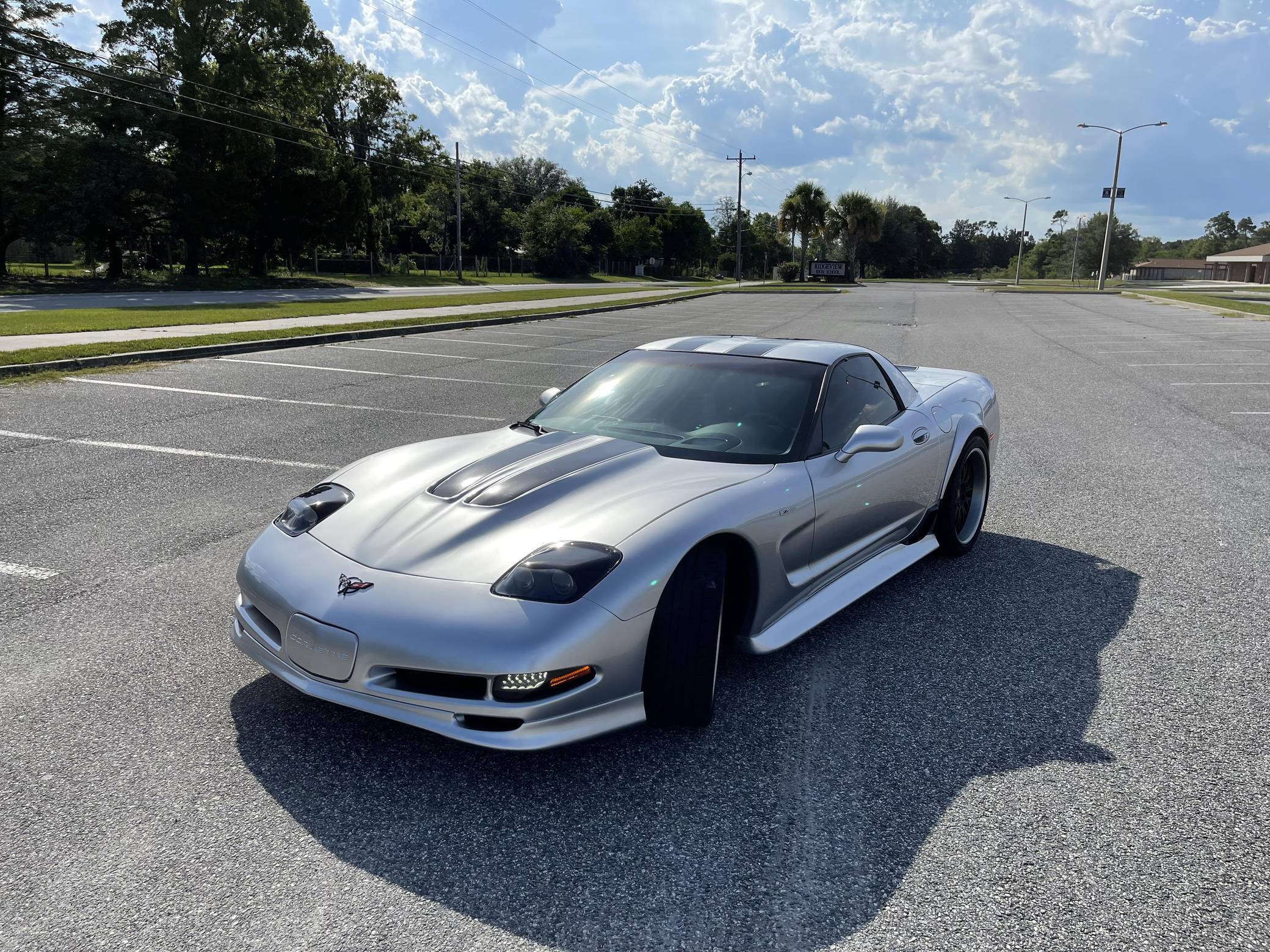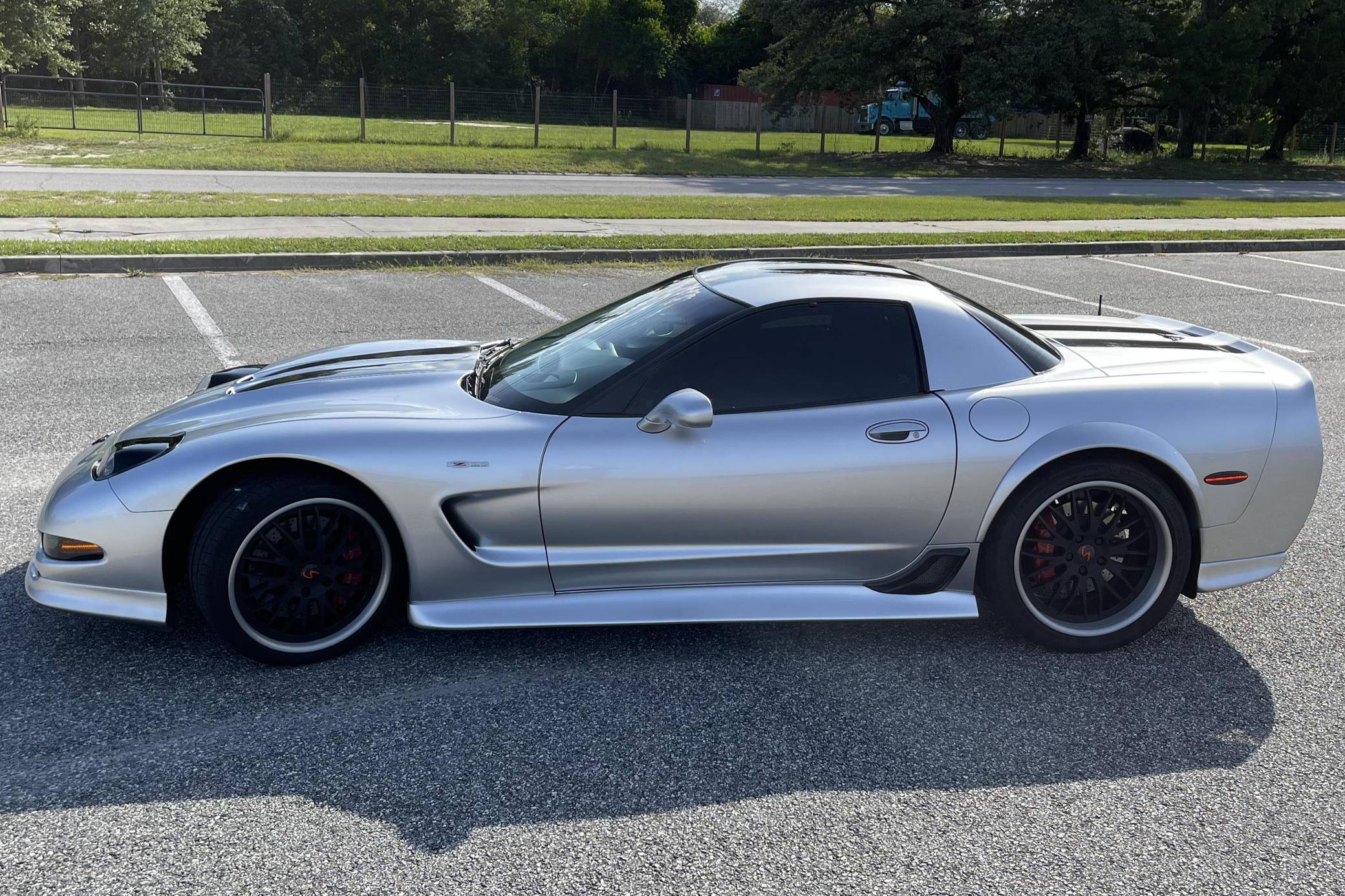 2004 Chevrolet Corvette Z06, finished in silver with an ebony interior. This Z06 is equipped with a 6-speed manual transmission, and its odometer currently indicates approximately 40,400 miles. Factory equipment includes a limited-slip differential, an active handling system, leather upholstery, dual-zone automatic climate control, a head-up display, and a Bose audio system. Modifications to this Z06 are extensive, and the full list is detailed below. include a Specter Werkes body kit, Forgeline wheels, Texas Speed long-tube headers and X-pipe, a Vararam intake, and a skip shift eliminator. To build the high-performance C5-generation Z06, Chevy started with the rigid fixed-roof coupe body style and focused on weight reduction with a titanium exhaust, thinner glass panels, lightweight wheels and battery, and reduced soundproofing. The "LS6" V8 adds 55 horsepower over the standard coupe, and an upgraded FE4 suspension completes the Z06's track-focused transformation. Power comes from an "LS6" 5. 7-liter V8 engine, rated at 405 horsepower and 400 lb-ft of torque. The modifications likely increase those figures, but a dyno sheet was not provided to confirm. Output is sent to the rear wheels via a 6-speed manual transmission.