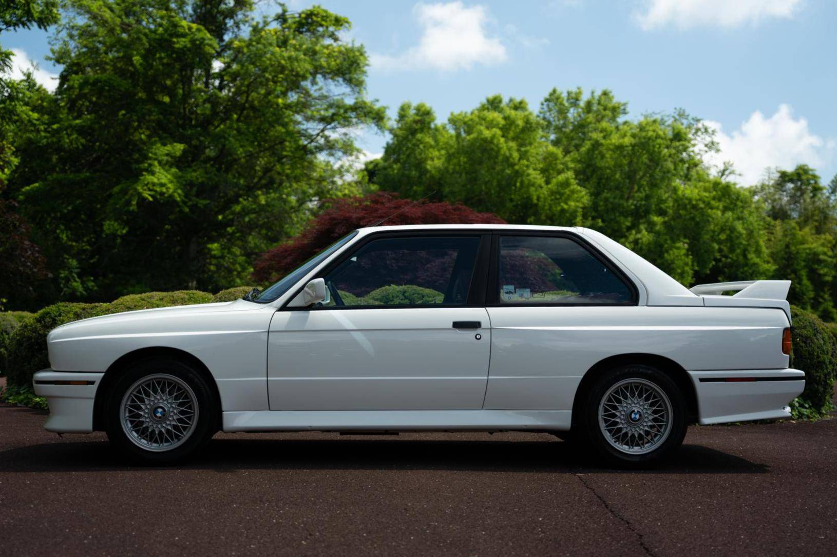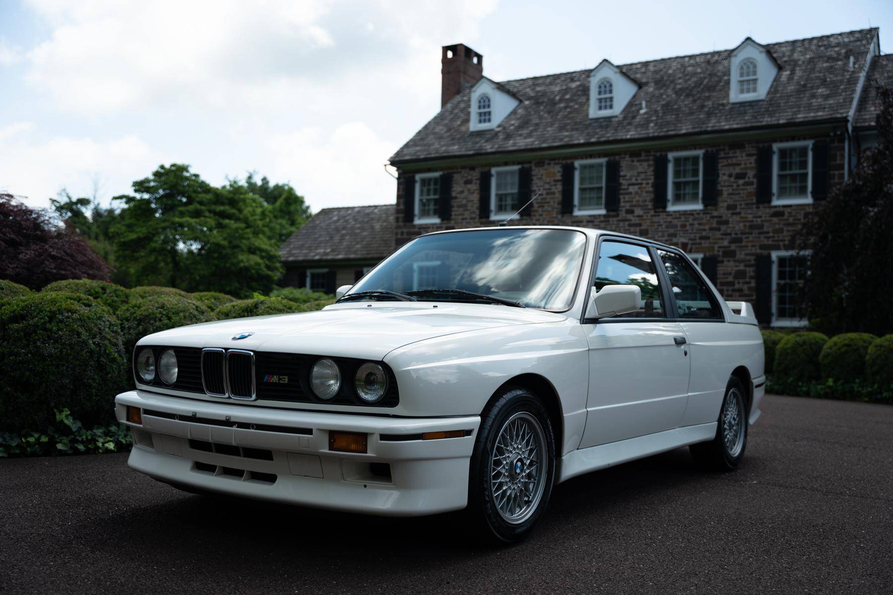 1988 BMW M3, finished in Alpine White with a Cardinal Red interior. Factory equipment includes 15-inch BBS wheels, a sunroof, leather upholstery, power-operated front windows, and air conditioning. More details about the aftermarket parts installed on this car are provided below, and the removed intake and exhaust system parts are included in the sale. Celebrated as one of the best and most influential BMW M models of all time, the first-generation M3 entered production in 1986, though it didn't reach American shores until the 1988 model year. It was initially released to satisfy touring car homologation requirements so it received a long list of parts derived from racing, including a naturally-aspirated 2. 3-liter engine, a revised suspension system, and a specific body kit. It also weighed less than the standard "E30" 3 Series. Production ended after the 1991 model year, and most historians agree about 5,300 units of the original M3 were built for America. Power comes from a 2. 3-liter 4-cylinder engine, rated at 192 horsepower and 170 lb-ft of torque when left stock. The modifications might increase those figures but a dyno sheet is not available. Called "S14" internally, the engine spins the rear wheels via a 5-speed manual transmission.