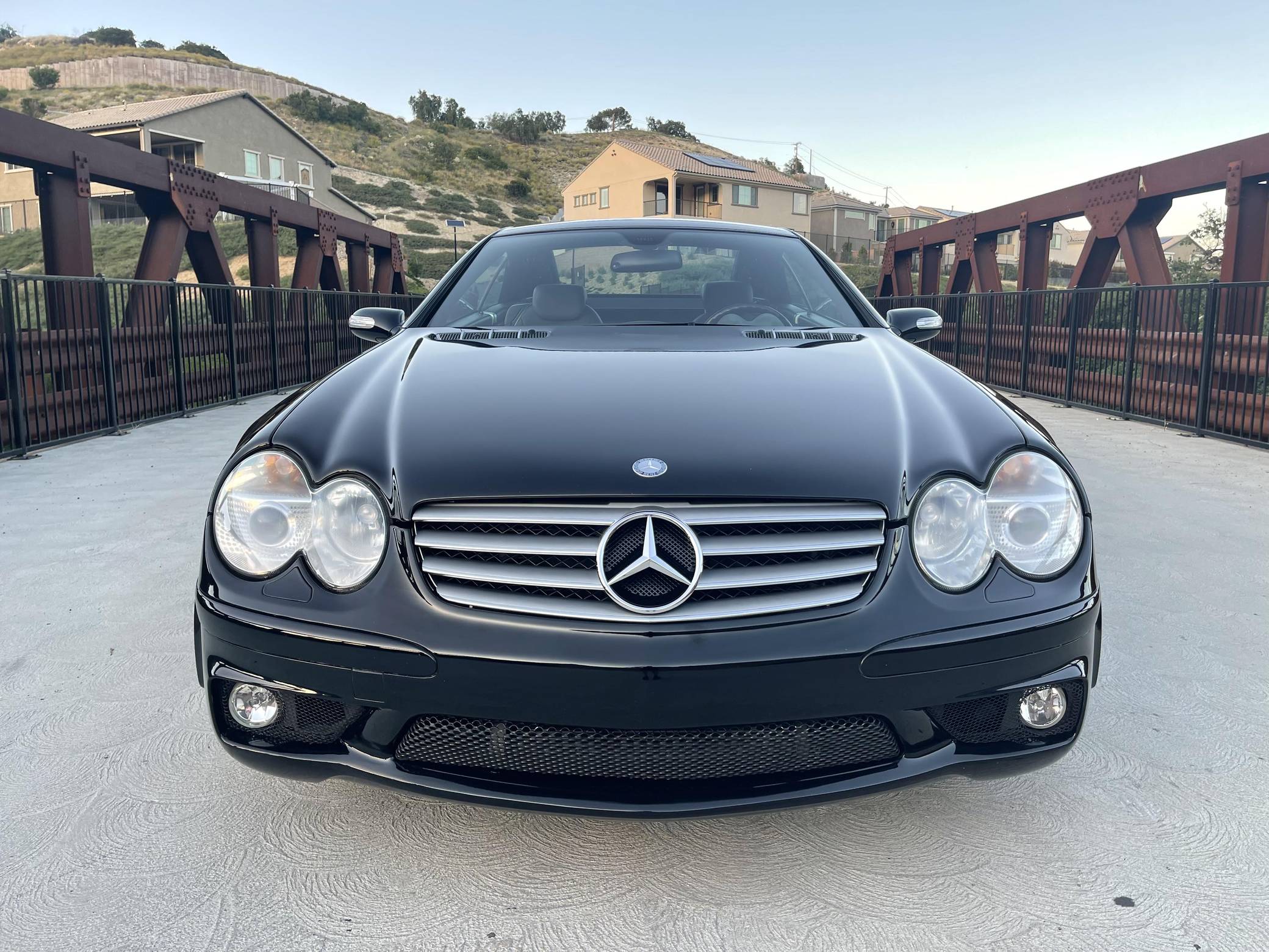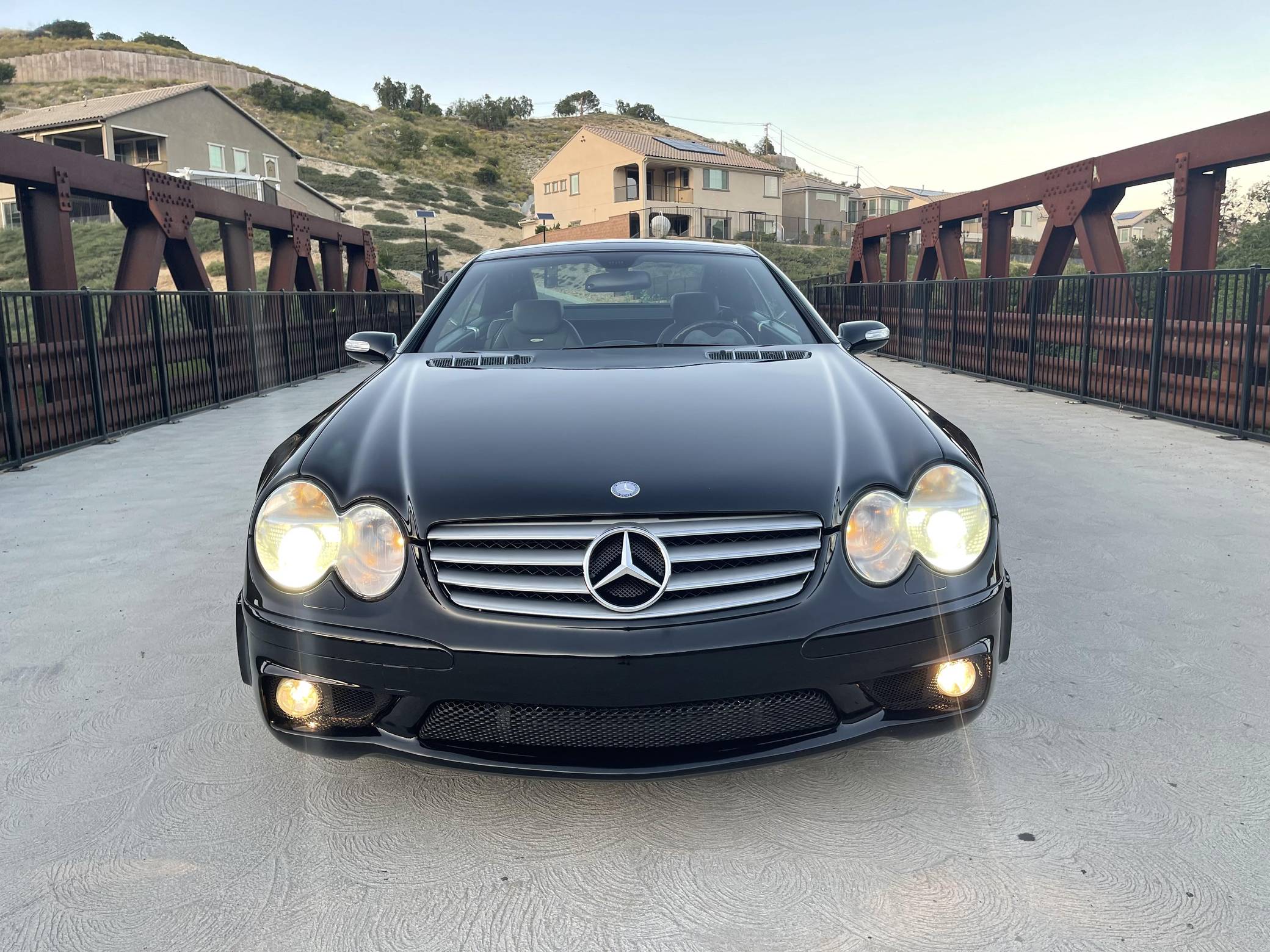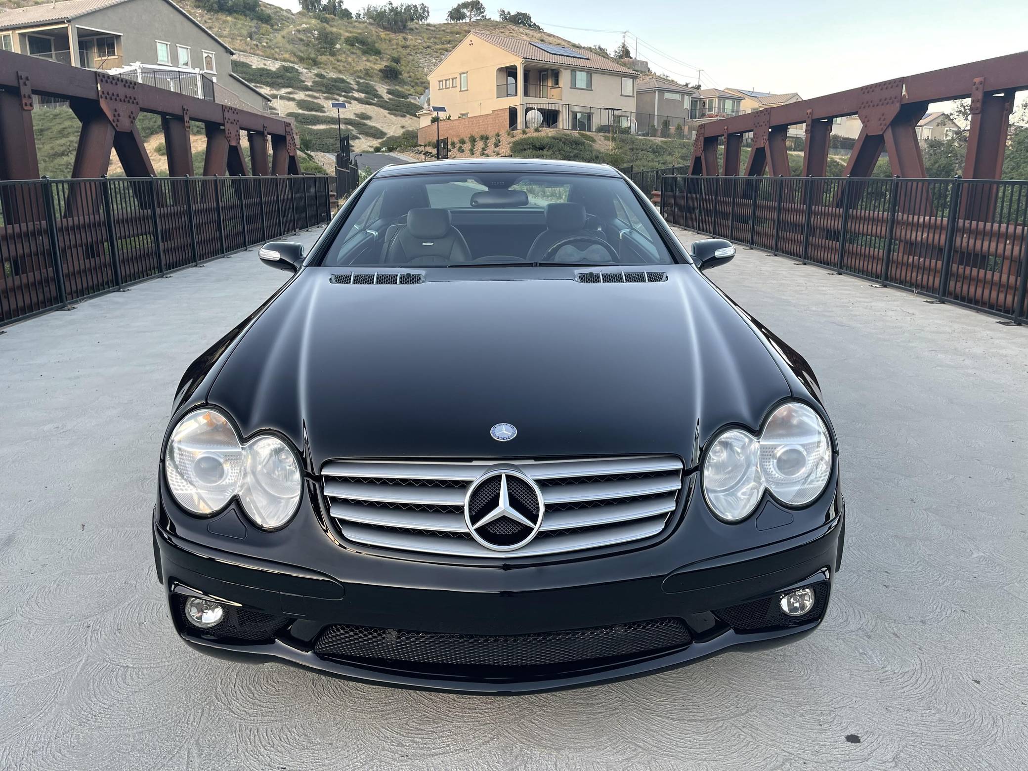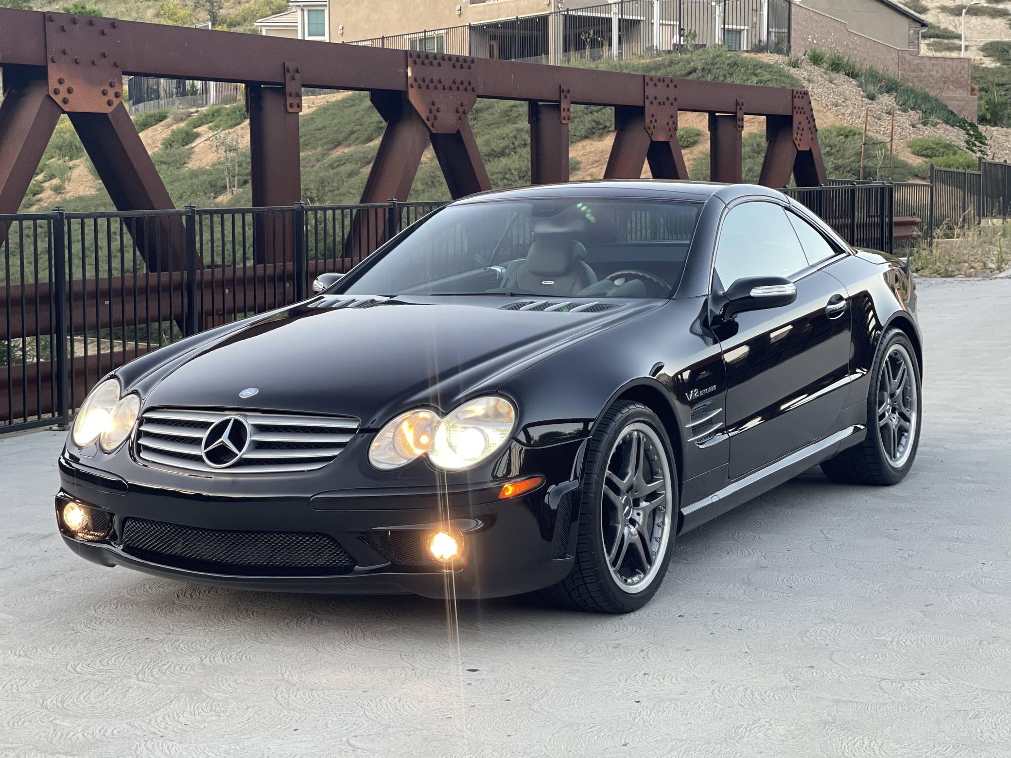 2005 Mercedes-Benz SL65 AMG, finished in black with a black interior. This roadster's odometer displays about 77,700 miles. Factory equipment includes 19-inch wheels, the Active Body Control (ABC) suspension system, bi-xenon headlights, wood interior trim, leather upholstery, heated, ventilated, and power-adjustable multi-contour seats, and a Bose sound system. This SL65's build sheet is pictured in the gallery, and the only modification reported by the seller is a pair of MagnaFlow mufflers. Called R230 internally, the first new SL of the 21st century made its debut for 2003 as a replacement for the venerable R129 model. It was appreciably quicker and far more advanced than its predecessor, it ditched the boxy lines for a sleeker and more rounded design that was aligned with the rest of the Mercedes-Benz range, and it came standard with a power-retractable hardtop. Production ended in 2011. Power comes from a 6. 0-liter twin-turbocharged V12, rated at 604 horsepower and 738 lb-ft of torque. Called "M275" internally, it spins the rear wheels via a 5-speed automatic transmission.