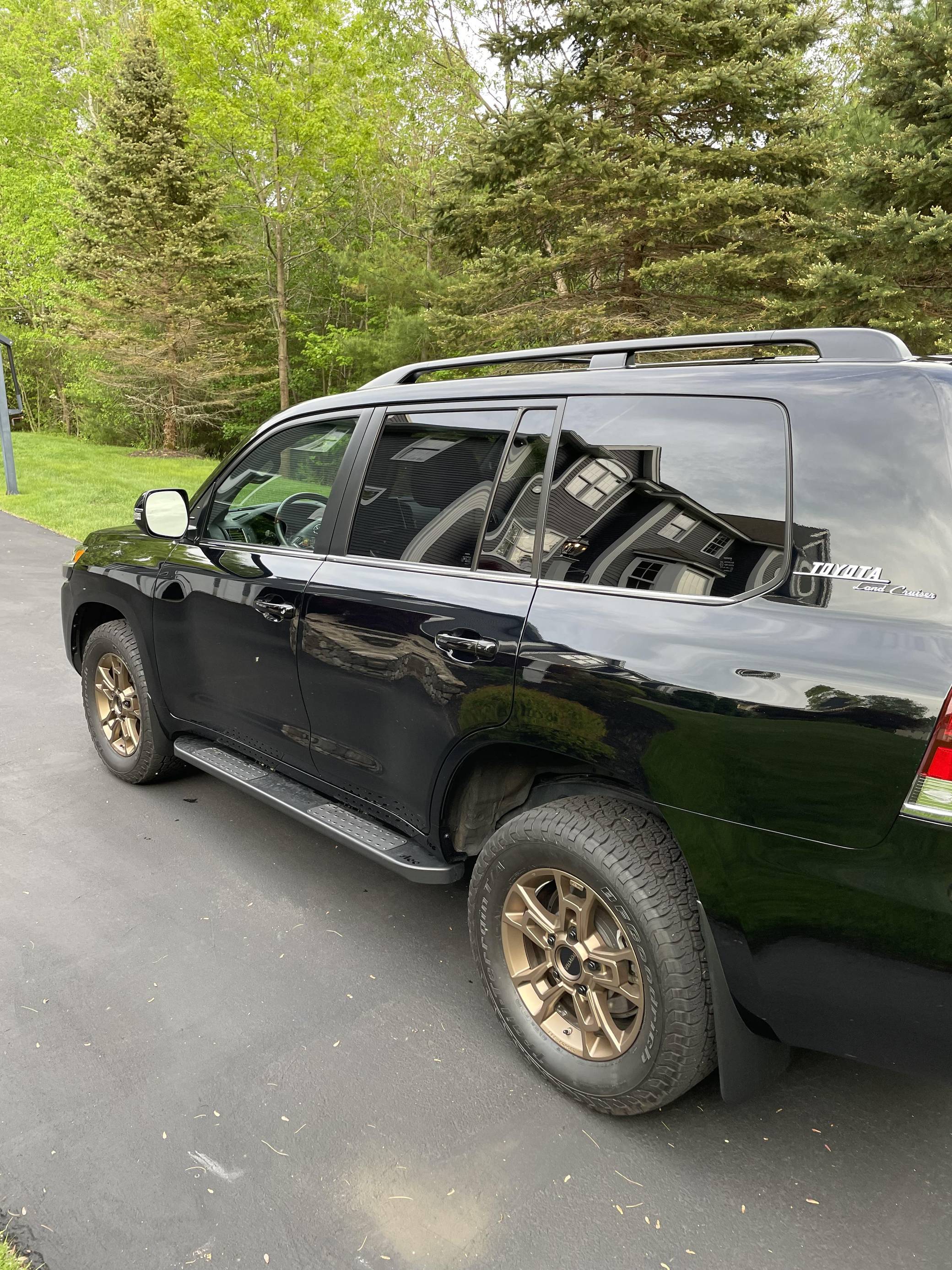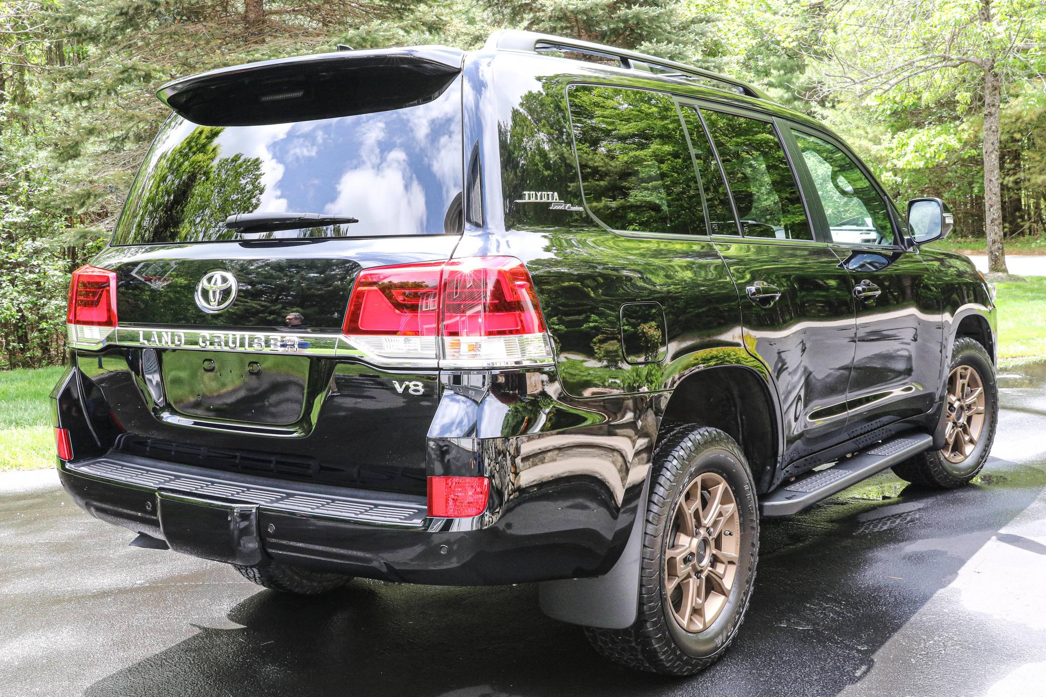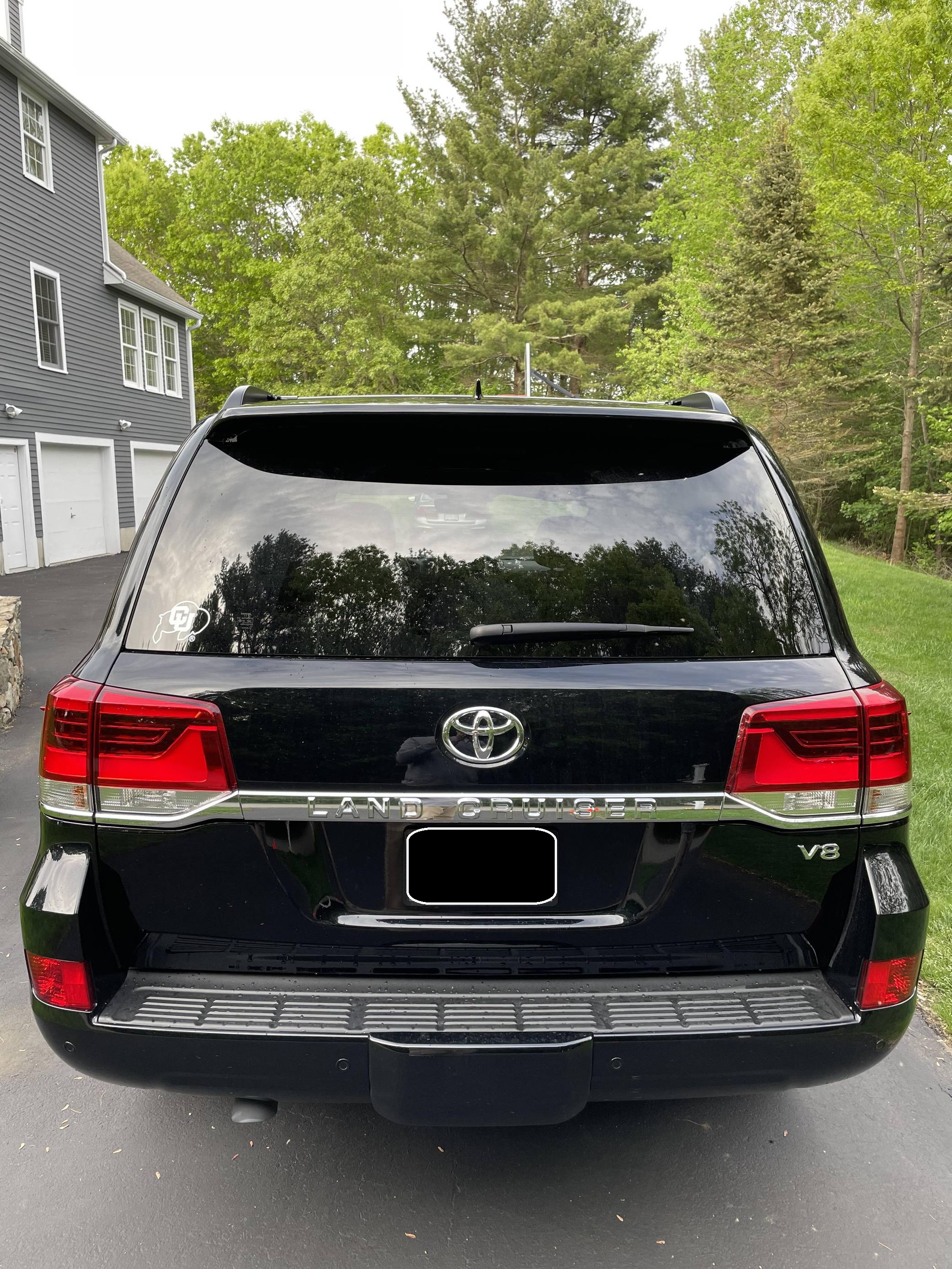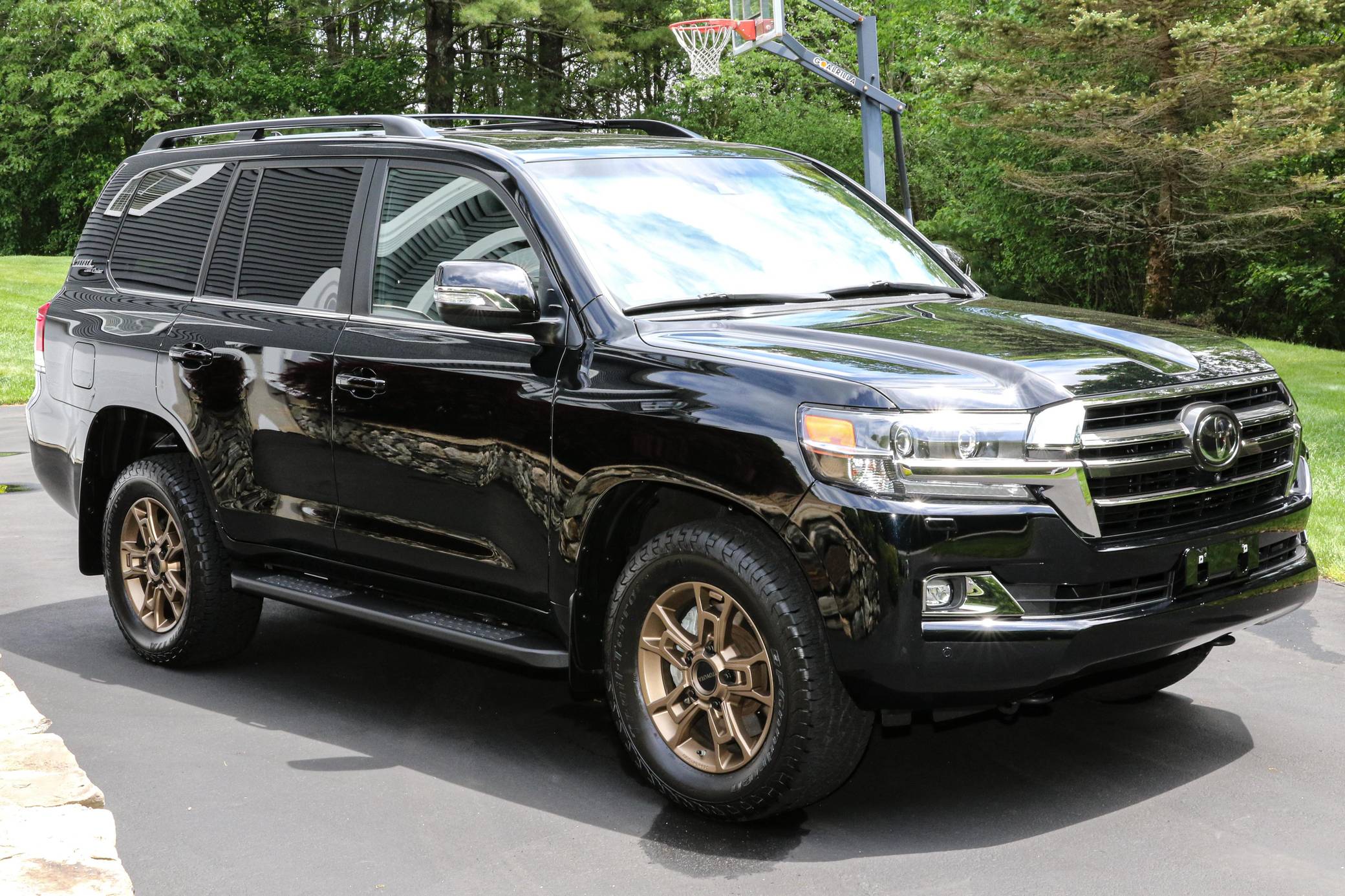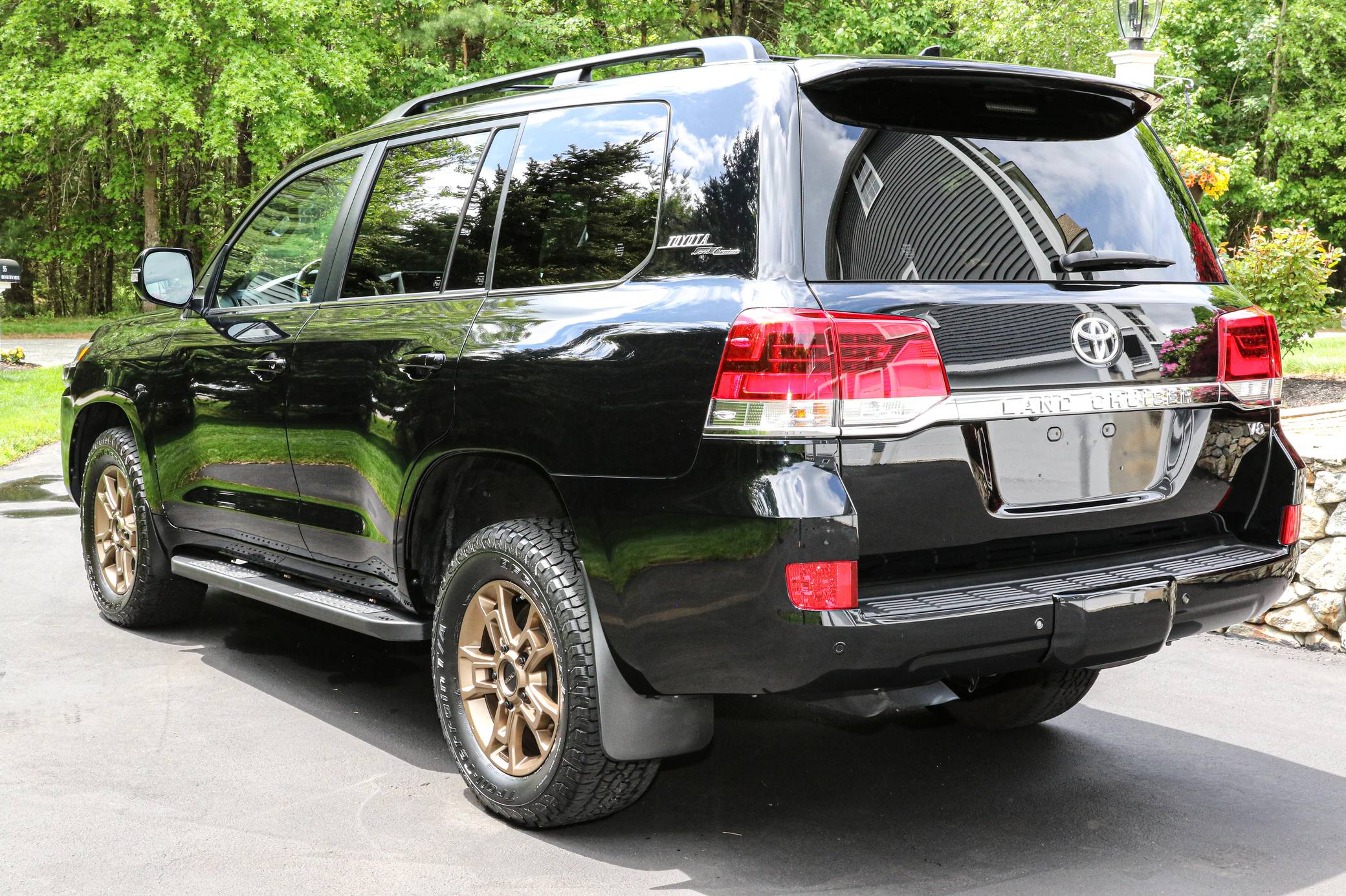 THIS. . . is a 2021 Toyota Land Cruiser, finished in Midnight Black Metallic with a black interior. Factory equipment includes 18-inch BBS wheels, "Toyota Land Cruiser" Heritage badging, Multi-Terrain Select, a Torsen locking limited-slip center differential, Kinetic Dynamic suspension system, a power sunroof, perforated leather upholstery, a 14-speaker JBL audio system, heated and ventilated front seats, and a heated steering wheel. Modifications reported by the seller include a set of BFGoodrich Trail-Terrain T/A tires, Slee rock sliders, and XPEL paint protection film on the front bumper and side mirrors. Introduced for the 2008 model year, the 200-Series Land Cruiser is notable for maintaining its reputation for off-road prowess while further increasing the luxury aspects of the truck. In 2016 the 200-Series was refreshed with an updated interior and exterior, new 18-inch alloy wheels, larger front disc brakes, a new 8-speed electronically-controlled automatic transmission, among other modern convenience updates. Power comes from a "3UR-FE" 5. 7-liter V8, rated at 381 horsepower and 401 lb-ft of torque. Output is sent to all four wheels via an 8-speed automatic transmission and full-time all-wheel drive system.