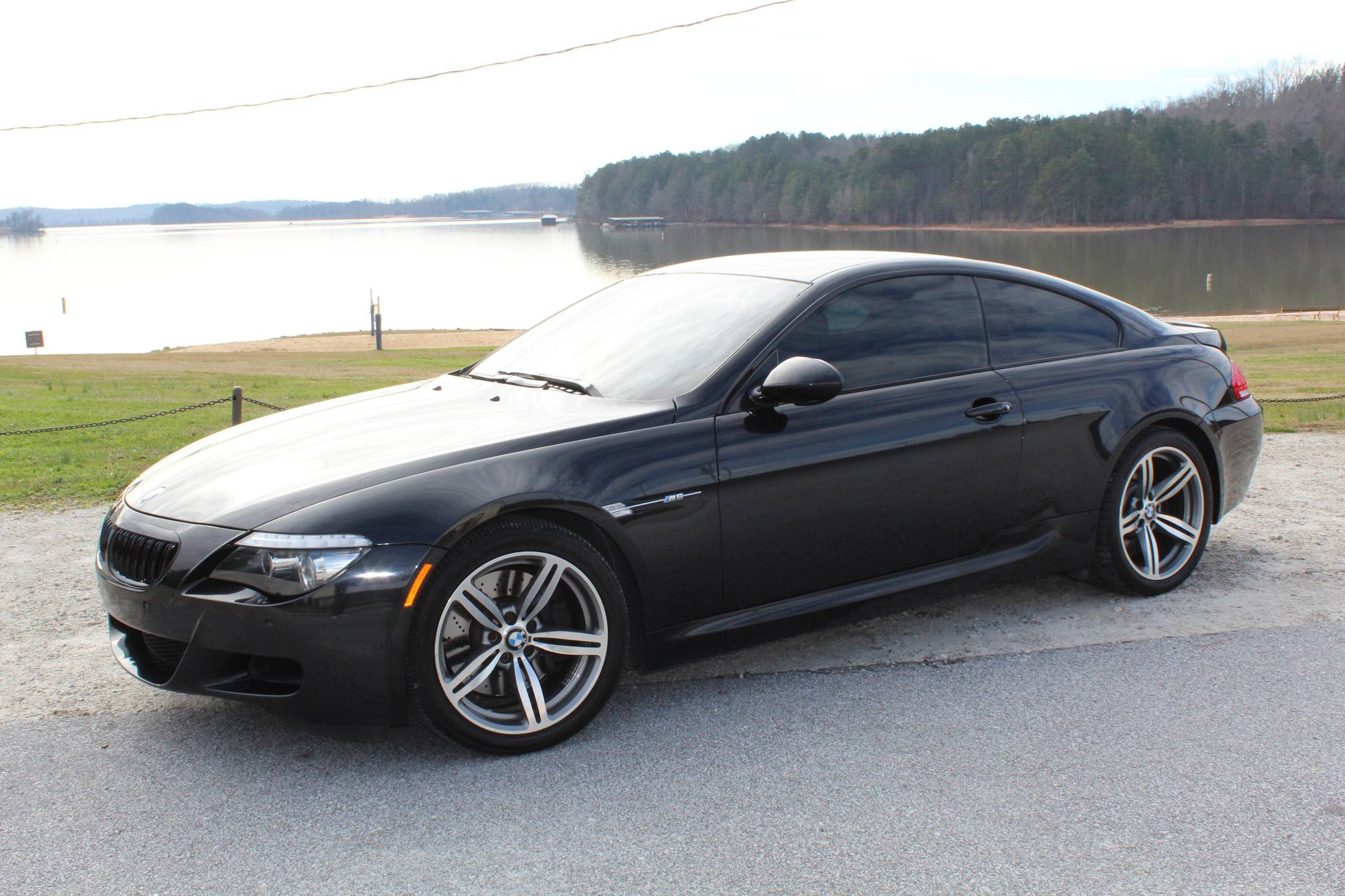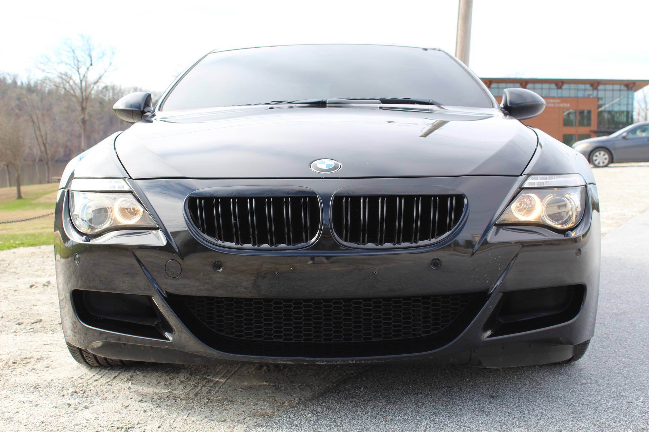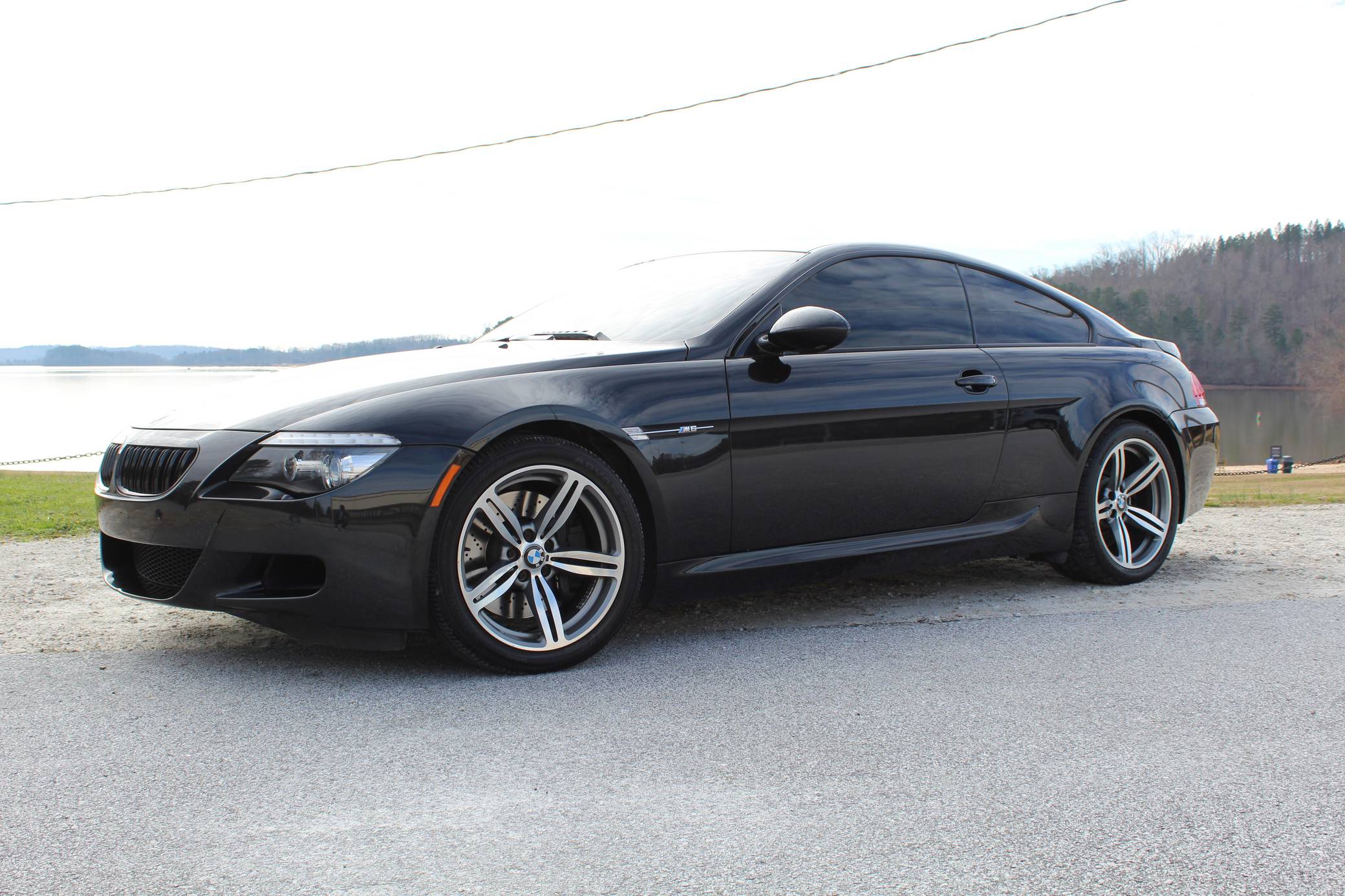 2010 BMW M6, finished in Black Sapphire Metallic with a black interior. Factory equipment includes 19-inch Style 167M wheels, adaptive xenon headlights, a carbon fiber roof panel, soft-close doors, Merino leather upholstery, heated and power-adjustable front seats, and a head-up display, among other features. Modifications reported by the seller are limited to black kidney grilles and a window tint. BMW resurrected the dormant M6 nameplate on the high-performance variant of the second-generation 6 Series released for the 2006 model year. Called "E63" (coupe) and "E64" (convertible) internally, the model features a high-revving V10 engine and sport-tuned suspension built with parts shared with the "E60" M5. It wears a reasonably subtle design that allows it to fly under the radar, and its generous dimensions give it the ability to seat four passengers in relative comfort. Power comes from an "S85" 5. 0-liter V10, rated at 500 horsepower and 383 lb-ft of torque. It spins the rear wheels via a 7-speed Sequential Manual Gearbox (SMG III) transmission.