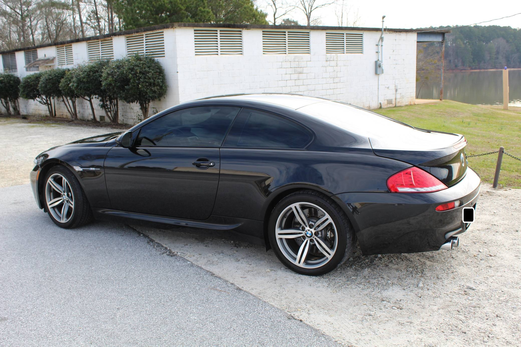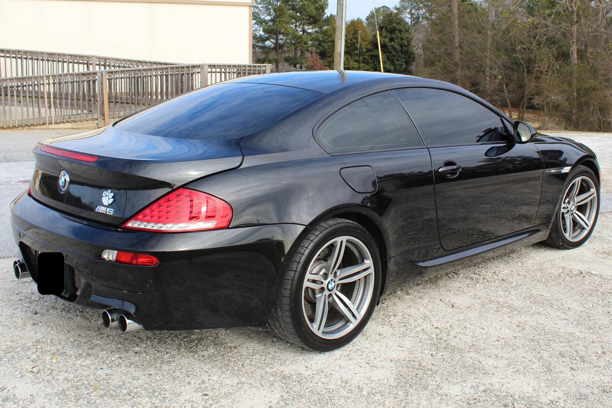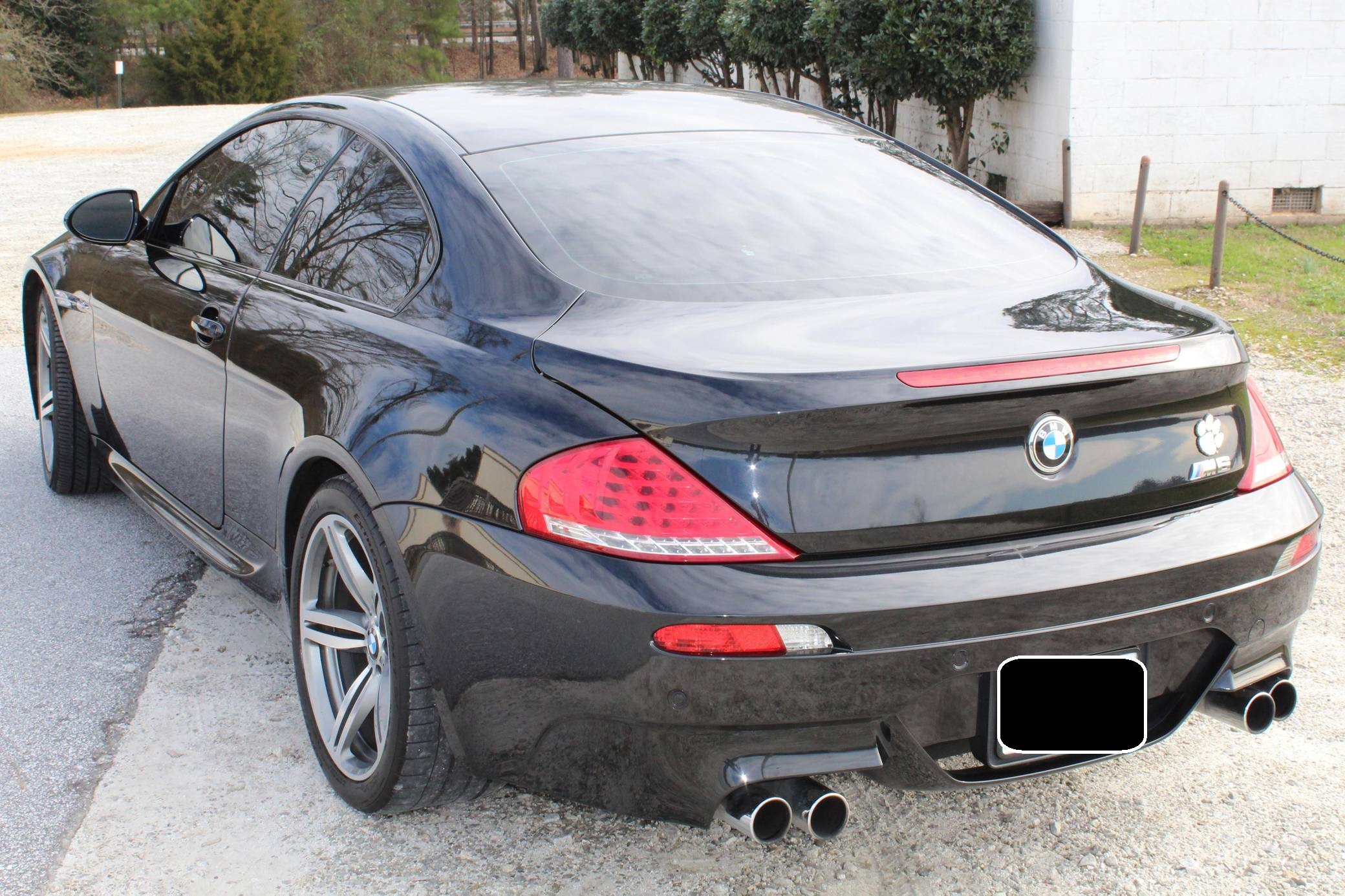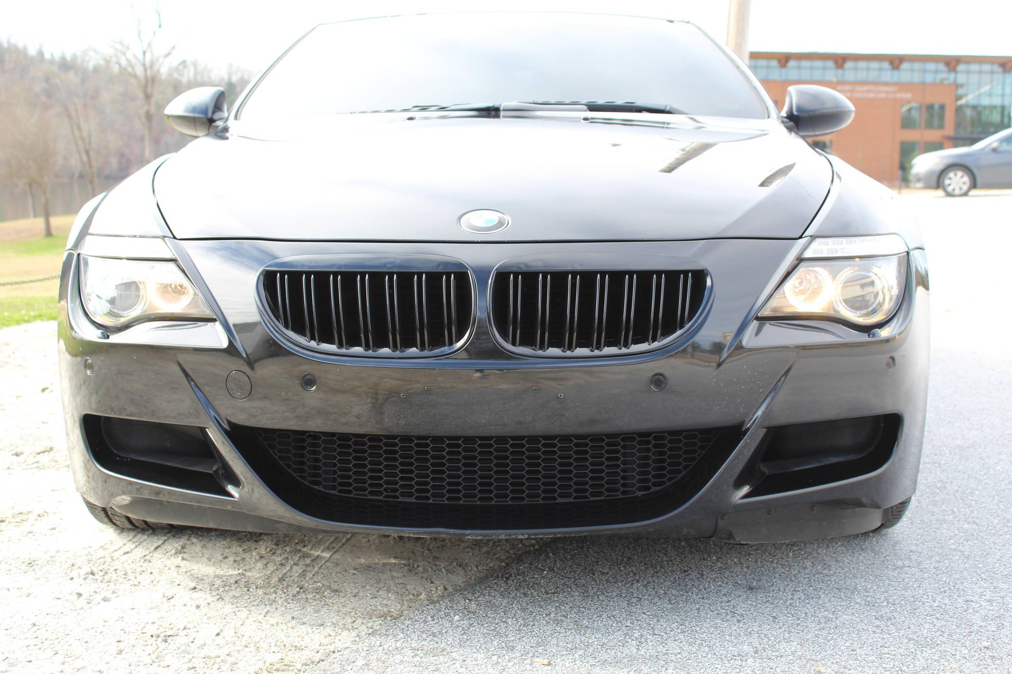 2010 BMW M6, finished in Black Sapphire Metallic with a black interior. Factory equipment includes 19-inch Style 167M wheels, adaptive xenon headlights, a carbon fiber roof panel, soft-close doors, Merino leather upholstery, heated and power-adjustable front seats, and a head-up display, among other features. Modifications reported by the seller are limited to black kidney grilles and a window tint. BMW resurrected the dormant M6 nameplate on the high-performance variant of the second-generation 6 Series released for the 2006 model year. Called "E63" (coupe) and "E64" (convertible) internally, the model features a high-revving V10 engine and sport-tuned suspension built with parts shared with the "E60" M5. It wears a reasonably subtle design that allows it to fly under the radar, and its generous dimensions give it the ability to seat four passengers in relative comfort. Power comes from an "S85" 5. 0-liter V10, rated at 500 horsepower and 383 lb-ft of torque. It spins the rear wheels via a 7-speed Sequential Manual Gearbox (SMG III) transmission.