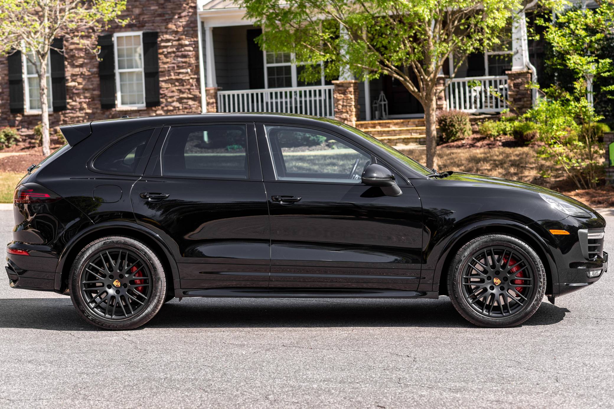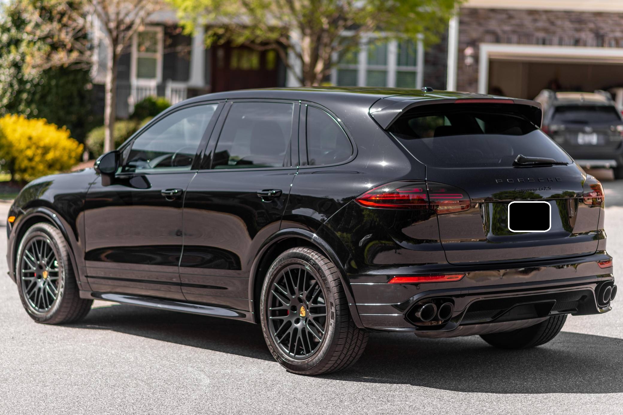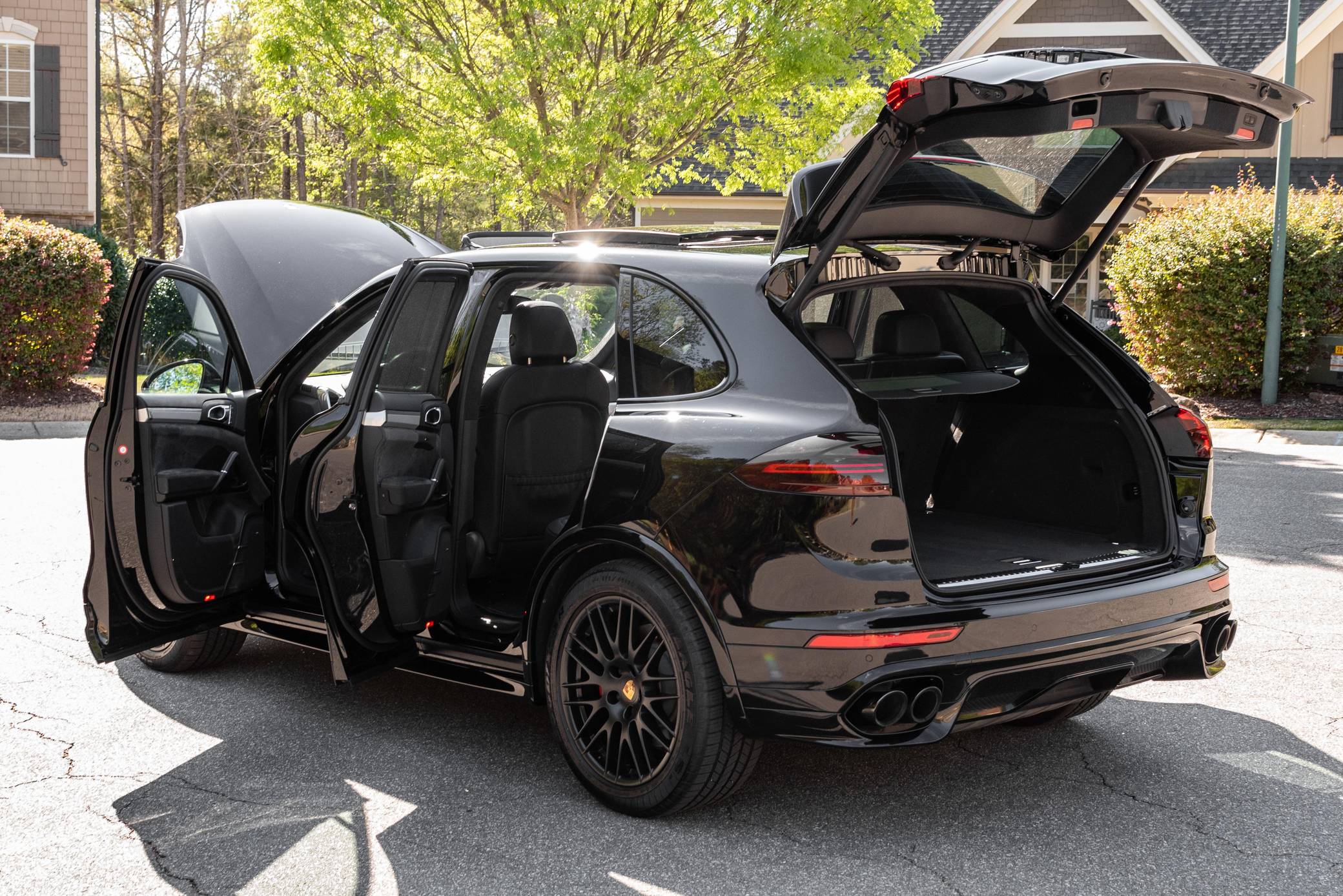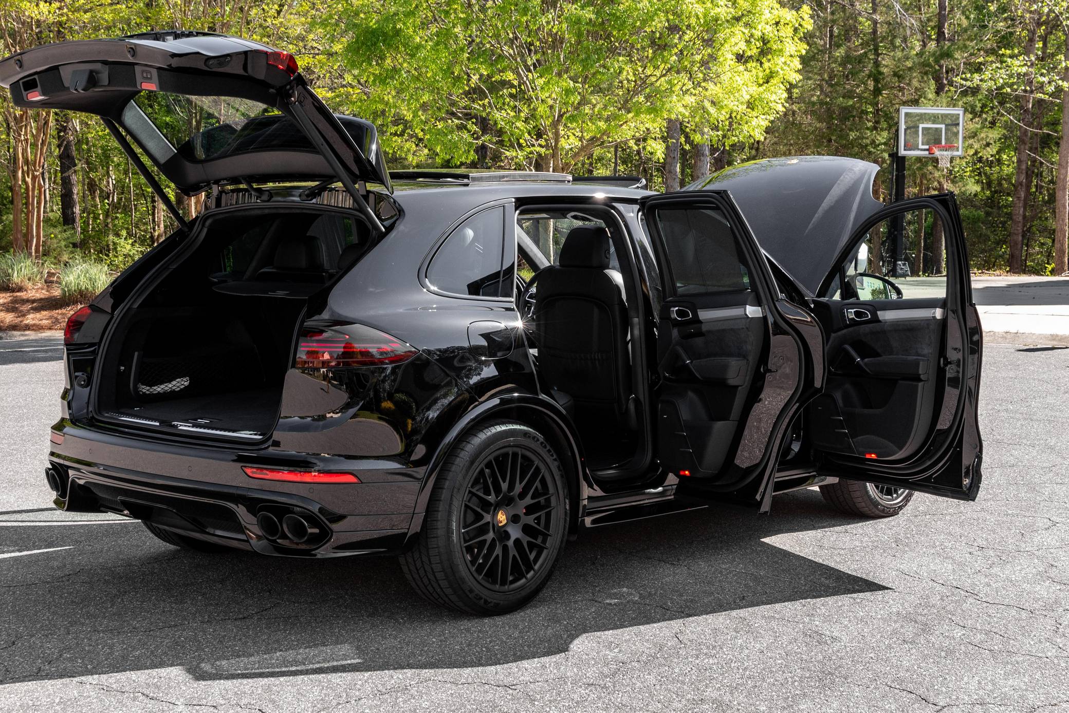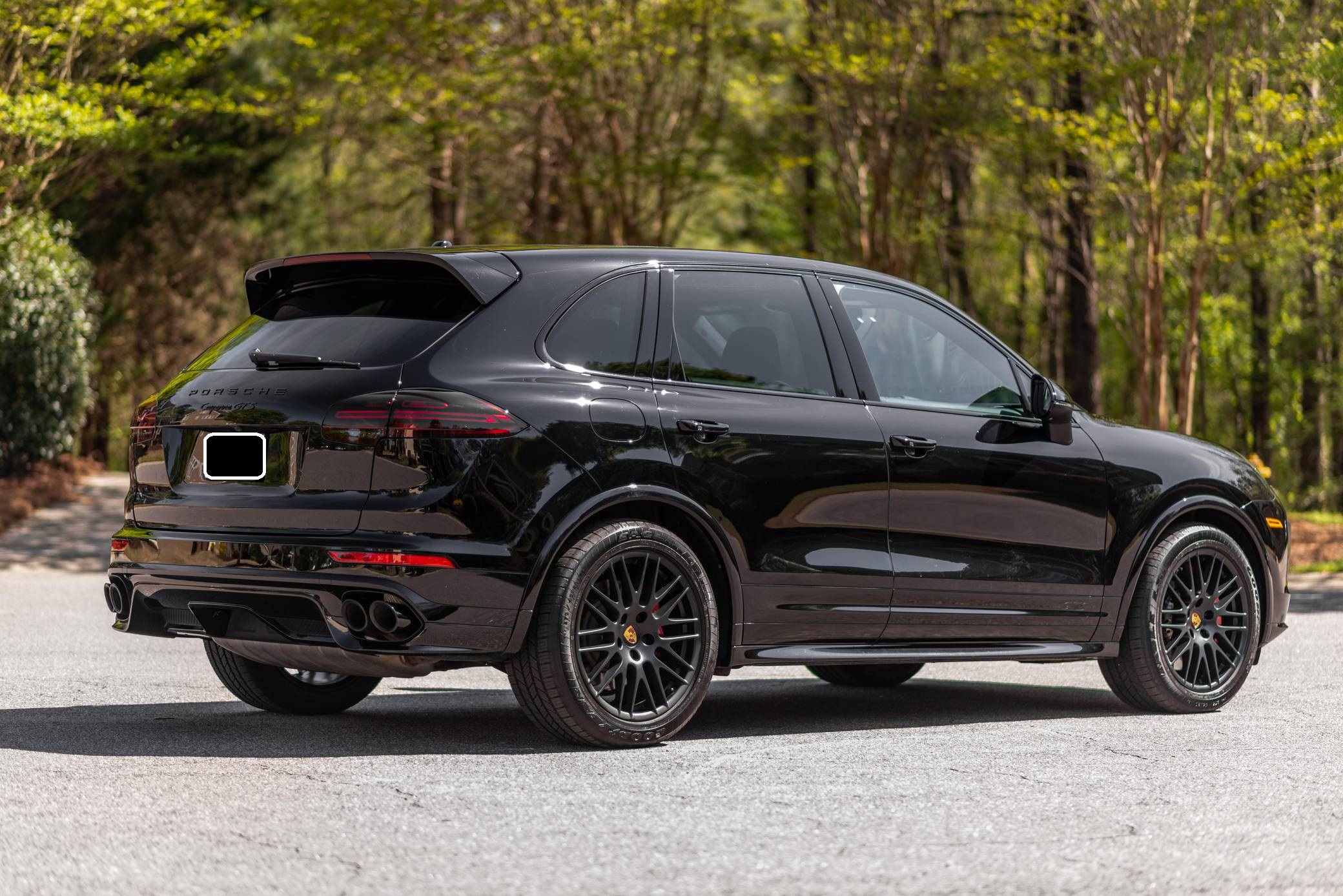 2016 Porsche Cayenne GTS, finished in black with a black interior. It comes equipped with the Sport Chrono Package, Premium Package Plus, a power tailgate, panoramic sunroof, navigation system, Bose surround sound system, and more as detailed below. The seller reports no modifications. Released for the 2011 model year, the second-generation Cayenne (called "958" internally) was slightly bigger and significantly lighter than its predecessor. It offered a smoother ride thanks to additional technology and luxury features, it was just as capable off-road, and critics agreed it was noticeably sportier than the first-generation model. Production ended in 2017. The Cayenne GTS features several upgrades over the standard Cayenne S including 20 additional horsepower, a sport exhaust system, and 20-inch wheels. GTS visual enhancements include the SportDesign package with side skirts and high-gloss black exterior trim. Power for this Cayenne GTS comes from a 3. 6-liter twin-turbocharged V6 engine, rated at 440 horsepower and 443 lb-ft of torque. Output is sent to all four wheels through an 8-speed automatic transmission.