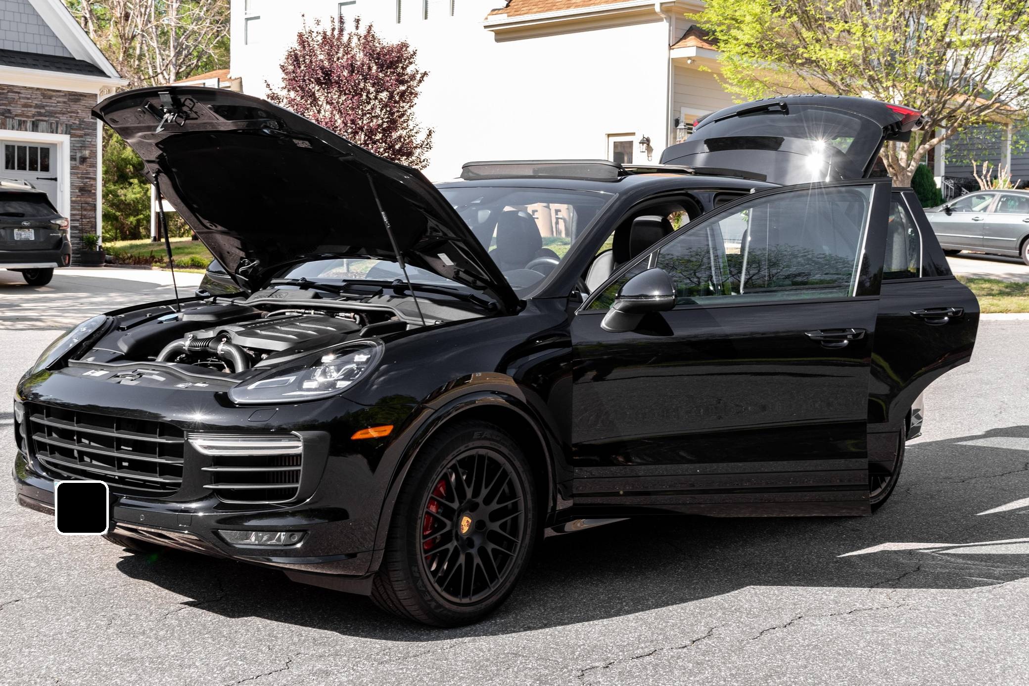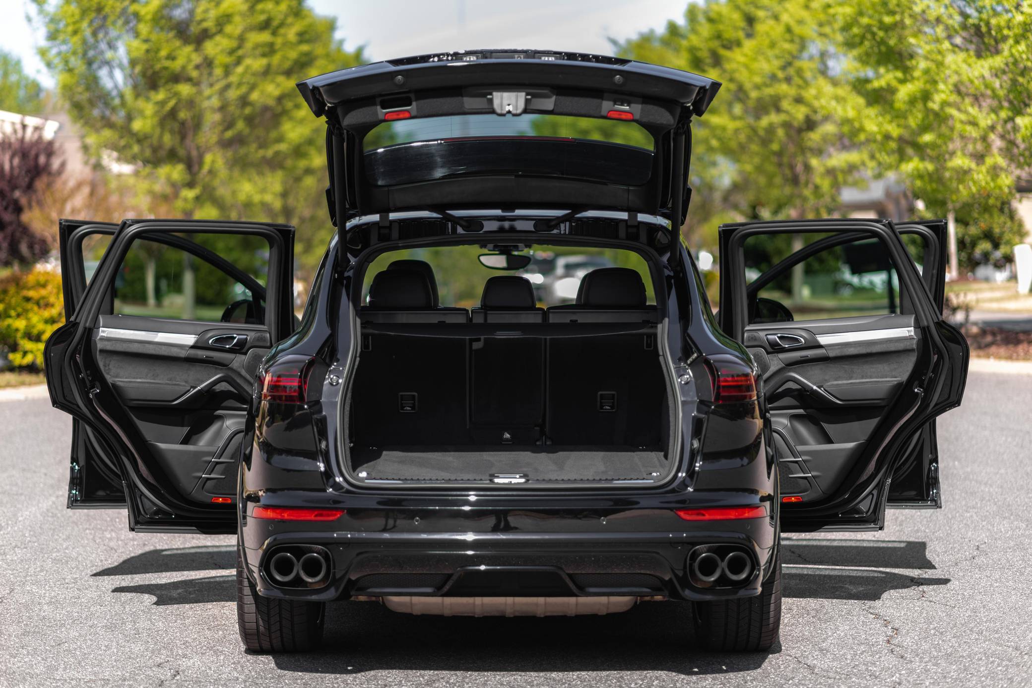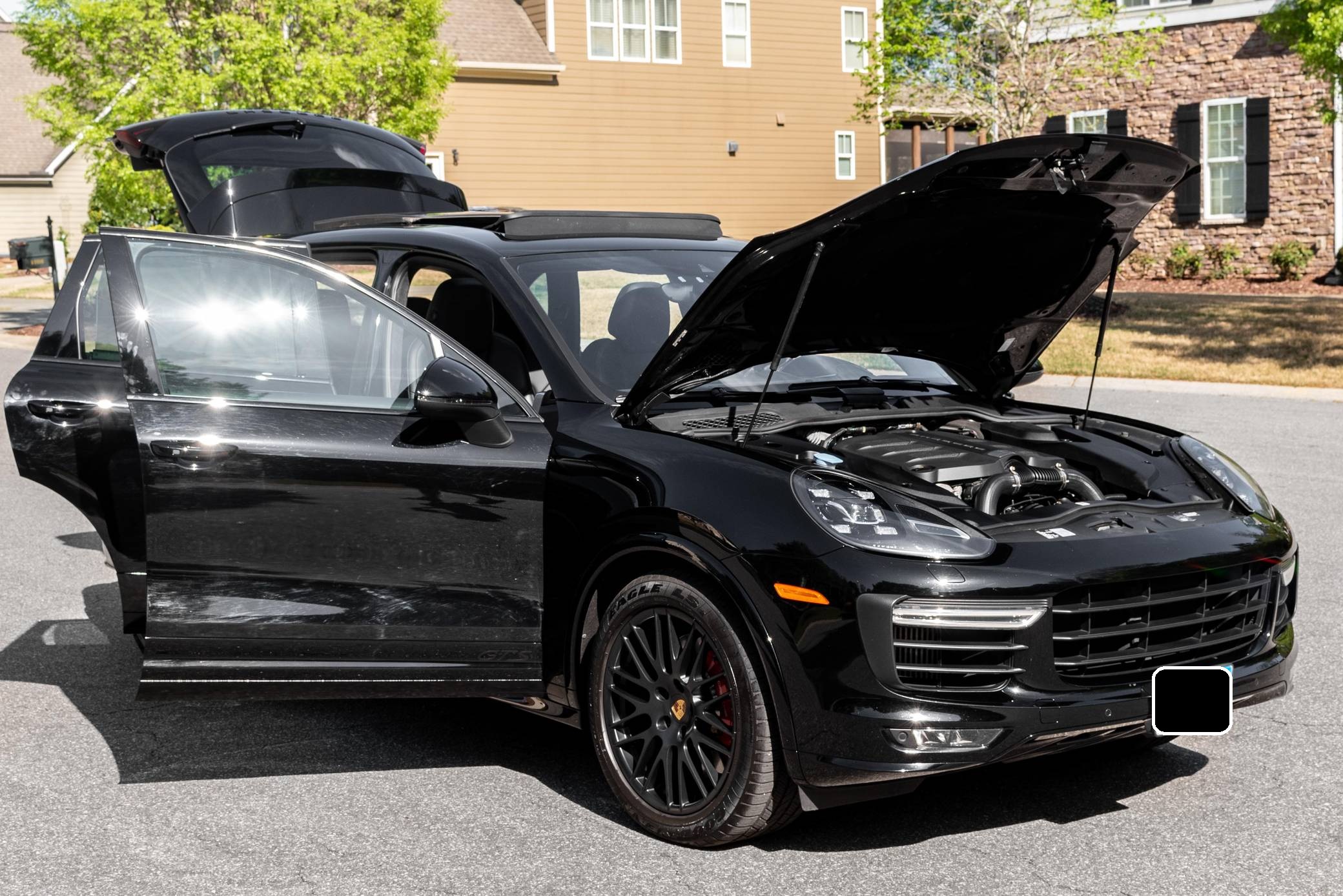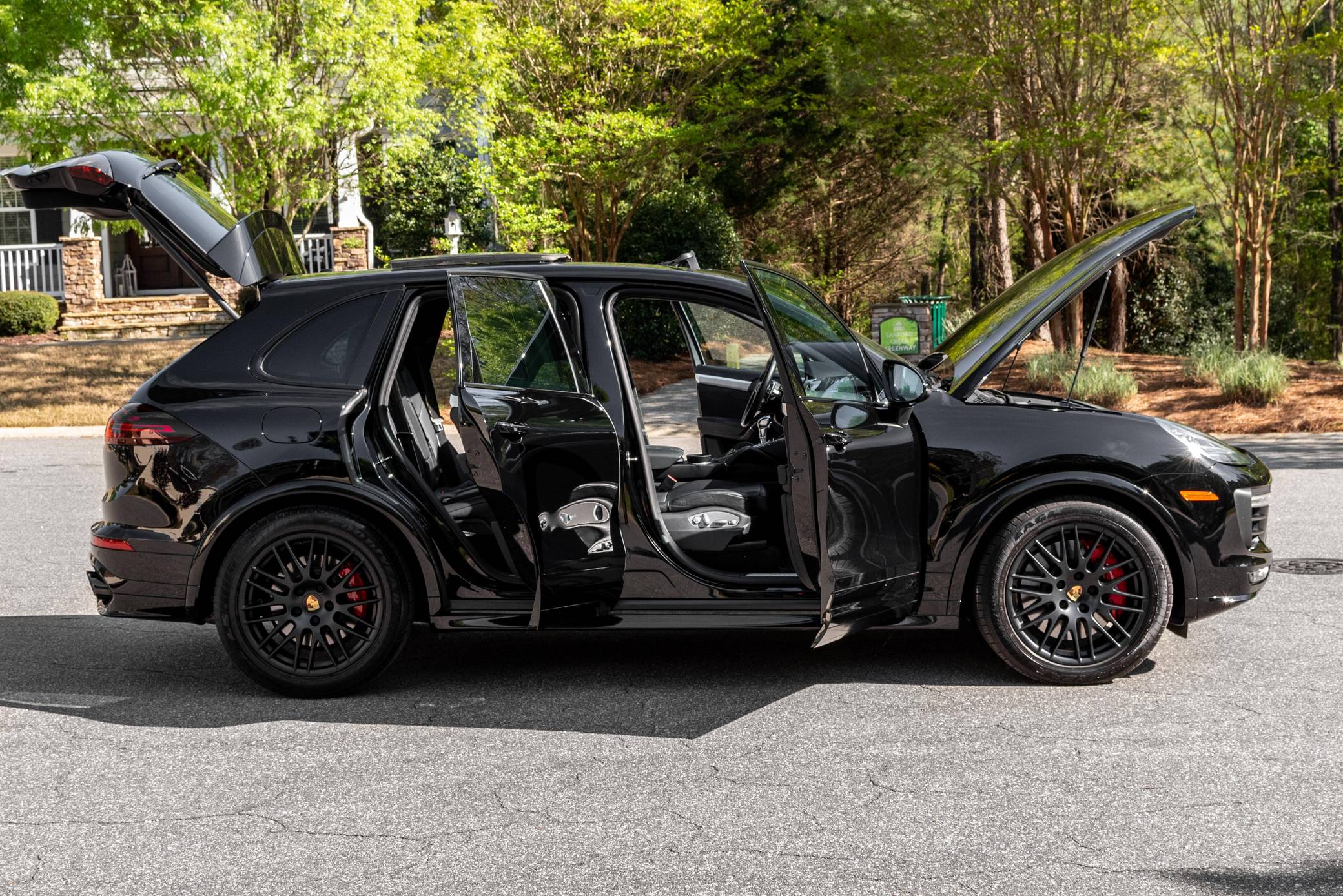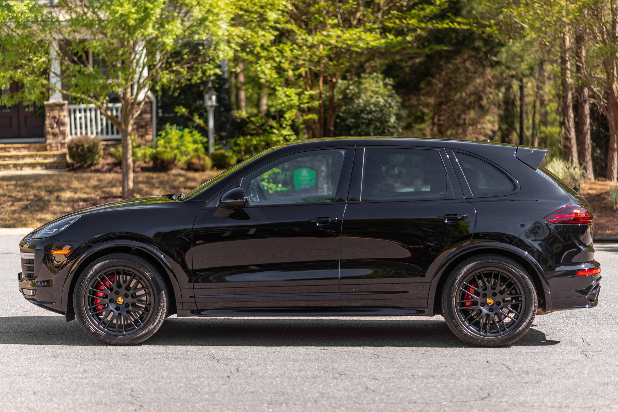 2016 Porsche Cayenne GTS, finished in black with a black interior. It comes equipped with the Sport Chrono Package, Premium Package Plus, a power tailgate, panoramic sunroof, navigation system, Bose surround sound system, and more as detailed below. The seller reports no modifications. Released for the 2011 model year, the second-generation Cayenne (called "958" internally) was slightly bigger and significantly lighter than its predecessor. It offered a smoother ride thanks to additional technology and luxury features, it was just as capable off-road, and critics agreed it was noticeably sportier than the first-generation model. Production ended in 2017. The Cayenne GTS features several upgrades over the standard Cayenne S including 20 additional horsepower, a sport exhaust system, and 20-inch wheels. GTS visual enhancements include the SportDesign package with side skirts and high-gloss black exterior trim. Power for this Cayenne GTS comes from a 3. 6-liter twin-turbocharged V6 engine, rated at 440 horsepower and 443 lb-ft of torque. Output is sent to all four wheels through an 8-speed automatic transmission.