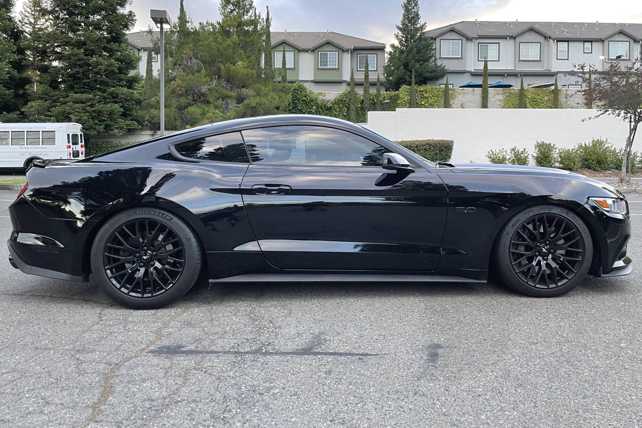 2017 Ford Mustang GT Premium Coupe, finished in Shadow Black with an Ebony interior. This Mustang features the desirable 6-speed manual transmission. Equipped with the GT Performance Package (19-inch black alloy wheels, 3. 73 Torsen rear axle), front fog lights, a front splitter, leather upholstery, heated and ventilated front seats, oil pressure and vacuum gauges, dual-zone automatic climate control, a Ford SYNC 3 infotainment system with 8-inch touchscreen, Apple CarPlay and Android Auto compatibility, selectable drive modes (Normal, Sport+, Track, Snow/Wet), and Track Apps with Line Lock. Modifications reported by the seller include a ProCharger HO intercooled supercharger system (includes ProCharger P-1SC-1 supercharger, stage 2 intercooler, 6-rib shared drive, and an HP Tuners handheld OBD tuner), a Corsa Performance Xtreme exhaust, Eibach Sportline lowering springs, BMR Suspension CJR002 chassis jacking rails and CB005 cradle bushing lockout kit, a Roush rear valance with backup sensors, Diode Dynamics sequential LED turn signals, and black exterior badges. The sixth-generation “S550” Mustang was originally introduced in December 2015, featuring a wider and lower body than its predecessor. More importantly, the S550 was the first Mustang to feature an independent rear suspension across the whole model range, which significantly improved the handling and dynamics of the iconic model. Power comes from a 5. 0-liter "Coyote" V8 engine, rated at 435 horsepower and 400 lb-ft of torque in stock form and when left naturally aspirated. Due to the modifications performed to this Mustang, it likely produces more power, but a dyno sheet was not provided to confirm. Output is sent to the rear wheels via a 6-speed manual transmission.