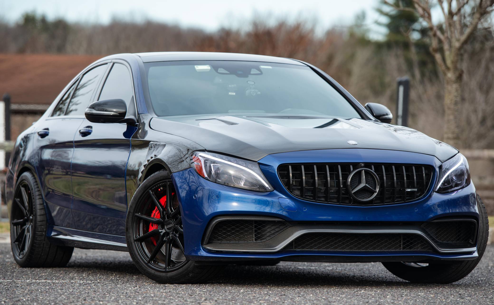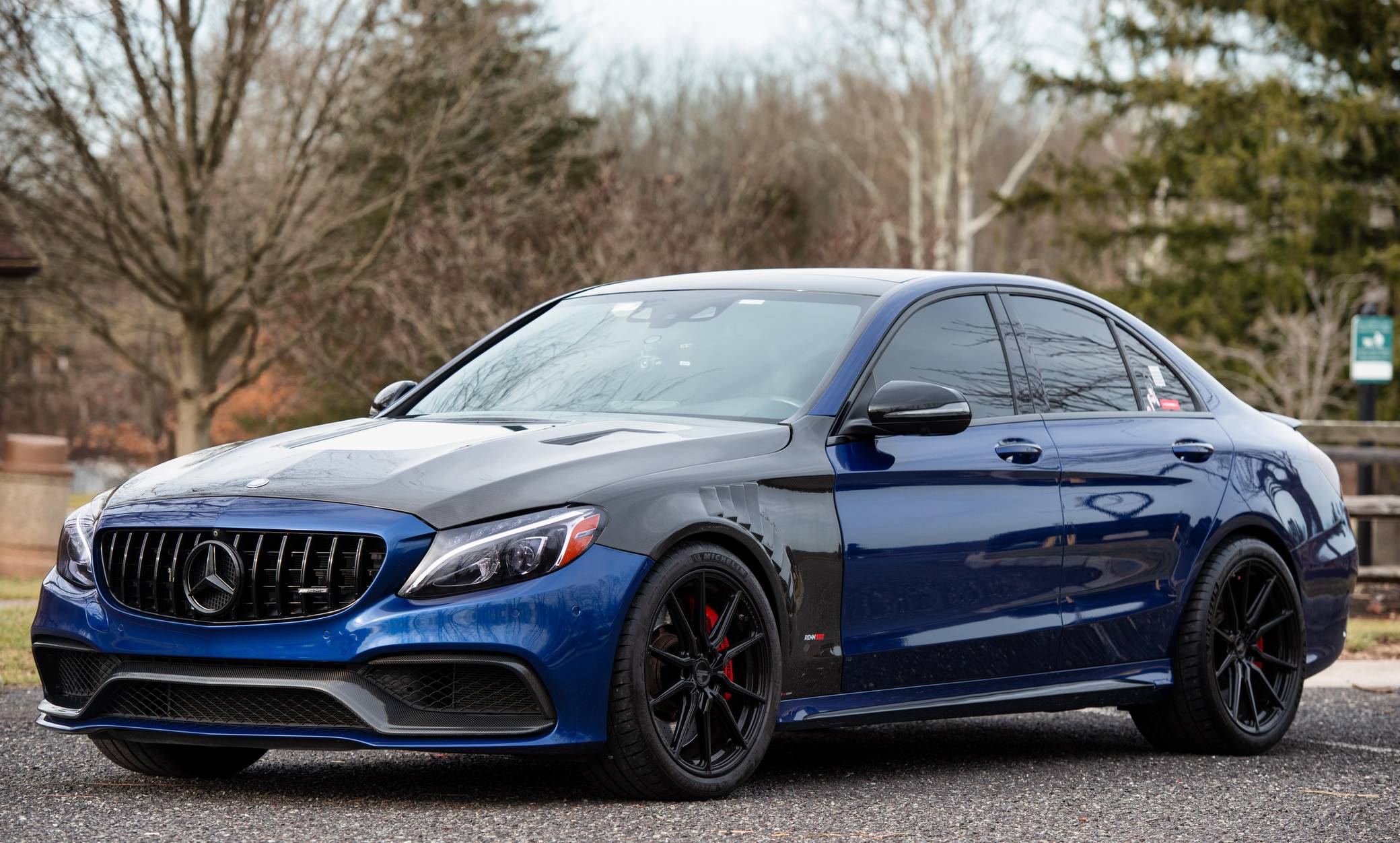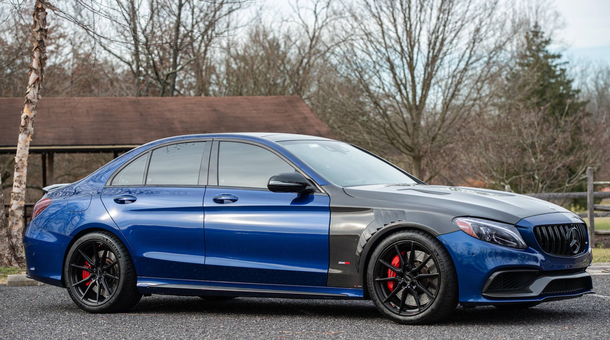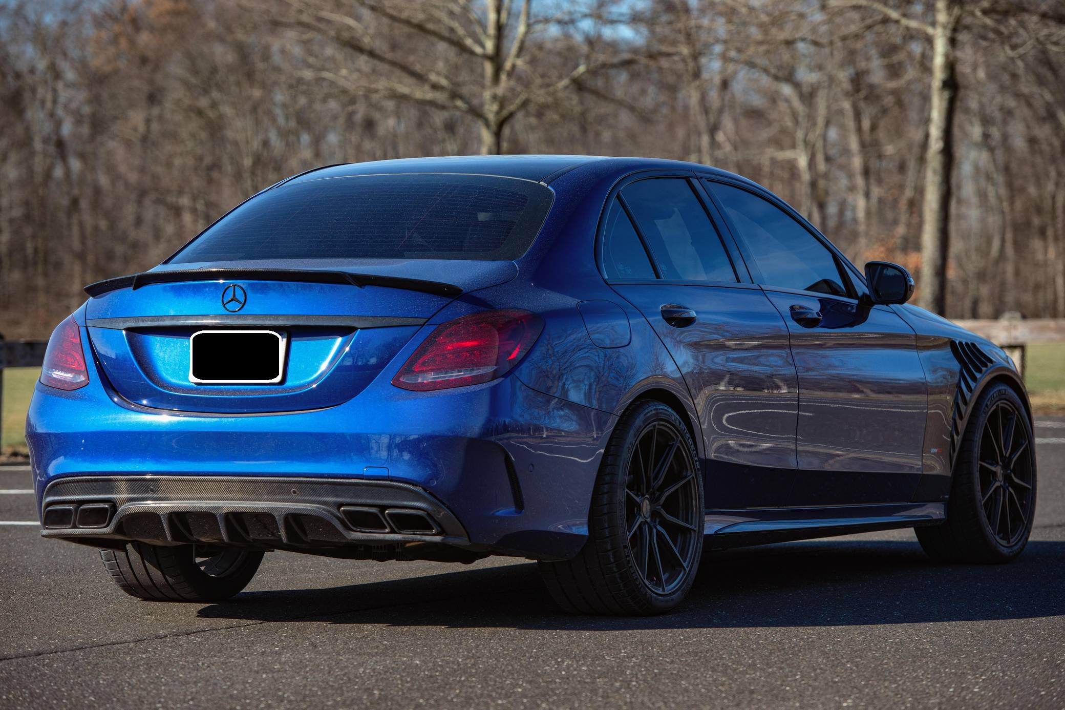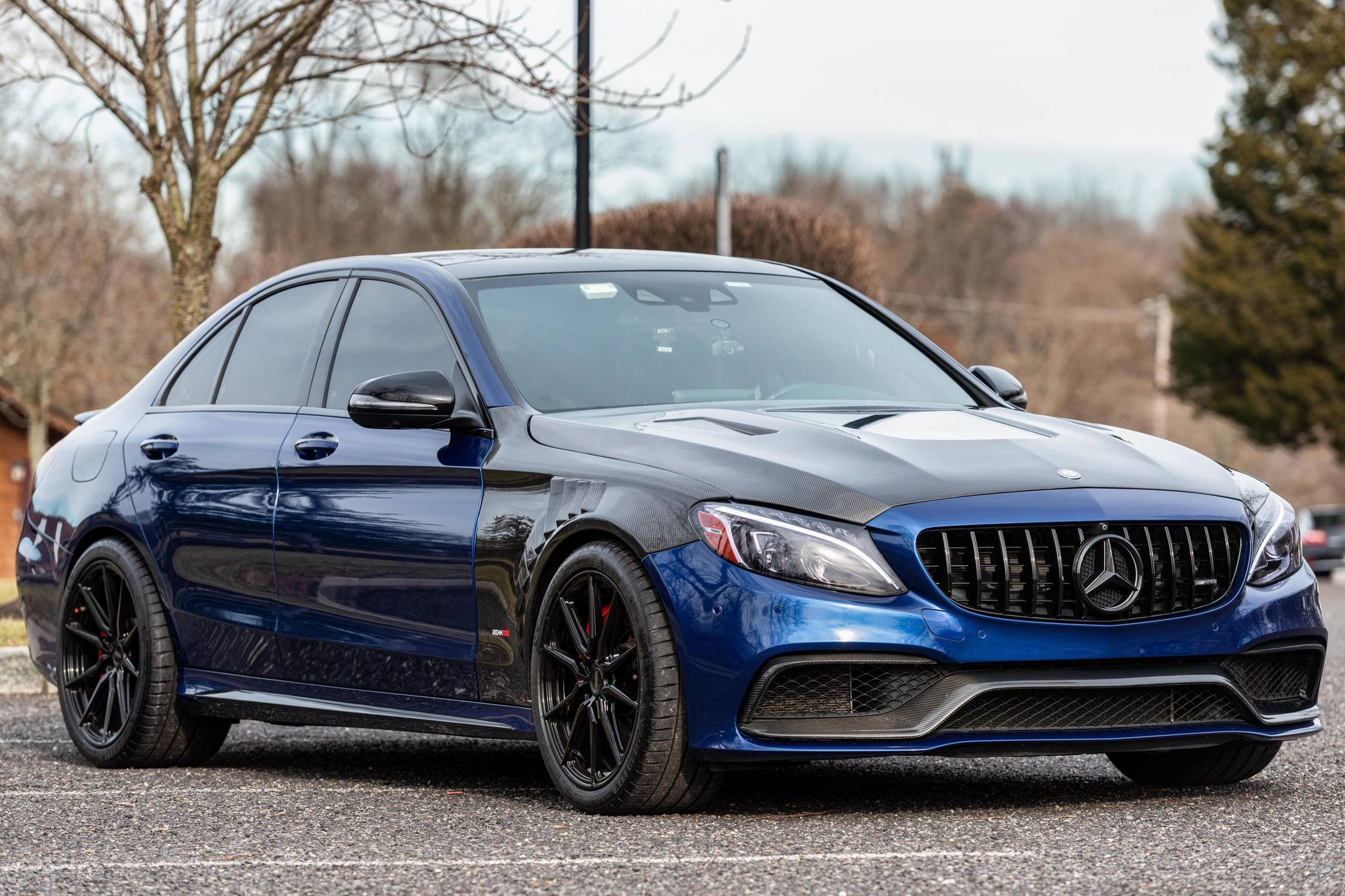 THIS… is a 2017 Mercedes-AMG C63 S Sedan, finished in Brilliant Blue Metallic with a Platinum White Pearl and black interior. The odometer on this C63 currently displays approximately 30,400 miles. According to the build sheet provided in the gallery, factory equipment includes the Night Package, an electronically controlled limited-slip differential, a panoramic sunroof, Designo Nappa leather upholstery, silver seat belts, an AMG Performance steering wheel, Keyless Go, a head-up display, and a Burmester surround sound system. Modifications to this C63 are extensive, and the full list is detailed below. include a RENNtech ECU upgrade, RENNtech stainless steel sport mufflers with electronic valves, 19-inch Vossen HF-3 wheels, a carbon fiber hood and front fenders, and STEK DYNOshield paint protection film applied to the exterior. Mercedes-AMG introduced the W205-based C63 for the 2015 model year, shortly after it morphed into a sub-brand within Mercedes-Benz. Offered as a sedan and as a coupe, the C63 surfed the downsizing wave sweeping across the industry by trading displacement for forced induction, yet it was quicker and sharper to drive than its predecessor. Enthusiasts who ordered the range-topping S model unlocked more power and additional equipment. Production ended in 2021. Power comes from an “M177” 4. 0-liter twin-turbocharged V8, rated at 503 horsepower and 516 lb-ft of torque in stock form. Due to the modifications performed to this C63, it may produce more power, but a dyno sheet was not provided to confirm. Output is sent to the rear wheels via a 7-speed SPEEDSHIFT MCT automatic transmission.
