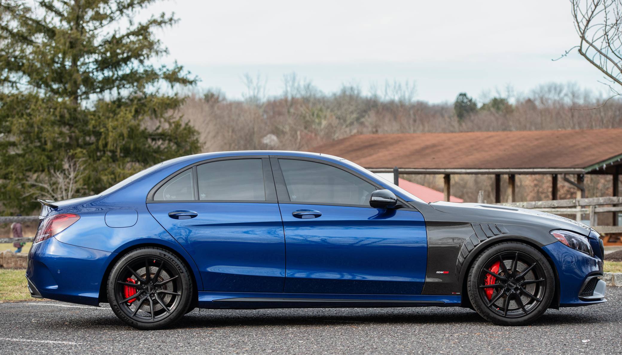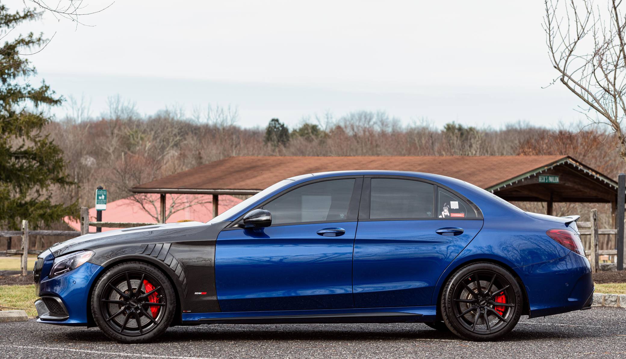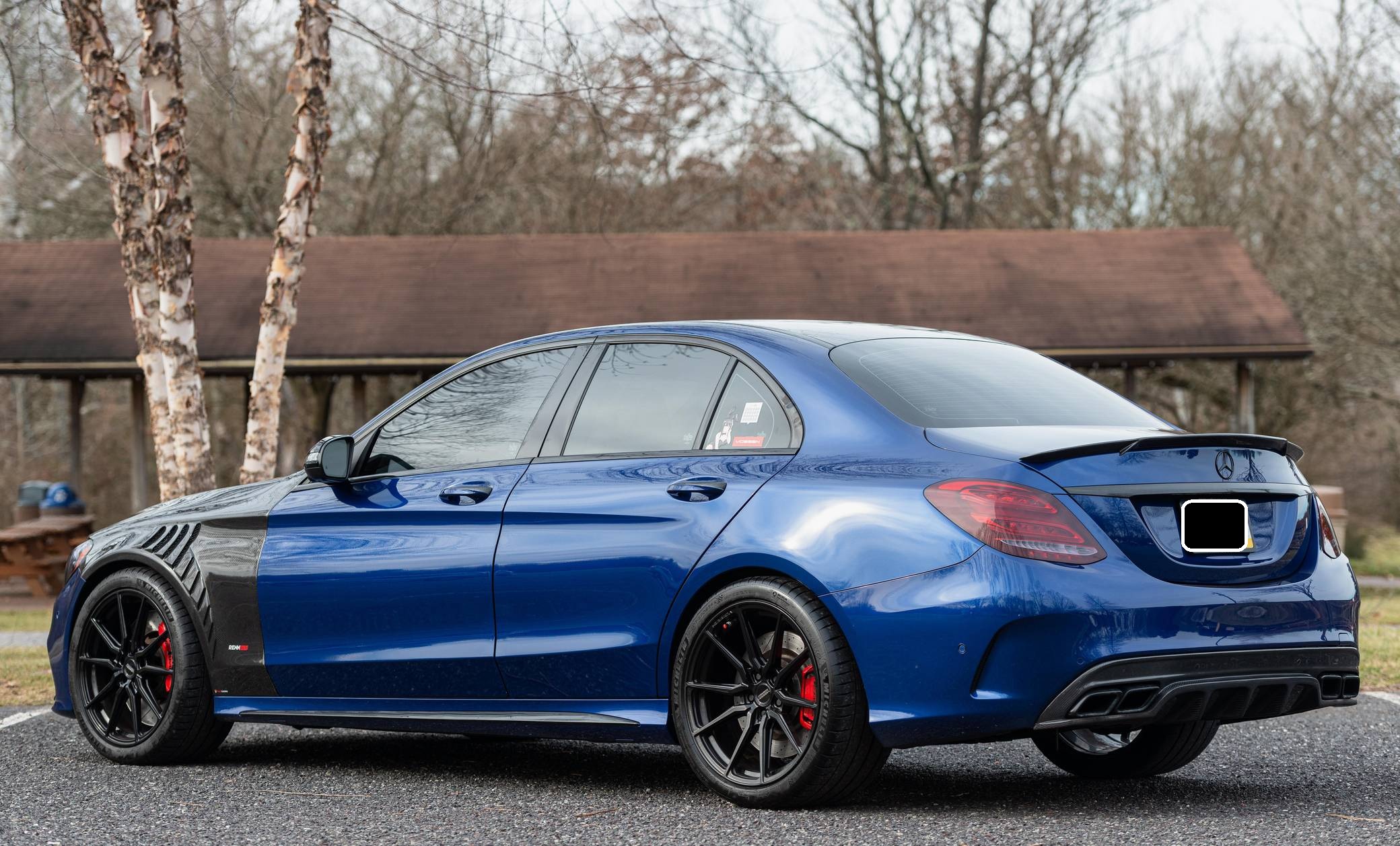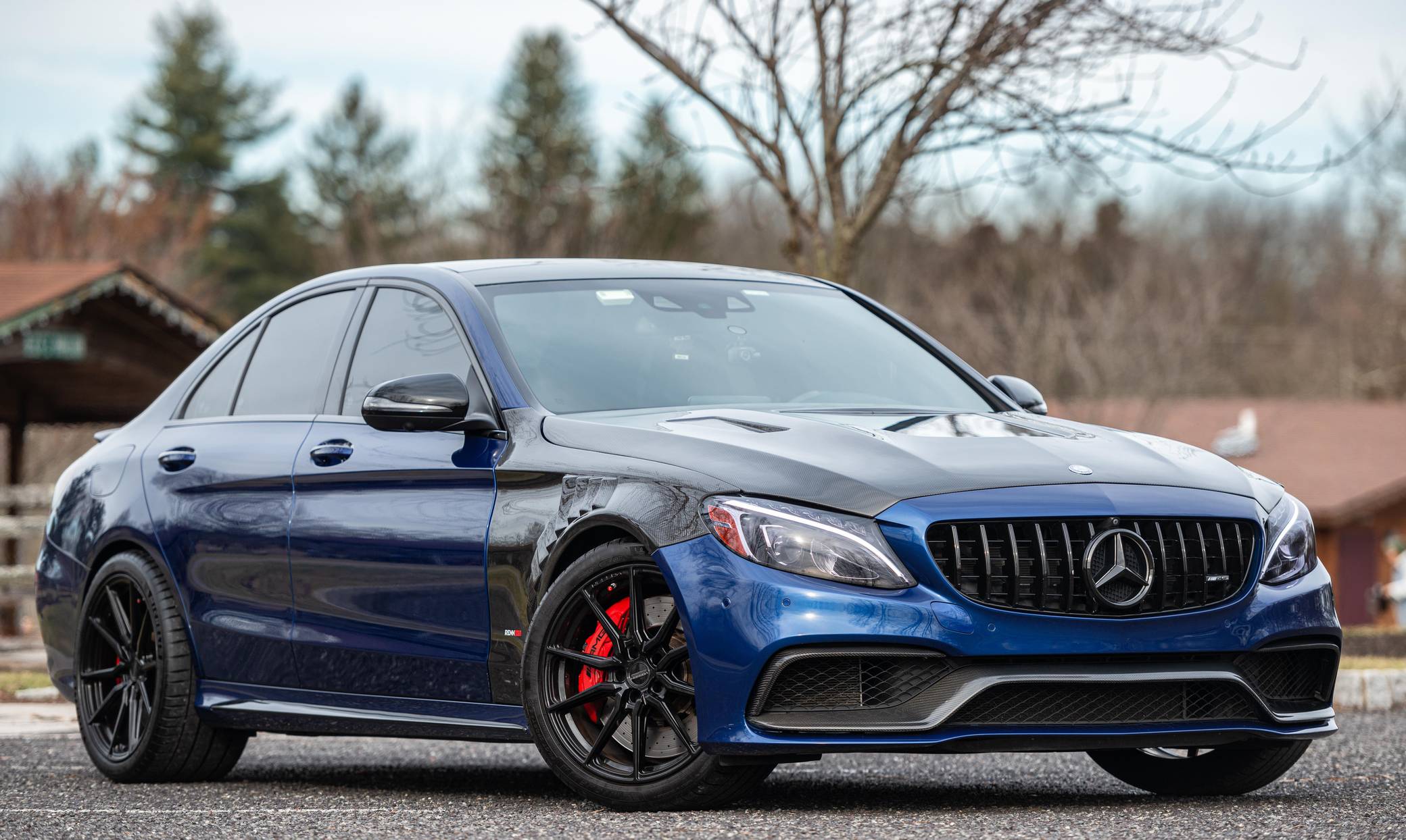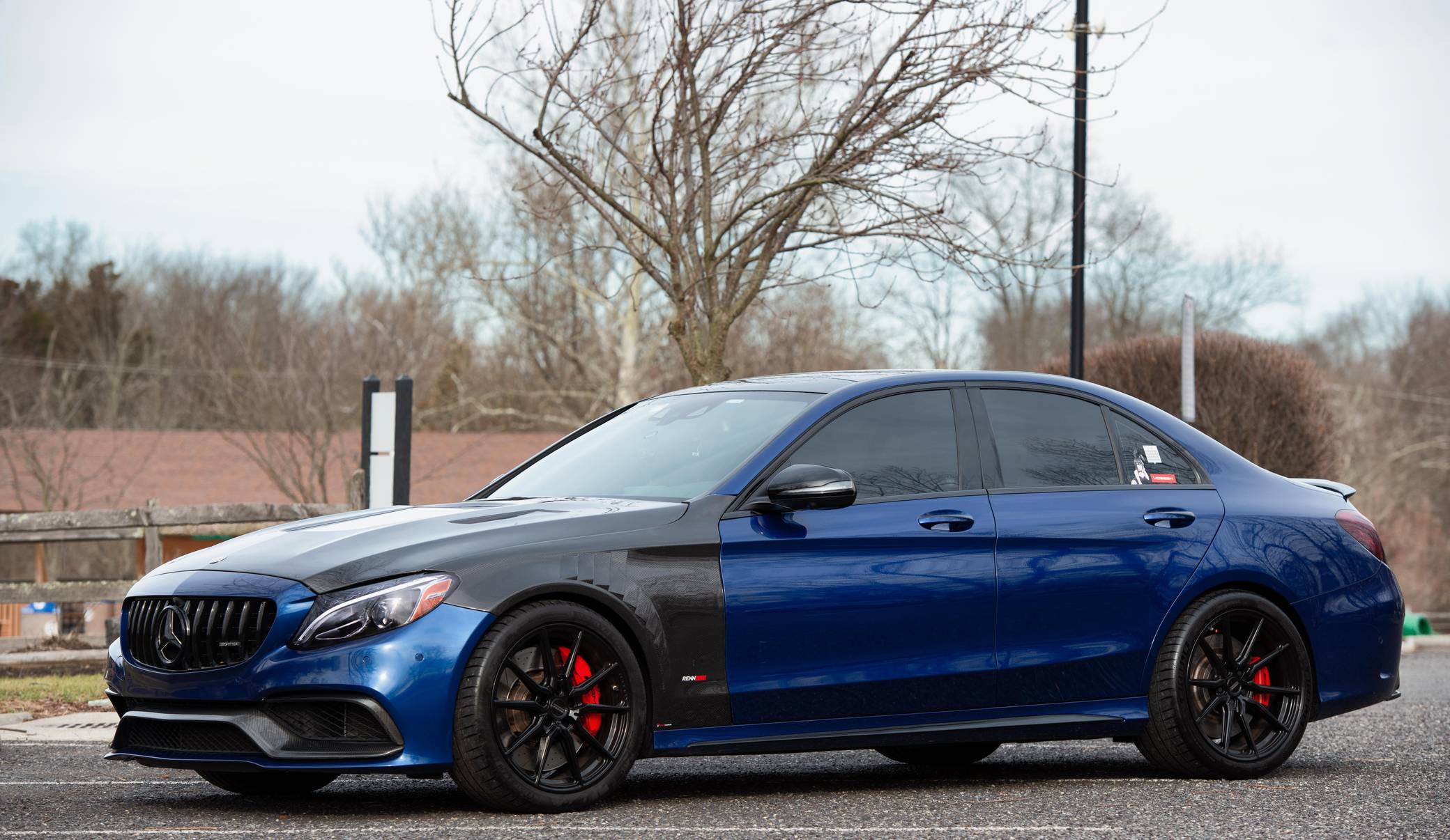 THIS… is a 2017 Mercedes-AMG C63 S Sedan, finished in Brilliant Blue Metallic with a Platinum White Pearl and black interior. The odometer on this C63 currently displays approximately 30,400 miles. According to the build sheet provided in the gallery, factory equipment includes the Night Package, an electronically controlled limited-slip differential, a panoramic sunroof, Designo Nappa leather upholstery, silver seat belts, an AMG Performance steering wheel, Keyless Go, a head-up display, and a Burmester surround sound system. Modifications to this C63 are extensive, and the full list is detailed below. include a RENNtech ECU upgrade, RENNtech stainless steel sport mufflers with electronic valves, 19-inch Vossen HF-3 wheels, a carbon fiber hood and front fenders, and STEK DYNOshield paint protection film applied to the exterior. Mercedes-AMG introduced the W205-based C63 for the 2015 model year, shortly after it morphed into a sub-brand within Mercedes-Benz. Offered as a sedan and as a coupe, the C63 surfed the downsizing wave sweeping across the industry by trading displacement for forced induction, yet it was quicker and sharper to drive than its predecessor. Enthusiasts who ordered the range-topping S model unlocked more power and additional equipment. Production ended in 2021. Power comes from an “M177” 4. 0-liter twin-turbocharged V8, rated at 503 horsepower and 516 lb-ft of torque in stock form. Due to the modifications performed to this C63, it may produce more power, but a dyno sheet was not provided to confirm. Output is sent to the rear wheels via a 7-speed SPEEDSHIFT MCT automatic transmission.