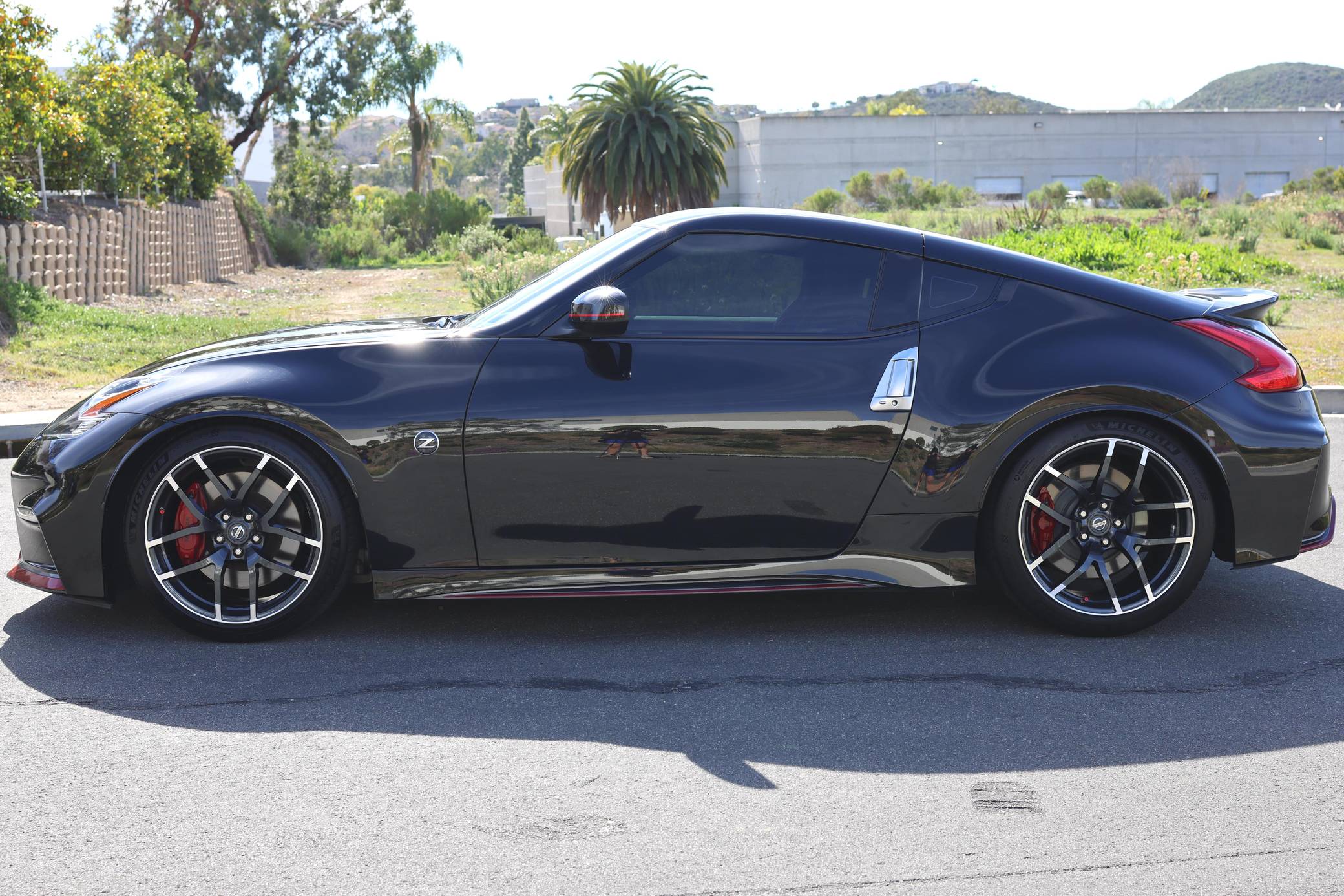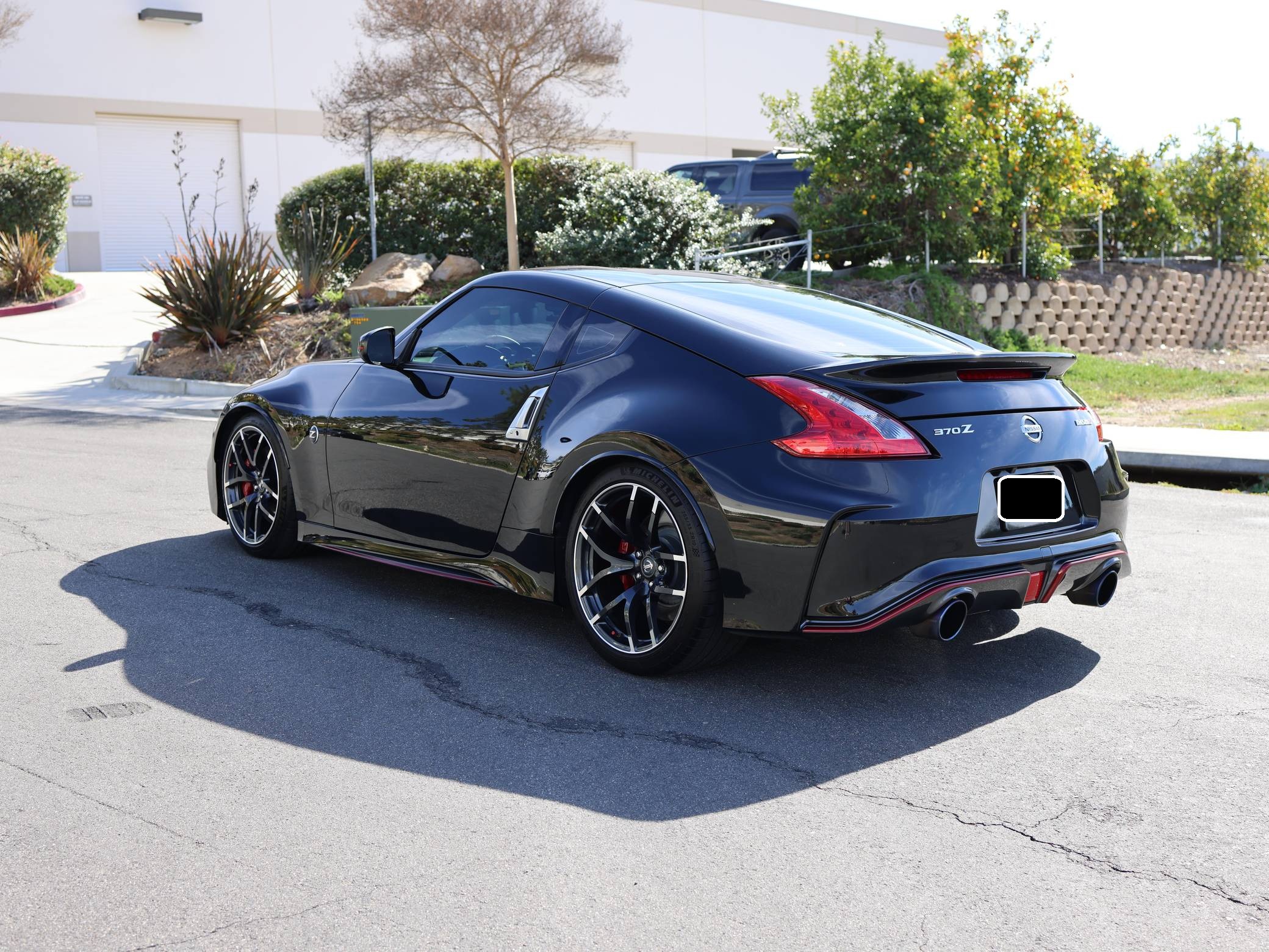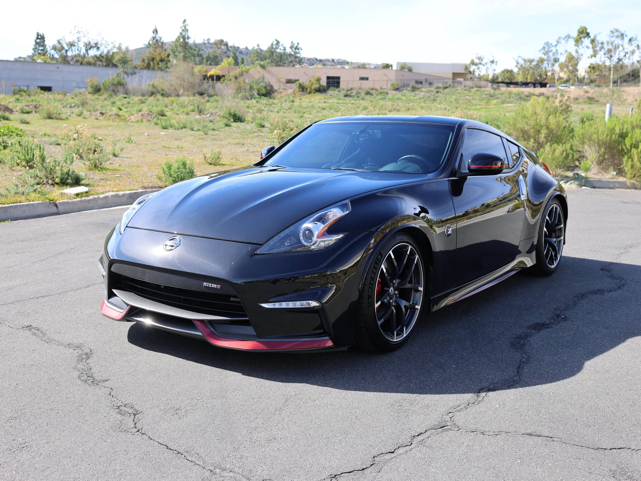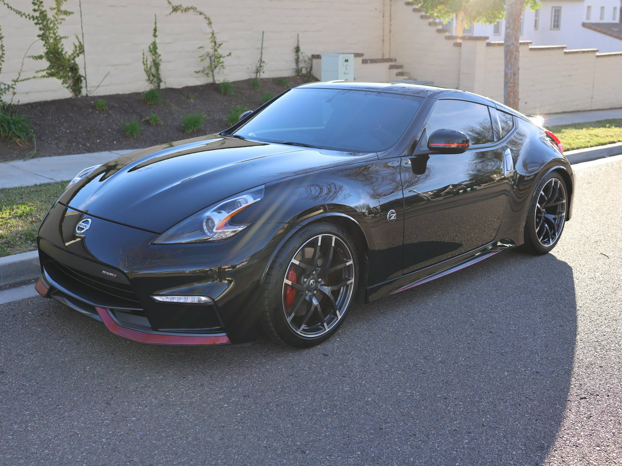 2016 Nissan 370Z Nismo Coupe, finished in Magnetic Black with a black and red interior. This 370Z is equipped with the desirable 6-speed manual transmission. Factory equipment includes the Nismo Package (Nismo-tuned engine and suspension system, strut tower brace, 19-inch RAYS forged alloy wheels, body kit, leather and Alcantara upholstery, red stitching, Recaro seats, plus Nismo-specific tachometer and shift knob), a viscous limited-slip differential, sport brakes, automatic xenon headlights, automatic climate control, and more as detailed below. Modification reported by the seller include a Motordyne Shockwave))) E370 catback exhaust system, a ZSpeed EZ Street Complete Performance Clutch and Flywheel Package with CMAK and Tilton HD master cylinder, an RJM Performance clutch pedal, a Z1 Motorsports urethane rear differential bushings set, SPL Parts rear camber arms, Swift Spec-R lowering springs, window tint, a Kenwood head unit, and more as detailed below. The Nissan 370Z advanced the Z car with more futuristic styling and a more powerful V6 engine than the 350Z it replaced. The high-performance Nismo model improved the engine, suspension, and exhaust while adding a body kit that was more aerodynamic than the base model's. Power comes from a 3. 7-liter V6 engine, rated at 350 horsepower and 276 lb-ft of torque. Output is sent to the rear wheels via a 6-speed manual transmission.