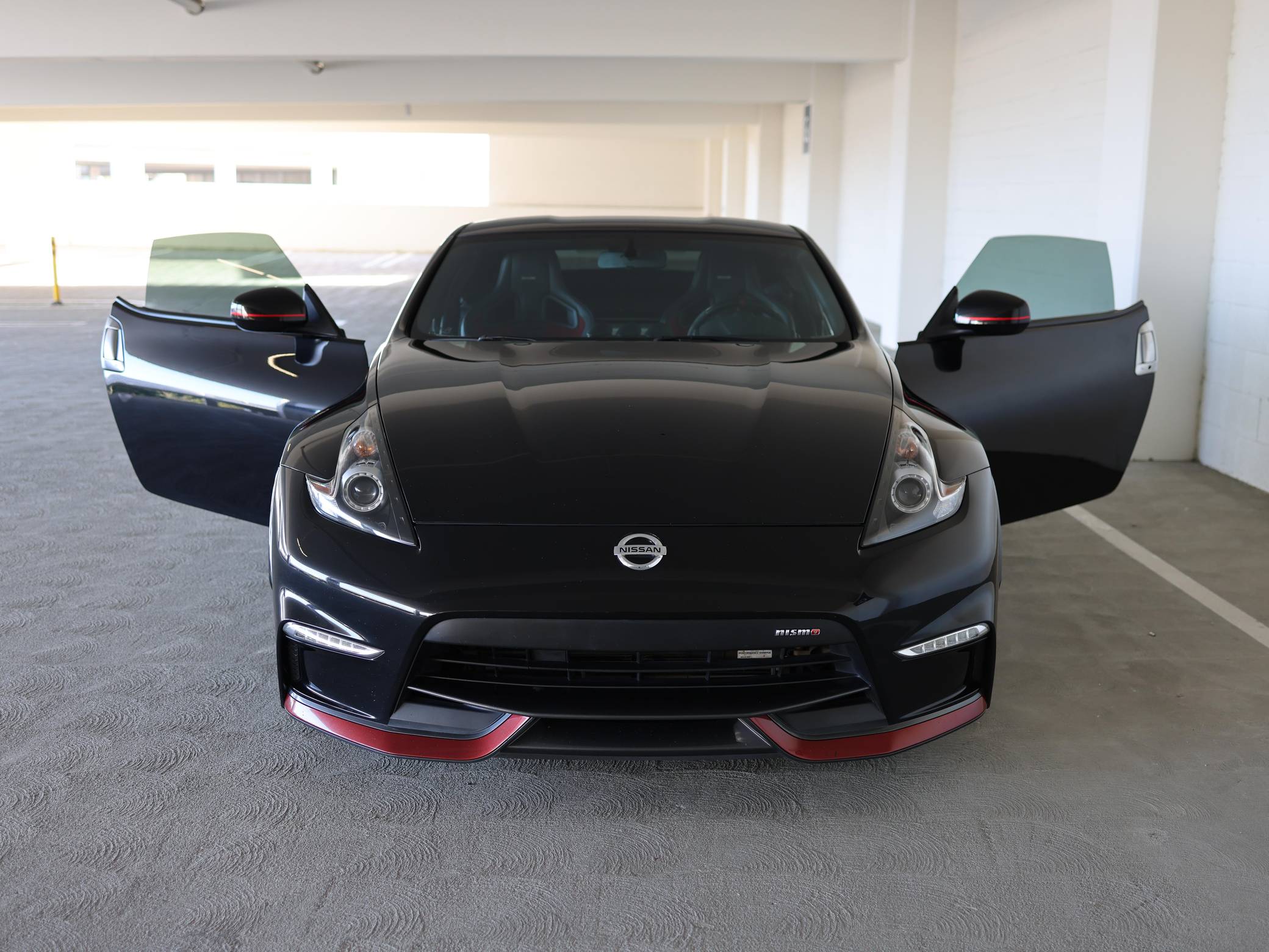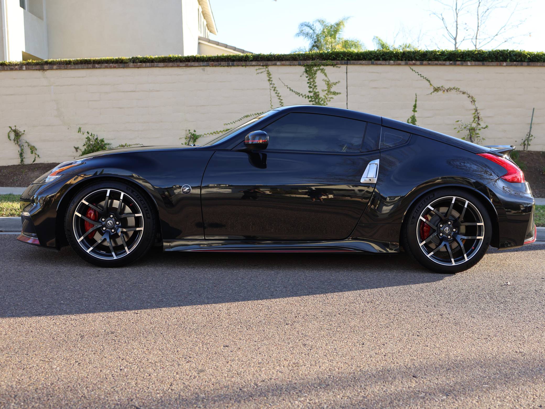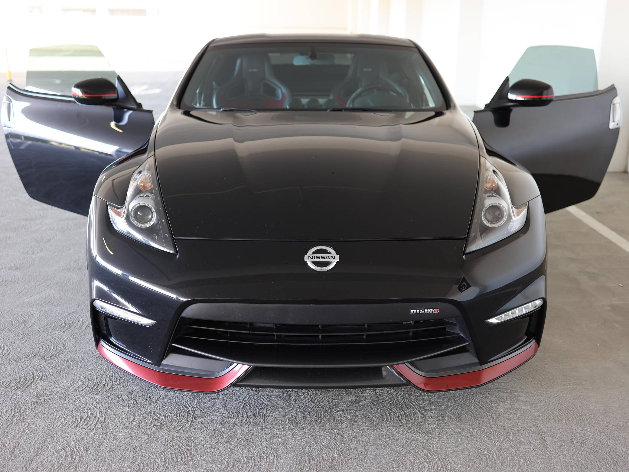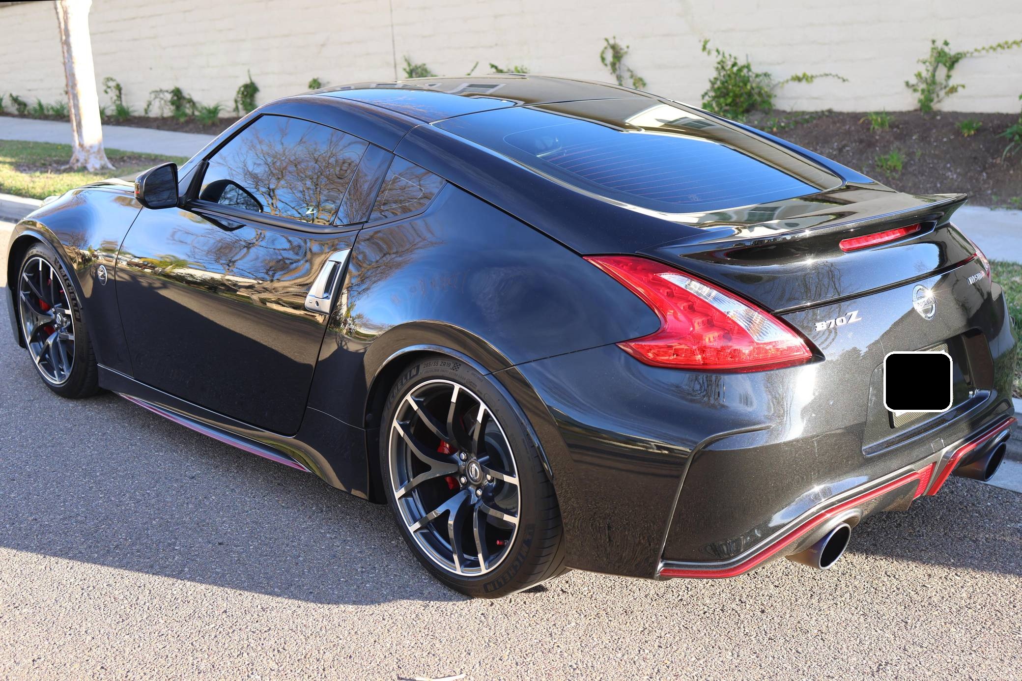 2016 Nissan 370Z Nismo Coupe, finished in Magnetic Black with a black and red interior. This 370Z is equipped with the desirable 6-speed manual transmission. Factory equipment includes the Nismo Package (Nismo-tuned engine and suspension system, strut tower brace, 19-inch RAYS forged alloy wheels, body kit, leather and Alcantara upholstery, red stitching, Recaro seats, plus Nismo-specific tachometer and shift knob), a viscous limited-slip differential, sport brakes, automatic xenon headlights, automatic climate control, and more as detailed below. Modification reported by the seller include a Motordyne Shockwave))) E370 catback exhaust system, a ZSpeed EZ Street Complete Performance Clutch and Flywheel Package with CMAK and Tilton HD master cylinder, an RJM Performance clutch pedal, a Z1 Motorsports urethane rear differential bushings set, SPL Parts rear camber arms, Swift Spec-R lowering springs, window tint, a Kenwood head unit, and more as detailed below. The Nissan 370Z advanced the Z car with more futuristic styling and a more powerful V6 engine than the 350Z it replaced. The high-performance Nismo model improved the engine, suspension, and exhaust while adding a body kit that was more aerodynamic than the base model's. Power comes from a 3. 7-liter V6 engine, rated at 350 horsepower and 276 lb-ft of torque. Output is sent to the rear wheels via a 6-speed manual transmission.