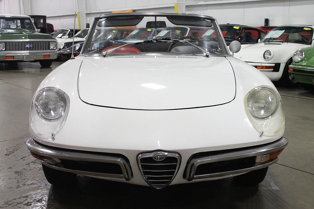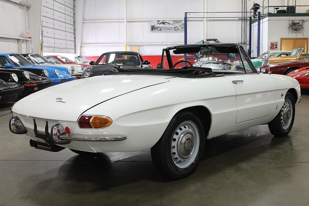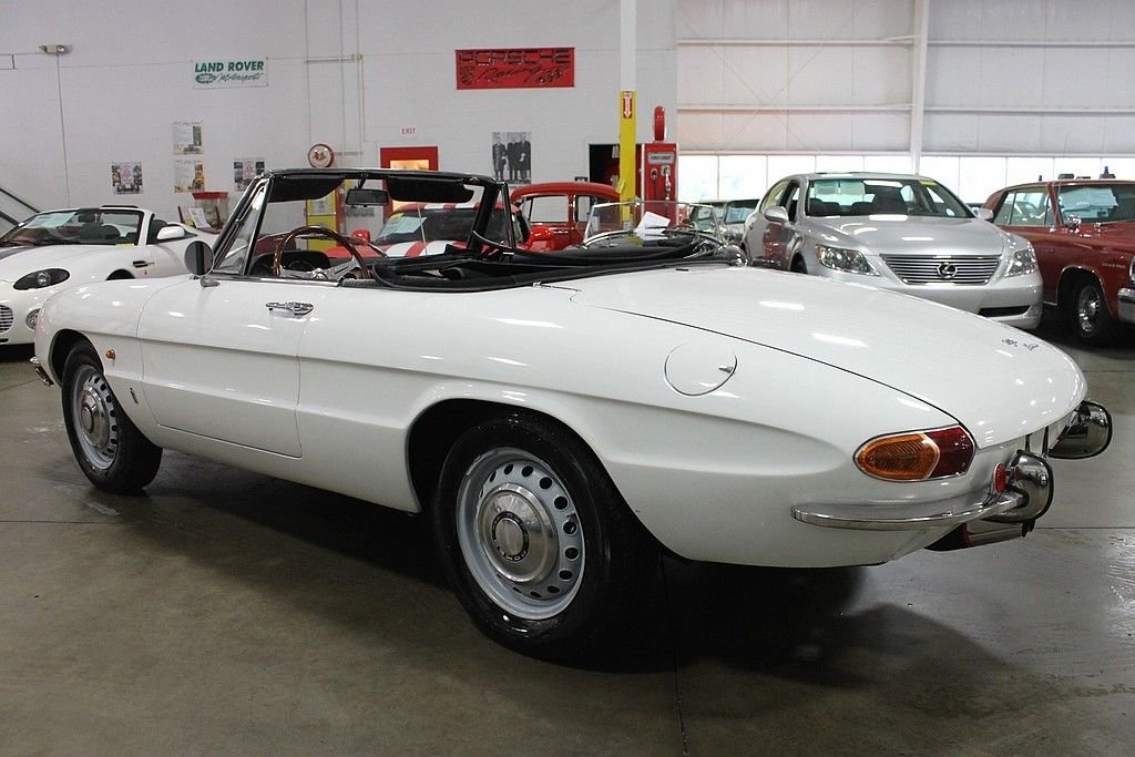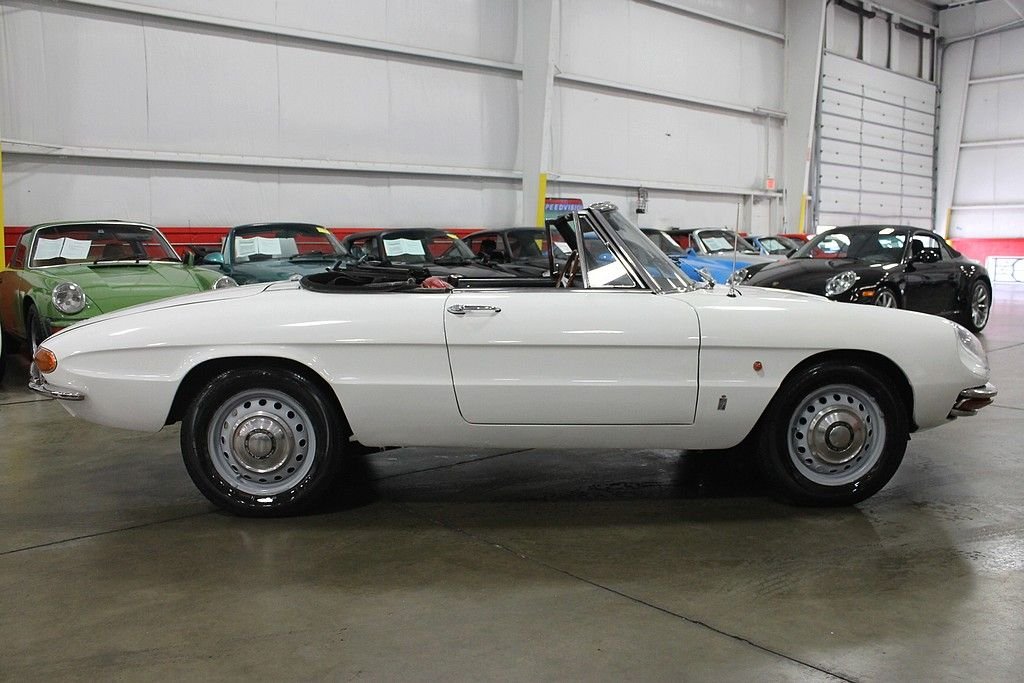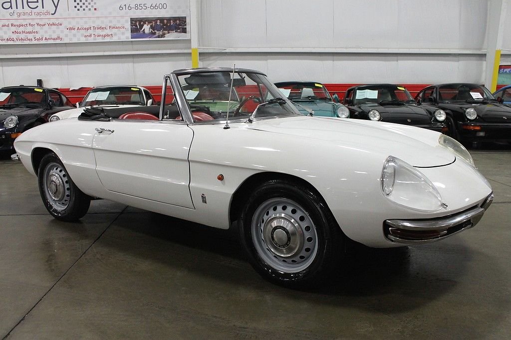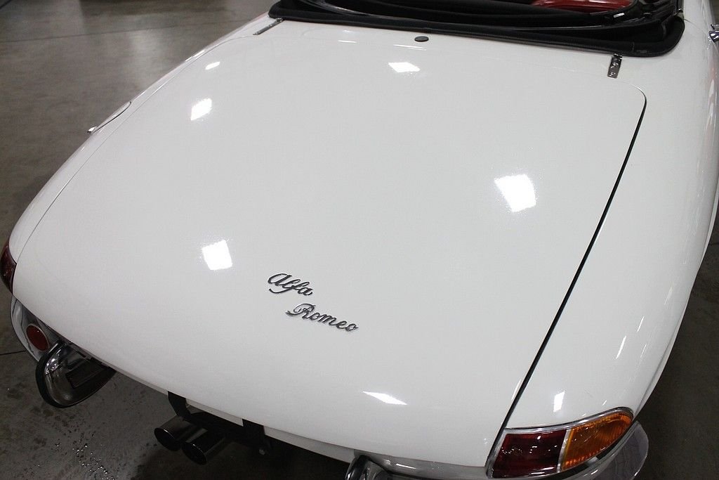 The Alfa Romeo Duetto debuted at the Turin Motor Show in 1961 and was perceived very well, however with the strong sales of the existing models and current economic times it was not put into production till 1966 and coming to the USA in 1966 & 1967. The other cool aspect of this Duetto car that escalates the value even more is that this was the last car that the founder of Pininfarina – Battista “Pinn” Farina had a personal association with. With a solid 109 hp 1570 cc 4-cylinder that cranked out 118HP, it is a joy to drive and with the dual exhaust a pleasure to listen to. With only 1600 of these “boat tail” bodies produced and a fraction of those sent to the American market, makes this car a solid acquisition and an enjoyable investment for several reasons. This specific vehicle shows very well and has had some very important Maintaince performed along with routine service. Painted in Blanco with stunning Rosso Red Leather Seats, this is a car that begs for attention in a very subtle way! Special attention was given to the engine as a full engine rebuild was performed and compression was measured at 170-180 in ach cylinder. Further improvements include driveshaft has been rebuilt, new clutch/pressure plate/throw-out bearing, new ATE brakes, new suspension bushings, new rear drape, carpet, and carpet mats, Alpine head unit, Alpine amp, and JBL speakers, Italian solex carbs; K&N air filter, Aluminum motor mounts, and all stainless bumpers professionally polished. Factory style new cloth top was also installed along with new rear plastic window. The car runs and drives very nice and is a certain head turner as people have seen an Alfa Romeo, but very few have had the pleasure to see the Duetto in person. With only 38k miles that show on odometer and believed to be accurate, this is the car to have. With only 1600 of these “boat tail” bodies produced and a fraction of those sent to the American market, makes this car a solid acquisition and an enjoyable investment for several reasons.