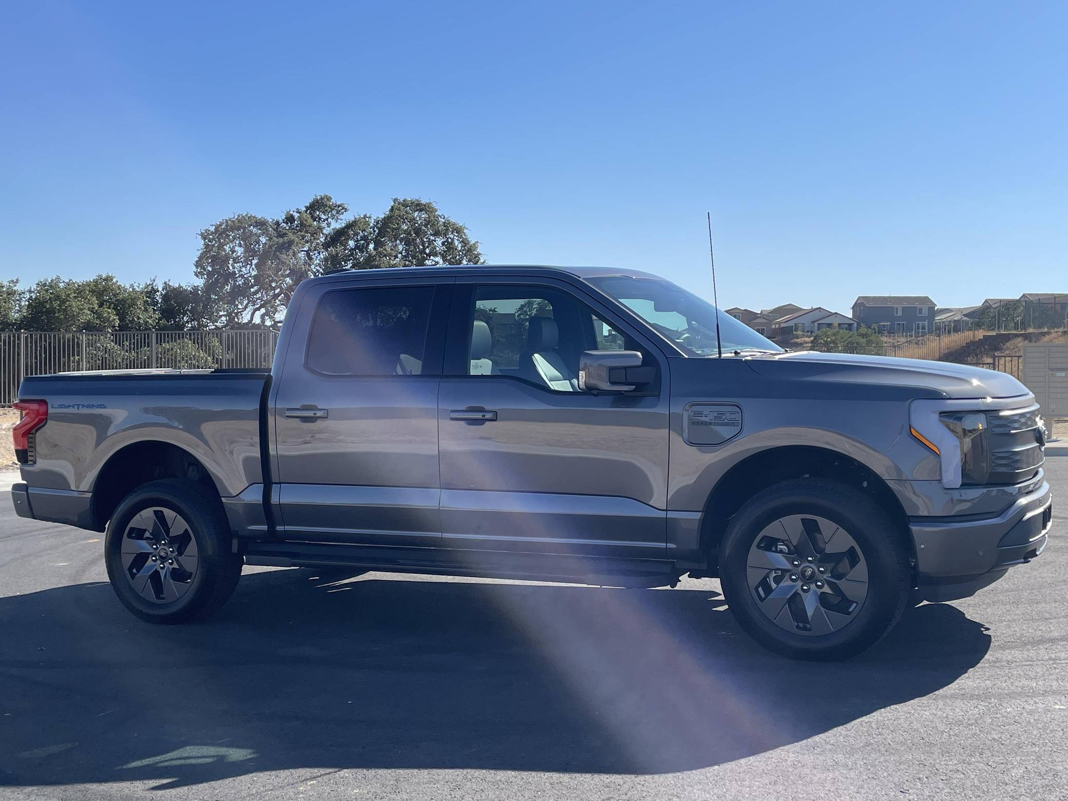 2022 Ford F-150 Lightning Lariat, finished in Carbonized Gray Metallic with a black interior. This Lightning's odometer currently displays approximately 2,000 miles. Factory equipment includes Equipment Group 511A, which adds the Lariat Lightning Series, Ford Co-Pilot360 Active, the Tow Technology Package, onboard scales with Smart Hitch, and a twin-panel sunroof. Additional equipment includes 20-inch dark gray alloy wheels, an electric drive e-lock rear axle, leather upholstery, 10-way power-adjustable heated and ventilated front seats, interior work surface, a 15. 5-inch center screen, a 360-degree camera, and more as detailed below. The seller reports no modifications. Formerly used on the high-performance variant of the F-150, Ford revived the Lightning nameplate for the 2022 model year for their first all-electric pickup. All Lightnings come equipped with dual electric motors and all-wheel drive. Two battery packs are available, a 90-kilowatt-hour standard range or a 131-kilowatt-hour extended range battery. Ford claims the Lightning is the fastest accelerating F-150 yet, with a 0 to 60 time in the mid-4 second range when equipped with the extended range battery. Power comes from a pair of electric motors (one per axle), which draw electricity from a 131-kilowatt-hour lithium-ion battery pack to zap the four wheels with 580 horsepower and 775 lb-ft of torque. The Lightning earned a maximum driving range rating of 320 miles from the EPA.