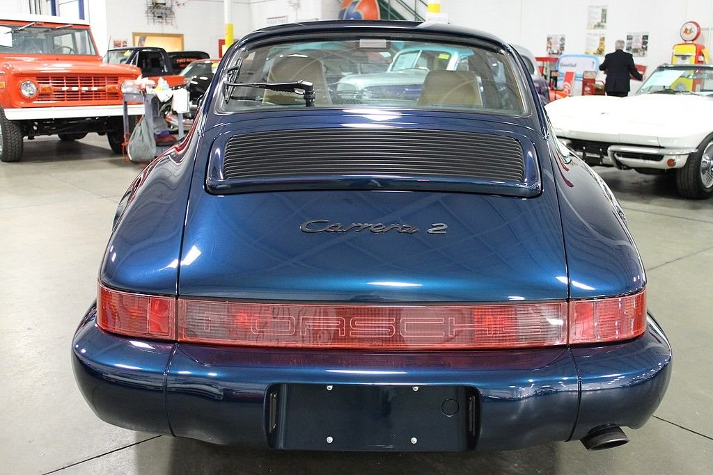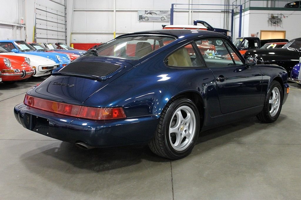 The Porsche 964 offered the most design refinement to date to the popular and beloved 911 model. For the first time the 911 was equipped with power steering, ABS brakes, coil over suspension and a new, powerful and proven reliable 3.6 liter power plant. We are pleased to offer this enthusiast owned, 3 owner 1993 Porsche 911 / Type 964 Carrera 2 Coupe. This highly optioned 964 was special ordered new through the code 09991 manufacturer exclusive program, this would include special order “x” options of: X19 Leather Lower Dashboard, XC8, Light Rootwood Gear Shift Knob, and XD4 Porsche Crest Rim Caps. Other options include: 220 Locking Differential, 288 Headlight Washers, 331 AM/FM Cassette, 425 Rear Wiper, 437 Comfort Seat Left, 438 Comfort Seat Right, 454 Automatic Speed Control, 494 Rear Shelf Speakers with Amplifier, 935 Seat Cover Rear RLL , 980 Seat Cover Raff Leather and C02 Catalytic Converter. This 964 Coupe is finished in desirable Amazon Green Metallic exterior paint over very attractive two tone tan / charcoal interior. Cosmetically the car stands very tall and exhibits all the signs of consistent care and owner enthusiasts. The interior shows very little wear consistent with the use and care the car has received, and the Amazon Green Metallic paint still shows lots of life as the car has been kept and maintained at a detailed level. The drivability of this 964 is outstanding proving its mechanical fitness. The car accelerates strong in every gear, shifts perfectly, stops straight and the suspension is tight and true, delivering the driver satisfaction that is fueling the demand for the early 911's. The Porsche 911 is still proven to be a very usable car as it reaches investment status. The 1993 Porsche 911 / 964 is an opportunity to capitalize on both. Original books, tools and some service history included with the sale.