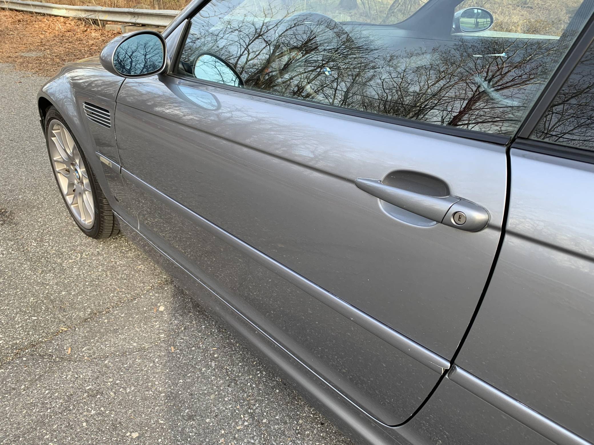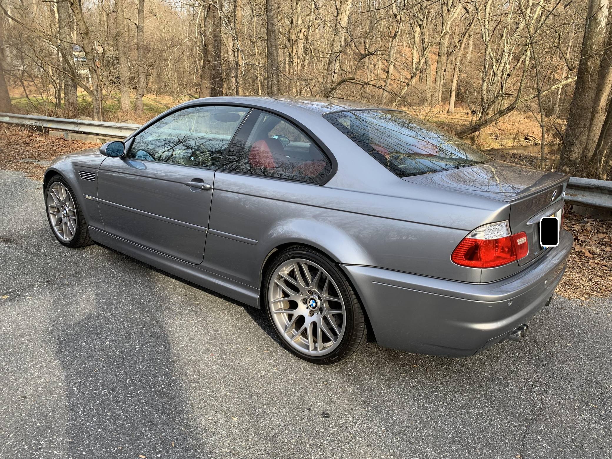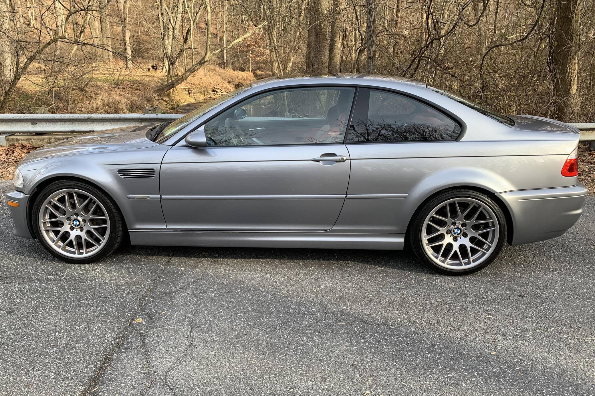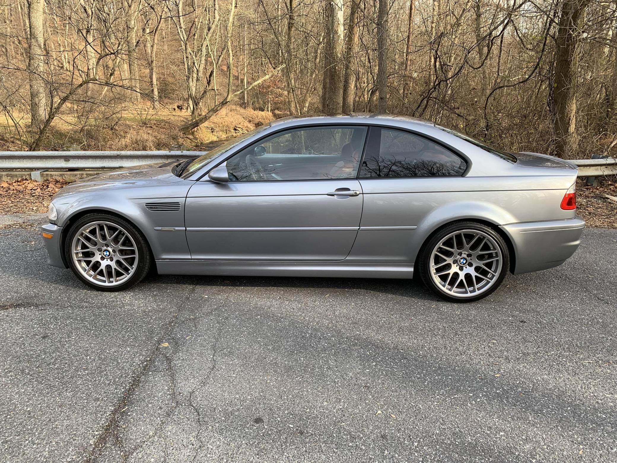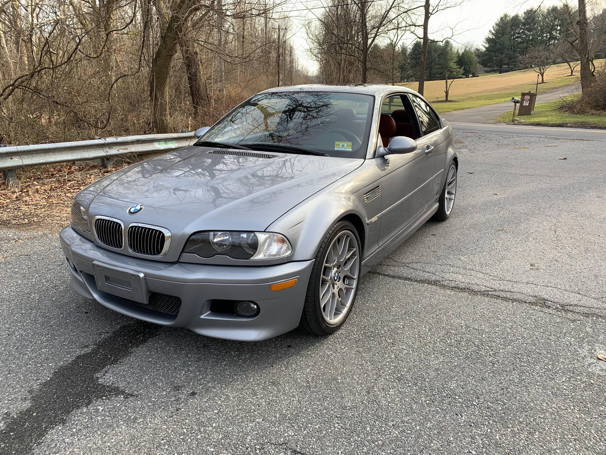 2006 BMW M3 Coupe, finished in Silver Grey Metallic with an Imola Red interior. According to the build sheet shown in the photo gallery, equipment on this M3 includes the Competition Package (compound brakes, cross-drilled rotors, 19-inch Style 163 wheels, aluminum trim, M sport steering wheel), electric sunroof, power-adjustable and heated front seats, a Harman/Kardon sound system, and more detailed below. The seller reports no modifications. Service invoices included in the photo gallery shows that this M3 has received a major service in May 2021, at 137,862 miles, which included a full rebuild of the VANOS system, installation of anti-rattle plates, new cam gear bolts, a new thermostat, a valve adjustment, a cam timing adjustment, and more detailed below. The third-generation M3 was the final one to utilize a naturally aspirated straight-6 engine and was sold from 2000 to 2006. Power comes from a 3. 2-liter "S54" inline-6, rated at 333 horsepower and 262 lb-ft of torque. Power is sent to the rear wheels via a 6-speed automatic transmission.