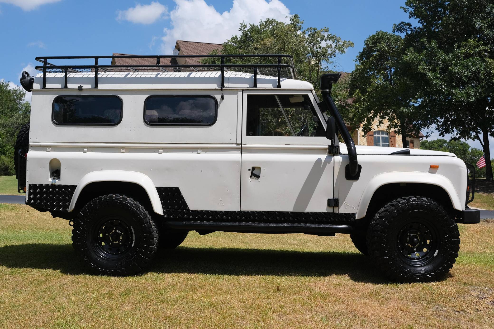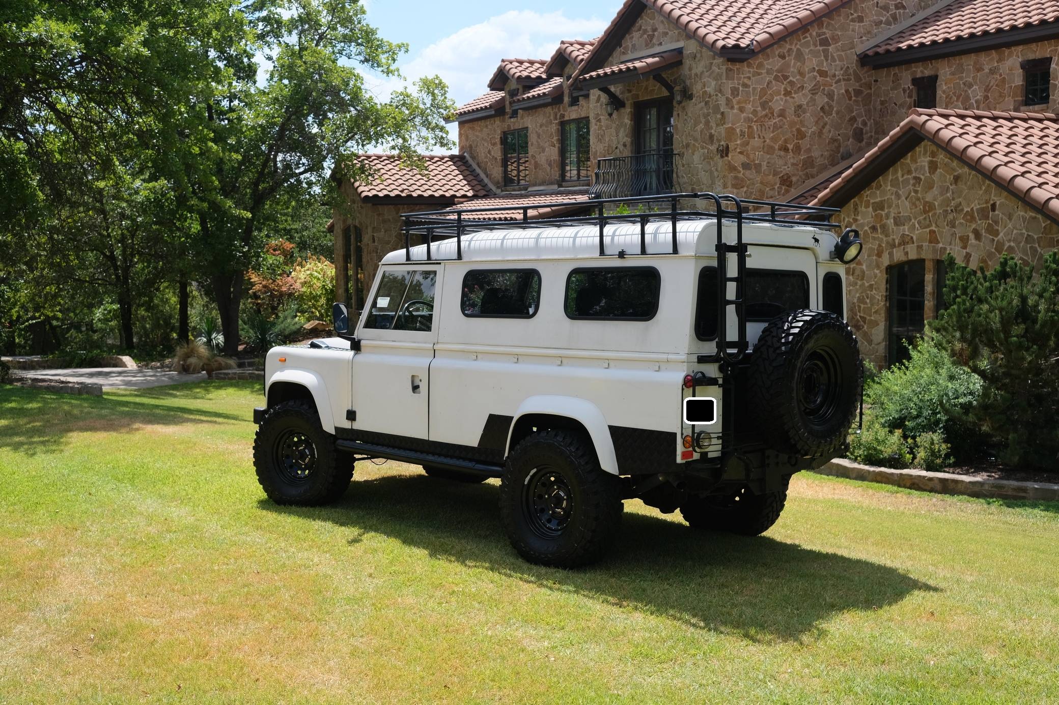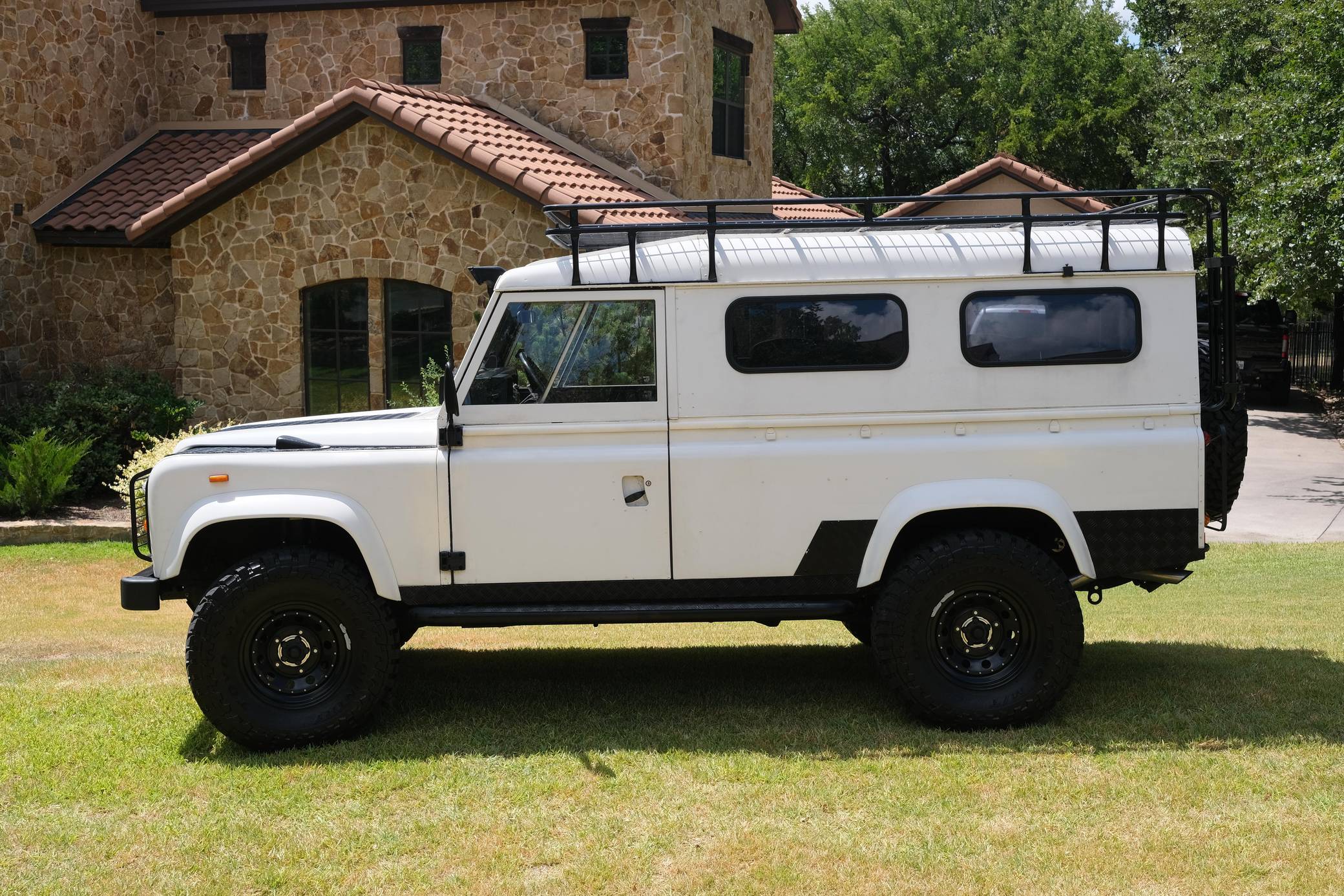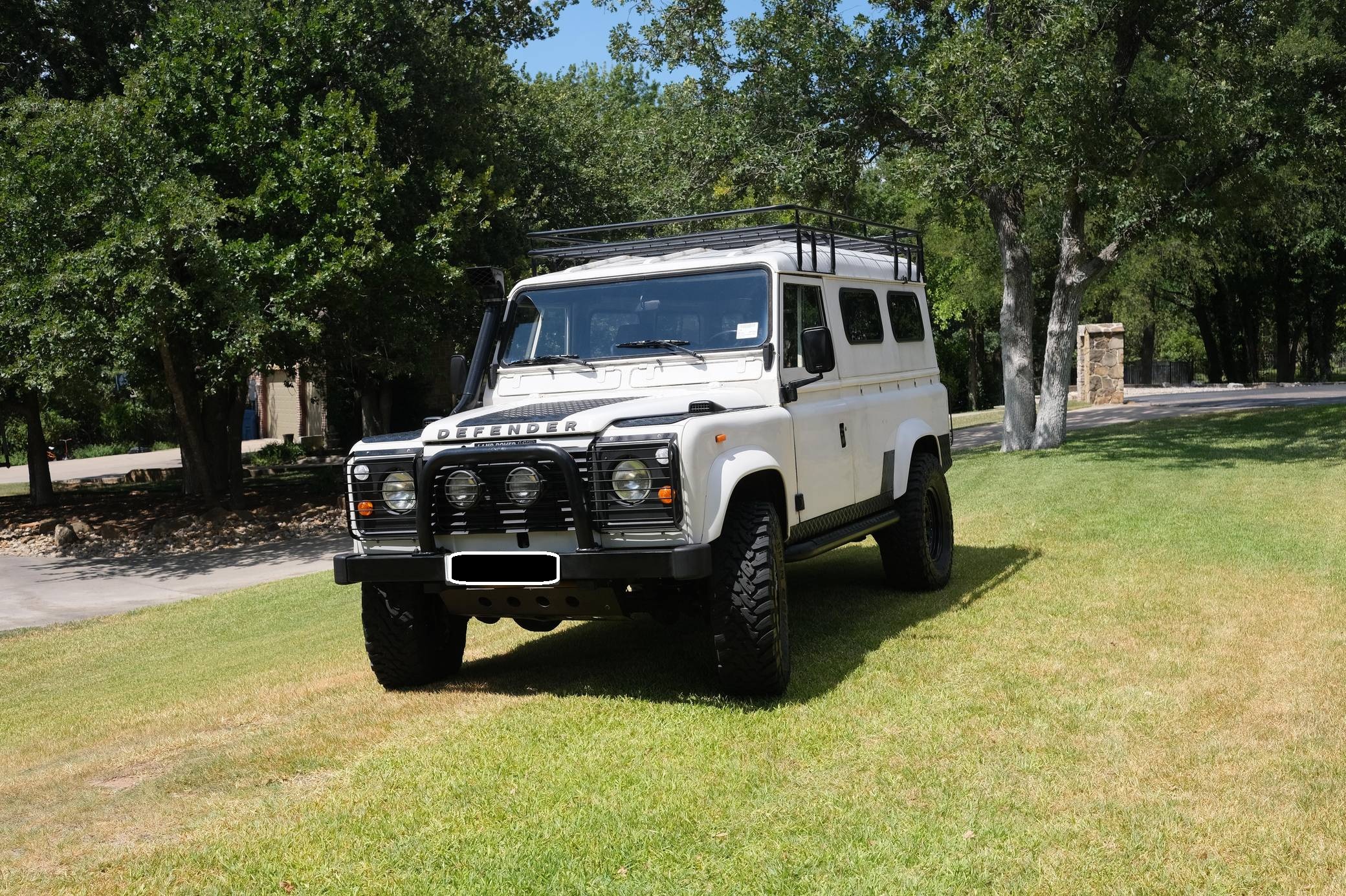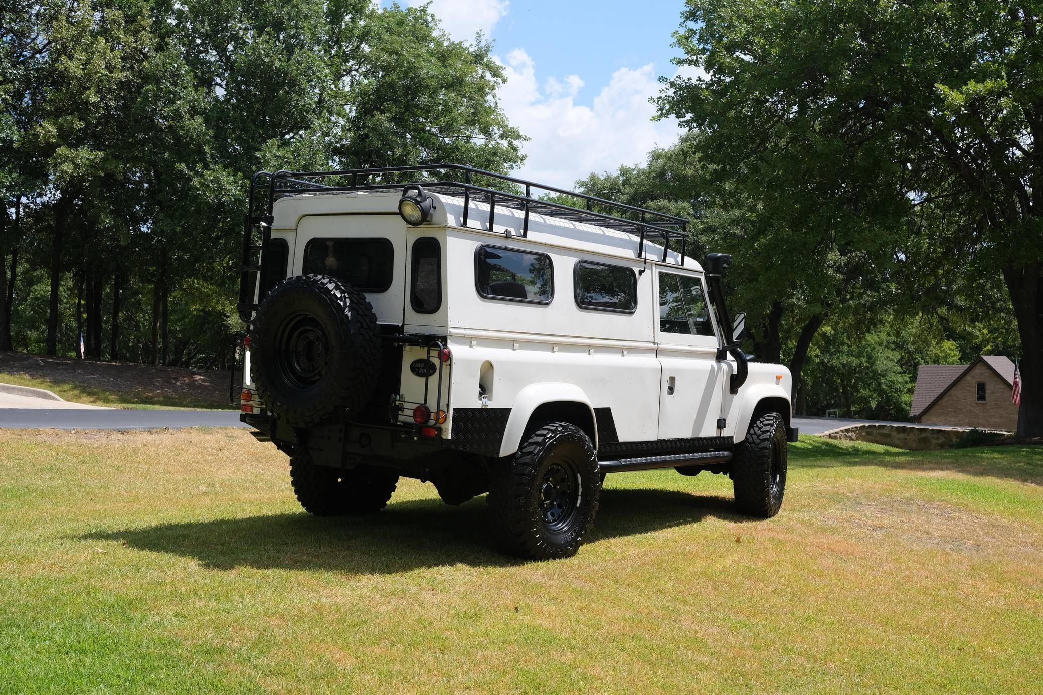 THIS. . . is a 1983 Land Rover 110, finished in white with a gray interior. Reportedly imported from England in January 2021, it's equipped with a metric instrument cluster and its odometer displays about 215,500 kilometers, which represents approximately 133,900 miles. Modifications reported by the seller include a Weber carburetor, a snorkel-type air intake system, a bigger exhaust system, 16-inch wheels, "DEFENDER" lettering on the hood, diamond plating on the hood, fenders, and rocker panels, a roof rack with a ladder, Exmoor Trim rear jump seats with seatbelts, Mitchell fans in the rear compartment, a Grundig CD player, and aftermarket speakers. Service records shown in the gallery detail some of the repairs and maintenance performed on this 110. The clutch was replaced in March 2022 and a new headgasket was installed in July 2021. Land Rover introduced the four-door 110 and the two-door 90 in 1983 and 1984, respectively, to replace the long-running Series III. While both models looked a lot like their predecessors, they offered users a more up-to-date interior, a permanent four-wheel drive system, and a coil spring suspension system. The 110 and the 90 morphed into the original Defender in 1990, though the numerical designations remained to differentiate two- and four-door models, and production carried on with minor updates until 2016. Power comes from a 2. 3-liter 4-cylinder engine, rated at about 74 horsepower and 120 lb-ft of torque. The modifications might increase those figures but a dyno sheet is not available. Called "11H" internally, the engine spins the four wheels via a 5-speed manual transmission and a 2-speed transfer case.