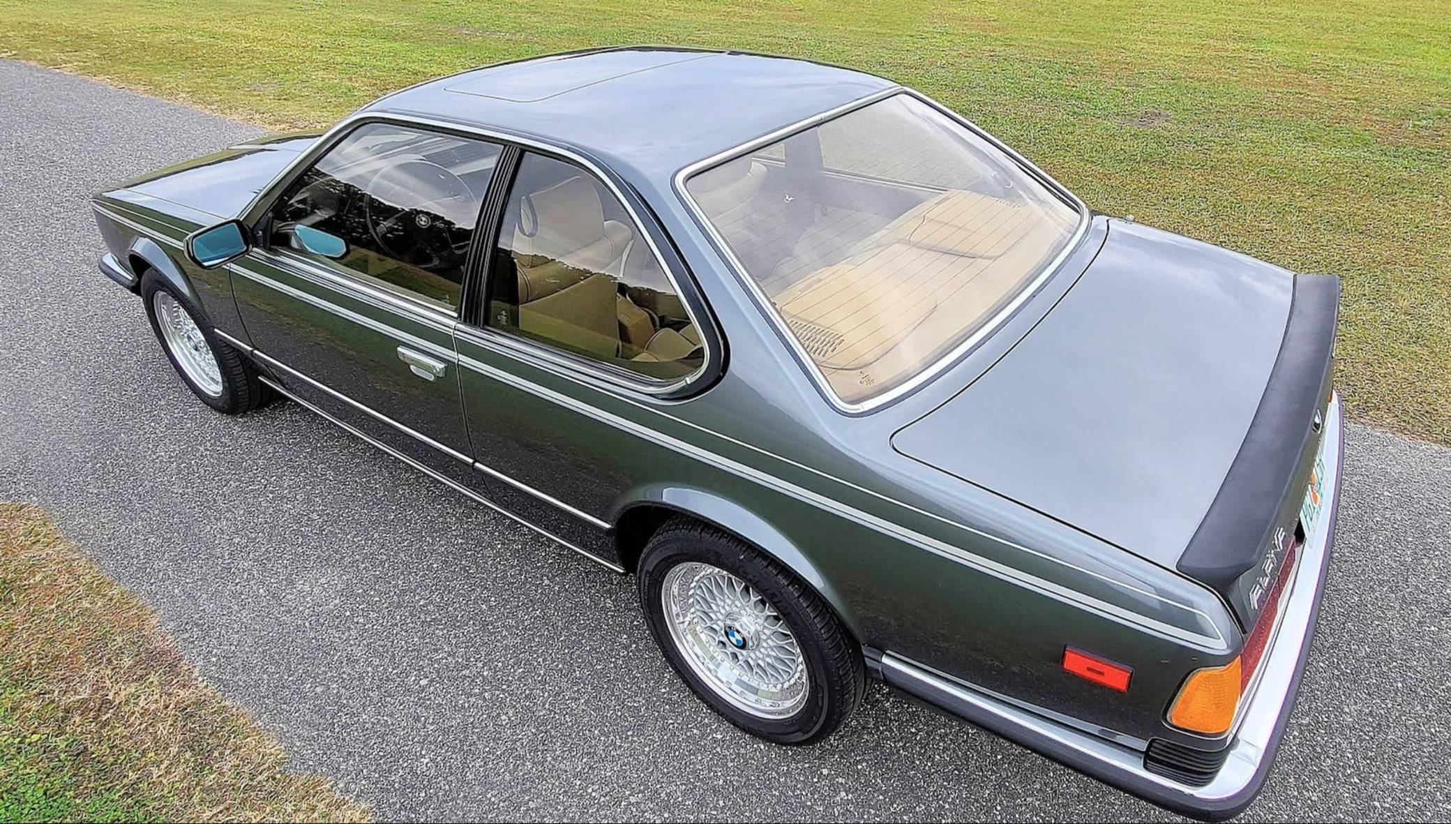 THIS… is a 1985 BMW 635CSi, finished in Dolphin Gray Metallic with a Pearl Beige interior. It also notes that this BMW was California- and Florida-owned between 1992 and 2021. Factory equipment includes a rear spoiler, a power-operated sunroof, leather upholstery, air conditioning, and an on-board computer. Modifications reported by the seller are limited to three-piece 16-inch BBS wheels and a Sony head unit. The factory head unit is included in the sale. Introduced in 1976 as a Karmann-built coupe based on the E12 5 Series, the E24 — or "Sharknose" as it's called by enthusiasts — was the successor to the famed E9-generation 2800 and 3. 0 CSi. In 1982, manufacturing left Karmann and BMW began in-house production of the E28 5 Series and E24 6 Series chassis with the then-new "M30" engine. The coupe was one of BMW's most expensive and recognizable models of the 1980s, and production of the E24 ended in 1989. Power comes from a 3. 4-liter "M30" inline-six engine, rated at about 218 horsepower and 229 lb-ft of torque. Output is sent to the rear wheels via a 4-speed automatic transmission.