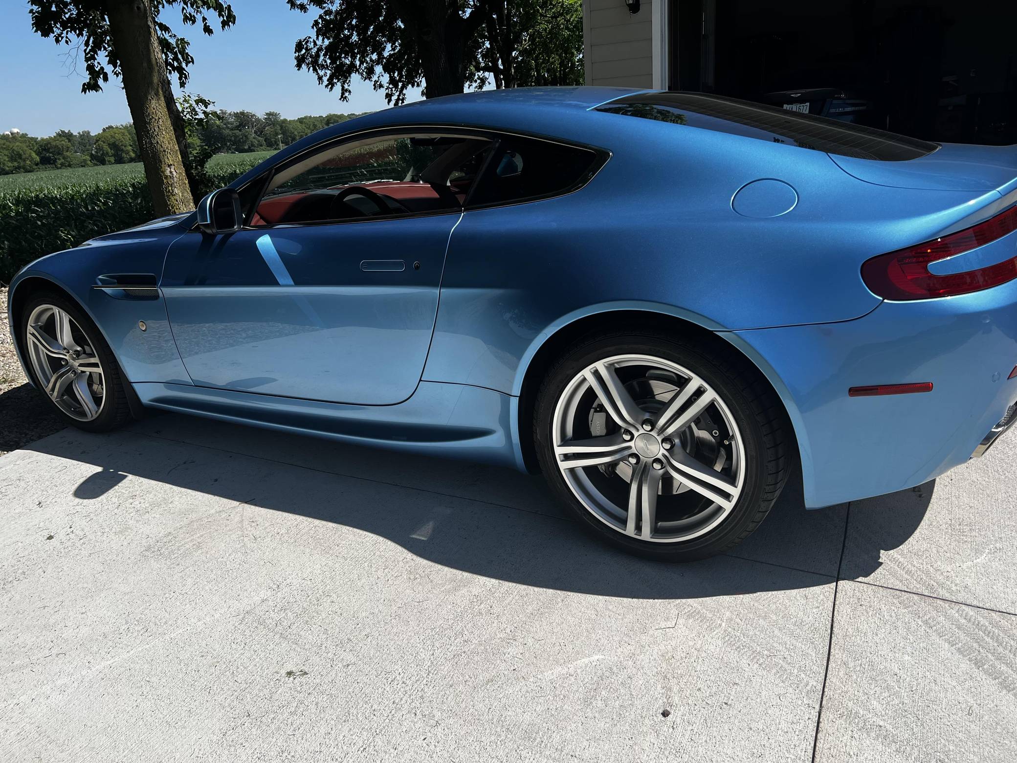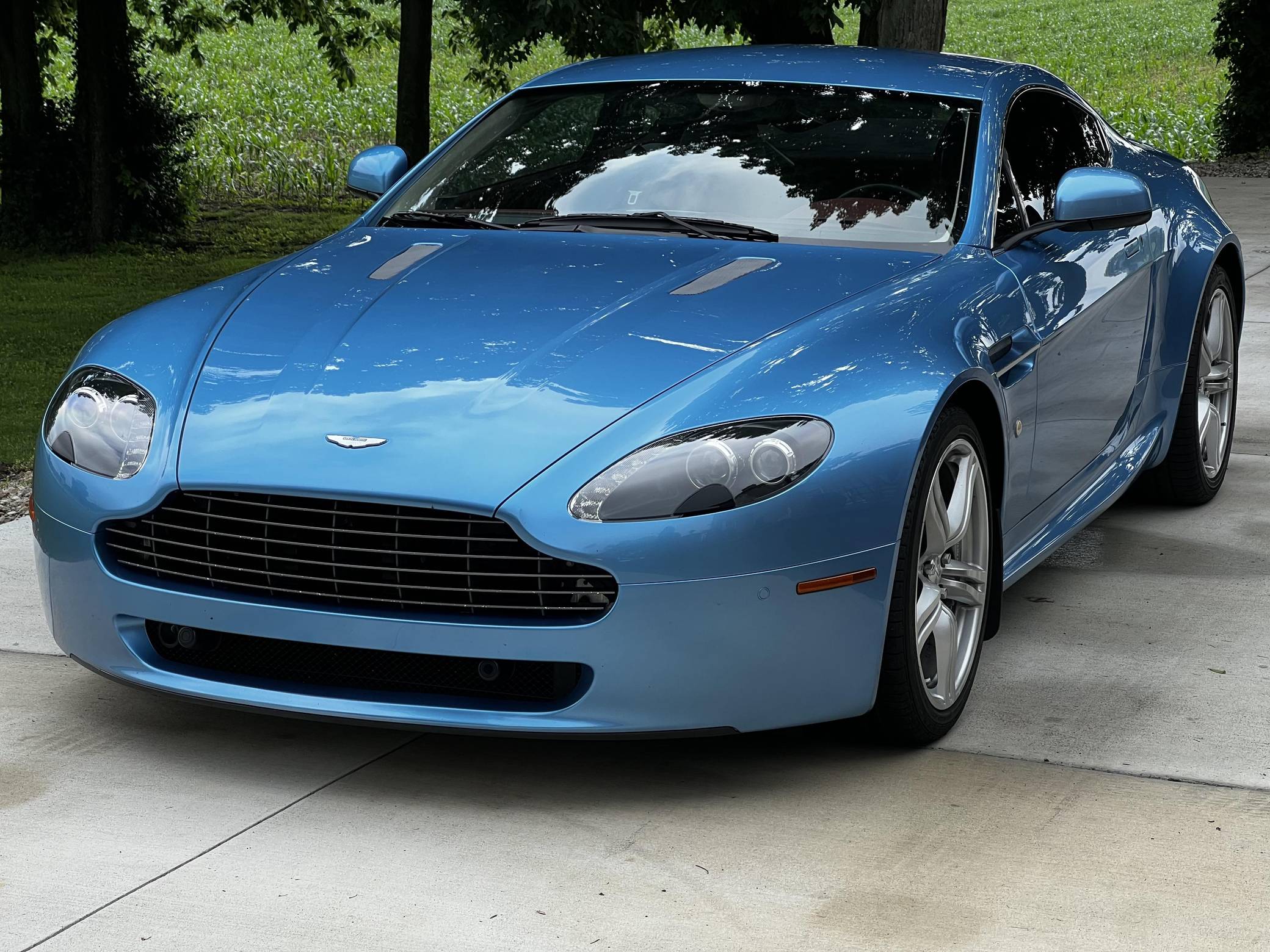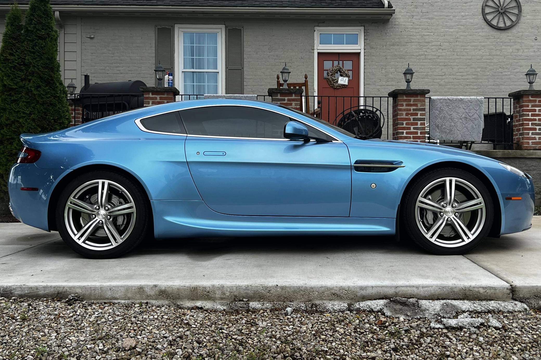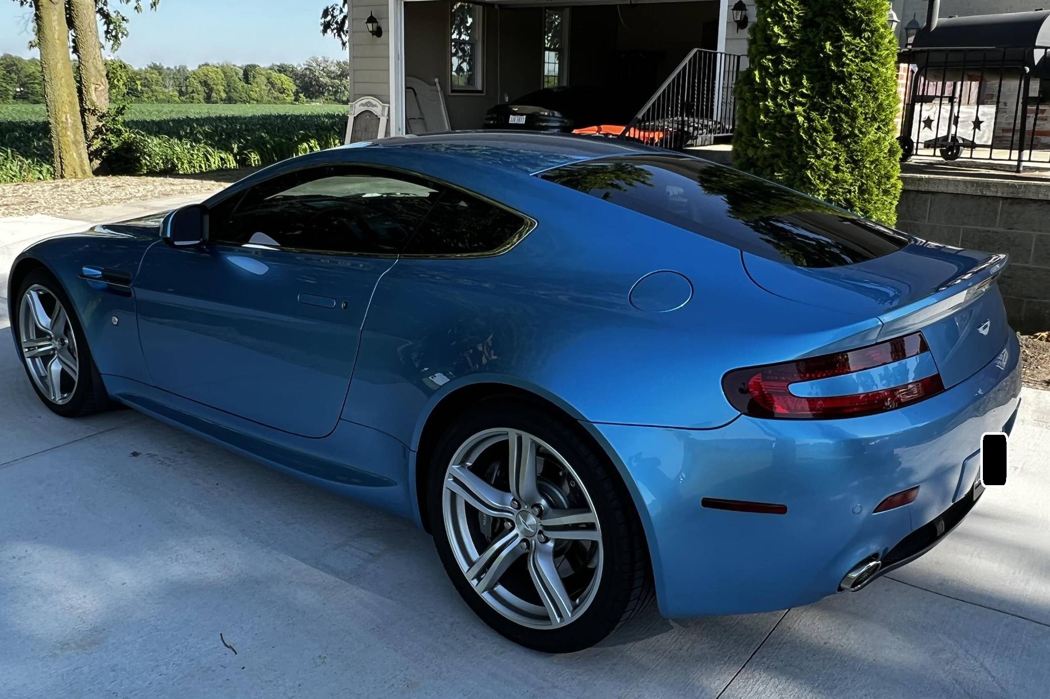2011 Aston Martin V8 Vantage, finished in Glacial Blue with a Lords Red and blue interior. Factory equipment includes 19-inch alloy wheels, silver-painted brake calipers, xenon headlights, rear fog lights, leather upholstery, power-adjustable seats, automatic climate control, and a CD player. The sole modification reported by the seller is window tint. Styled under the guidance of Henrik Fisker, the Aston Martin V8 Vantage made its debut for 2006. It had a tall order to fill: make the British brand accessible to a much wider target audience by luring enthusiasts out of Porsche showrooms. It succeeded thanks largely to its powerful V8 engine and its surprisingly well-tuned chassis. Production ended in 2017, though its V12-powered sibling lived until 2018. Power comes from a 4. 7-liter V8, rated at 420 horsepower and 346 lb-ft of torque. It spins the rear wheels via a 6-speed automatic transmission.