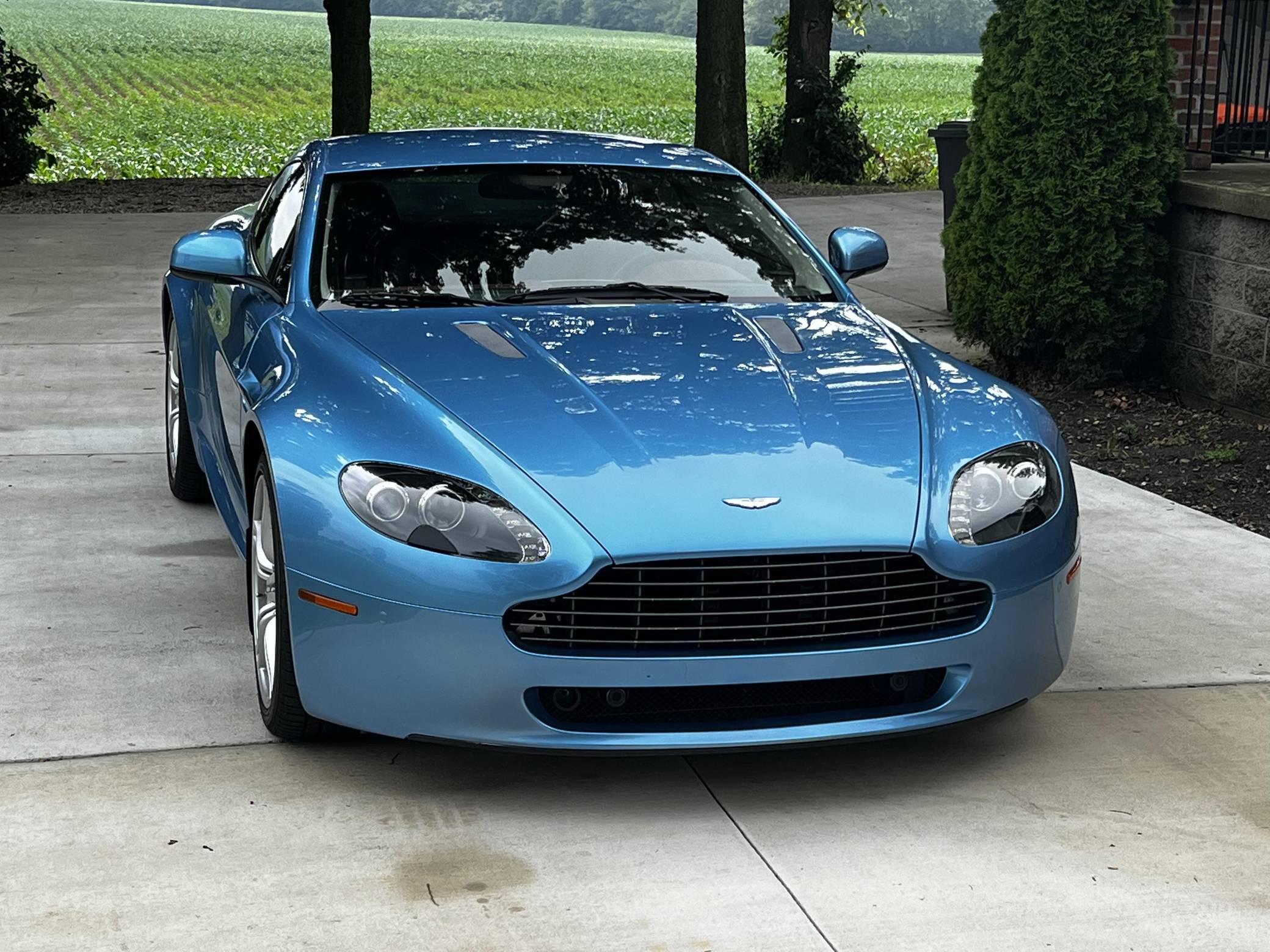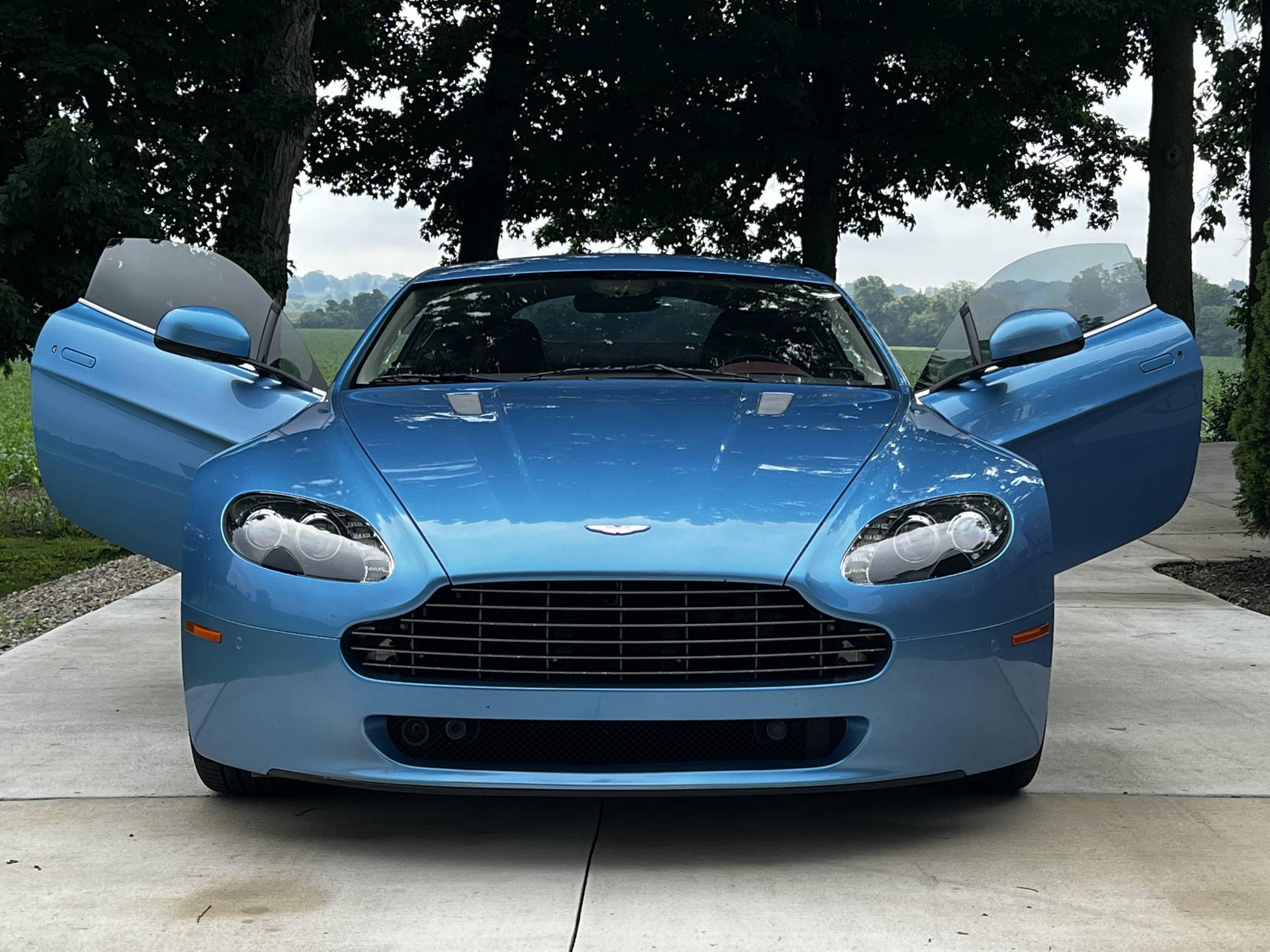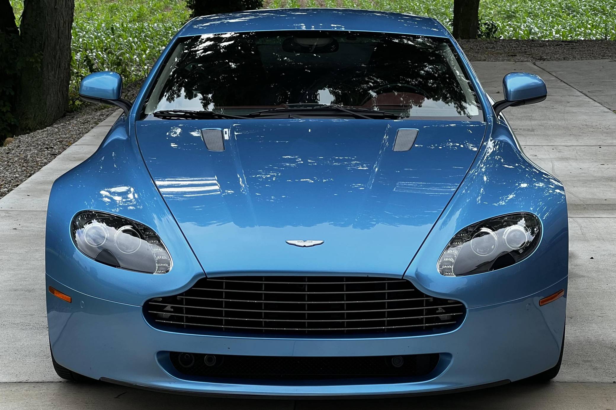 2011 Aston Martin V8 Vantage, finished in Glacial Blue with a Lords Red and blue interior. Factory equipment includes 19-inch alloy wheels, silver-painted brake calipers, xenon headlights, rear fog lights, leather upholstery, power-adjustable seats, automatic climate control, and a CD player. The sole modification reported by the seller is window tint. Styled under the guidance of Henrik Fisker, the Aston Martin V8 Vantage made its debut for 2006. It had a tall order to fill: make the British brand accessible to a much wider target audience by luring enthusiasts out of Porsche showrooms. It succeeded thanks largely to its powerful V8 engine and its surprisingly well-tuned chassis. Production ended in 2017, though its V12-powered sibling lived until 2018. Power comes from a 4. 7-liter V8, rated at 420 horsepower and 346 lb-ft of torque. It spins the rear wheels via a 6-speed automatic transmission.