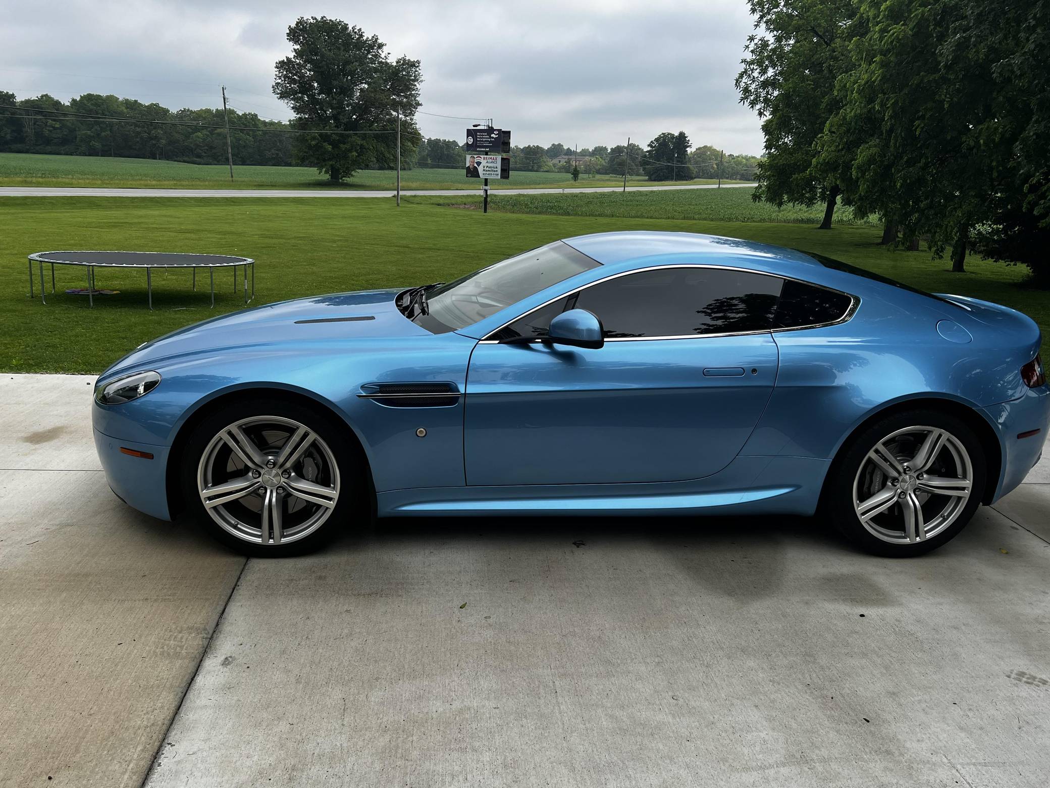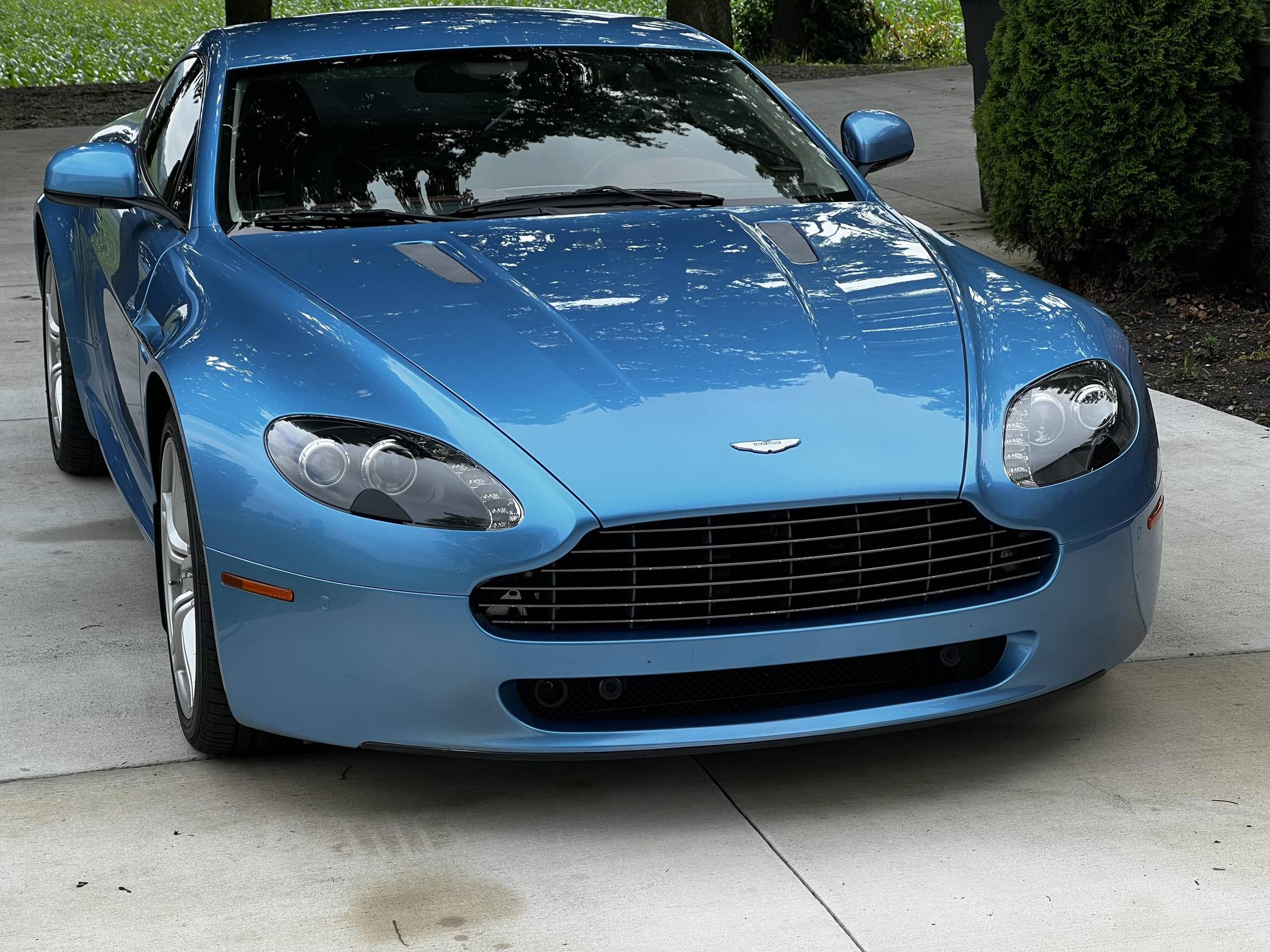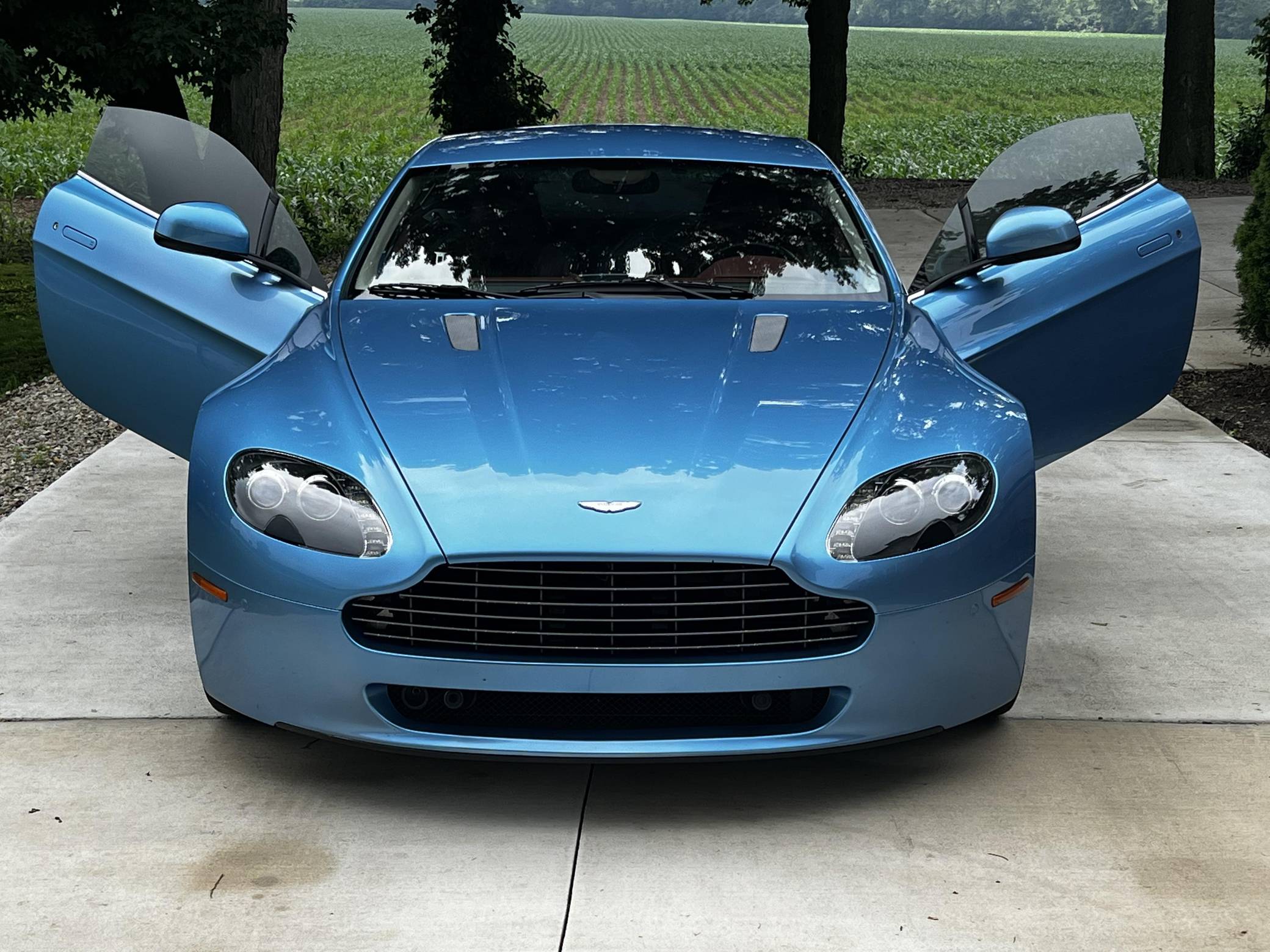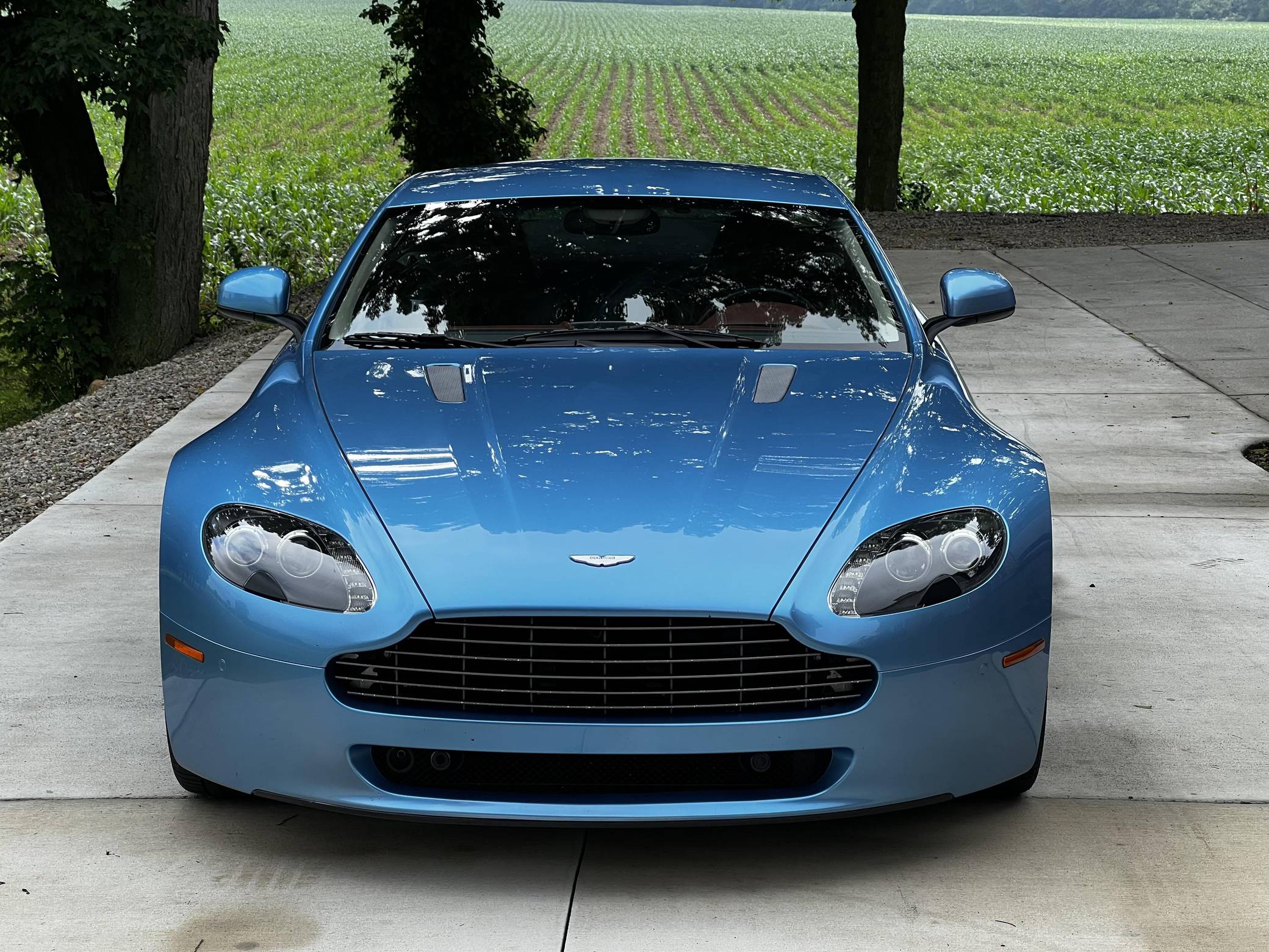 2011 Aston Martin V8 Vantage, finished in Glacial Blue with a Lords Red and blue interior. Factory equipment includes 19-inch alloy wheels, silver-painted brake calipers, xenon headlights, rear fog lights, leather upholstery, power-adjustable seats, automatic climate control, and a CD player. The sole modification reported by the seller is window tint. Styled under the guidance of Henrik Fisker, the Aston Martin V8 Vantage made its debut for 2006. It had a tall order to fill: make the British brand accessible to a much wider target audience by luring enthusiasts out of Porsche showrooms. It succeeded thanks largely to its powerful V8 engine and its surprisingly well-tuned chassis. Production ended in 2017, though its V12-powered sibling lived until 2018. Power comes from a 4. 7-liter V8, rated at 420 horsepower and 346 lb-ft of torque. It spins the rear wheels via a 6-speed automatic transmission.