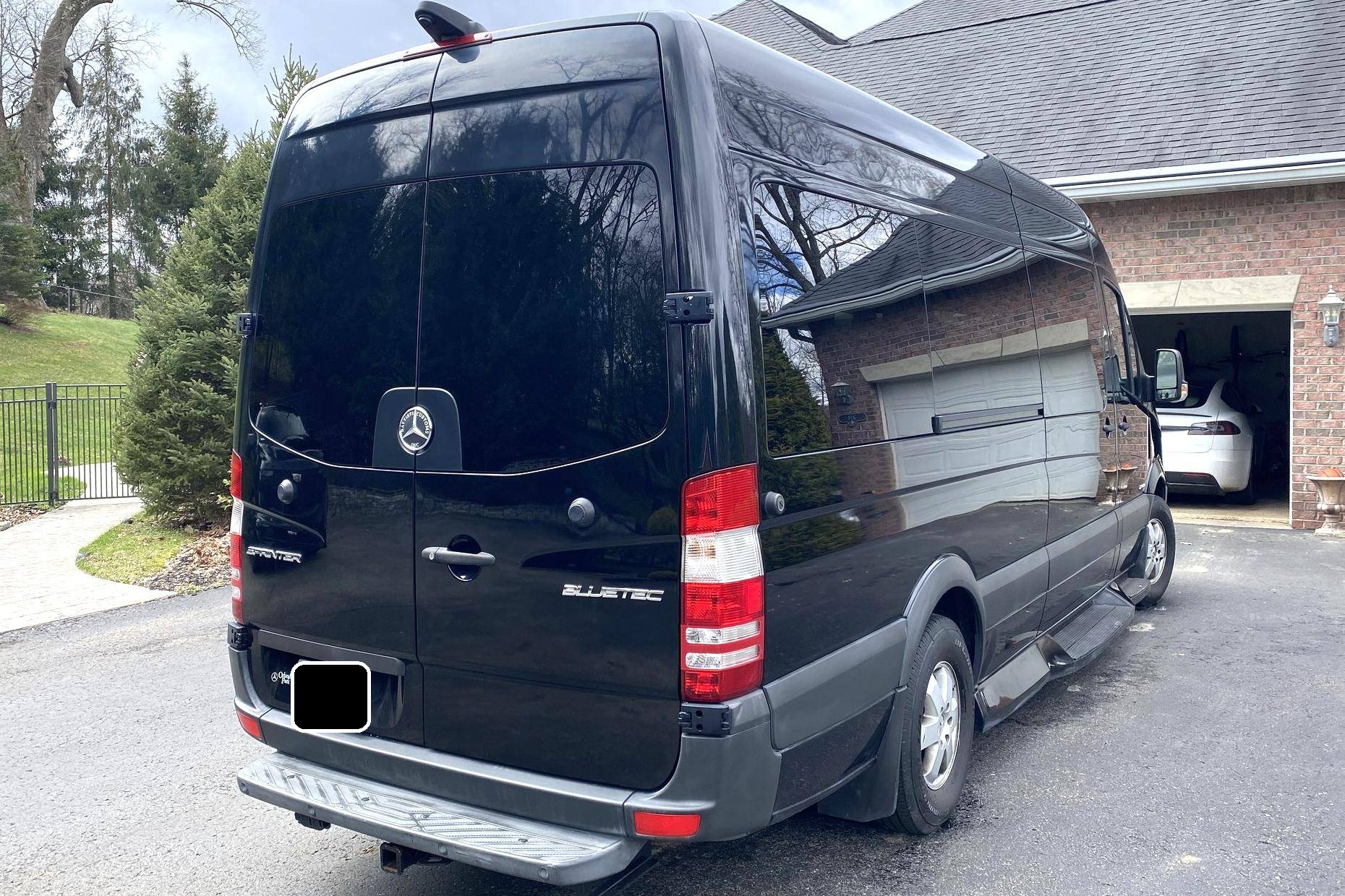 THIS. . . is a 2014 Mercedes-Benz Sprinter 2500, finished in Deep Black with a black interior. The odometer currently indicates approximately 25,300 miles. Equipment includes 16-inch wheels, a high roof body with extended wheelbase, heated front seats, power windows and locks, blind spot assistant, lane keeping assist, a reversing camera, and more as detailed below. A partial list of modifications reported by the seller includes window tint, a roof-mounted rear A/C unit, diamond-quilted leather upholstery with 9-passenger rear seating (11 total), burled wood interior trim, a cooler mounted between the front seats, a Sony head unit, a 32-inch Jensen TV, LED cabin accent lighting, fold-out cabin tables, and window blinds. The second-generation Sprinter was introduced in North America for the 2007 model year. It became hugely popular not only with contractors and construction firms, but with the burgeoning "vanlife" set. Established outfitters and newer companies also jumped aboard, offering near countless build setups with all the latest comfort and technical features on the market. Power comes from a 2. 1-liter turbodiesel inline-4, rated at 161 horsepower and 266 lb-ft of torque. Output is sent to the rear wheels through a 7-speed automatic transmission.