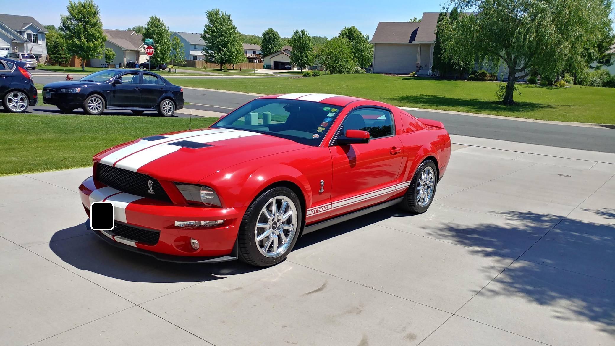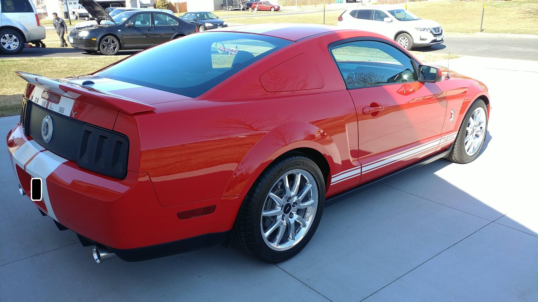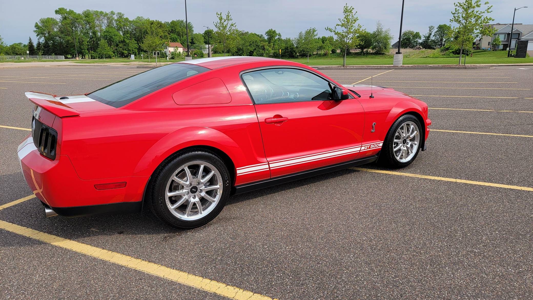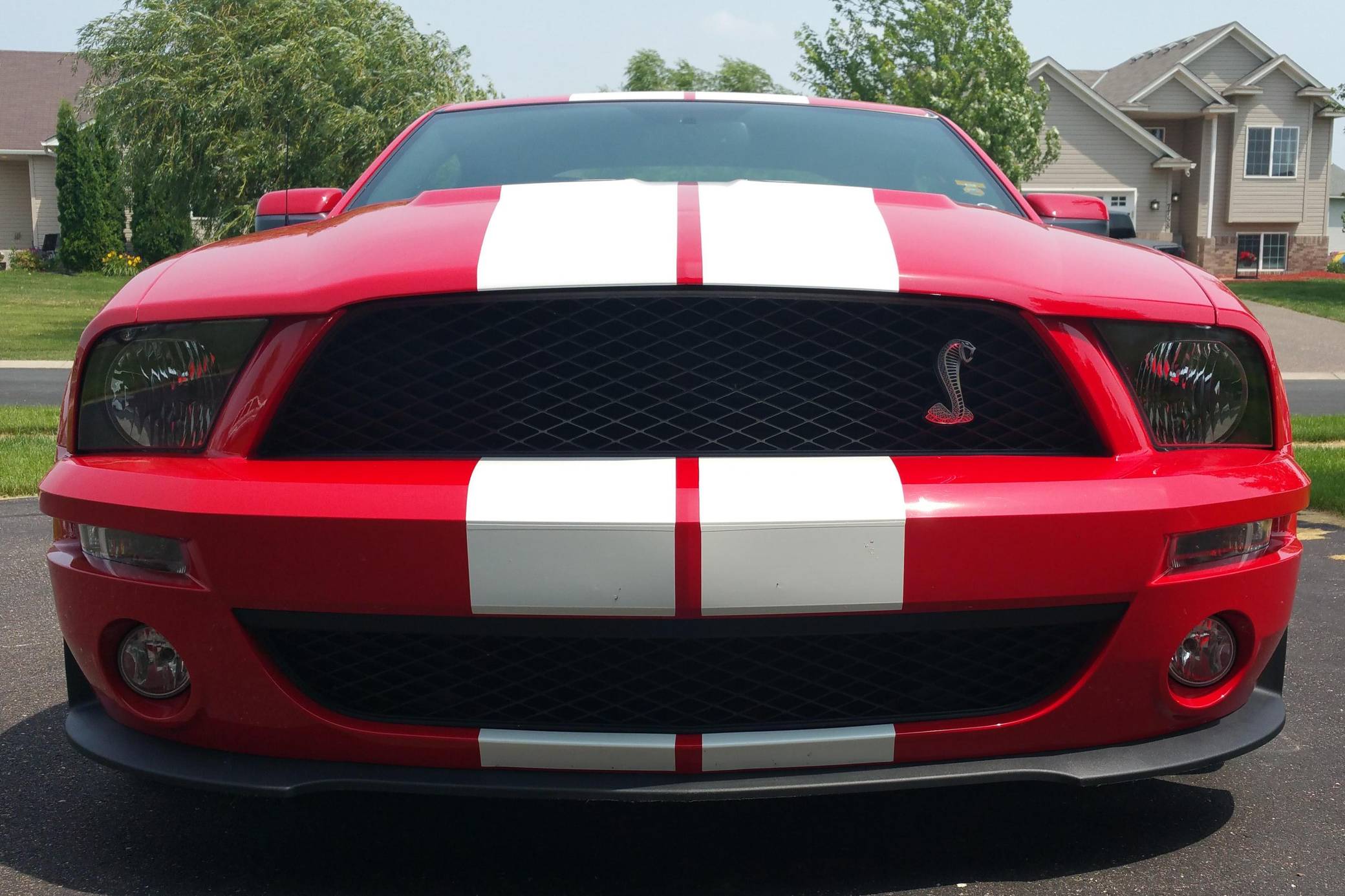 THIS. . . is a 2007 Ford Mustang Shelby GT500 Coupe, finished in Torch Red with Performance White stripes and a Charcoal Black interior. This Mustang is equipped with a 6-speed manual transmission, and the odometer indicates approximately 30,600 miles. It also confirms that this is a 2-owner car. Factory equipment includes Brembo front brakes, an aluminum hood with air extractors, a rear spoiler, sport leather seats with Cobra embroidery, a power driver's seat, air conditioning, cruise control, and a Shaker 500 audio system. Modifications to this Mustang are extensive, and the full list is detailed below. include 18-inch GT500KR forged wheels, a 2. 6-inch Metco supercharger pulley, a JLT carbon fiber intake, a JLT tune with an SCT tuner, a Ford Performance exhaust system, Ford Performance lowering springs, J&M suspension components, and sequential rear turn signals. Called "S197" internally, the fifth-generation Mustang launched for 2005 with a heritage-laced design, a new platform, and an available 24-valve V8 engine. Extending the wheelbase gave the Mustang a much more compliant ride than its predecessor, though it remained true to the pony car ethos that characterized the original model. Production ended in 2014 when the S197 passed the torch to the current-generation Mustang. Ford rekindled ties with Shelby to transform what was envisioned as a replacement for the Mustang Cobra into a 21st-century GT500. Massive power, huge brakes, and heritage-laced styling cues were part of the package. Power comes from a supercharged 5. 4-liter V8 engine, rated at 500 horsepower and 480 lb-ft of torque in stock form. Due to the modifications performed to this GT500, it produces 538 horsepower and 531 lb-ft of torque at the wheels according to the included dyno sheet. Output is sent to the rear wheels via a 6-speed manual transmission.
