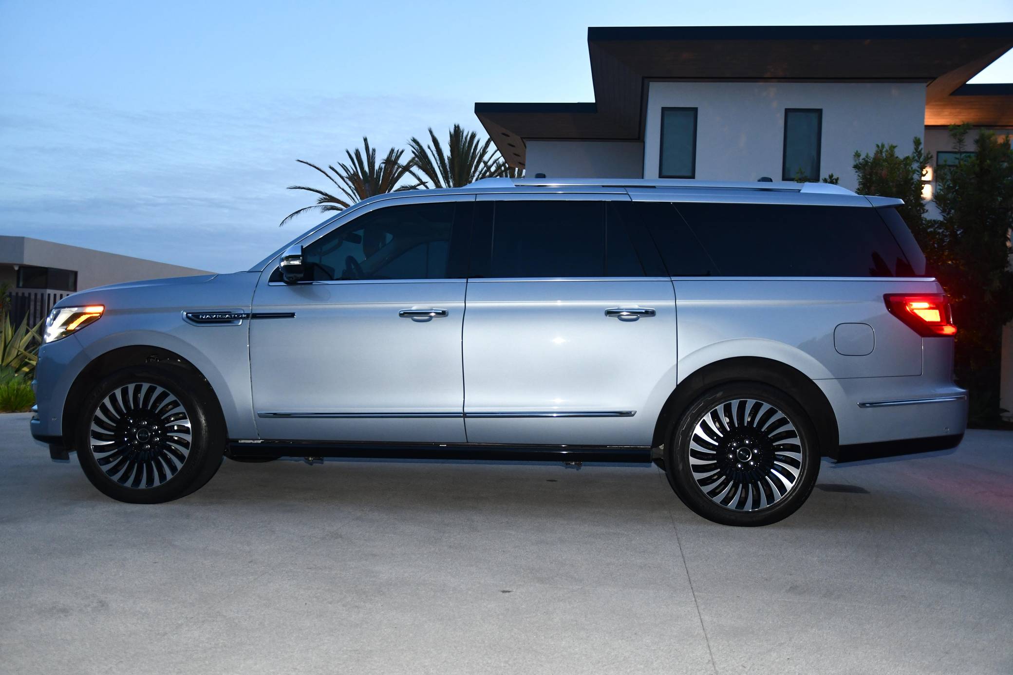 2019 Lincoln Navigator L Black Label 4x4, finished in Chroma Crystal Blue with a Yacht Club Theme interior. A partial list of notable equipment includes the Cargo Package, 22-inch wheels, power illuminated running boards, Venetian leather seating surfaces, heated and ventilated front seats, Lincoln Play rear seat entertainment system, and more as detailed below. The only modifications are the addition of XPEL paint protection film, and tinted windows. The Navigator is Lincoln's full-size luxury SUV, which shares a platform and some components with the Ford Expedition. The fourth generation Navigator was introduced for the 2018 model year and can be optioned with a short or long wheelbase, and with two or four-wheel drive. The fourth generation stands out among past models with its futuristic styling shared with the Continental, and aluminum body construction. The Lincoln Navigator Black Label Edition is the most expensive vehicle ever sold by Ford, with the only exception being the Ford GT. Power comes from a 3. 5-liter turbocharged V6, rated at 450 horsepower and 510 lb-ft of torque. Output is sent to all four wheels through an 10-speed automatic transmission.