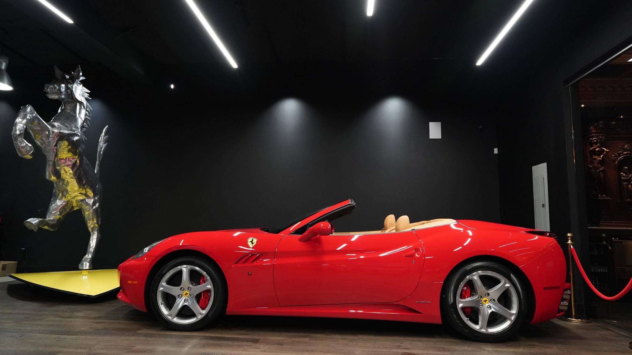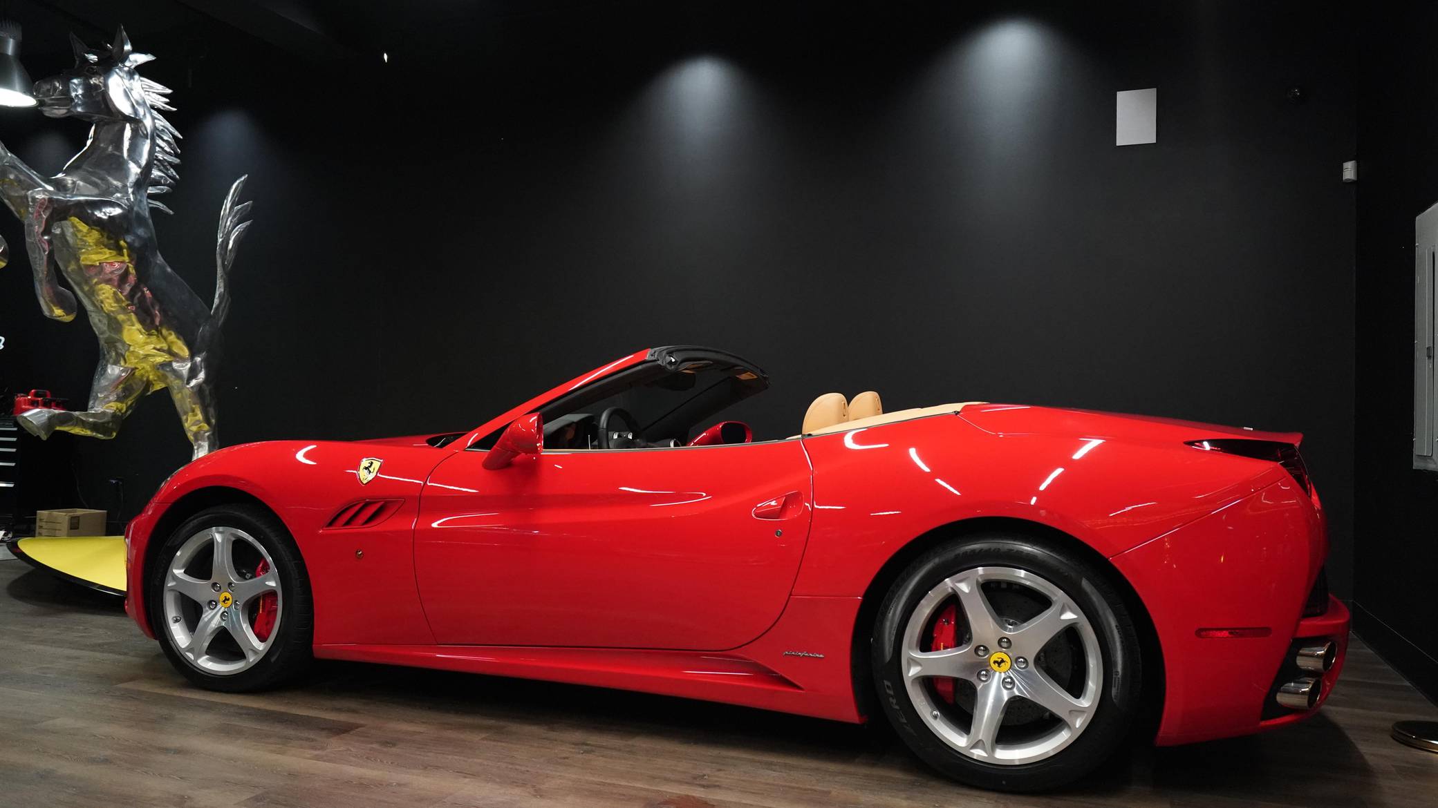 2010 Ferrari California, finished in Rosso Corsa with a beige interior. The odometer currently displays 381 miles It also confirms that this is a 1-owner car. The seller reports no modifications. Designed by Pininfarina, the California made its debut for the 2009 model year as Ferrari's entry-level model. It was envisioned as a daily-drivable roadster so it offered four seats and amenities not often associated with past models, such as a conventional navigation system and a rearview parking camera. It was also Ferrari's first standard production model to feature a dual-clutch transmission, a power-folding hardtop, and a front-engine V8 configuration. Power comes from a 4. 3-liter V8, rated at 453 horsepower and 357 lb-ft of torque. Output is sent to the rear wheels via a 7-speed dual-clutch automatic transmission.