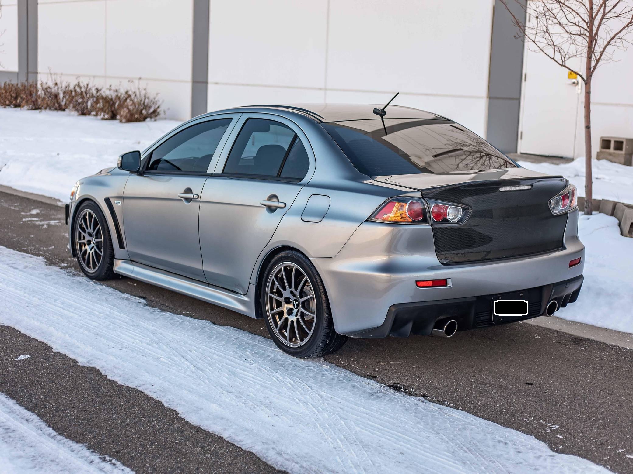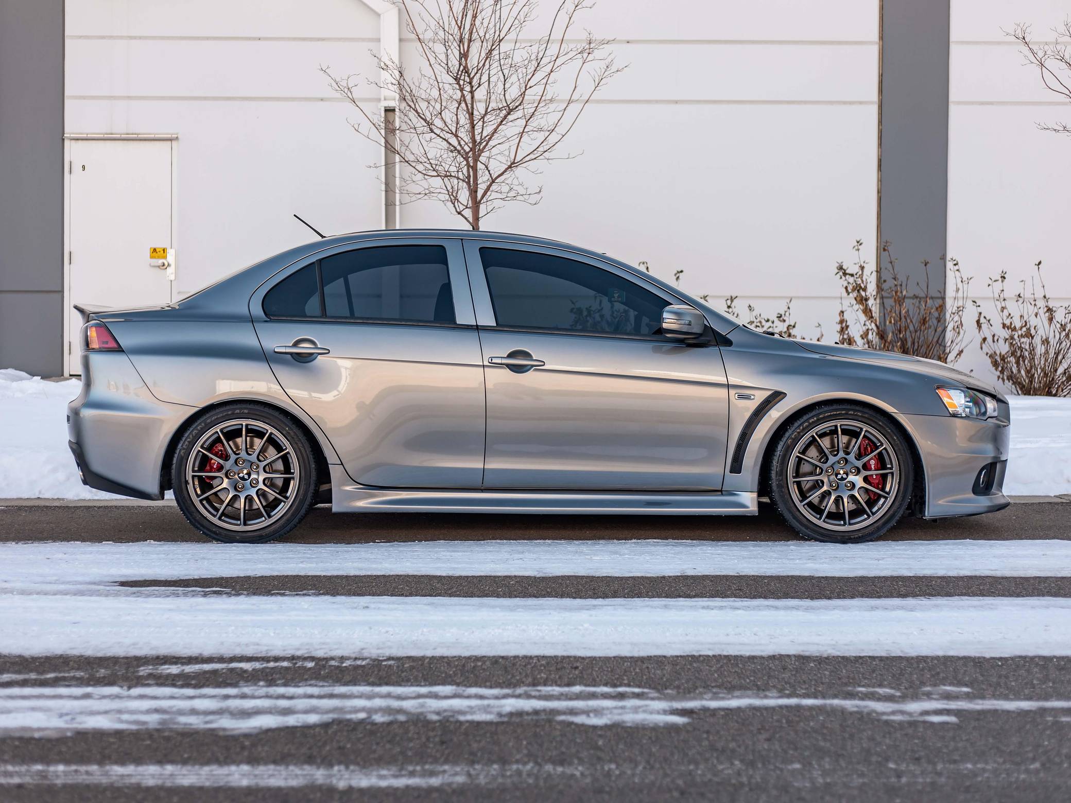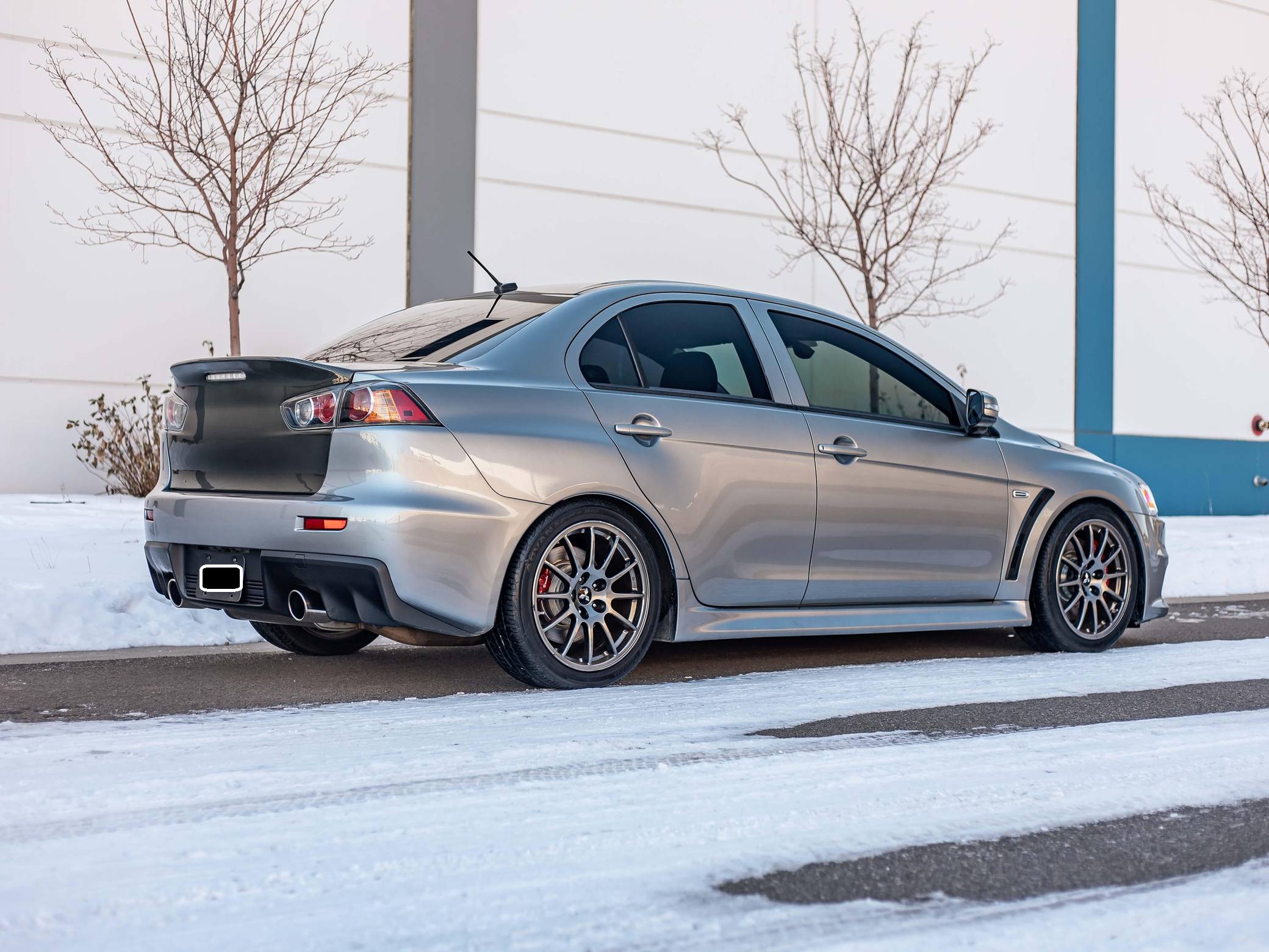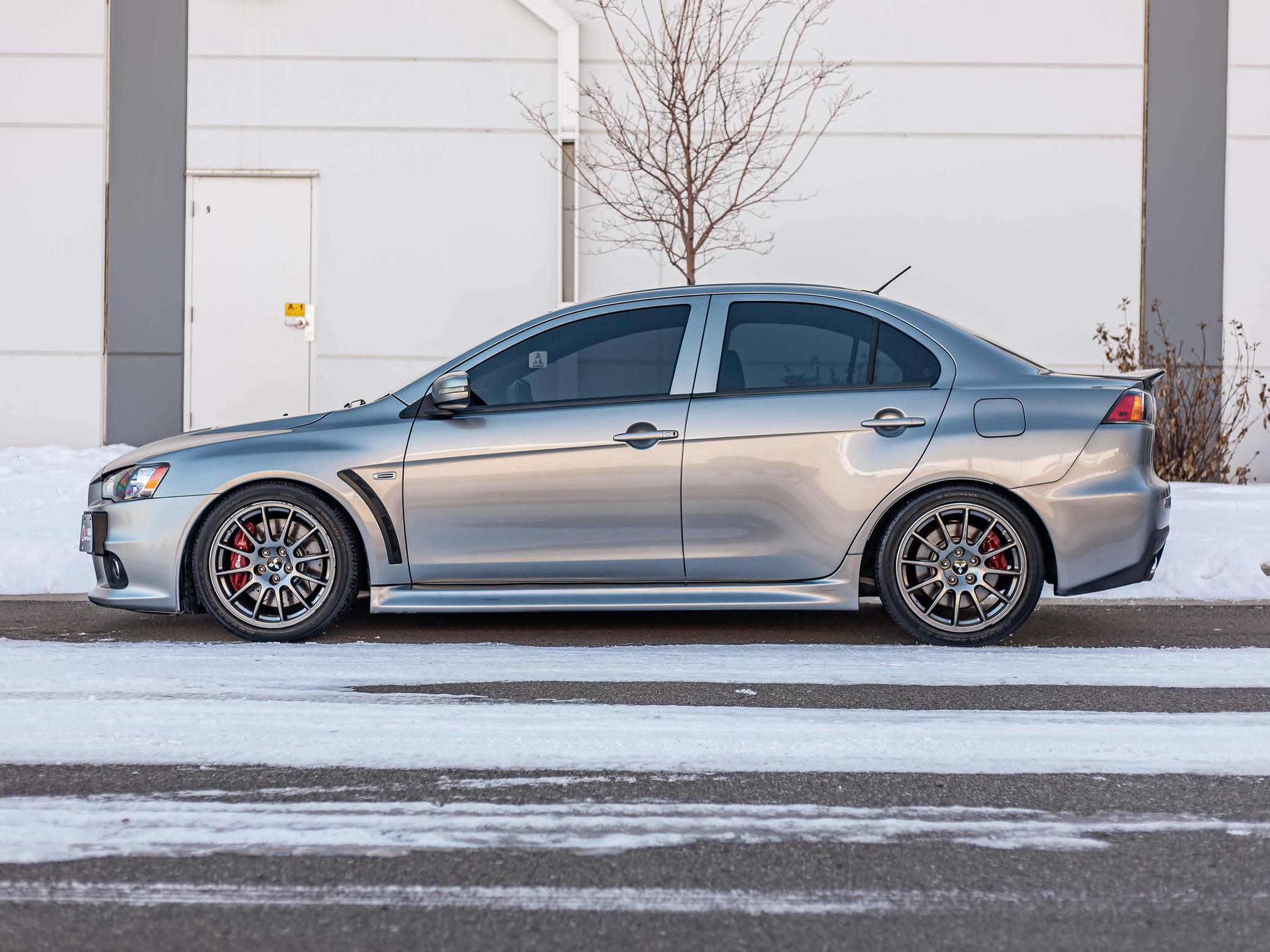 THIS. . . is a 2015 Mitsubishi Lancer Evolution X Final Edition, finished in Mercury Grey with a black interior. 1-inch touchscreen MMI system, an active center differential, Active Yaw Control, rain-sensing windshield wipers, and automatic climate control, among others detailed below. Modifications to this Evo are extensive, and the full list is detailed below. include a Garrett GTX 3076 turbo, Tien coilovers, a Grimmspeed boost controller, 1300cc injectors, and an AMS intercooler. Mitsubishi's 10th and final Lancer Evolution arrived for the 2008 model year. It gained a new, more powerful engine, a revised suspension system, and a design inspired by sharks and fighter jets, according to the manufacturer. Mitsubishi canceled the Lancer Evolution in 2016, sending it off with 1600 Final Edition models based on the Lancer GSR; this car is number 1,544 of 1600. Power comes from a 2. 0-liter turbocharged inline-4, rated at 303 horsepower and 305 lb-ft of torque in stock form. Due to the modifications done to this Lancer, it likely produces more power, but a dyno reading was not provided to confirm. Power is sent to all four wheels via a 5-speed manual transmission, active center differential, and Mitsubishi's all-wheel-drive system.