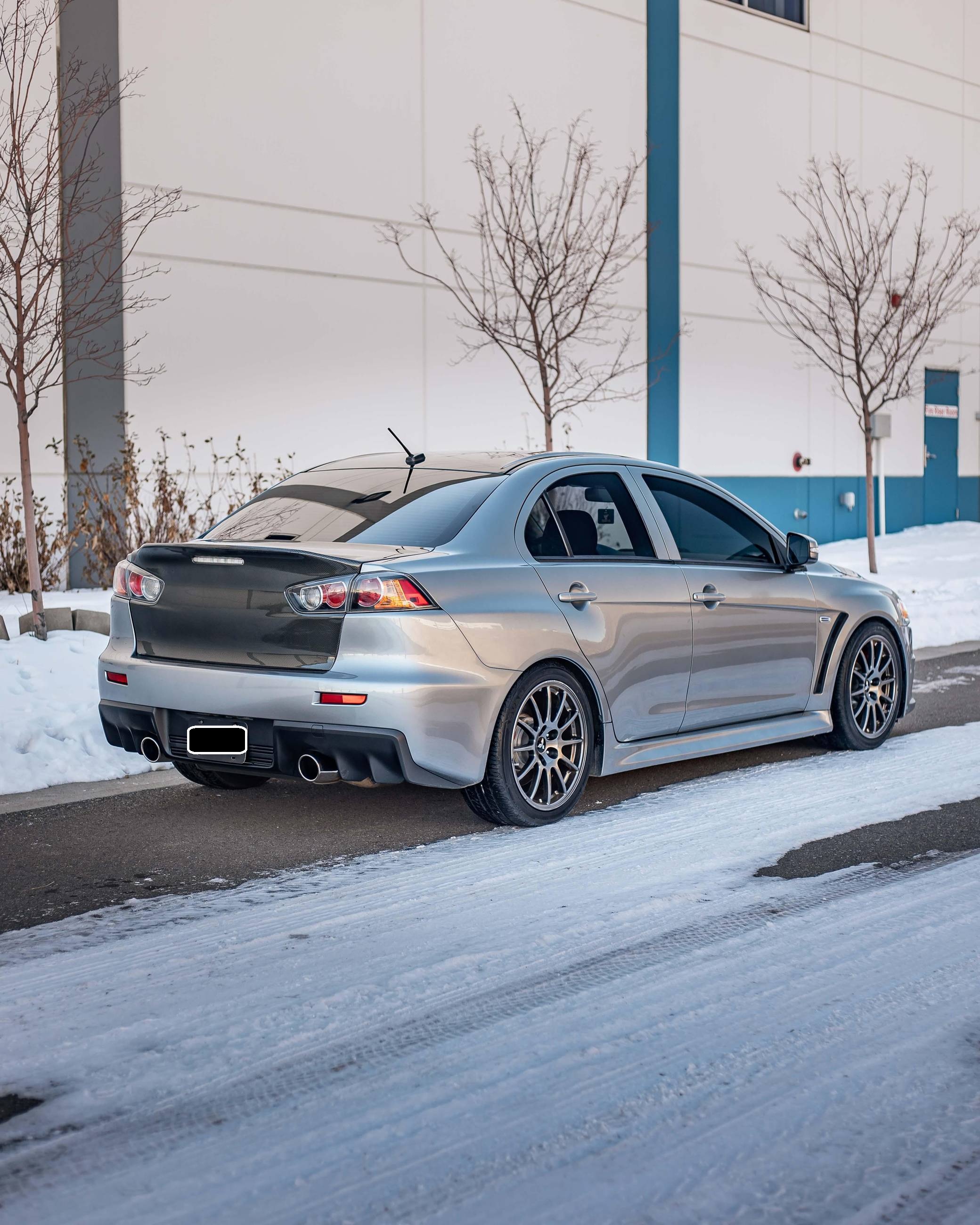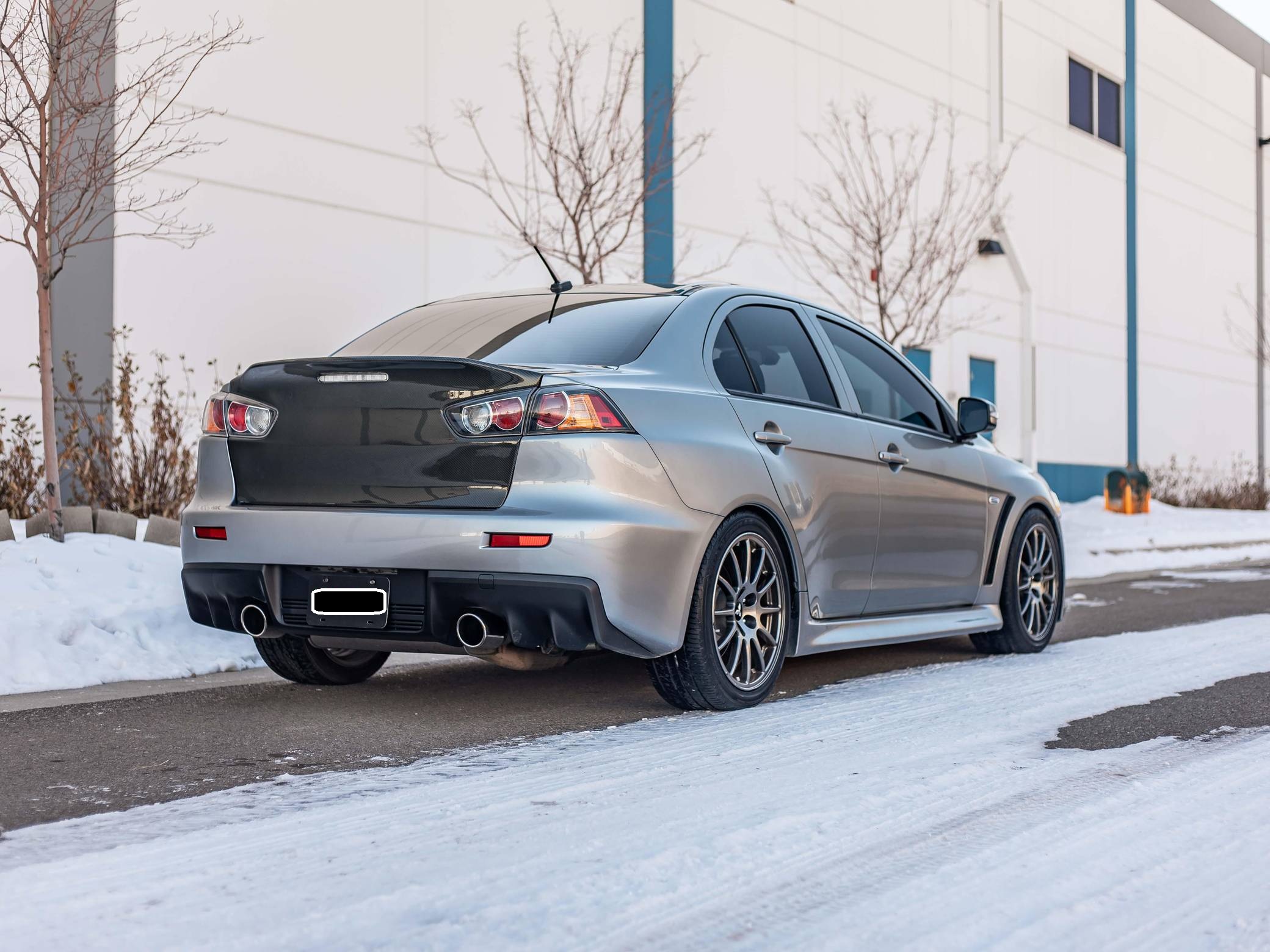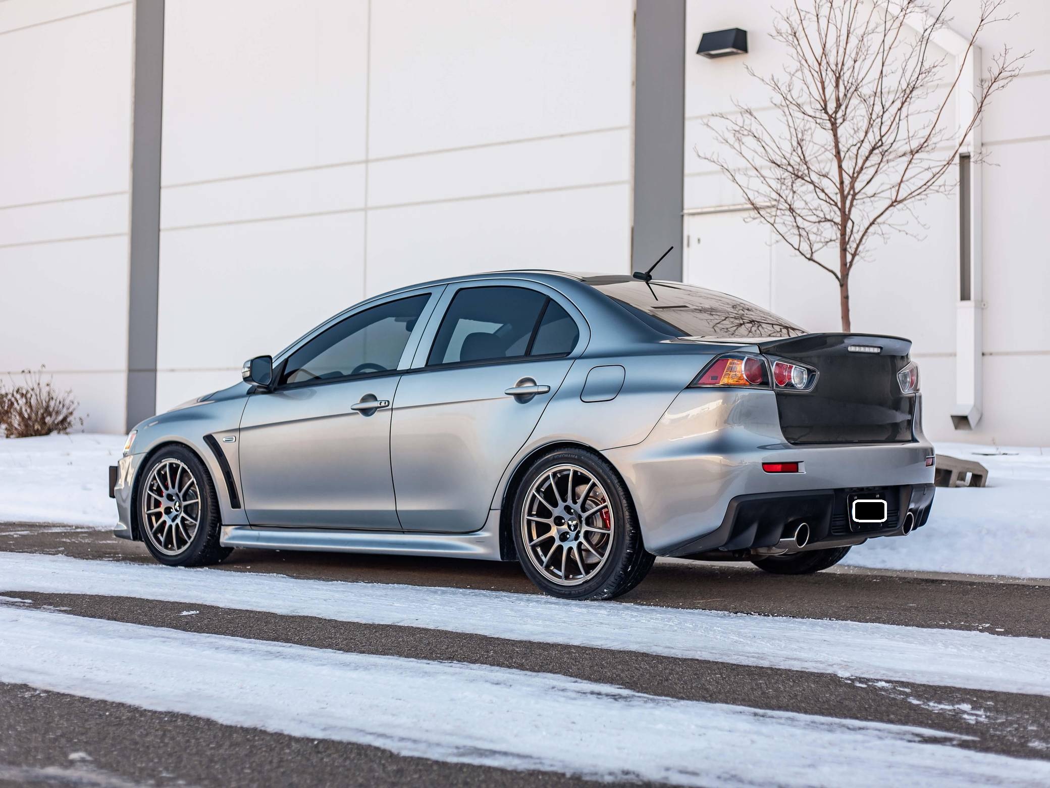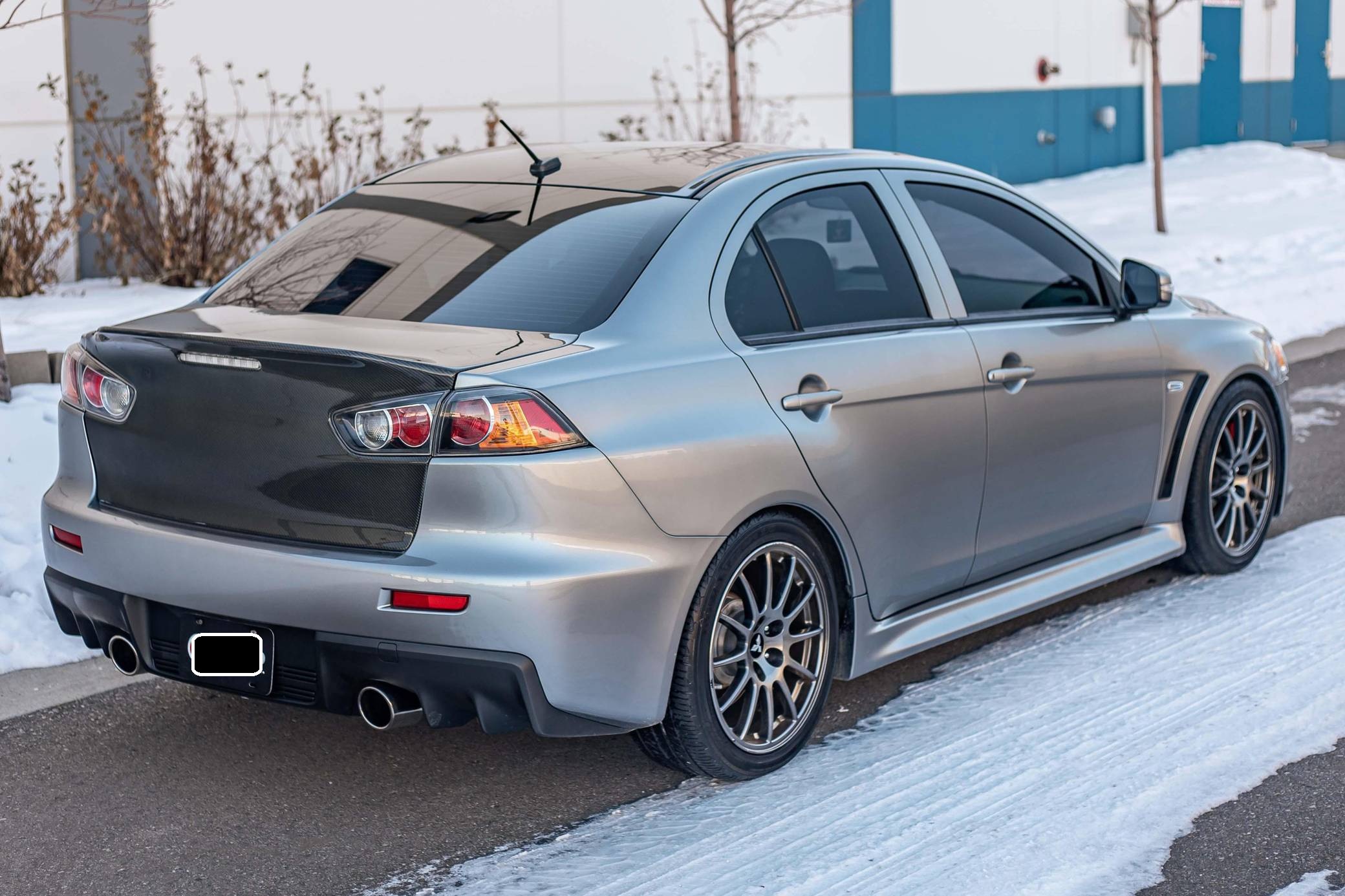THIS. . . is a 2015 Mitsubishi Lancer Evolution X Final Edition, finished in Mercury Grey with a black interior. 1-inch touchscreen MMI system, an active center differential, Active Yaw Control, rain-sensing windshield wipers, and automatic climate control, among others detailed below. Modifications to this Evo are extensive, and the full list is detailed below. include a Garrett GTX 3076 turbo, Tien coilovers, a Grimmspeed boost controller, 1300cc injectors, and an AMS intercooler. Mitsubishi's 10th and final Lancer Evolution arrived for the 2008 model year. It gained a new, more powerful engine, a revised suspension system, and a design inspired by sharks and fighter jets, according to the manufacturer. Mitsubishi canceled the Lancer Evolution in 2016, sending it off with 1600 Final Edition models based on the Lancer GSR; this car is number 1,544 of 1600. Power comes from a 2. 0-liter turbocharged inline-4, rated at 303 horsepower and 305 lb-ft of torque in stock form. Due to the modifications done to this Lancer, it likely produces more power, but a dyno reading was not provided to confirm. Power is sent to all four wheels via a 5-speed manual transmission, active center differential, and Mitsubishi's all-wheel-drive system.