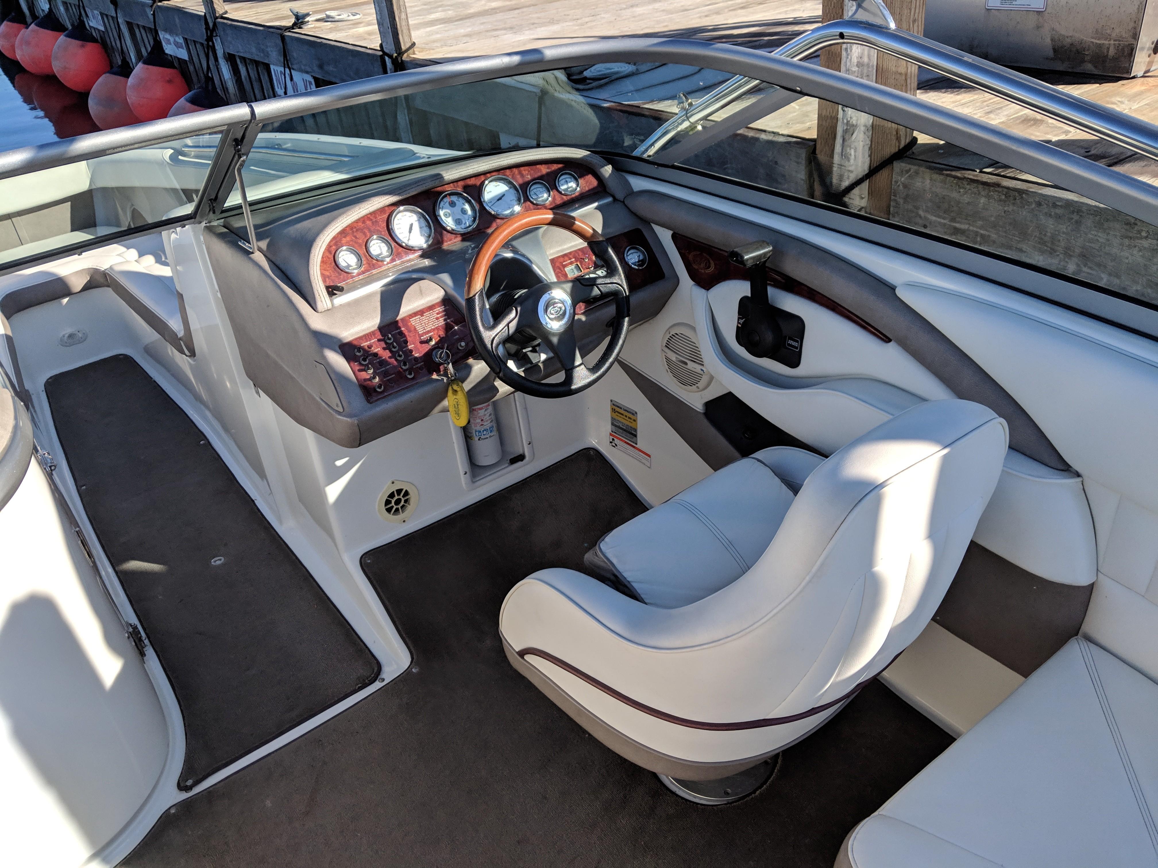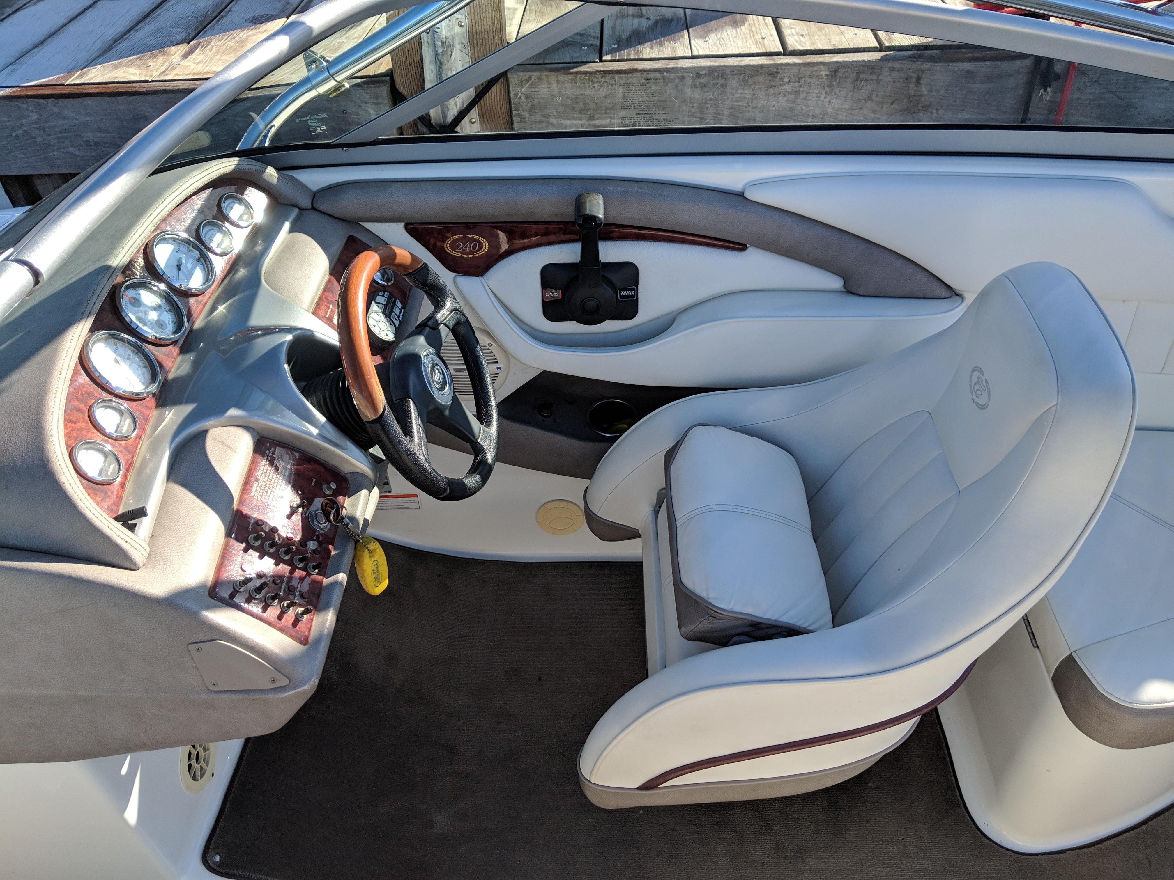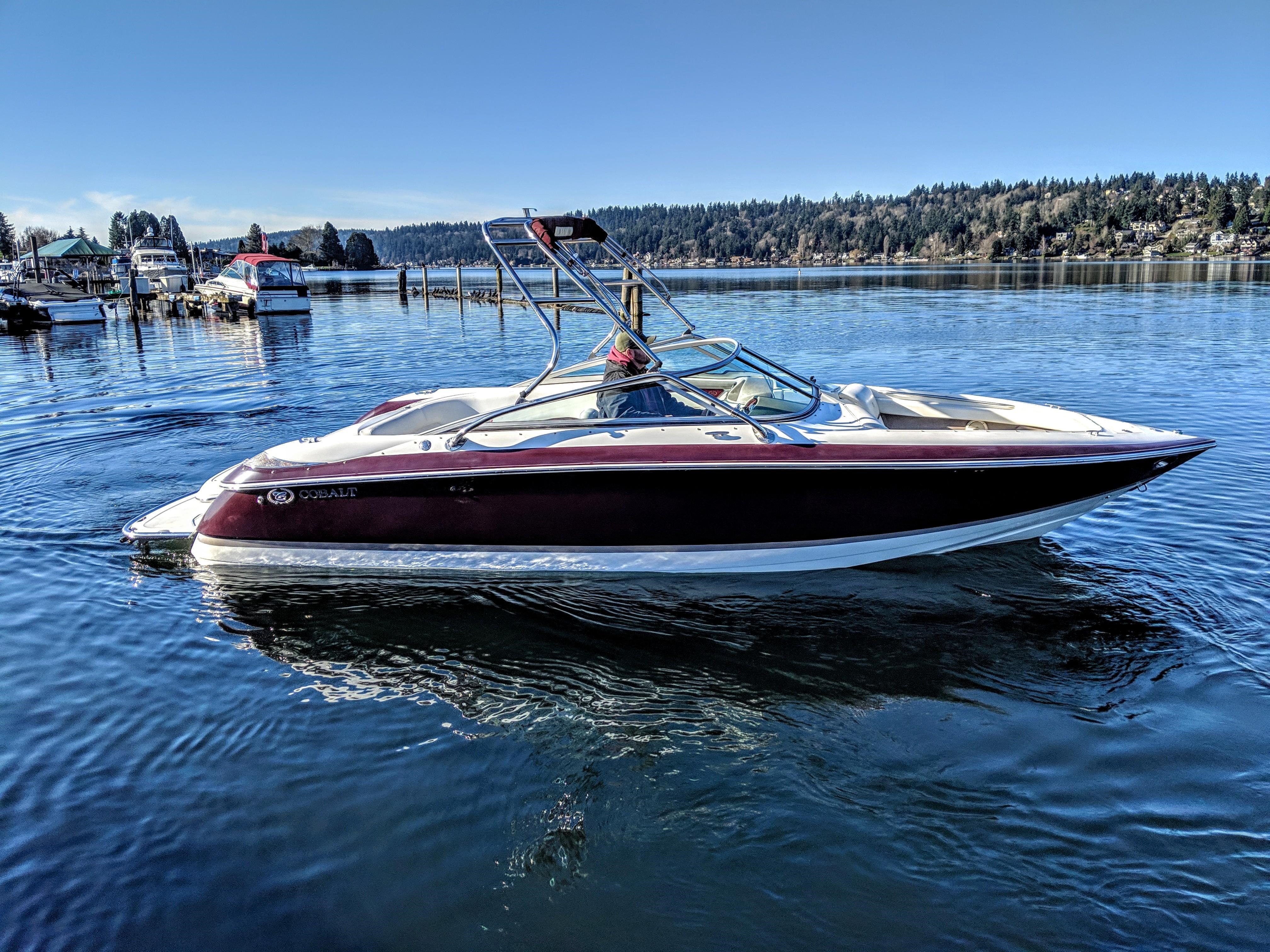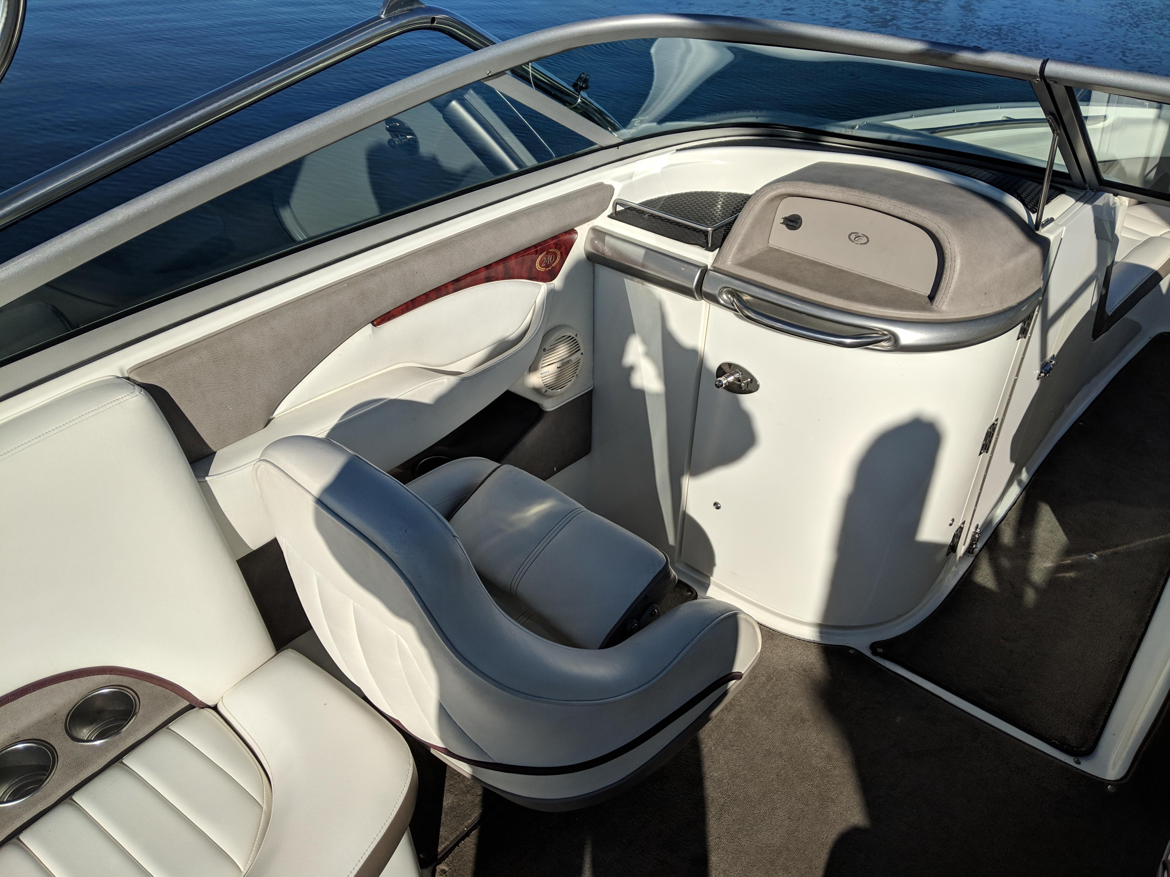 2004 Cobalt 240. Options Include Dual Stainless Steel Props, Dual Battery Switch, AM/FM Stereo, Extended Swim Platform w/Ladder, Stainless Steel Sports Tower w/Bimini, Bow/Cockpit Tonneau Covers, Stainless Steel Docking Lights, Transom Shower, Automatic Fire Extinguisher, and More!