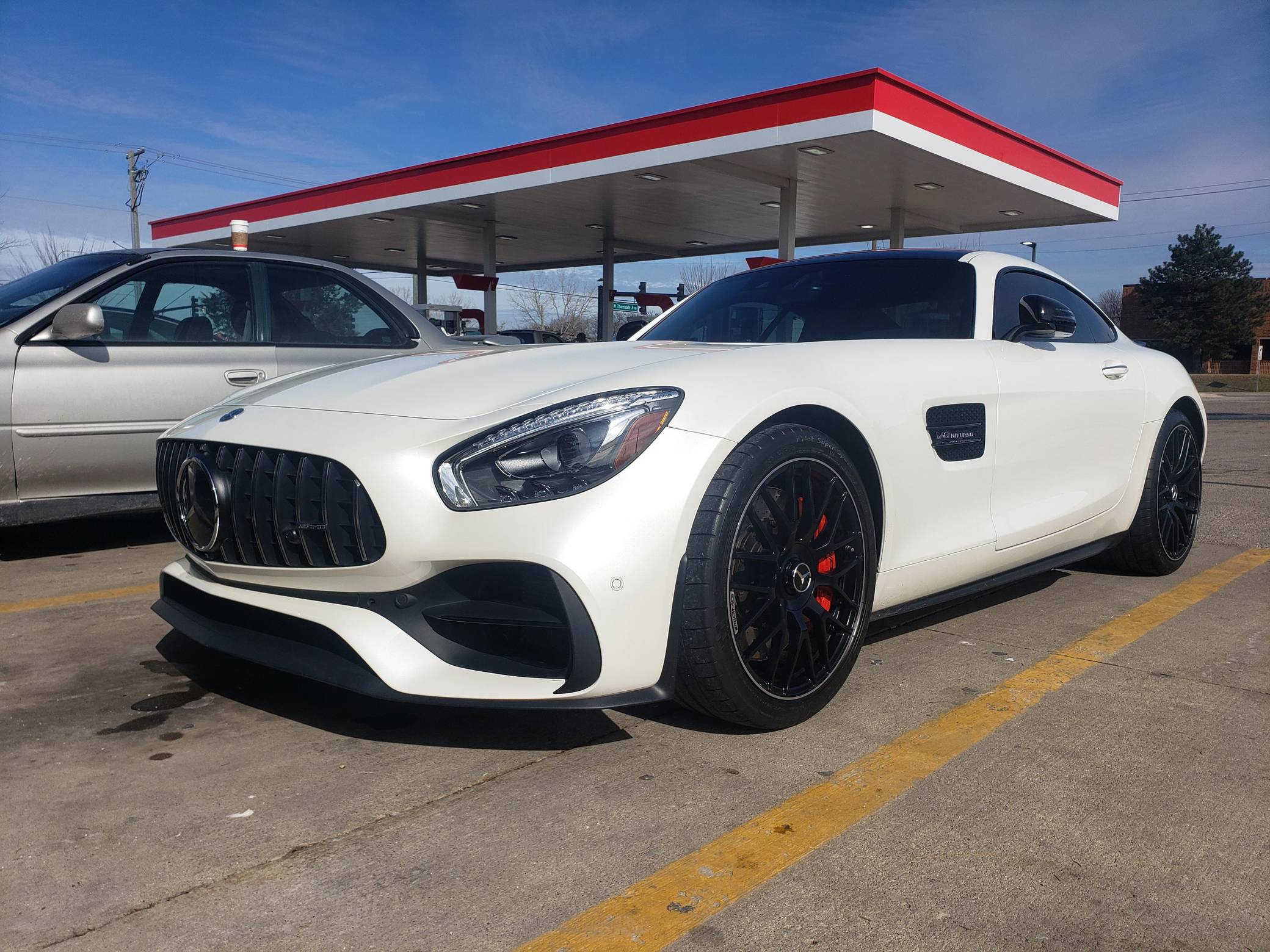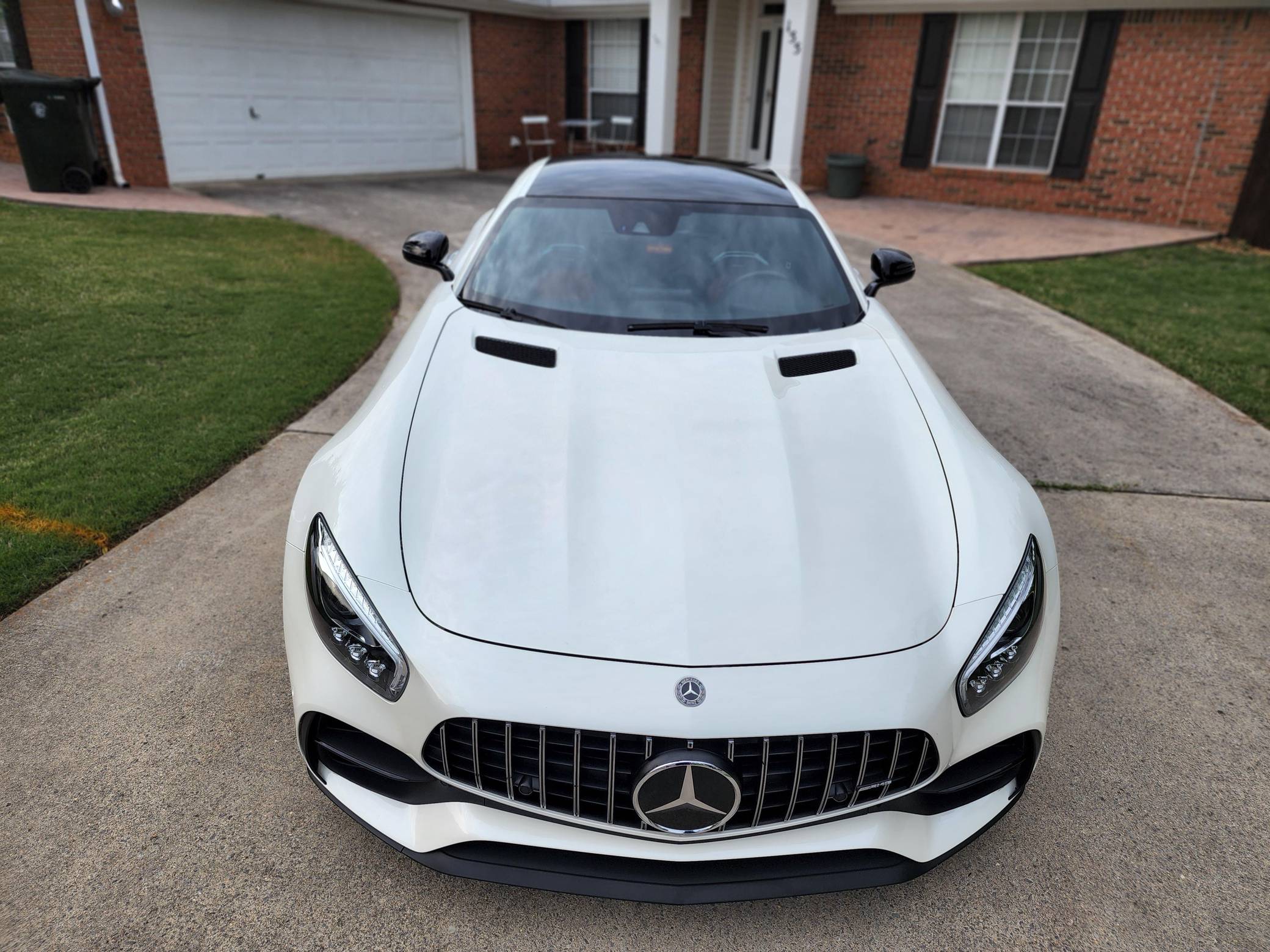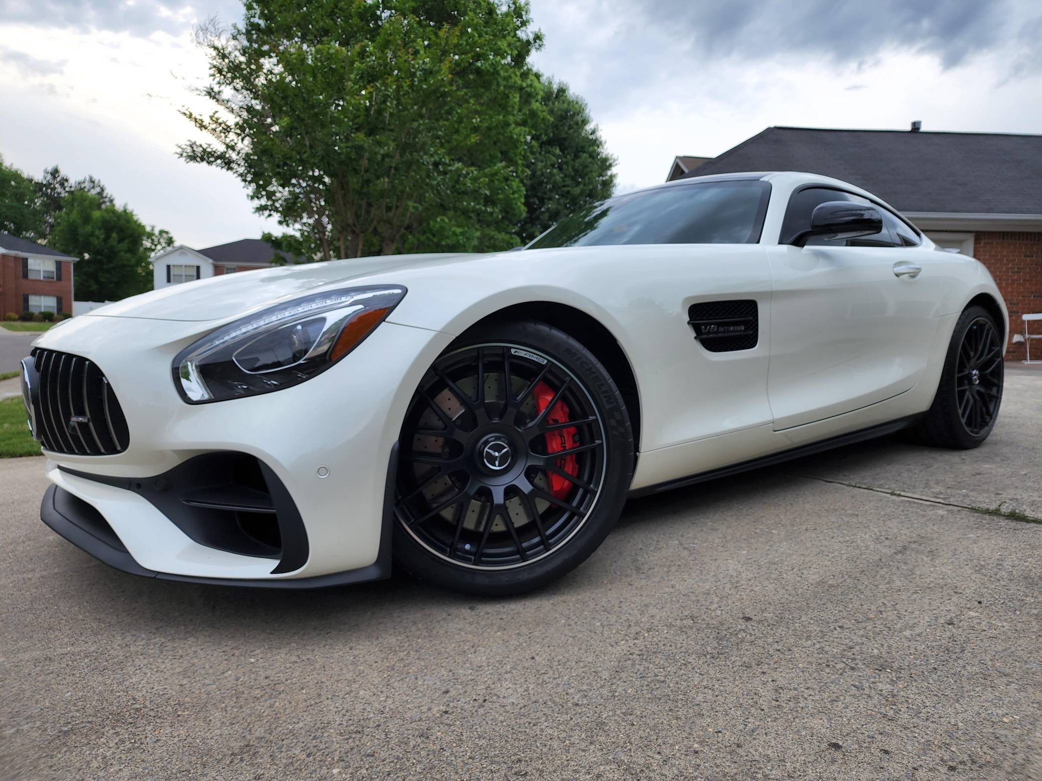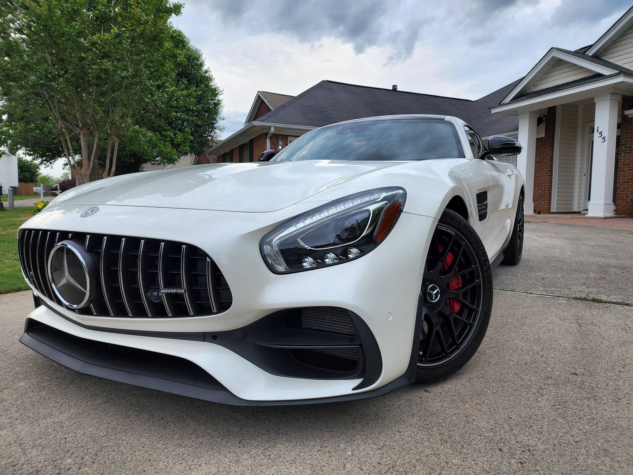 2018 Mercedes-AMG GT S Coupe, finished in Designo Diamond White Metallic with a Red Pepper and black interior. The odometer currently indicates approximately 15,700 miles. According to the build sheet provided in the gallery, this GT S had an original MSRP of $152,035, including $18,640 in options. Factory equipment includes the AMG Aerodynamics Package, Lane Tracking Package, a panoramic sunroof, Nappa leather interior, AMG carbon fiber interior trim, heated, ventilated, and power-adjustable sport seats, and a Burmester surround sound system. Modifications are limited to tinted windows. The GT S is a better-equipped version of the Mercedes-AMG GT -- adding a tuned engine, the AMG Ride Control adaptive suspension system, an AMG Performance Exhaust system, and, most importantly, an electronically-controlled limited-slip differential. It launched alongside the GT in 2015 and was assembled at the Mercedes-Benz plant in Sindelfingen, Germany. Power comes from a twin-turbocharged 4. 0-liter V8, rated at 515 horsepower and 494 lb-ft of torque. Output is sent to the rear wheels through a 7-speed double-clutch automatic transmission.