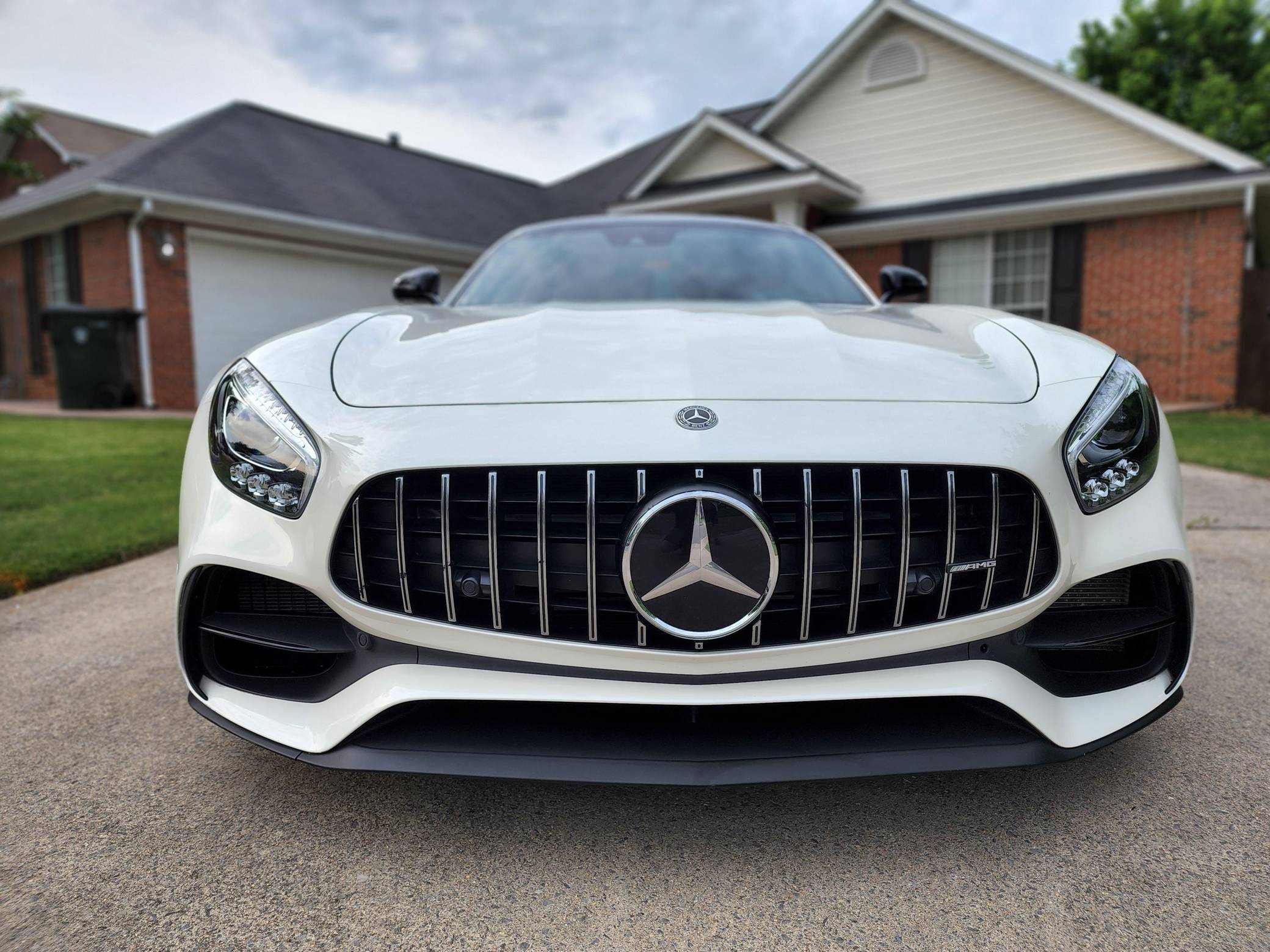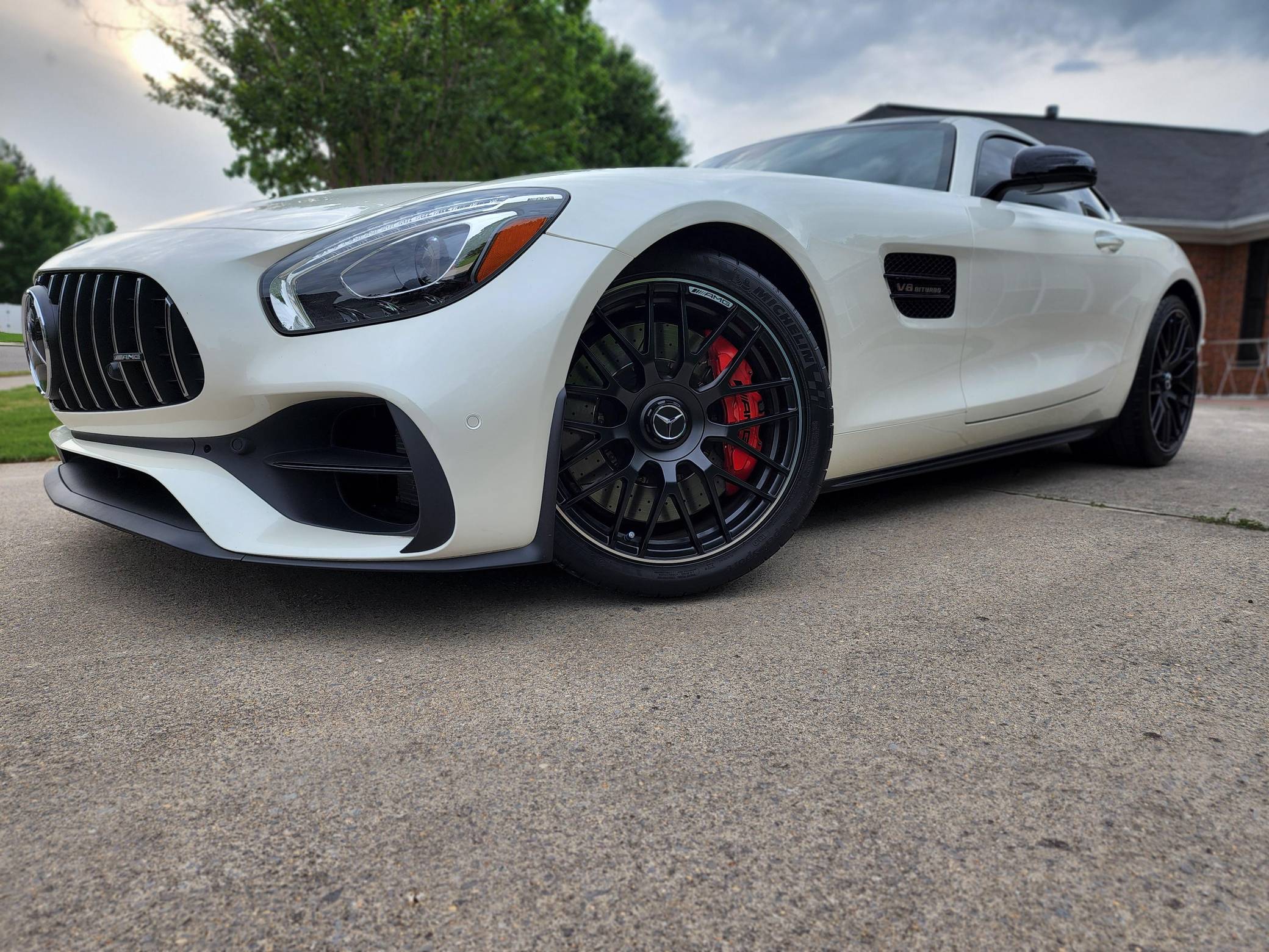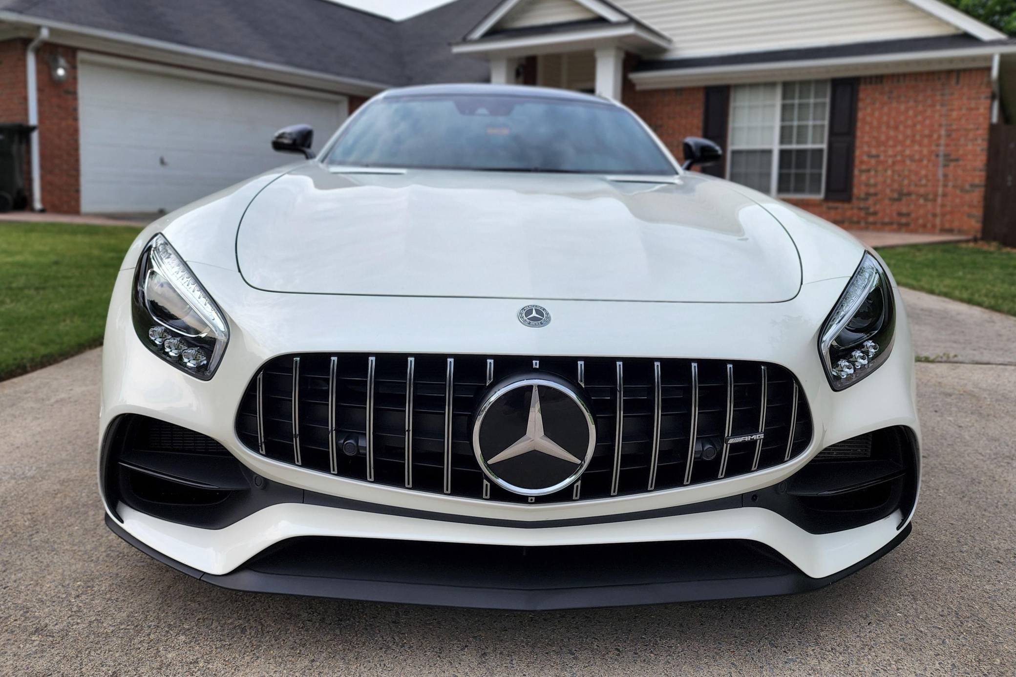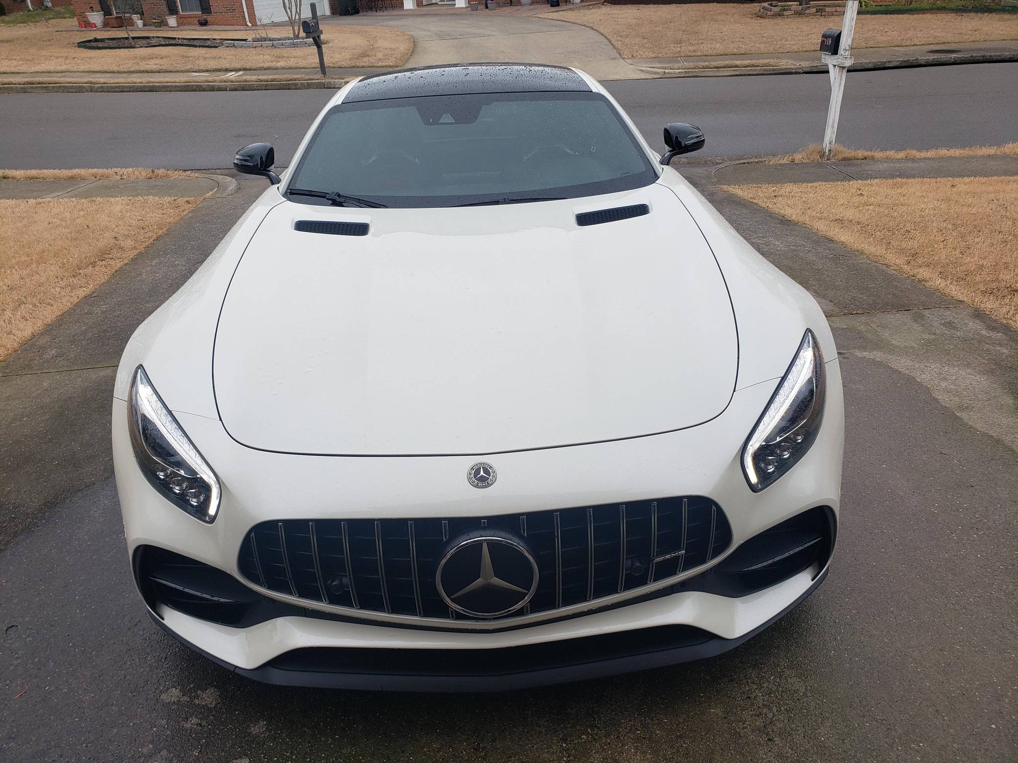 2018 Mercedes-AMG GT S Coupe, finished in Designo Diamond White Metallic with a Red Pepper and black interior. The odometer currently indicates approximately 15,700 miles. According to the build sheet provided in the gallery, this GT S had an original MSRP of $152,035, including $18,640 in options. Factory equipment includes the AMG Aerodynamics Package, Lane Tracking Package, a panoramic sunroof, Nappa leather interior, AMG carbon fiber interior trim, heated, ventilated, and power-adjustable sport seats, and a Burmester surround sound system. Modifications are limited to tinted windows. The GT S is a better-equipped version of the Mercedes-AMG GT -- adding a tuned engine, the AMG Ride Control adaptive suspension system, an AMG Performance Exhaust system, and, most importantly, an electronically-controlled limited-slip differential. It launched alongside the GT in 2015 and was assembled at the Mercedes-Benz plant in Sindelfingen, Germany. Power comes from a twin-turbocharged 4. 0-liter V8, rated at 515 horsepower and 494 lb-ft of torque. Output is sent to the rear wheels through a 7-speed double-clutch automatic transmission.