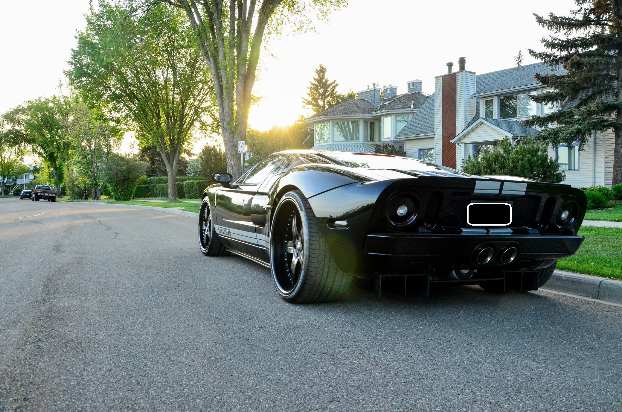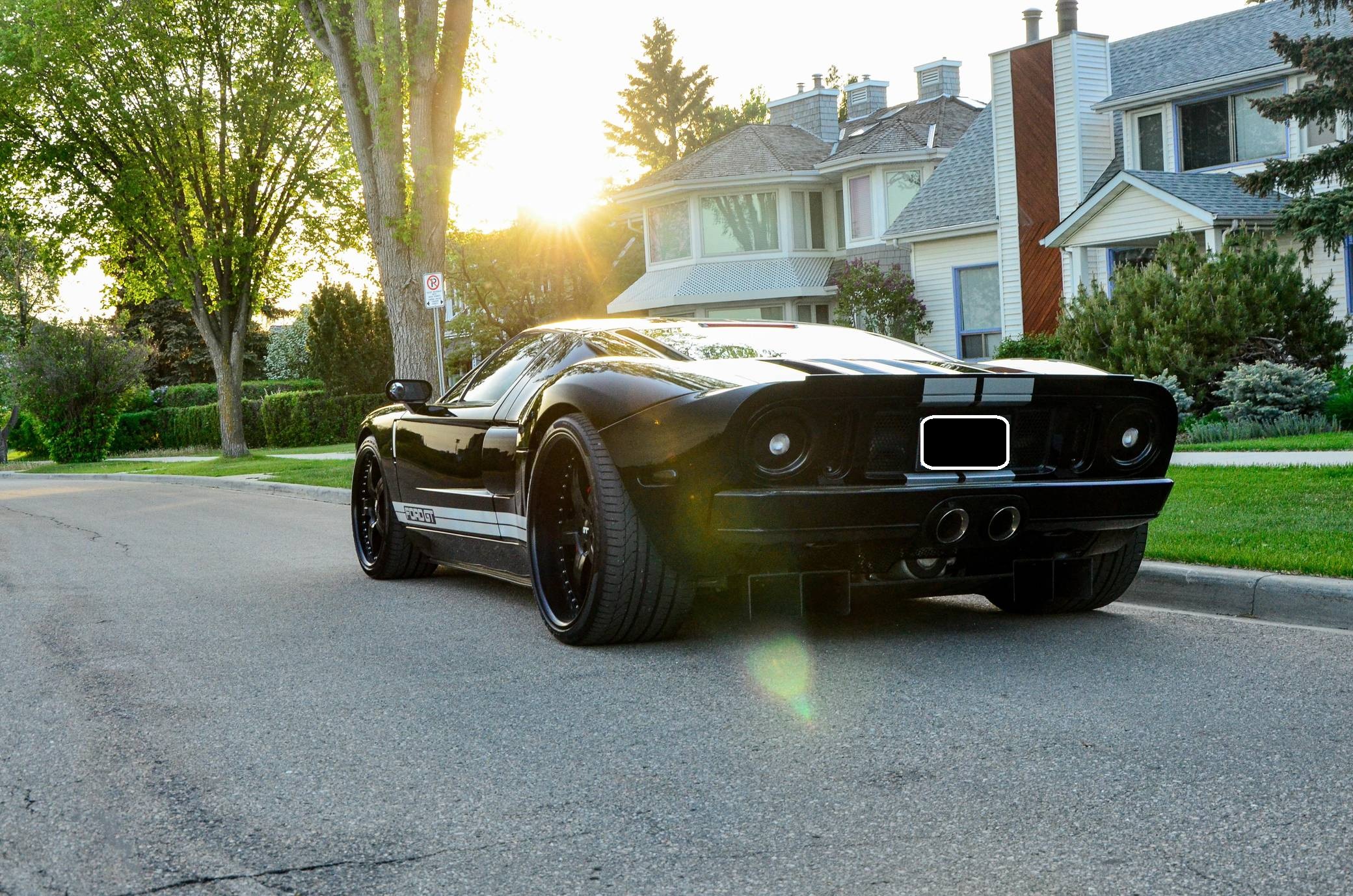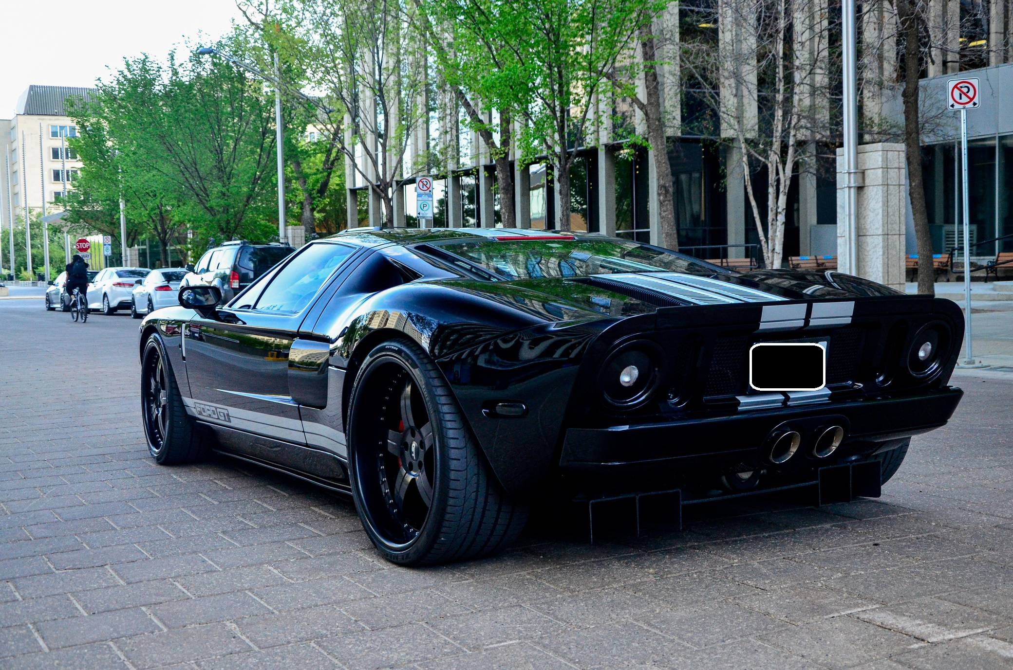 2006 Ford GT, finished in Mark II Black with silver stripes and an Ebony interior. Factory equipment includes red brake calipers, a limited-slip differential, HID headlights, leather upholstery, ventilated carbon fiber seats, and air conditioning. The list of modifications reported by the seller includes a Heffner Performance tune, an Accufab throttle body, a ceramic-coated exhaust system after the catalytic converters, a KW automotive V3 coilover kit, "Hot Buttons" silver seat inserts, and a short-throw shifter. More information about the aftermarket parts installed on this car is provided below, and the seller states that the removed factory parts (including the 18-inch front and 19-inch rear BBS wheels) are included in the sale. Ford rekindled its rivalry with Ferrari when it rebooted the GT for 2005. Inspired by the Le Mans-winning GT40, the limited-production coupe represented America in the supercar segment with a heritage-laced design, a driver-focused interior, and a mid-mounted supercharged V8 engine. Around 4,000 units were built, and Ford retired the GT nameplate until it launched the second-generation model for 2017. Power comes from a 5. 4-liter supercharged V8, rated at 550 horsepower and 500 lb-ft of torque when left stock. The modifications could increase those figures but a dyno sheet is not available. The engine spins the rear wheels via a 6-speed manual transaxle.