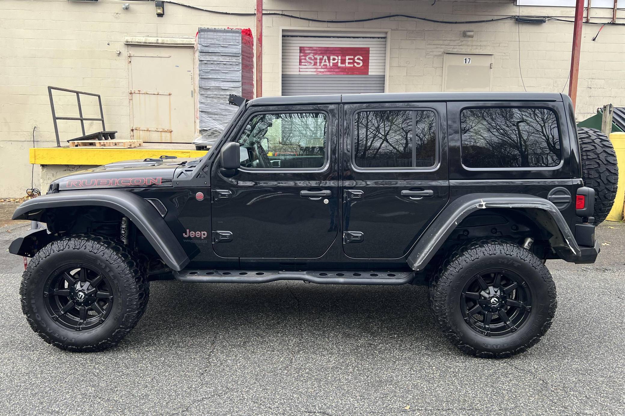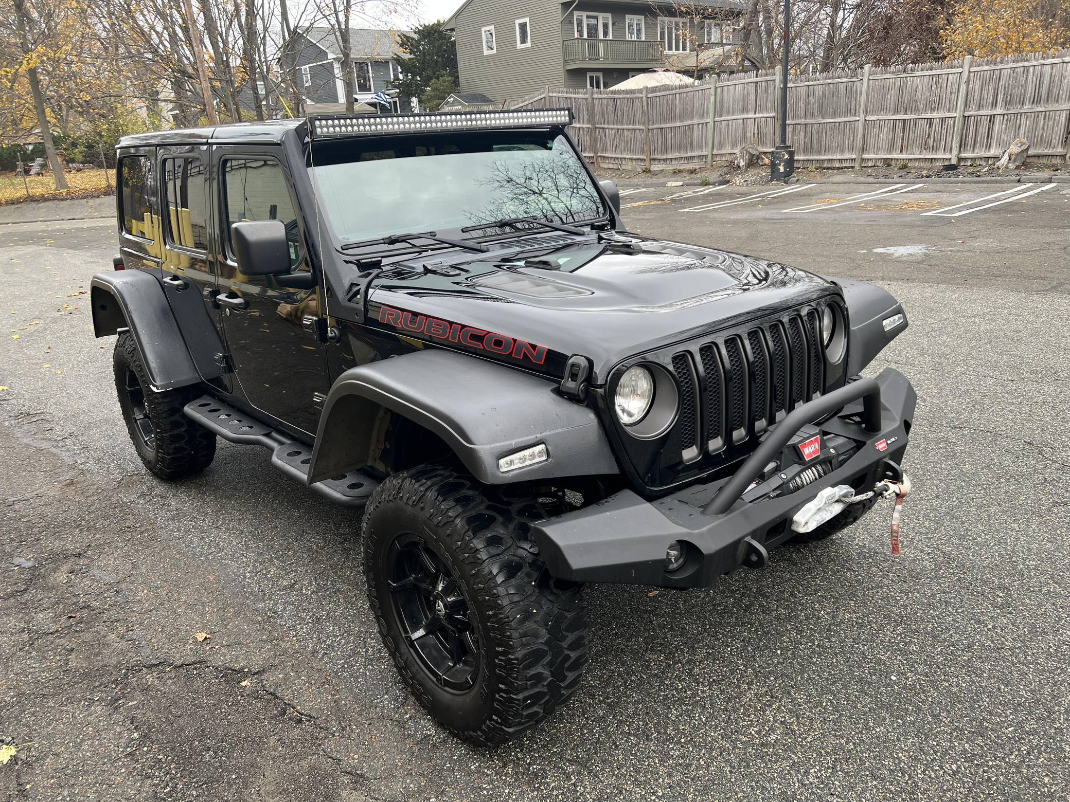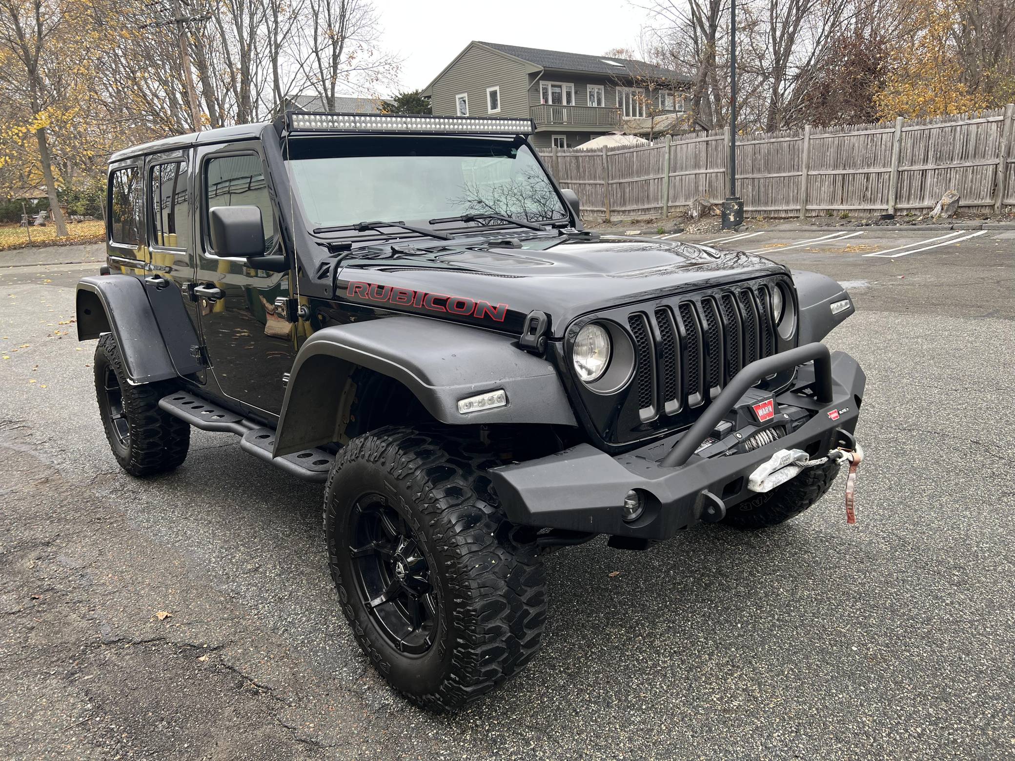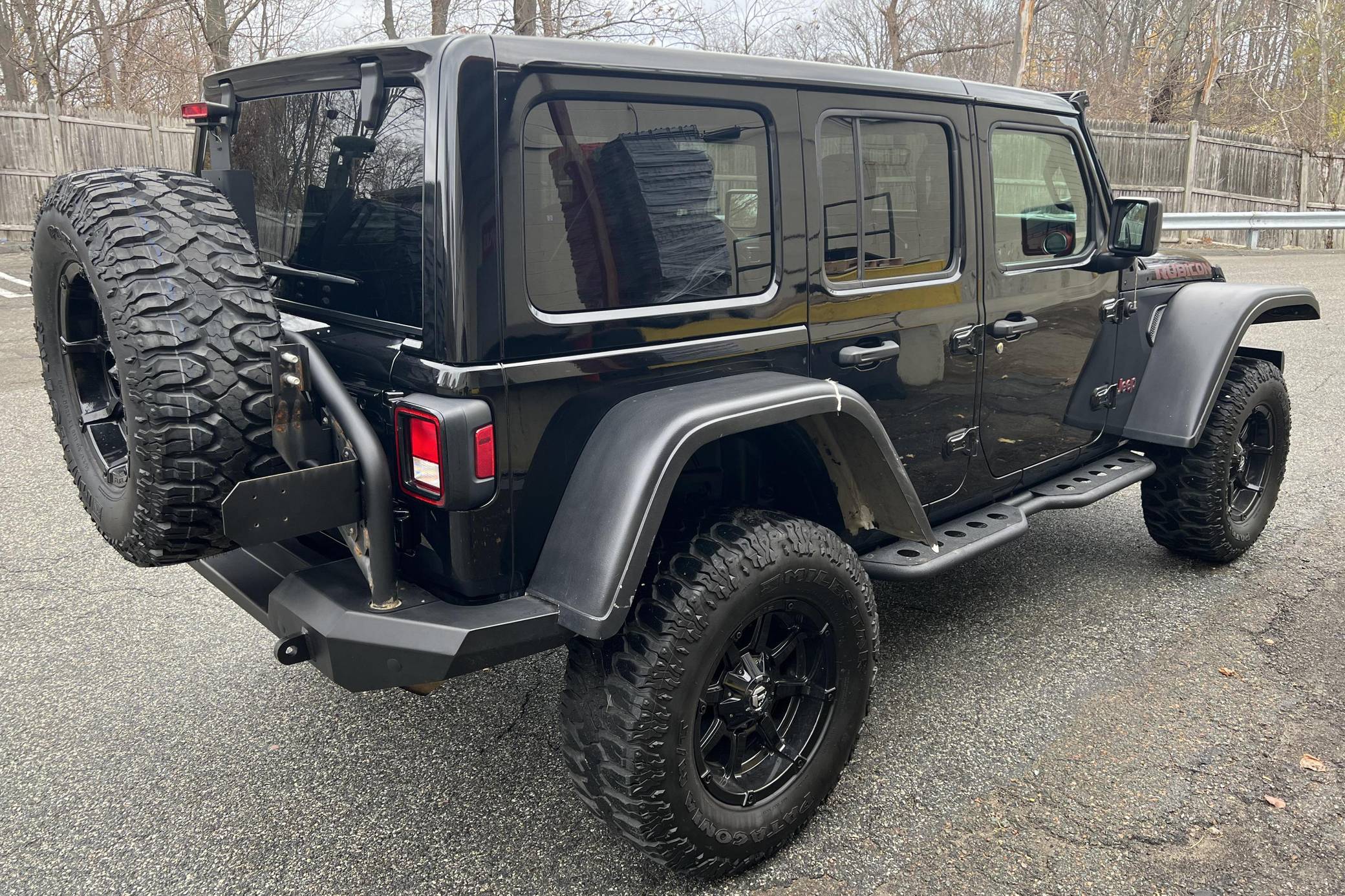THIS. . . is a 2018 Jeep Wrangler Unlimited Rubicon 4x4, finished in black with a black interior. It also confirms that it's a one-owner car. A partial list of notable equipment includes the Cold Weather and Electronic Infotainment System Groups, Dana 44 HD axles, Tru-Lok front and rear axles, a front disconnecting stabilizer bar, a performance suspension system with Fox shocks, skid plates, a 3-piece hardtop, leather upholstery, and automatic climate control. Modifications reported by the seller include 18-inch Fuel wheels with 35-inch Milestar Patagonia M/T tires, Warn bumpers, a Warn Zeon winch, a Warn spare tire mount, and aftermarket fender flares and side steps. Launched in 2018, the fourth-generation JL Wrangler featured an updated exterior and interior design as well as a new optional 8-speed automatic transmission. The off-road-ready Rubicon trim level came equipped with Dana 44 axles, a front stabilizer-bar disconnect system, electronic locking differentials, rock rails, and high-clearance fenders. Power comes from a 3. 6-liter "Pentastar" V6, rated at 285 horsepower and 260 lb-ft of torque. Output is sent to the rear or all four wheels via an 8-speed automatic transmission and Rock-Trac 4WD system.