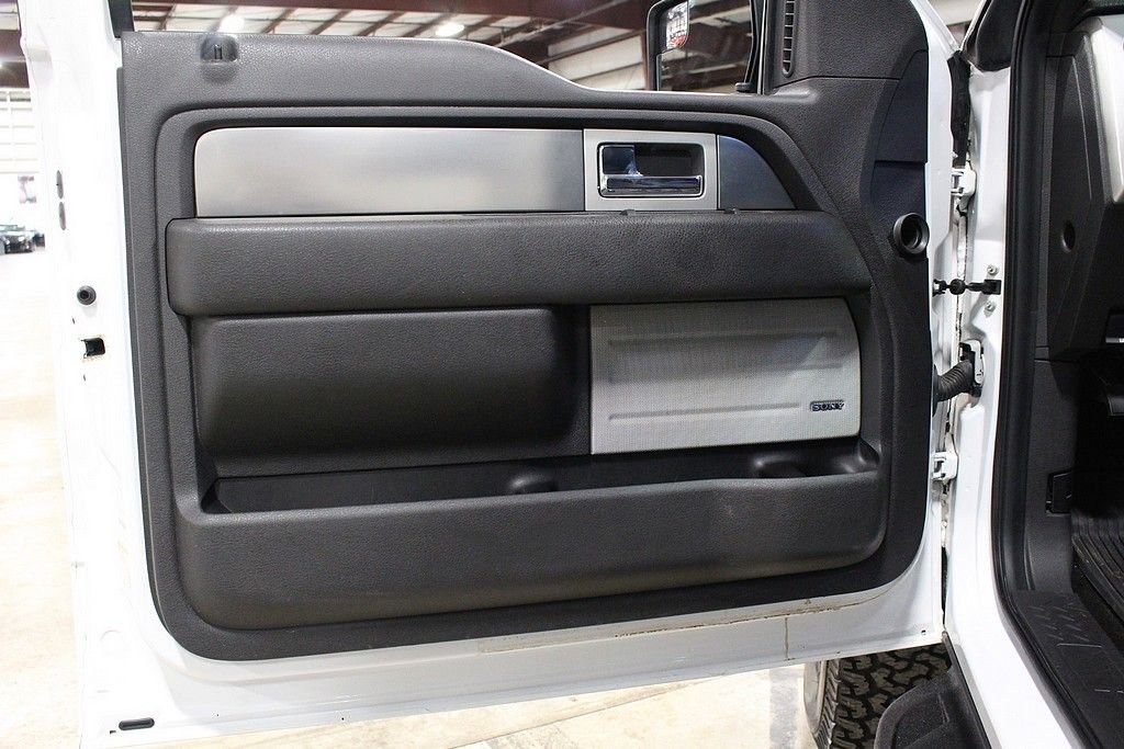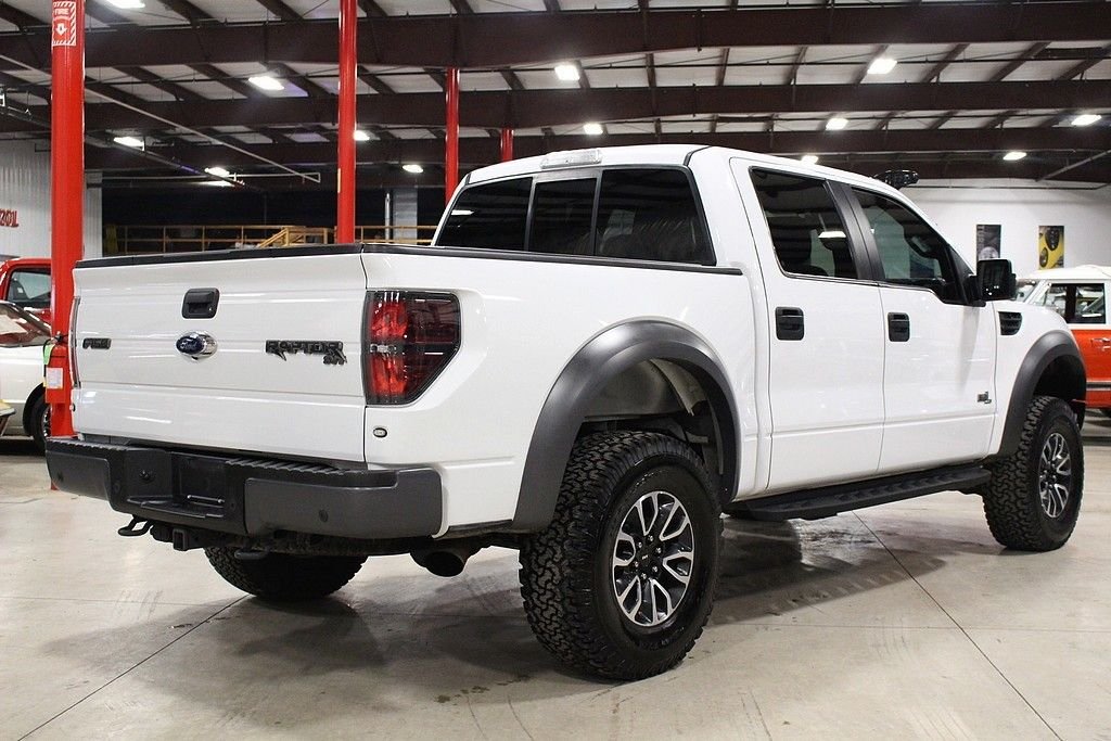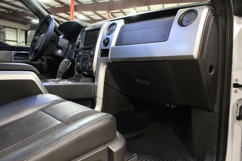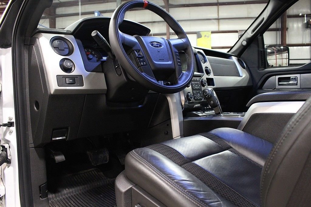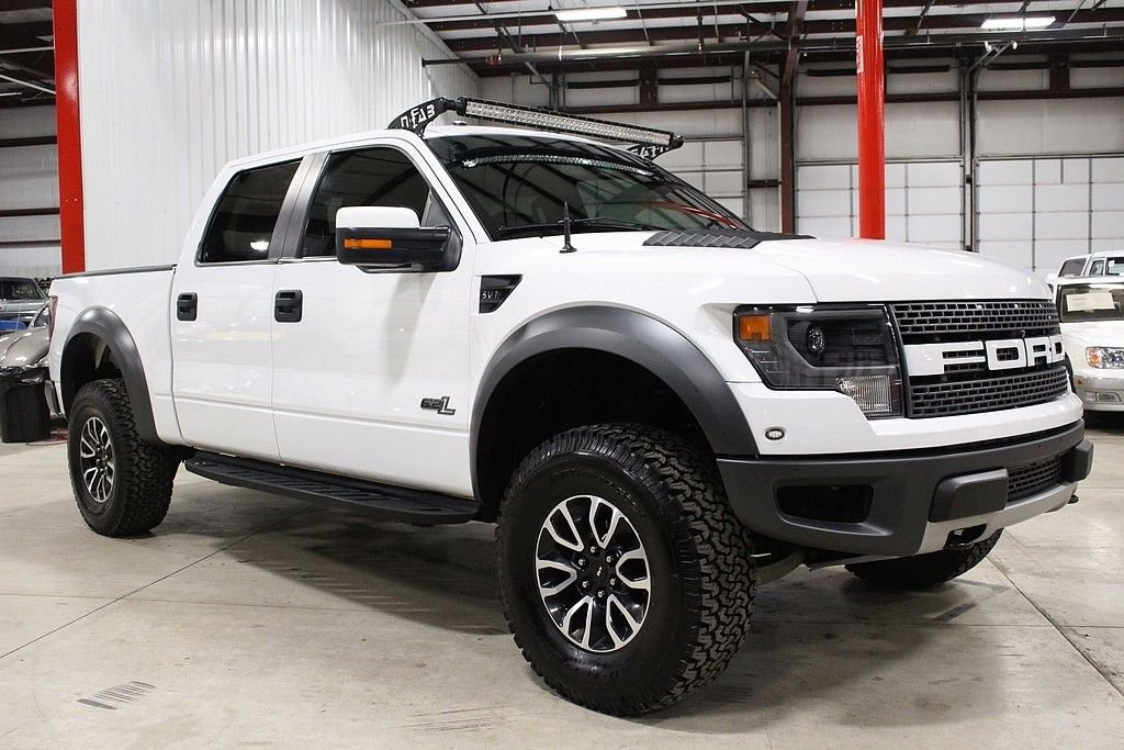 Represented here is one of the meanest, aggressive, and take no prisoner pickup truck that is available on the market! Hands down this BadAss ride will not only put the fear of God in anyone, but will cause a tremendous amount of jealously for any person that witnesses you driving this modern day monster truck down the road or thru the brush. The Ford Raptor is a F150 on serious steroids and with a long list of upgrades and improvements that would cost three times as much if you tried to do it by yourself. The massive 6.2L V8 that cranks out 411HP will pull, drag or haul anything you want to bring along. The Raptor also gets the benefit of a wider stance and a Fox Racing suspension system that allows you to float over any obstacle that may present itself. The 2013 Ford SVT Raptor Crew Cab 4X4 offered here is a one owner vehicle and has been driven just 41000 miles since purchased new in September of 2013. Like all Raptors, this truck comes with all kinds of options standard including graphic delete white exterior paint with in cabin, charcoal leather interior with honey comb red inserts to complete a tasteful transition. The long list of factory features is very intense, some of the highlights include: Hill Descent, Auxiliary Audio Input, Back-Up Camera, Navigation, Bluetooth Connection, Cooled Front Seats, Dual Zone Climate Control, Heated Front Seats, Bed Liner, Cargo Catch, Rear Step, Sliding Rear Glass, Bucket Seats, Driver Adjustable Lumbar, Folding Mirrors, Power Tilt / Sliding Sunroof, HID Headlights, and a very cool N-fab light bar. Car has been properly maintained since new. Gas prices are cheap; this is the time to buy one of these. This Raptor represents the last year of this generation and rumors state that this big V8 will not be available in the next generation and most likely will be a small Eco boost V6.