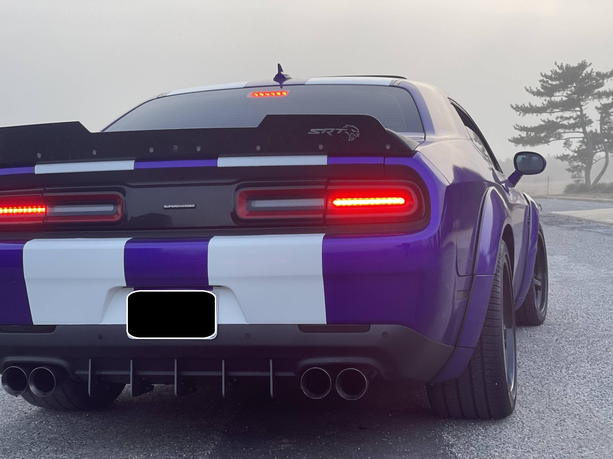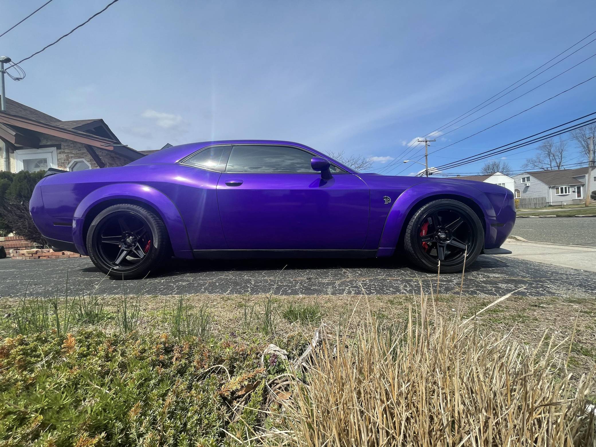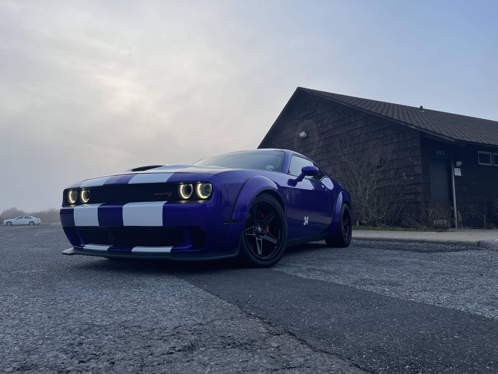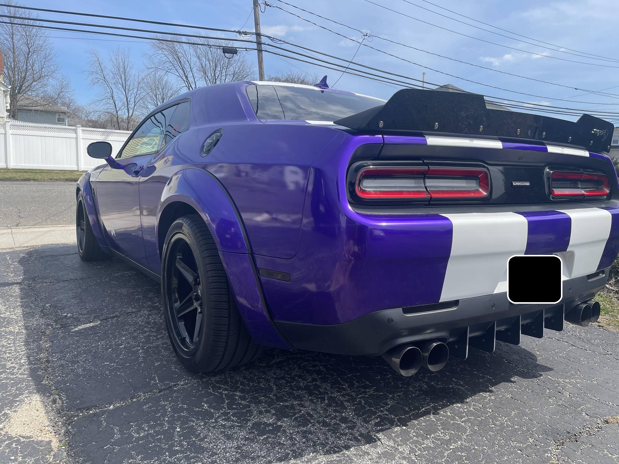 2016 Dodge Challenger SRT Hellcat, finished in Granite Crystal with a purple and white exterior wrap and a black and ruby red interior. Equipped with the SRT Hellcat Package 26R, a limited-slip differential, Bilsten 3-mode Competitive Suspension with adaptive damping, Brembo 6-piston brakes, Laguna/Alcantara upholstery, heated and ventilated front seats, a heated steering wheel, a power sunroof, an 18-speaker premium audio system, and more as detailed below. A partial list of modifications reported by the seller includes a custom exterior wrap, Eibach Pro-Kit lowering springs, wide-body fender flares, 4-inch quad exhaust tips, and a BWoody air intake. Released for the 2015 model year, the SRT Hellcat variant of the Dodge Challenger is an extremely powerful muscle car. Its stunning 707 horsepower output significantly upped the ante in the American muscle car horsepower wars. As a result, performance figures are pegged at a 0-to-60 mph time of 3. 6 seconds and an official top speed of 199 mph. Power comes from a 6. 2-liter supercharged "Hemi" V8, rated at 707 horsepower and 650 lb-ft of torque in stock form. This engine may be making slightly more power due to the modifications, though a dyno sheet was not provided to confirm. Output is sent to the rear wheels through an 8-speed automatic transmission.