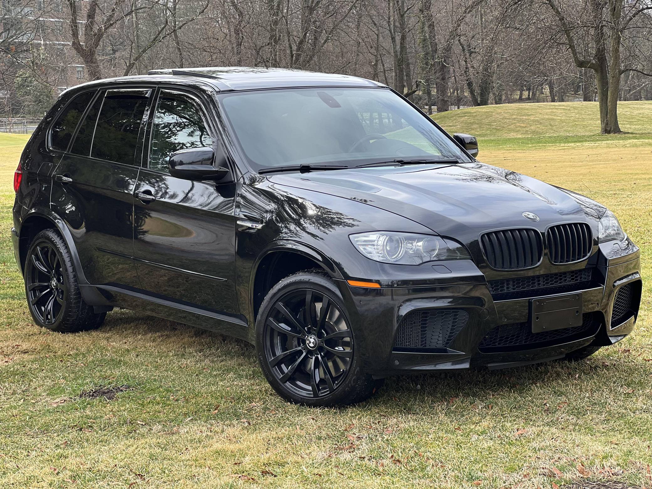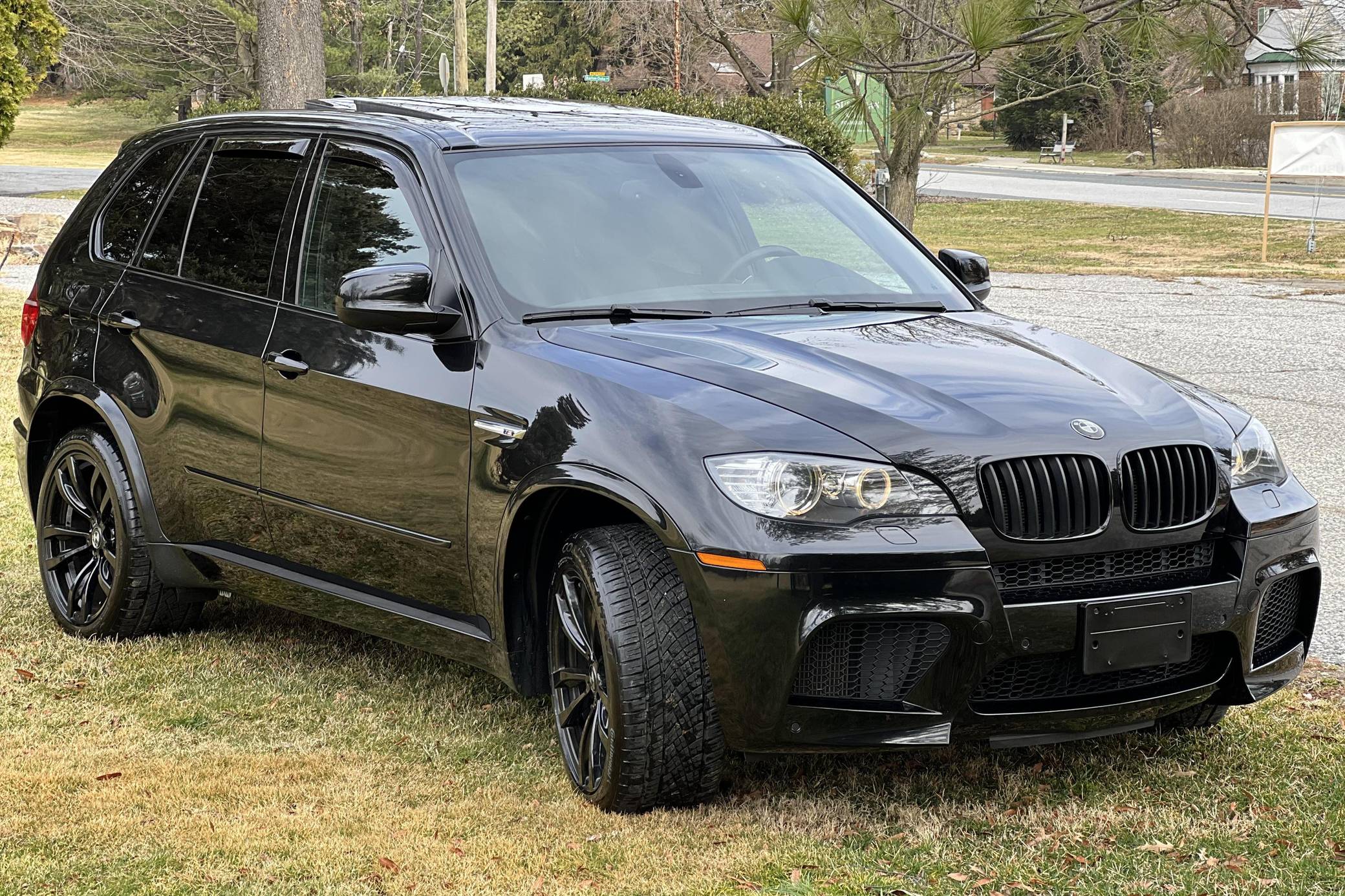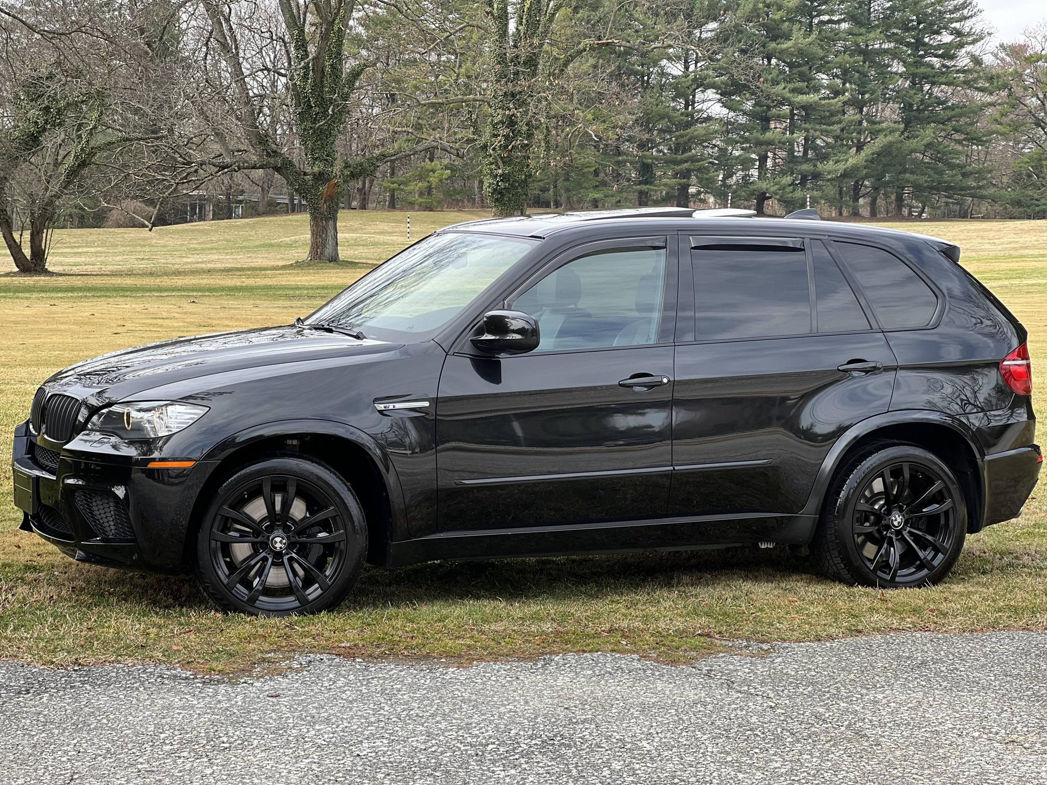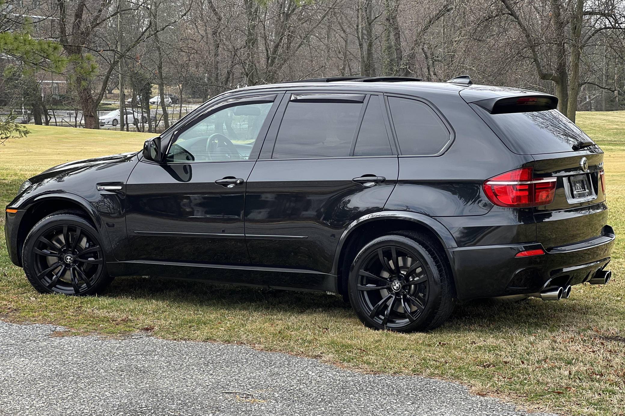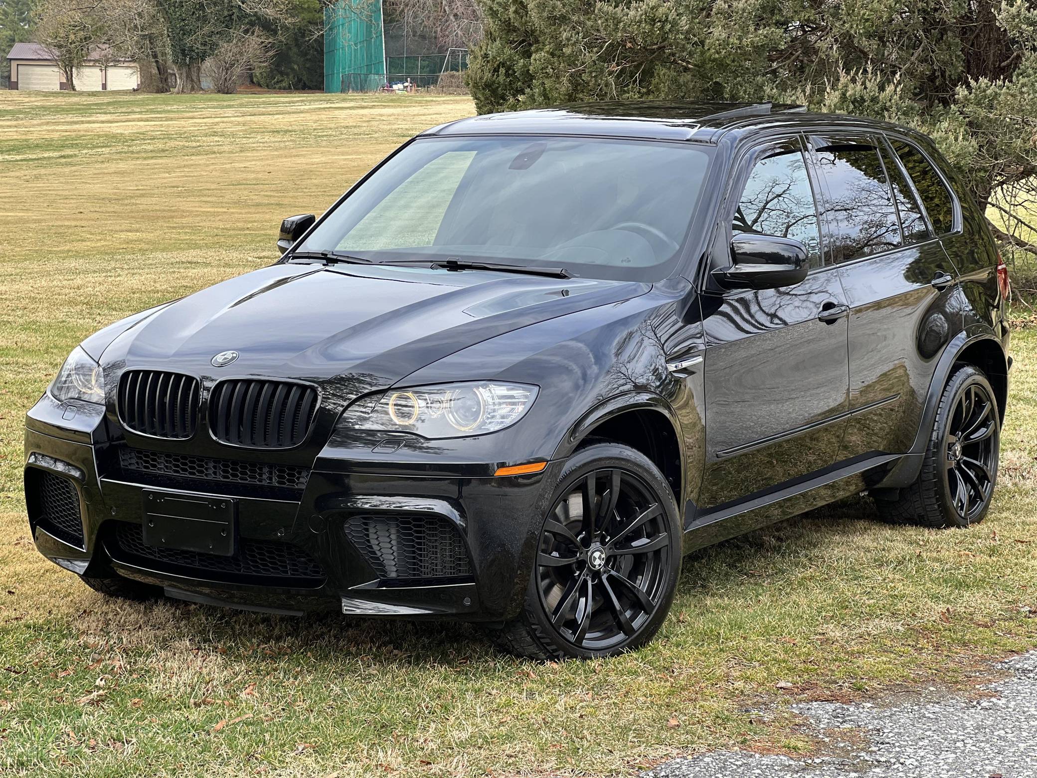 THIS. . . is a 2012 BMW X5 M, finished in Black Sapphire Metallic with a black interior. According to the Monroney Label pictured in the gallery, this X5 M had an original MSRP of $92,745 and came equipped with Driver Assistance and Premium Sound Packages, 20-inch Style 299M wheels, self-leveling suspension, a panoramic glass roof, Merino leather upholstery, heated and power-adjustable front seats, Comfort Access keyless entry system, and more as detailed below. Modifications reported by the seller include paint protection film on the rear bumper and lower panels, an Eisenmann exhaust, WeatherTech rain guards, black kidney grilles, black BMW roundel emblems, a red starter button, carbon fiber-style wheel center caps, aluminum pedal covers, and black-painted factory wheels. The "E70" X5 M was only offered in North America from 2010 to 2013 and was the first sport-utility vehicle produced by BMW M. In addition to a more powerful engine, the M variant sported a number of enhancements over the standard X5 including M Dynamic Stability Control, Cornering Brake Control, Electronic Damping Control, and Dynamic Brake Control. Power comes from a 4. 4-liter twin-turbocharged V8 engine, rated at 555 horsepower and 500 lb-ft of torque. Output is sent to all four wheels via a 6-speed automatic transmission.